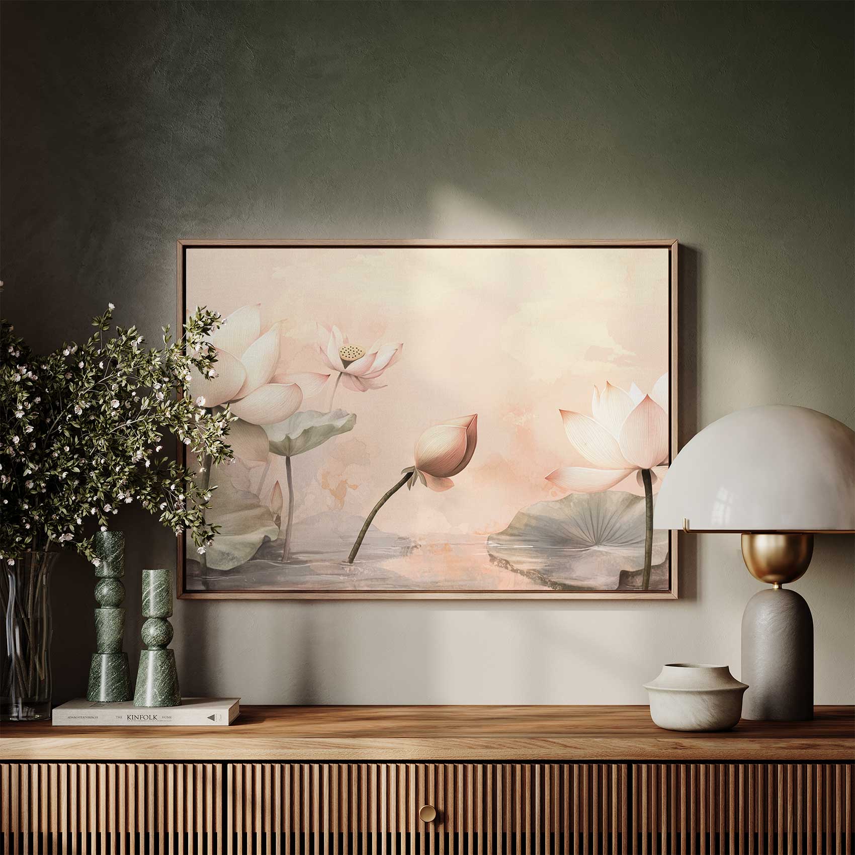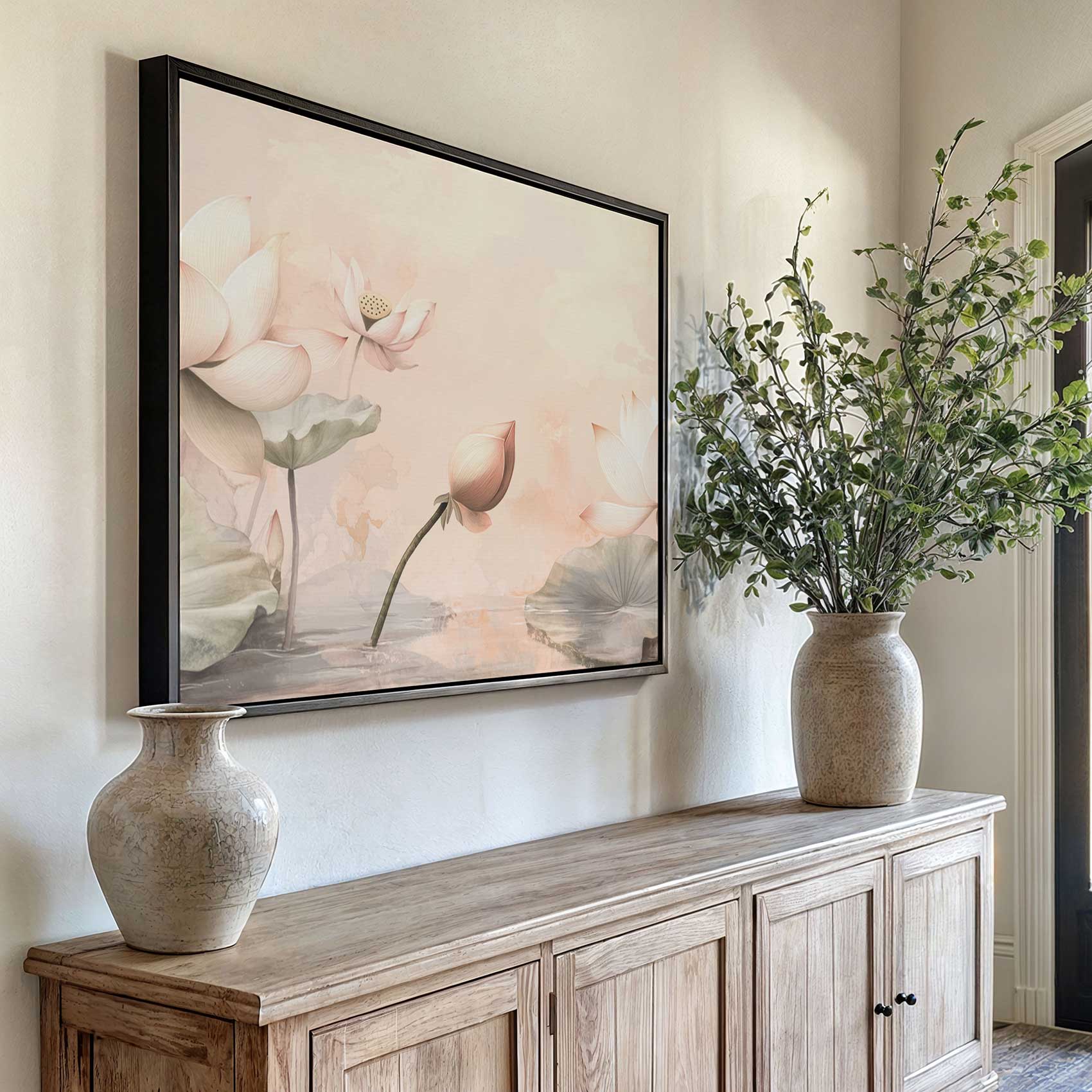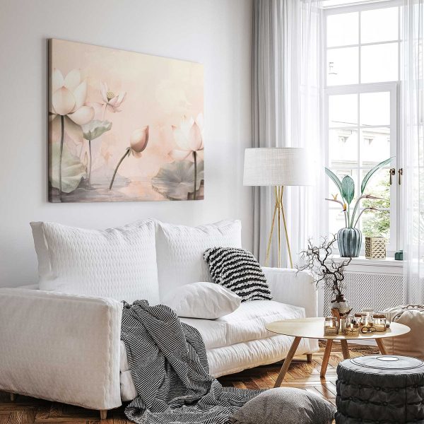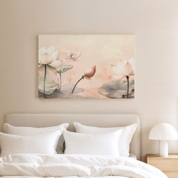 Terug naar collectie Canvas Bloemen Rustige lotusvijver in bloei