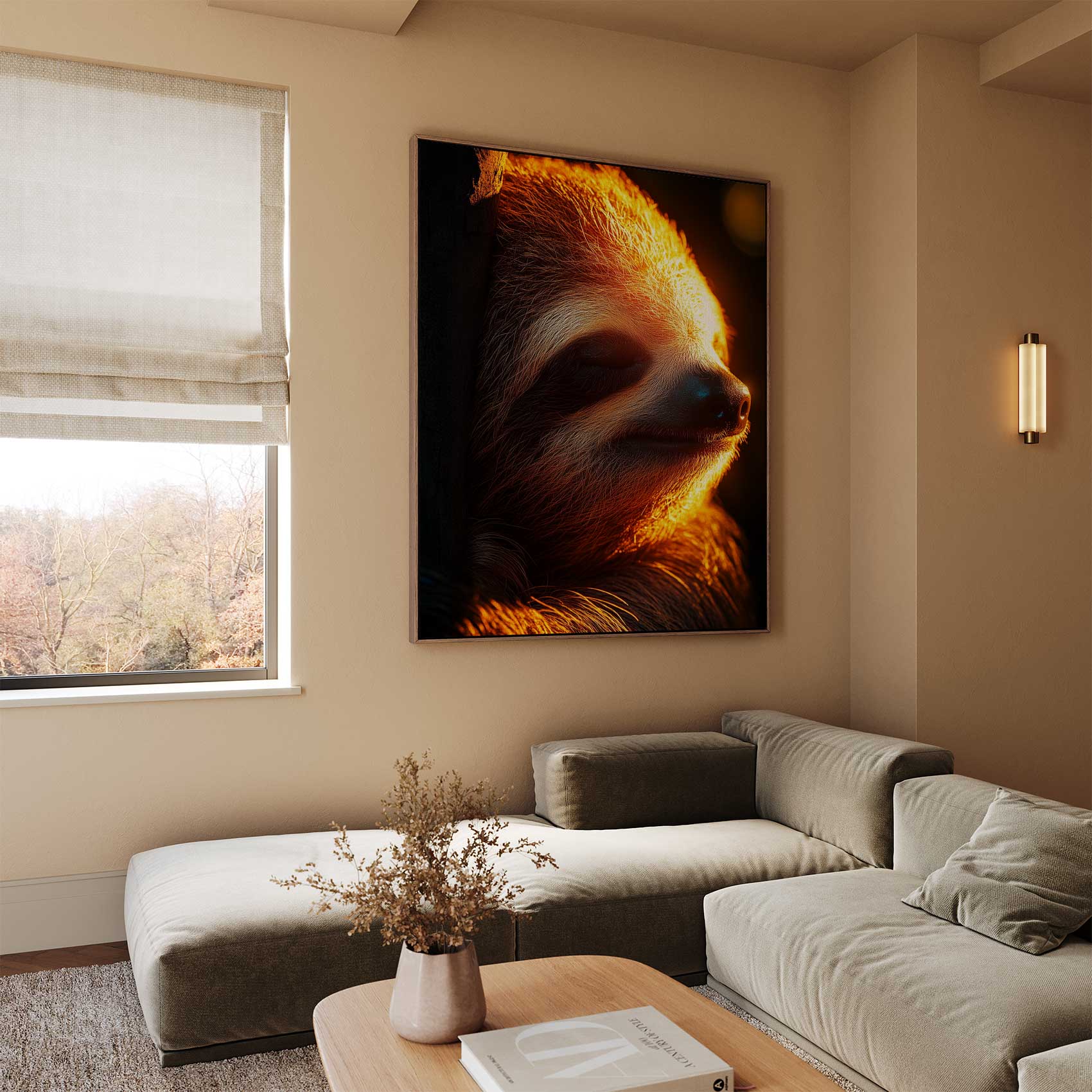 Rustige luiaard in zonlicht