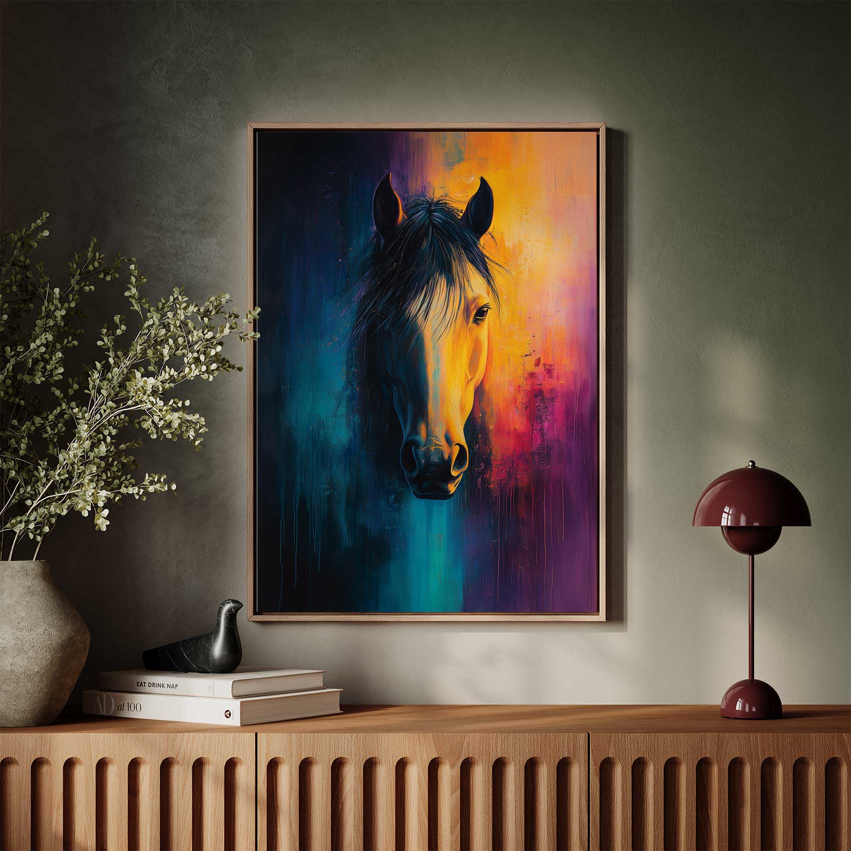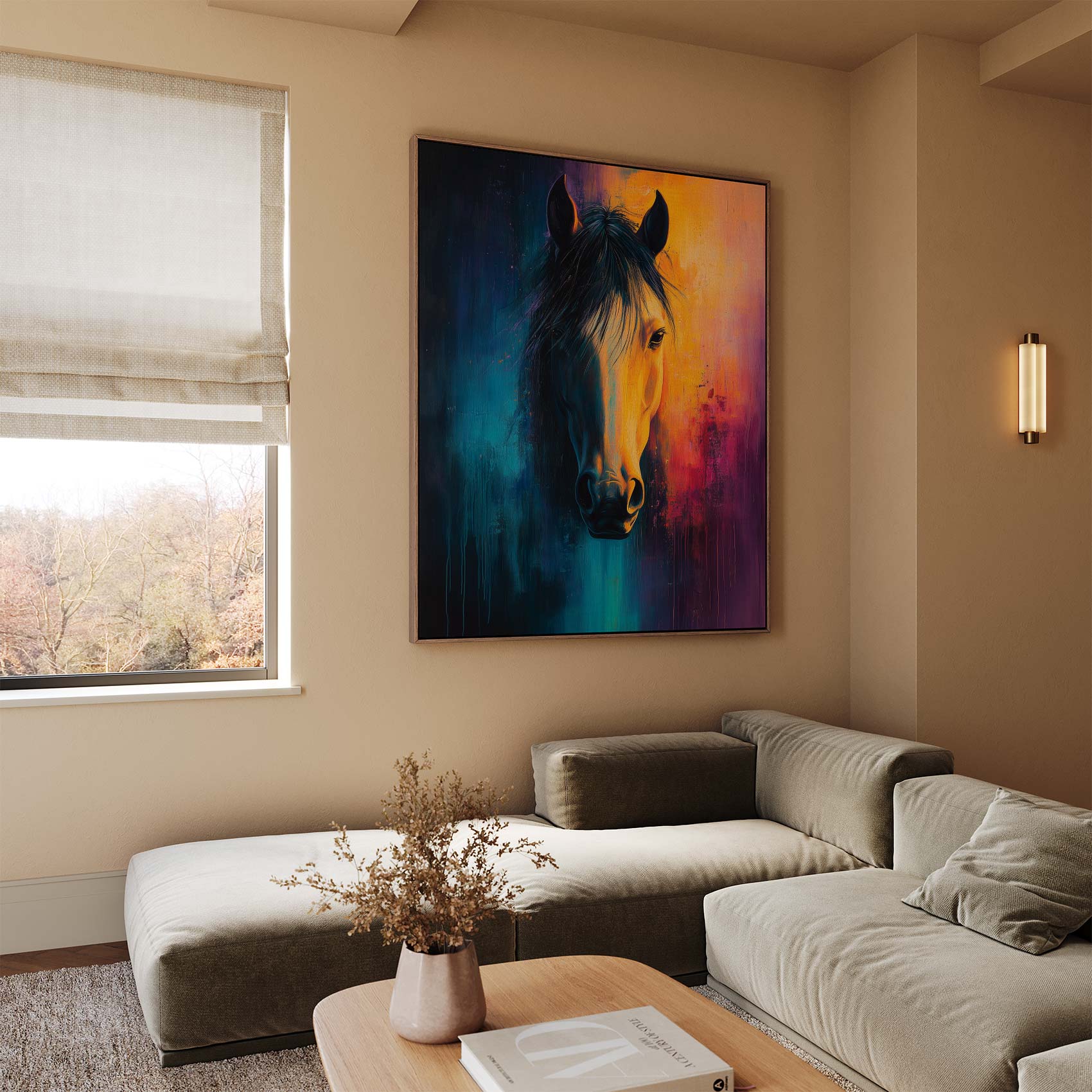 Terug naar collectie Canvas Rustige paardenkop op abstracte achtergrond