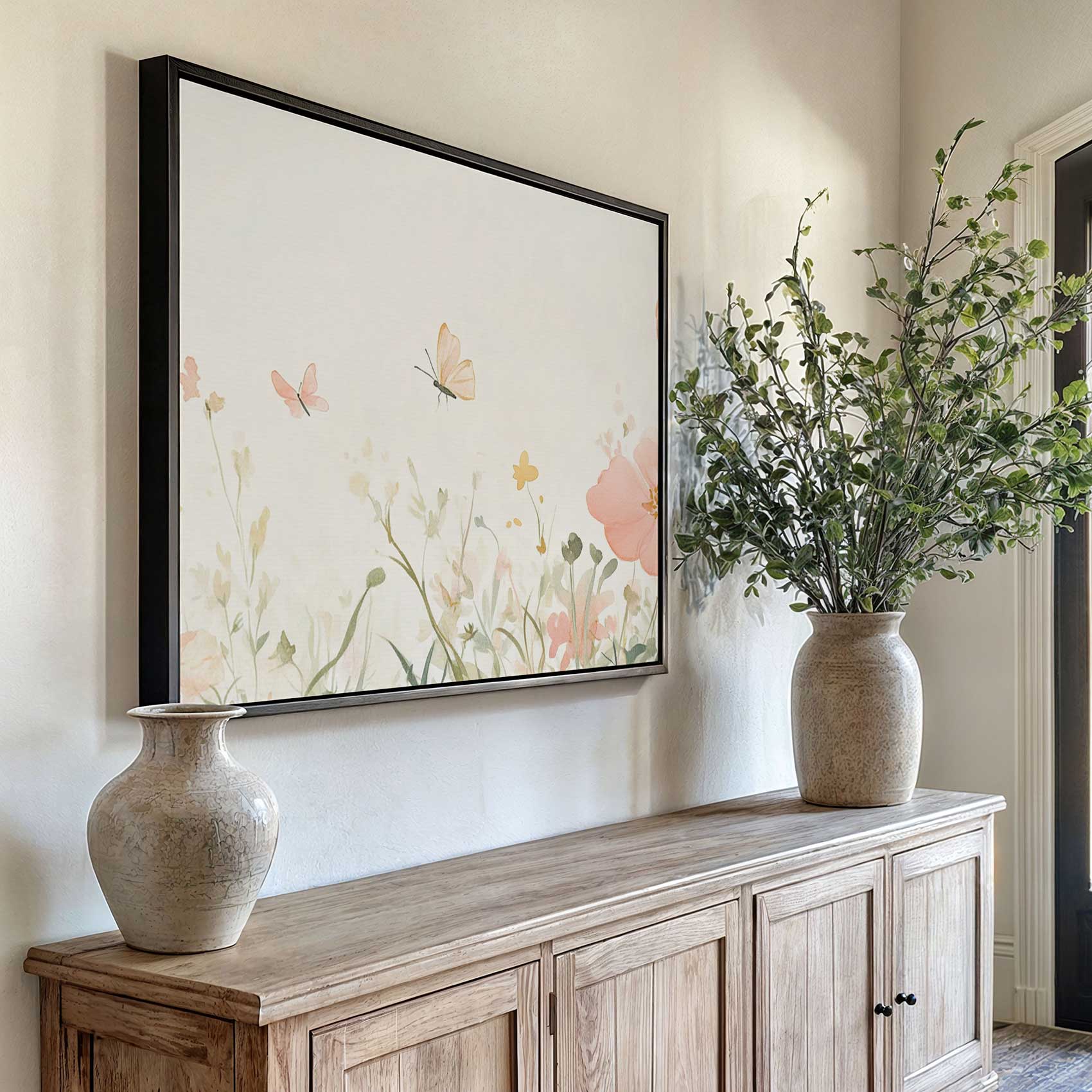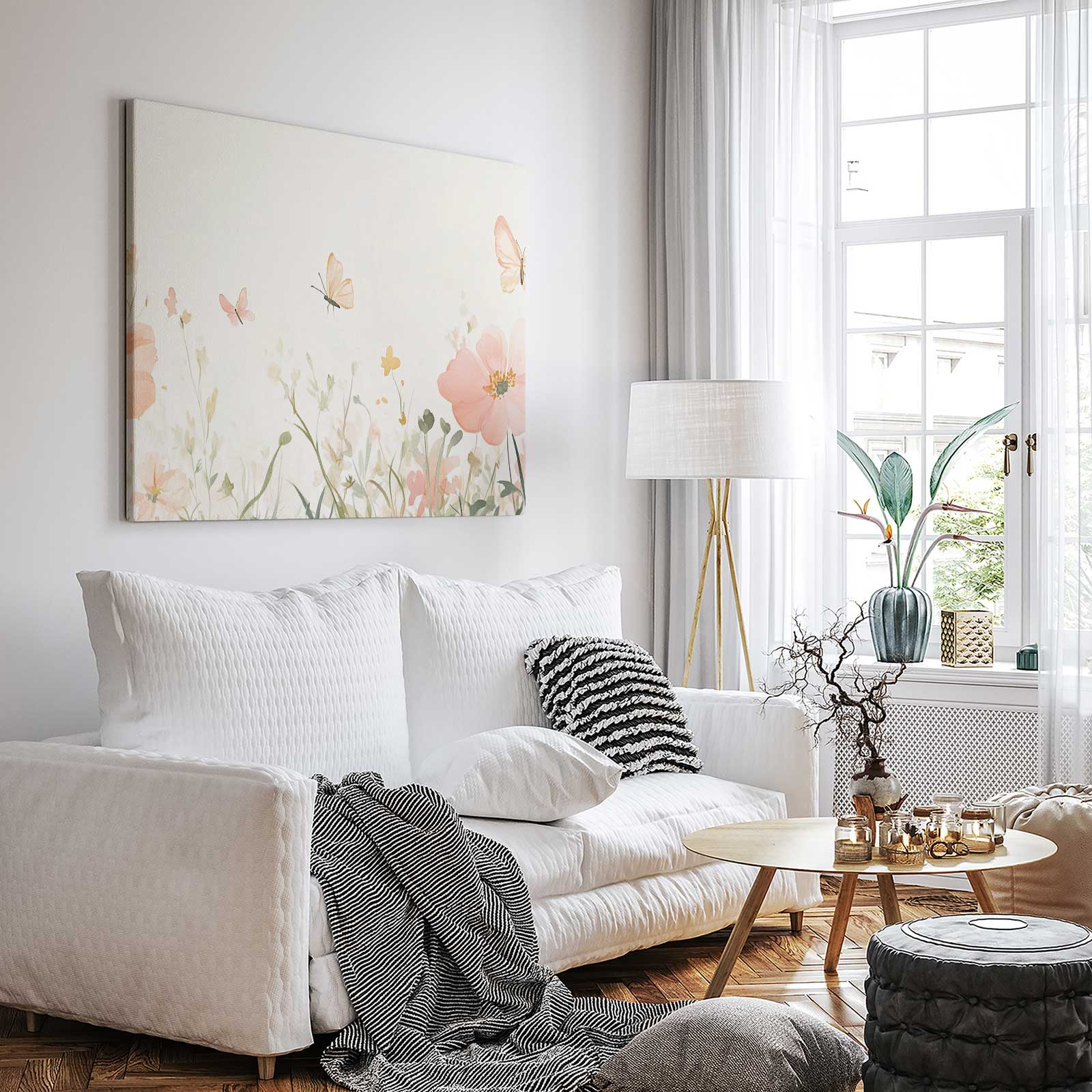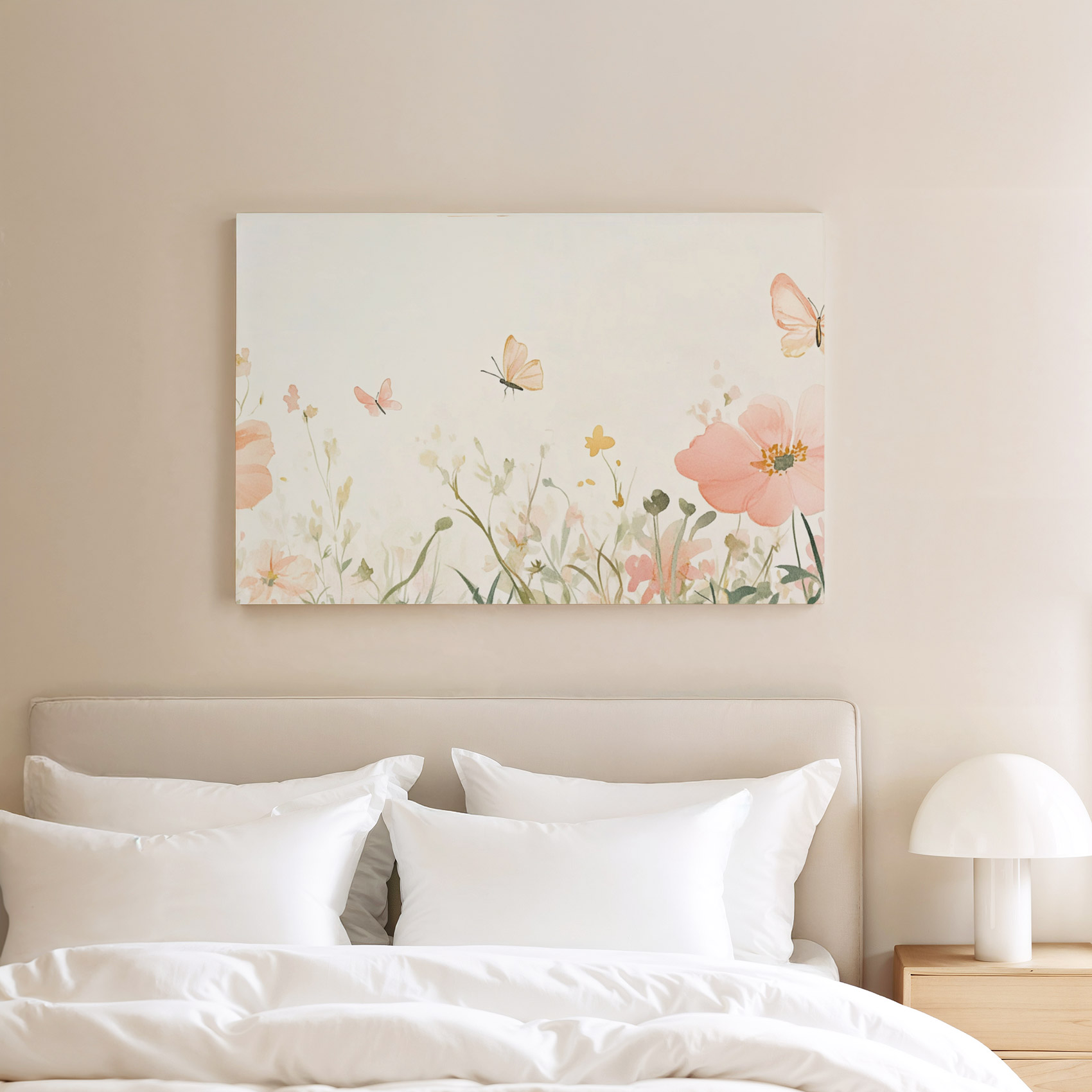 Terug naar collectie Canvas Bloemen Rustige roze bloemenvlinderweide