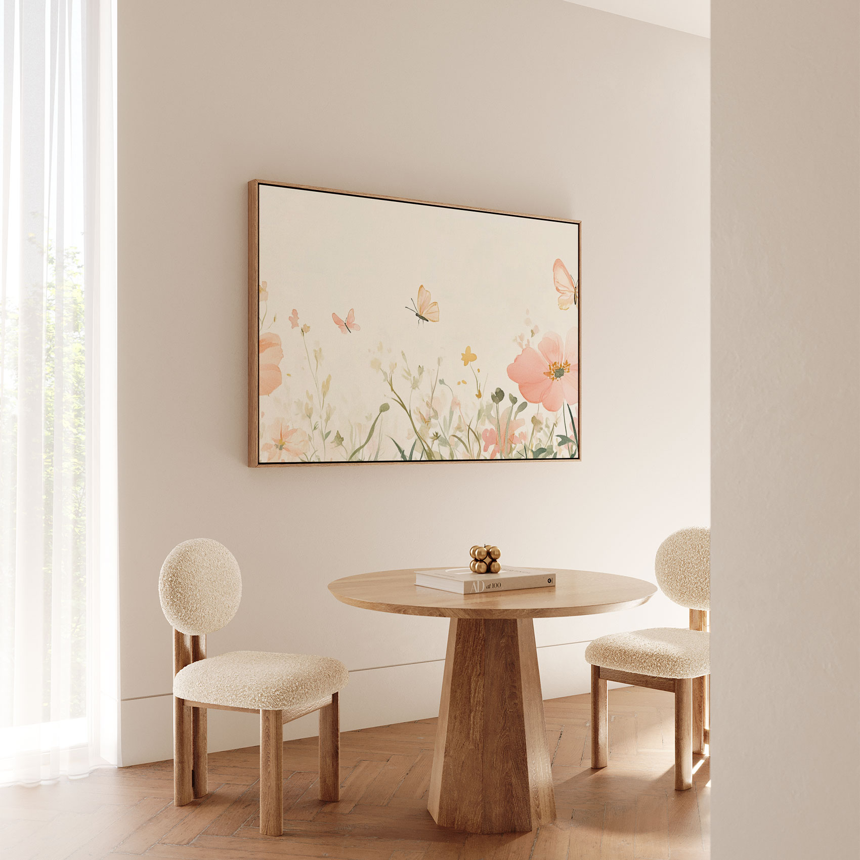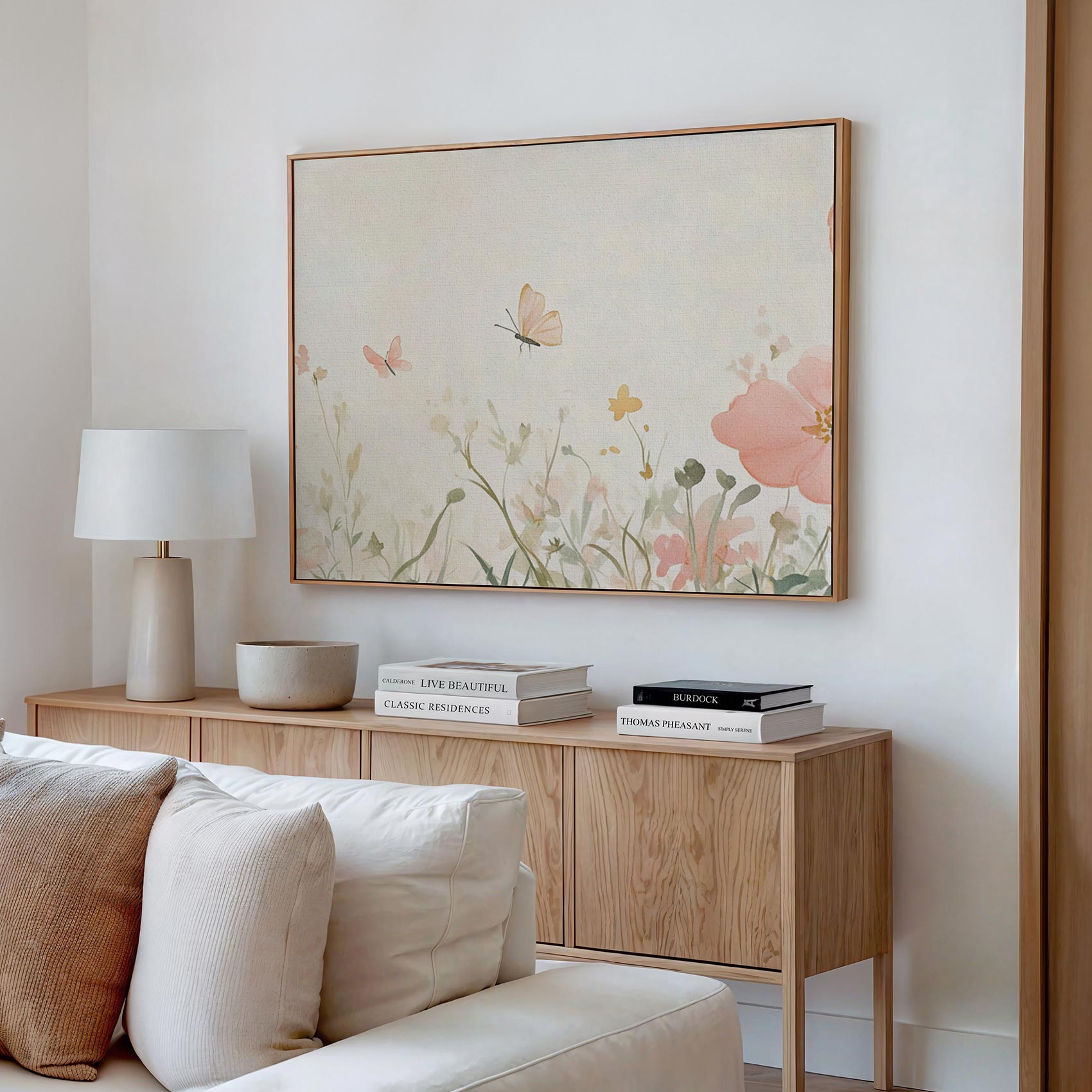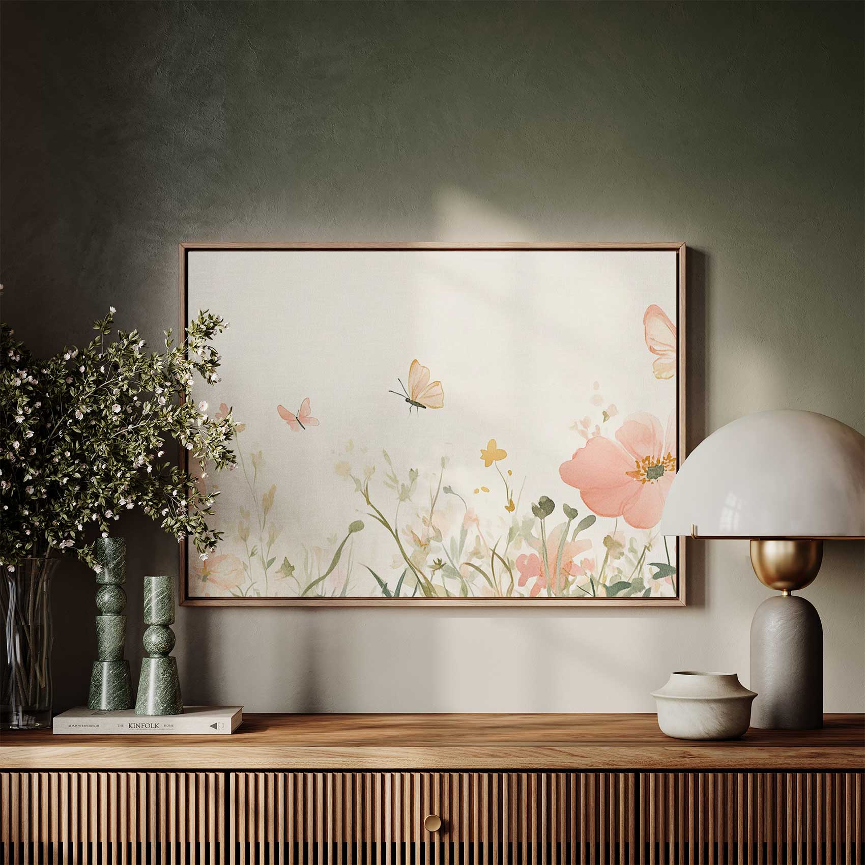 Terug naar collectie Canvas Bloemen Rustige roze bloemenvlinderweide