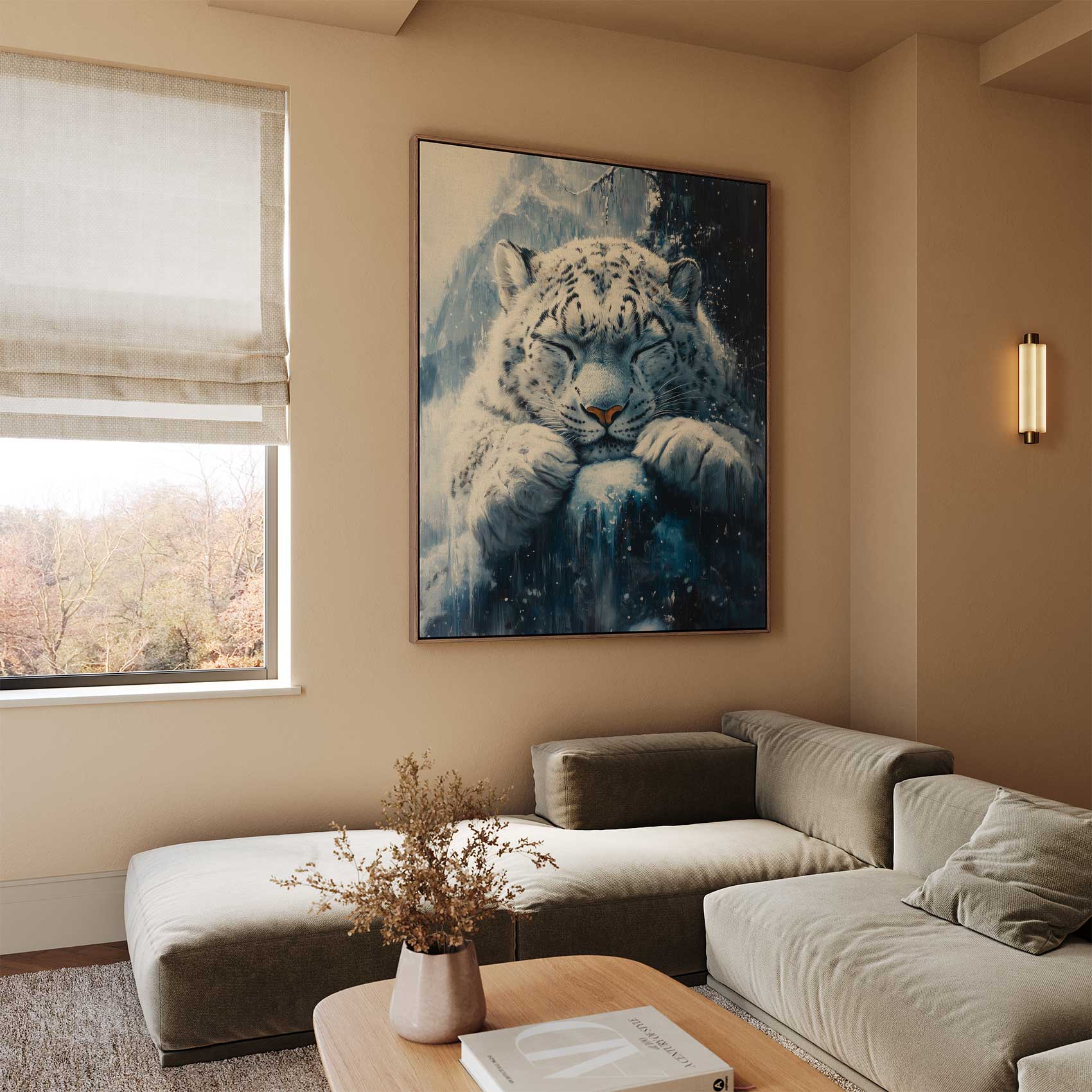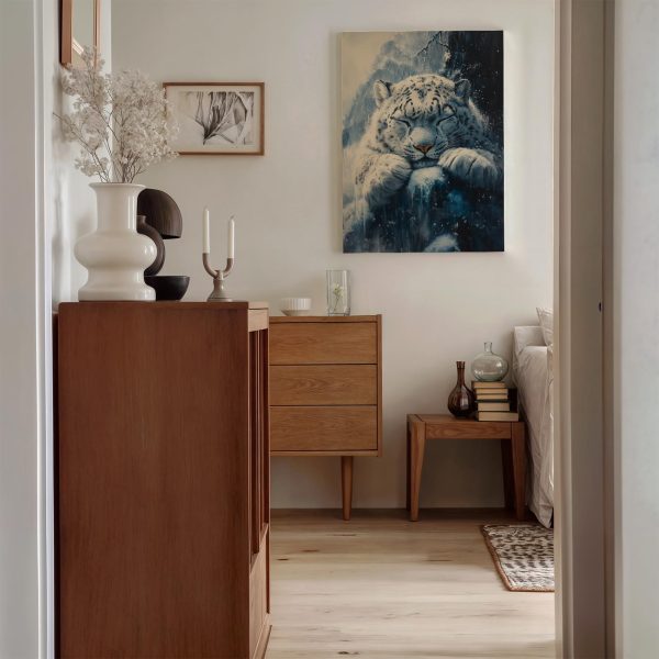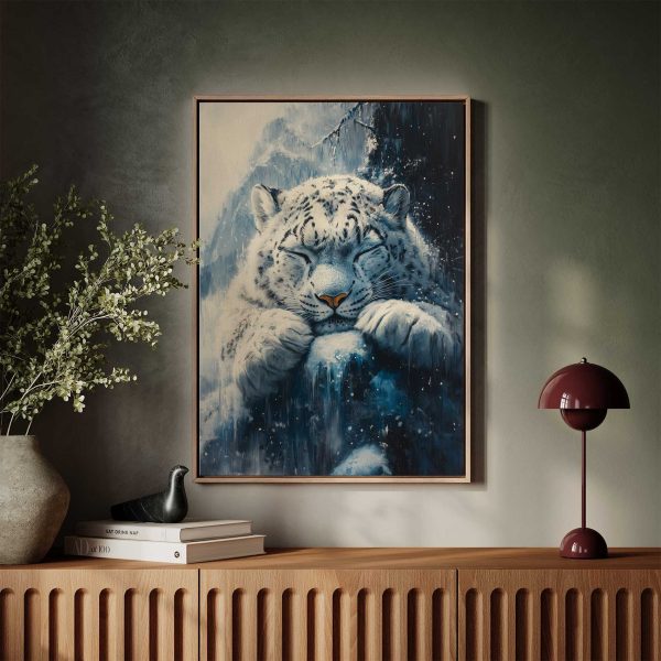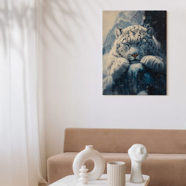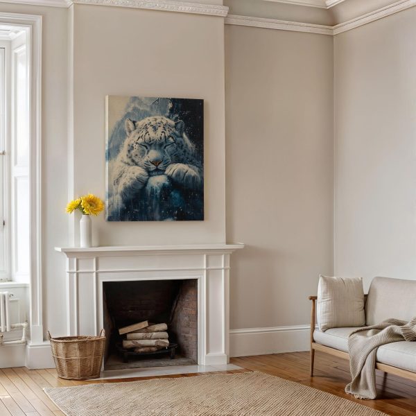 Rustige sneeuwluipaard op rots