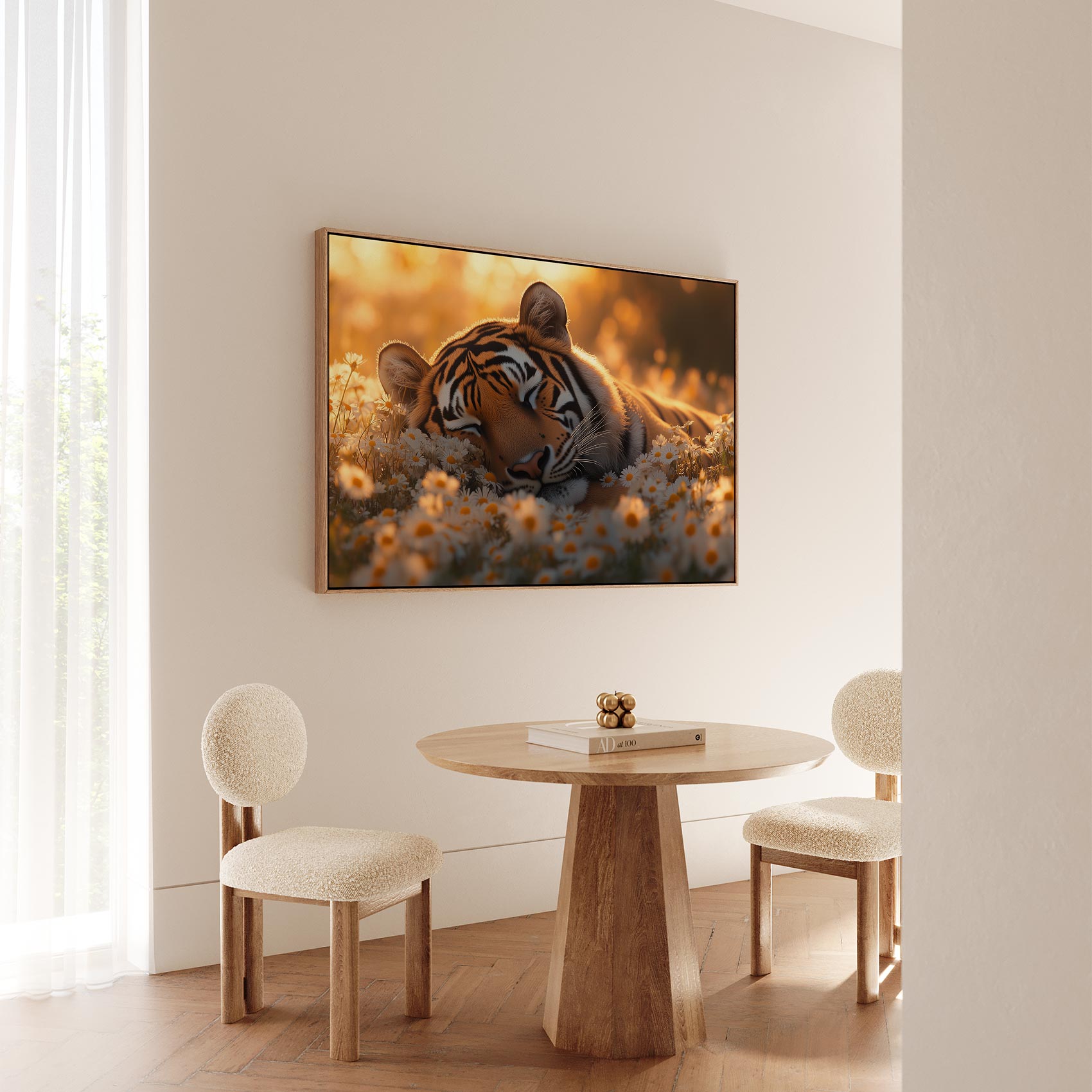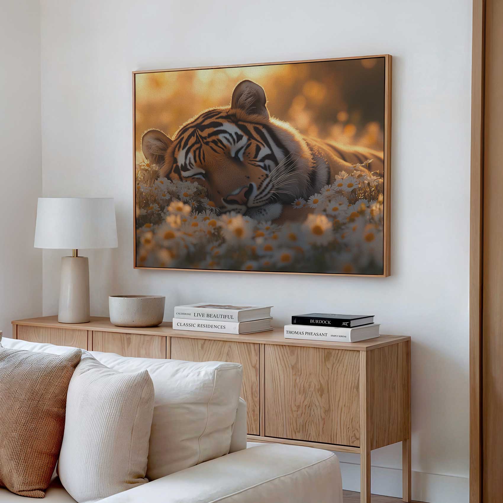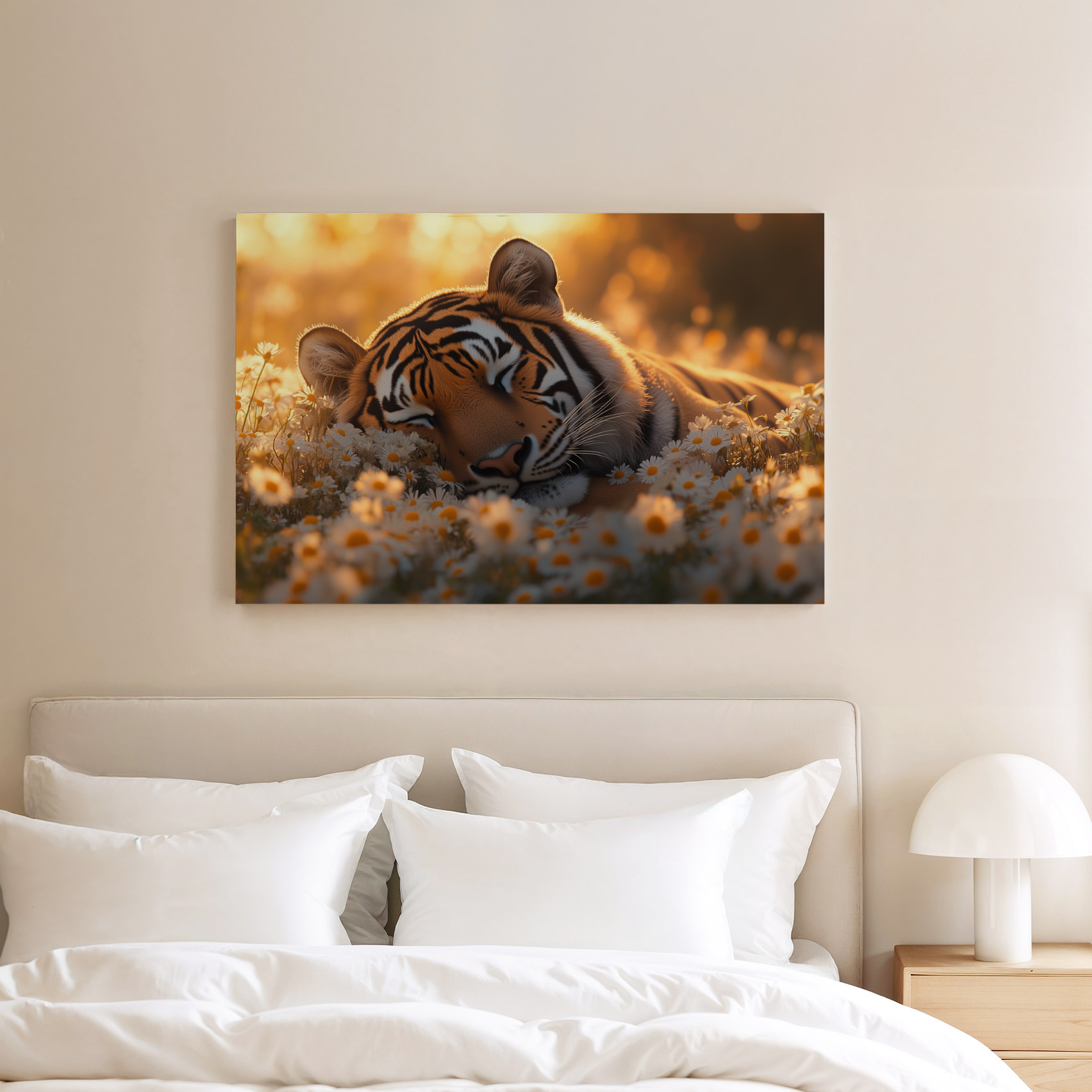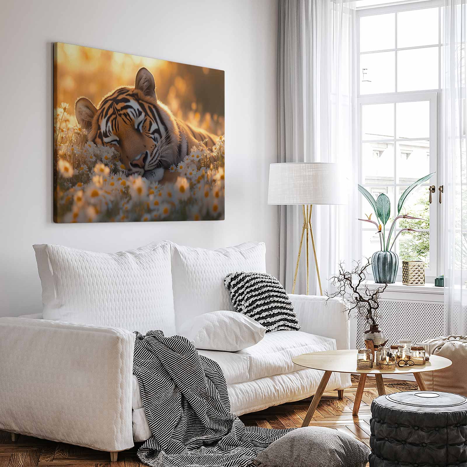 Rustige tijger tussen bloemen