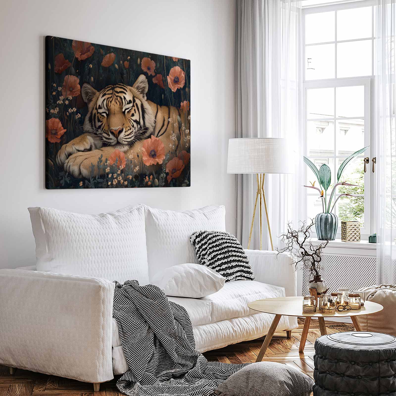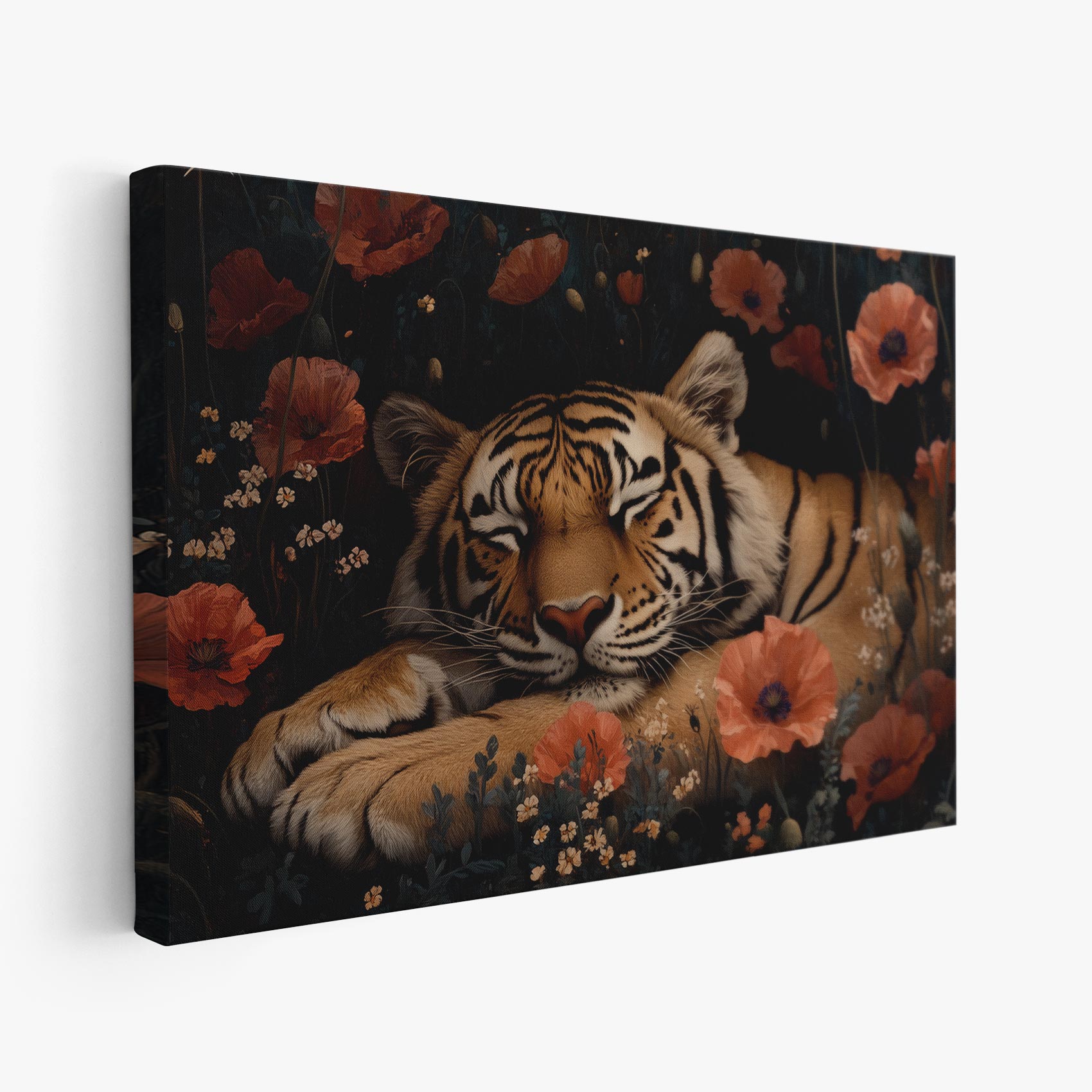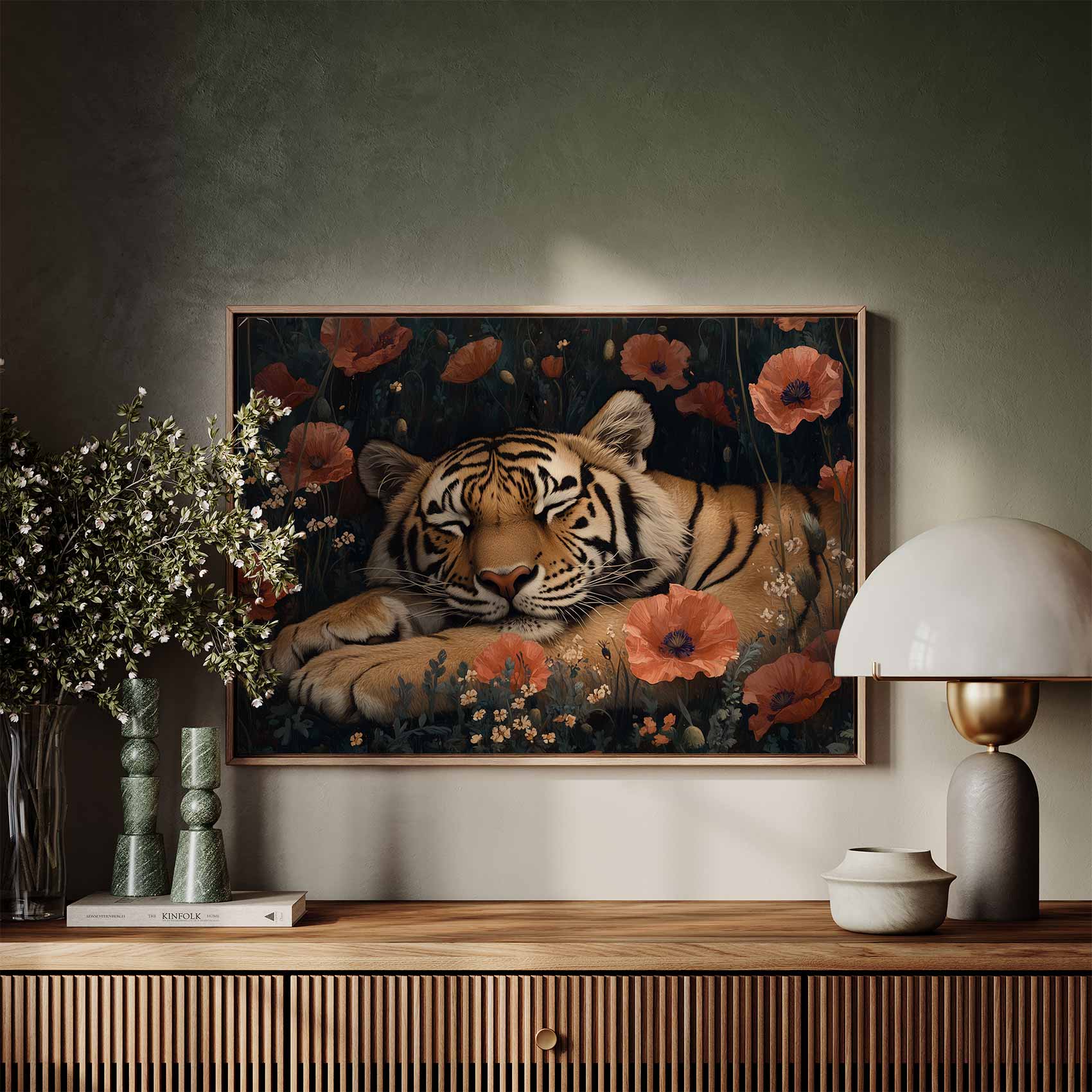 Rustige tijger tussen bloemen