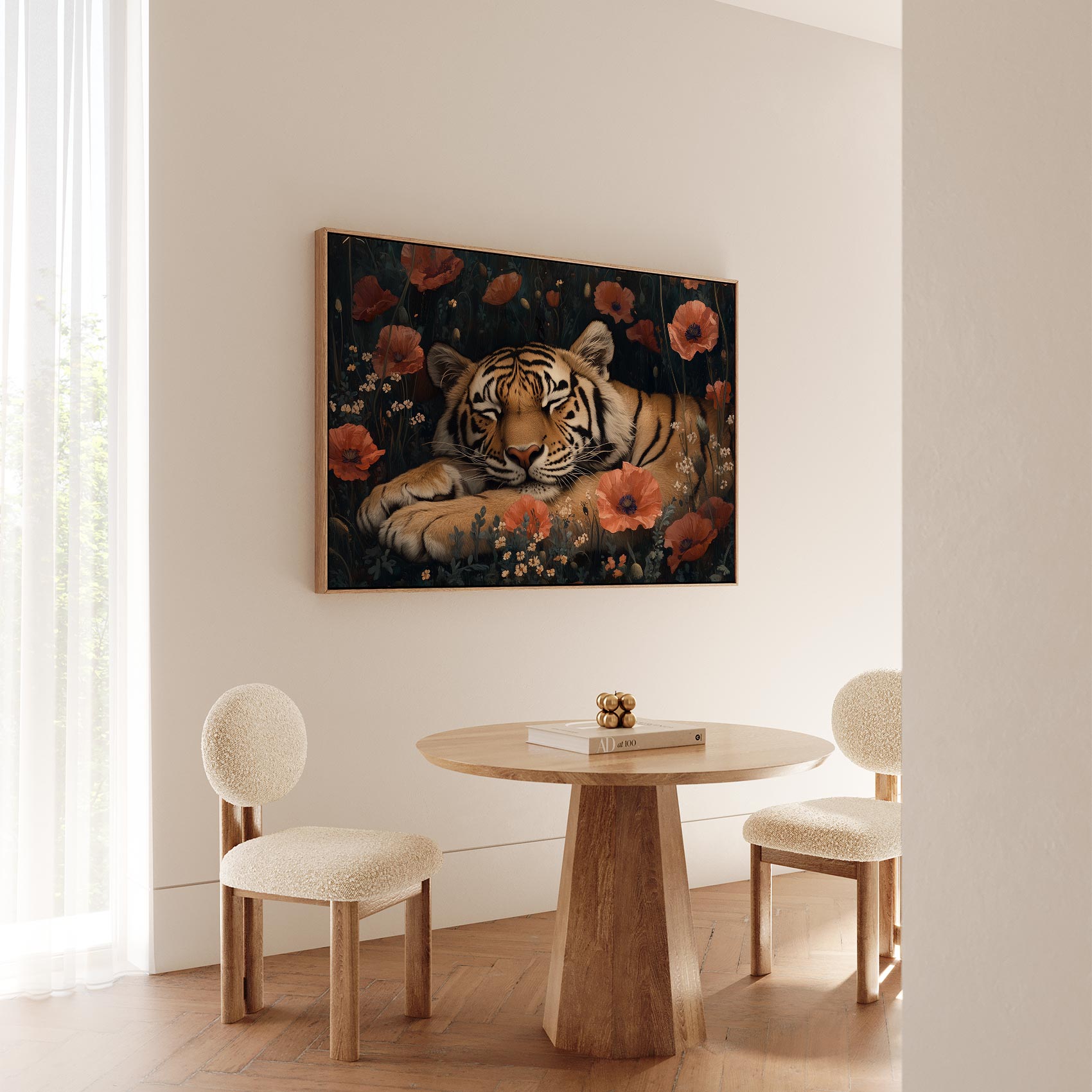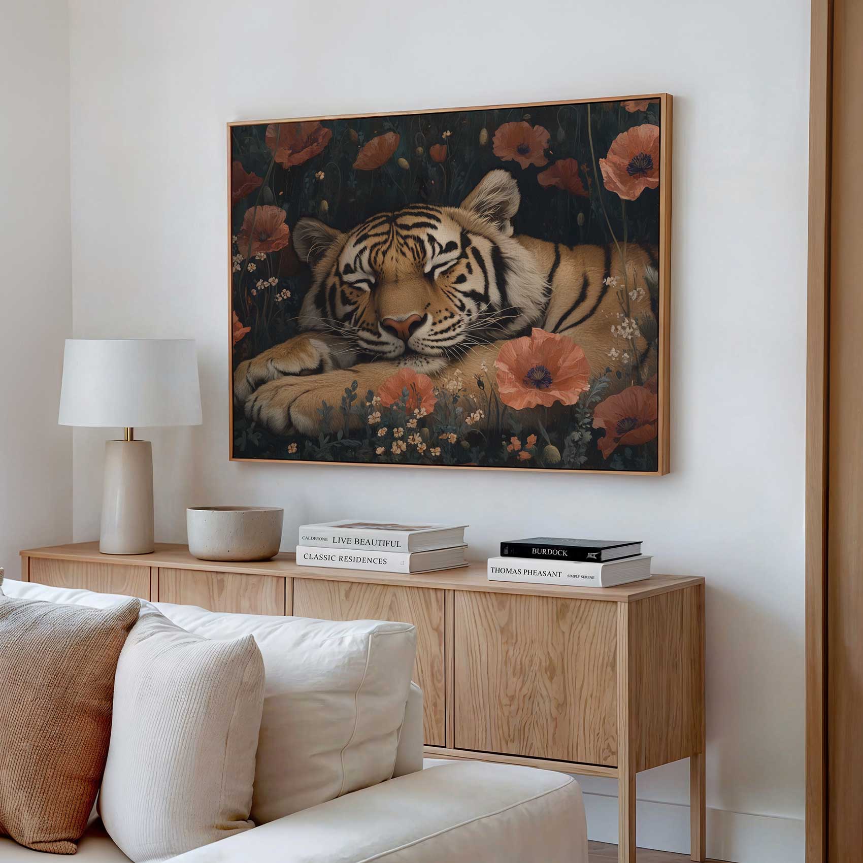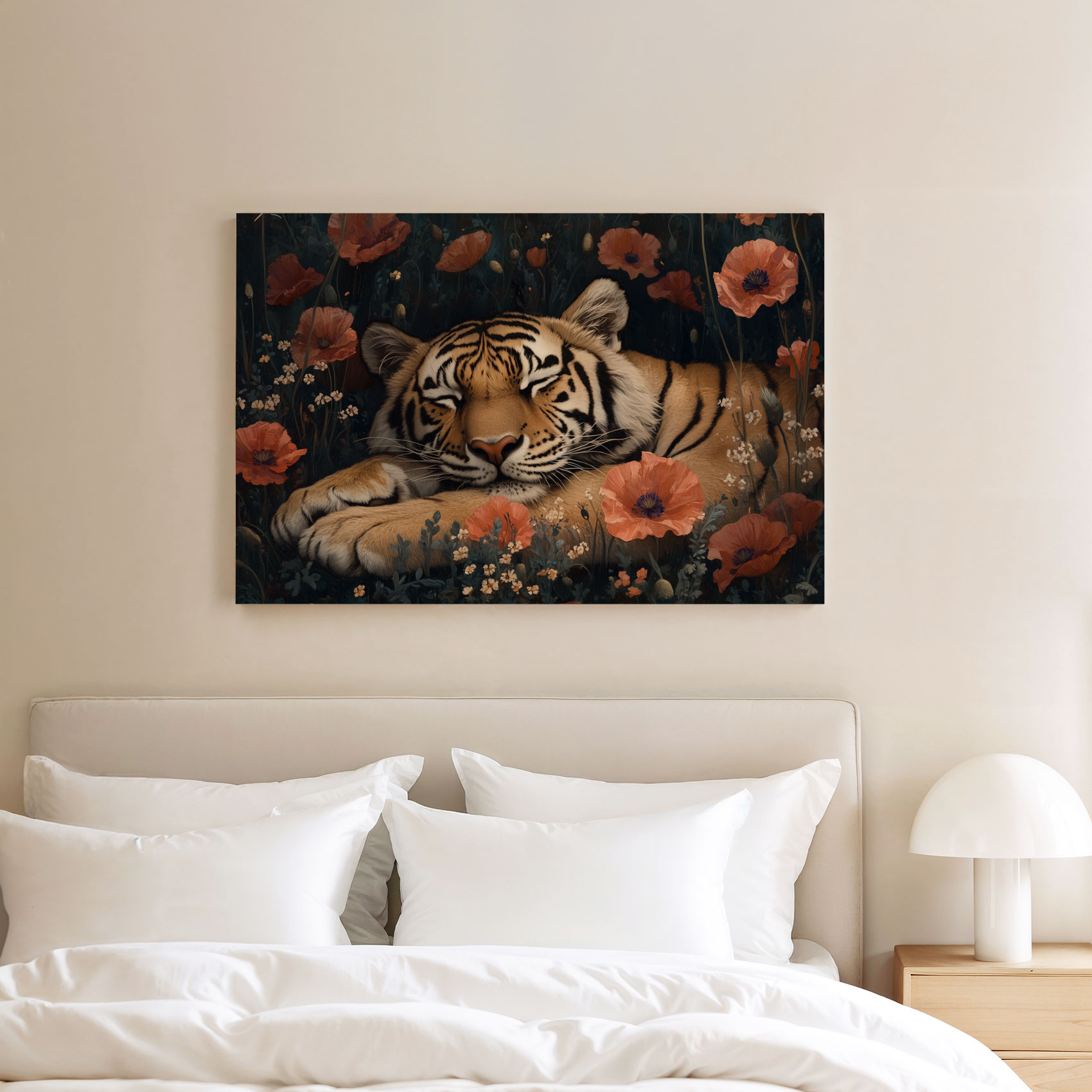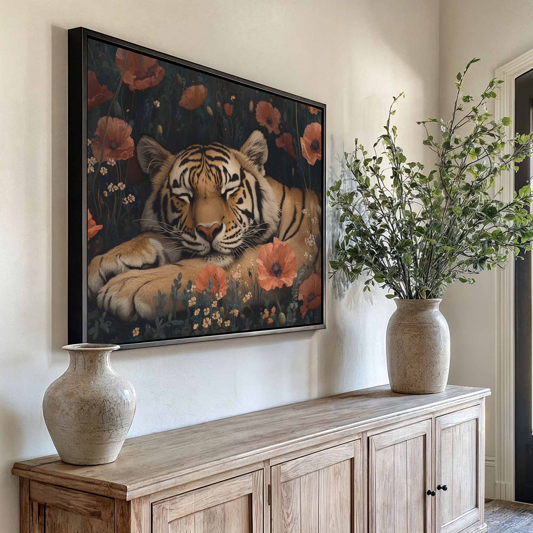 Rustige tijger tussen bloemen