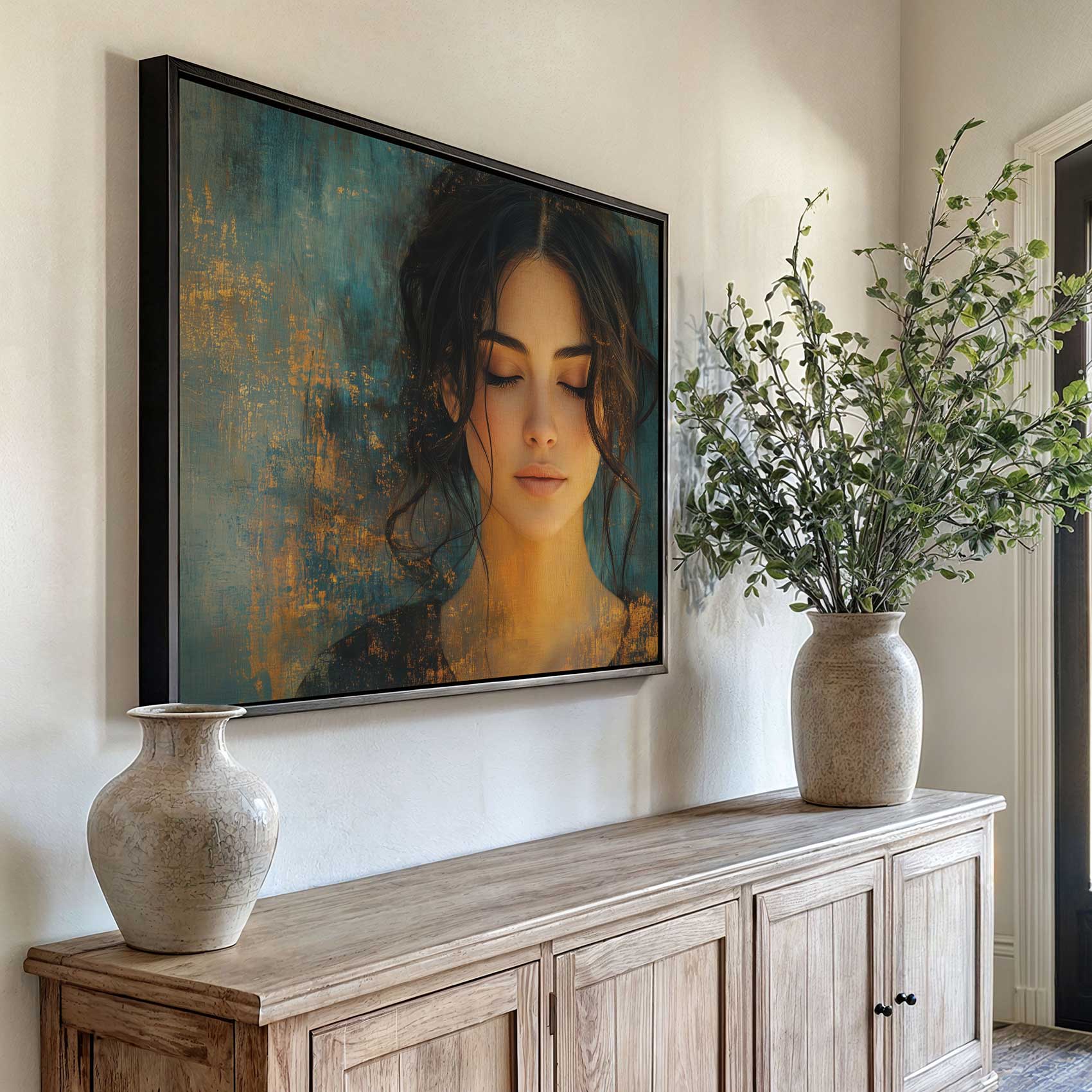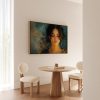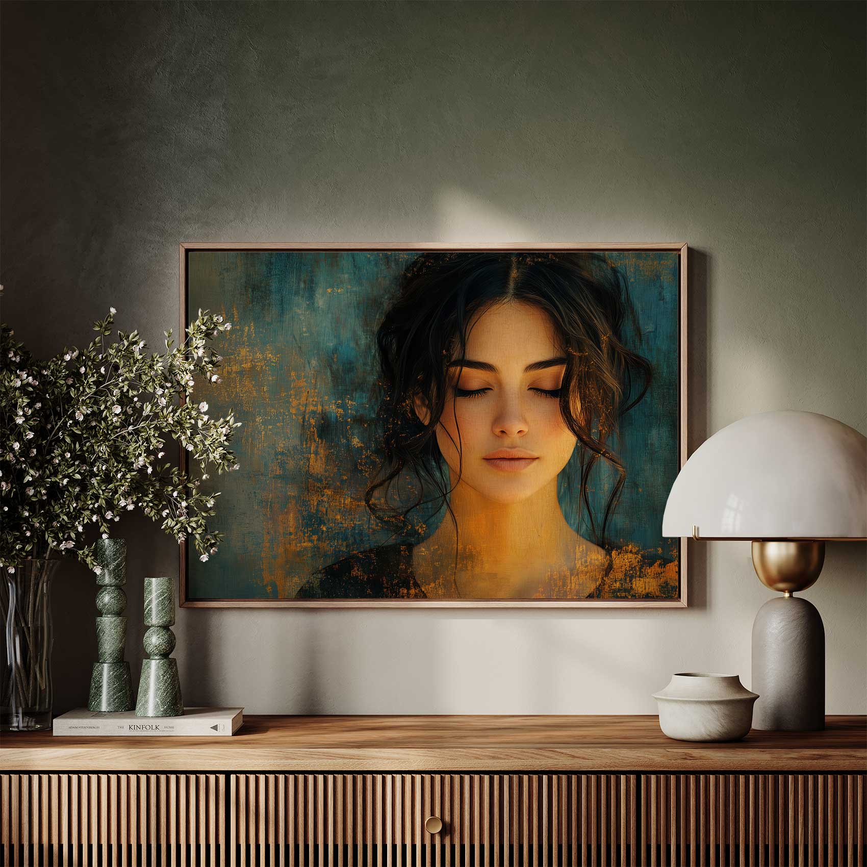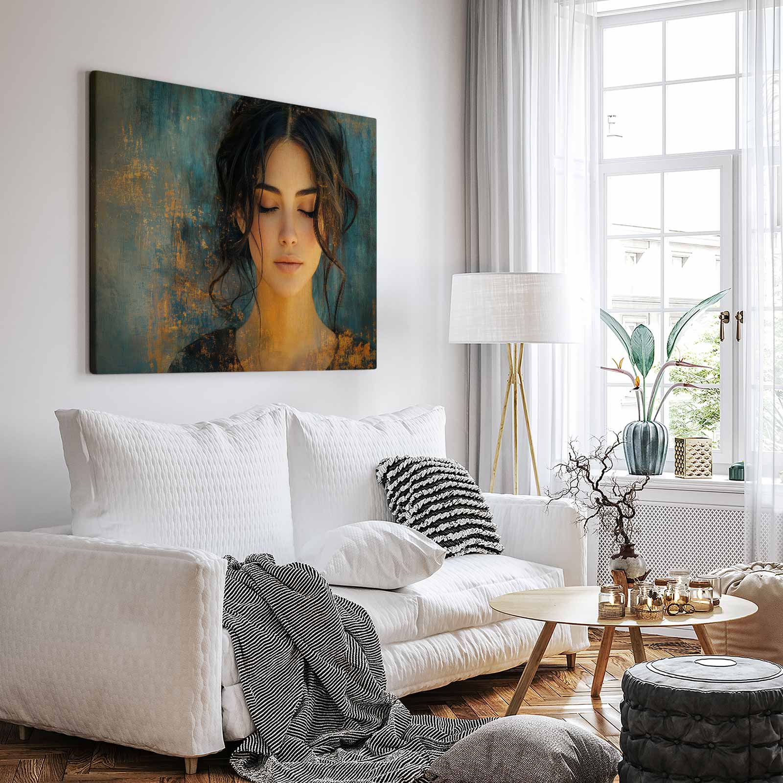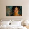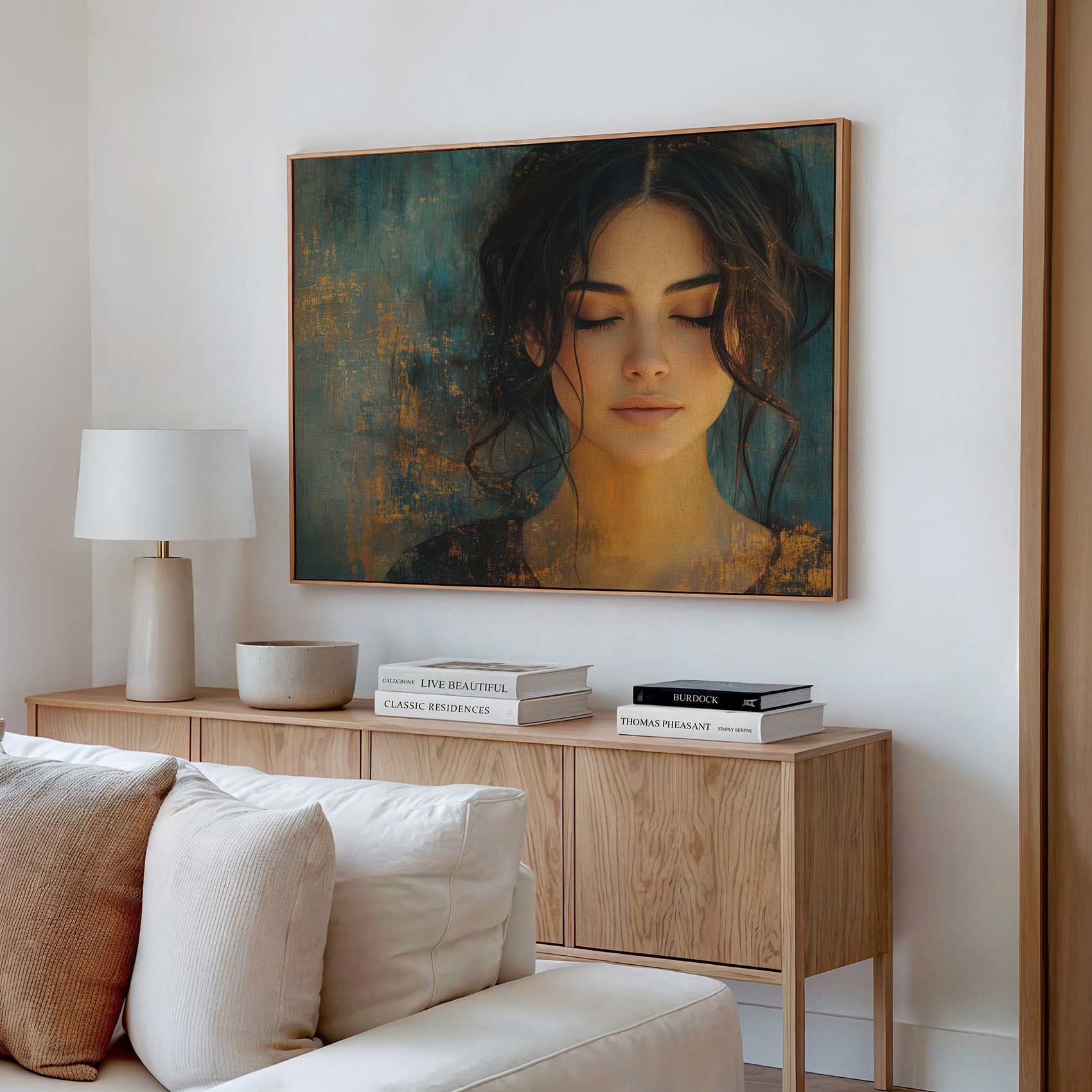 Rustige vrouw met blauwe achtergrond