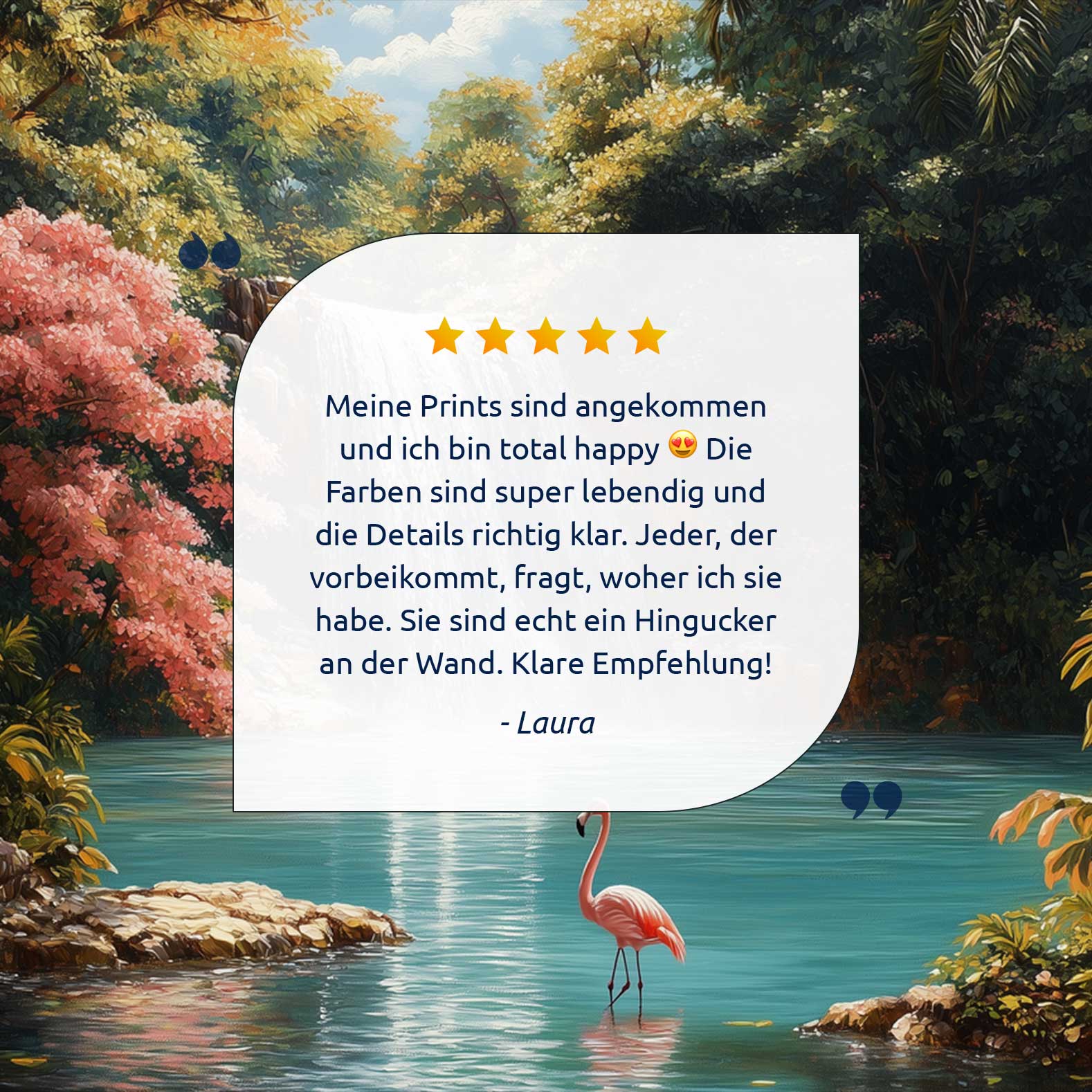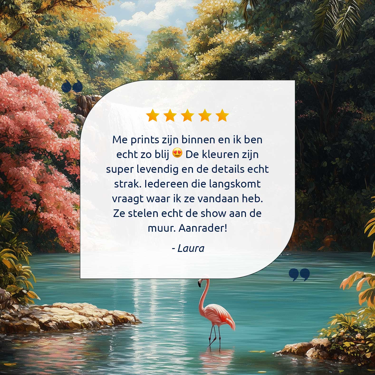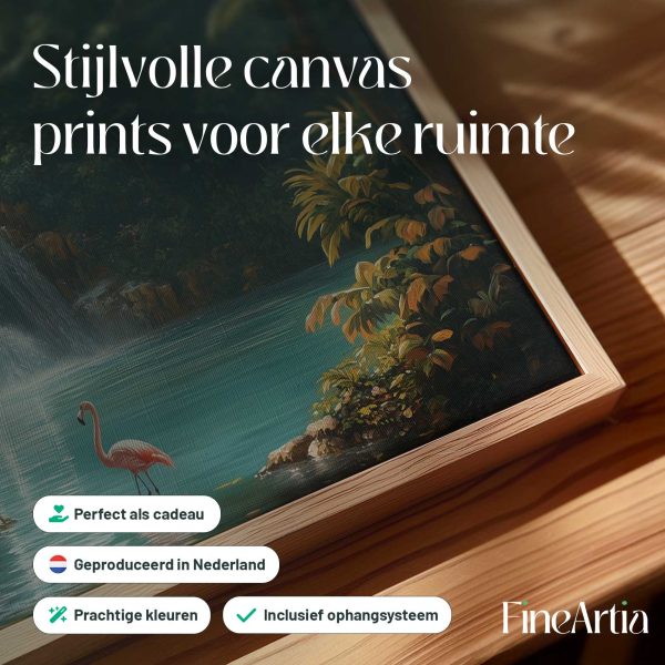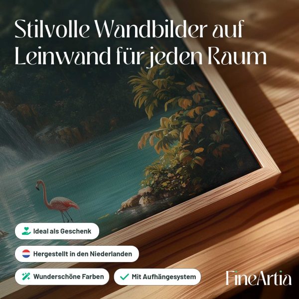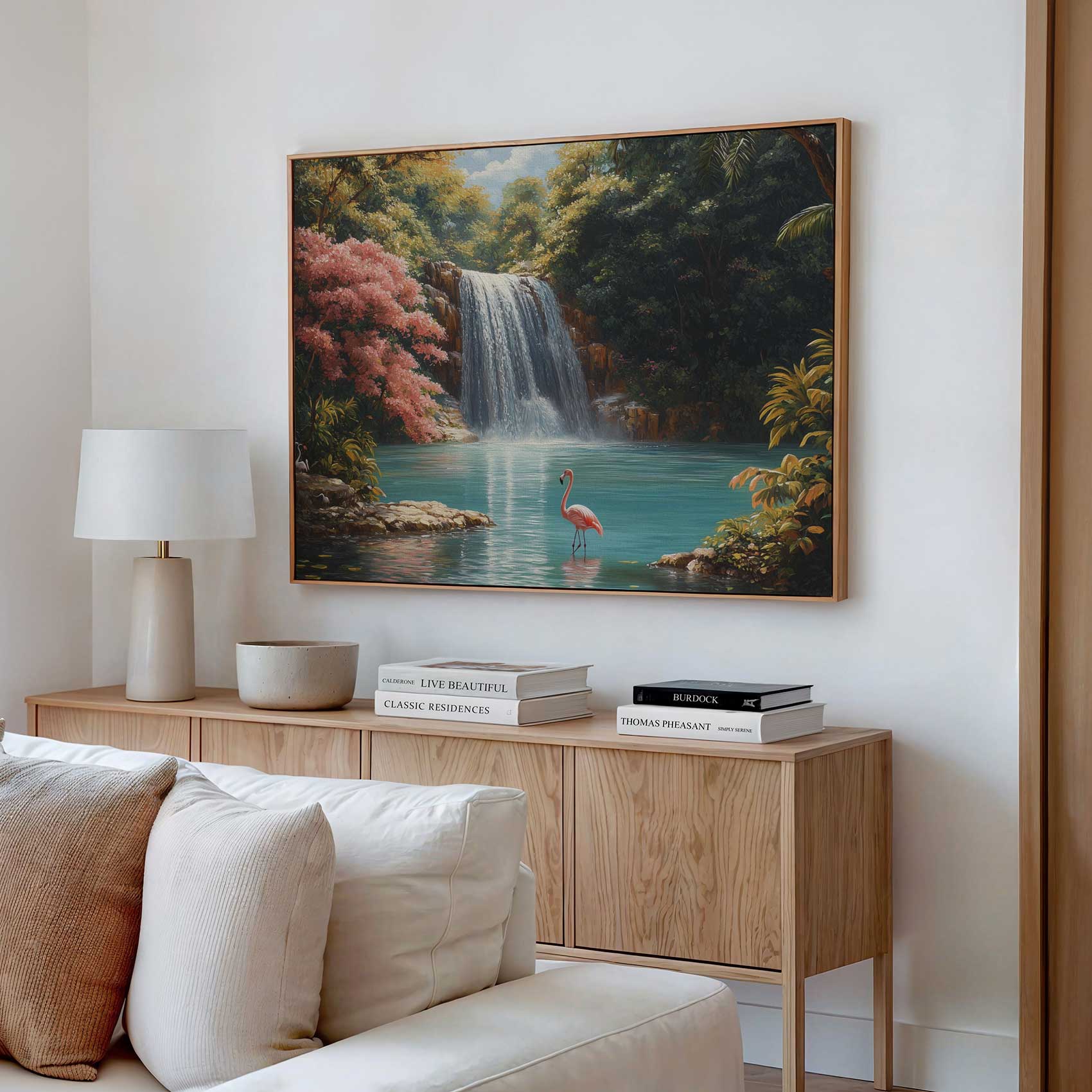 Rustige waterval met flamingo