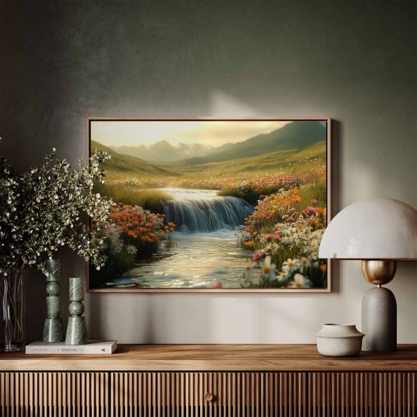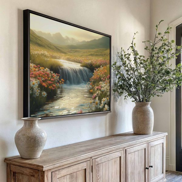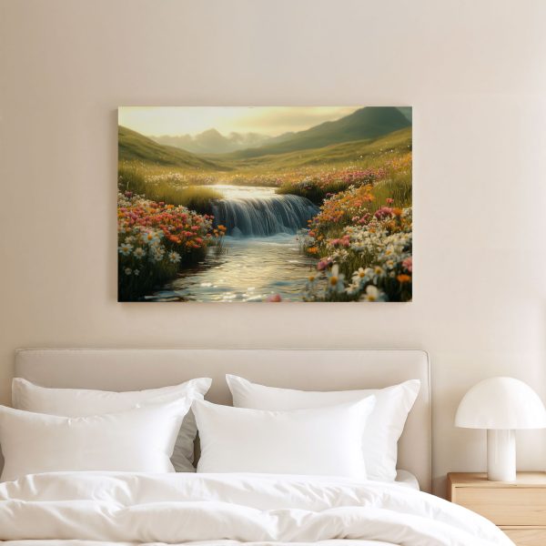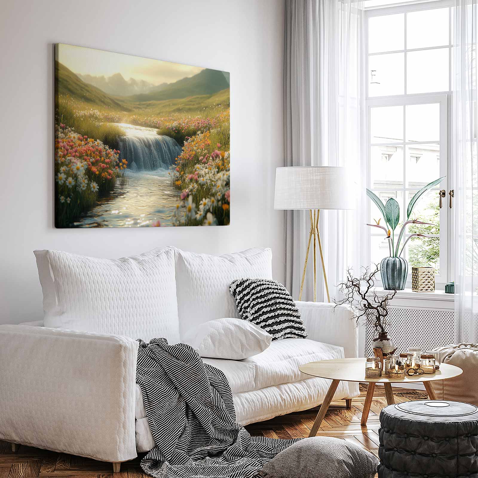 Terug naar collectie Canvas Rustige waterval tussen bloemen