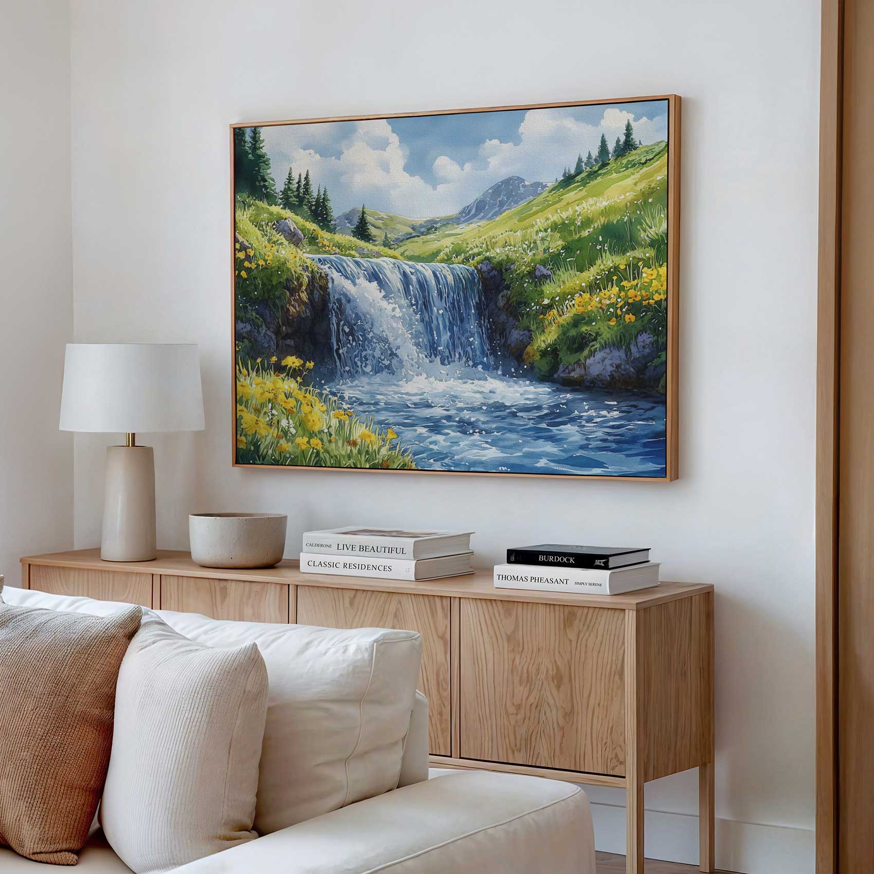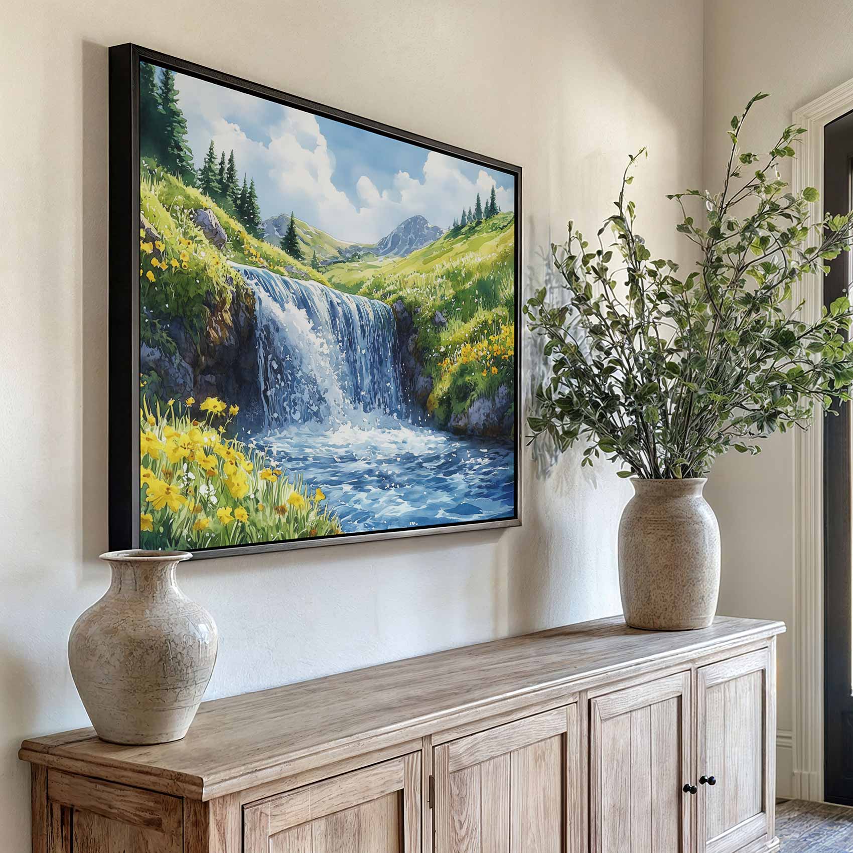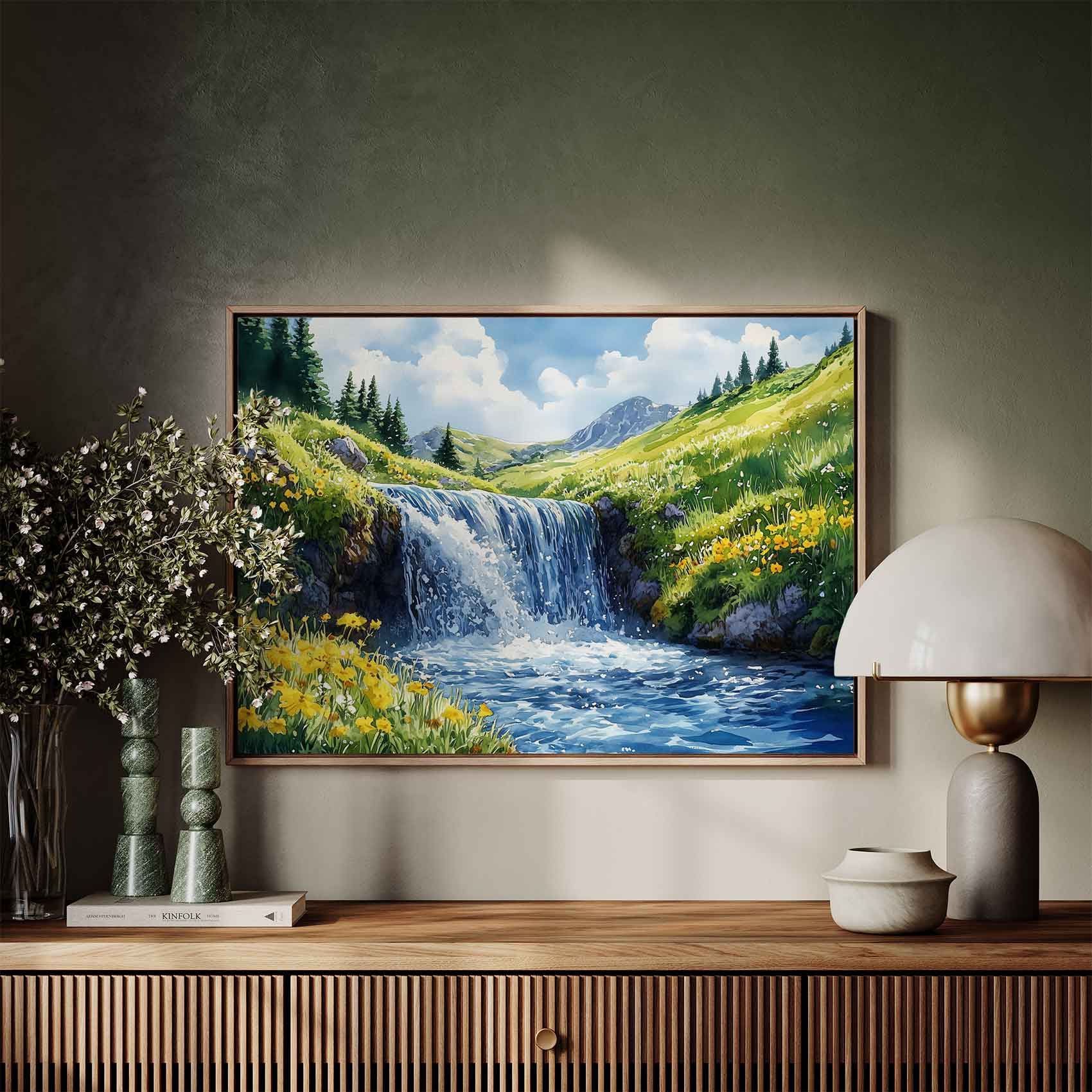 Terug naar collectie Canvas Rustige Waterval Waterverfschilderij