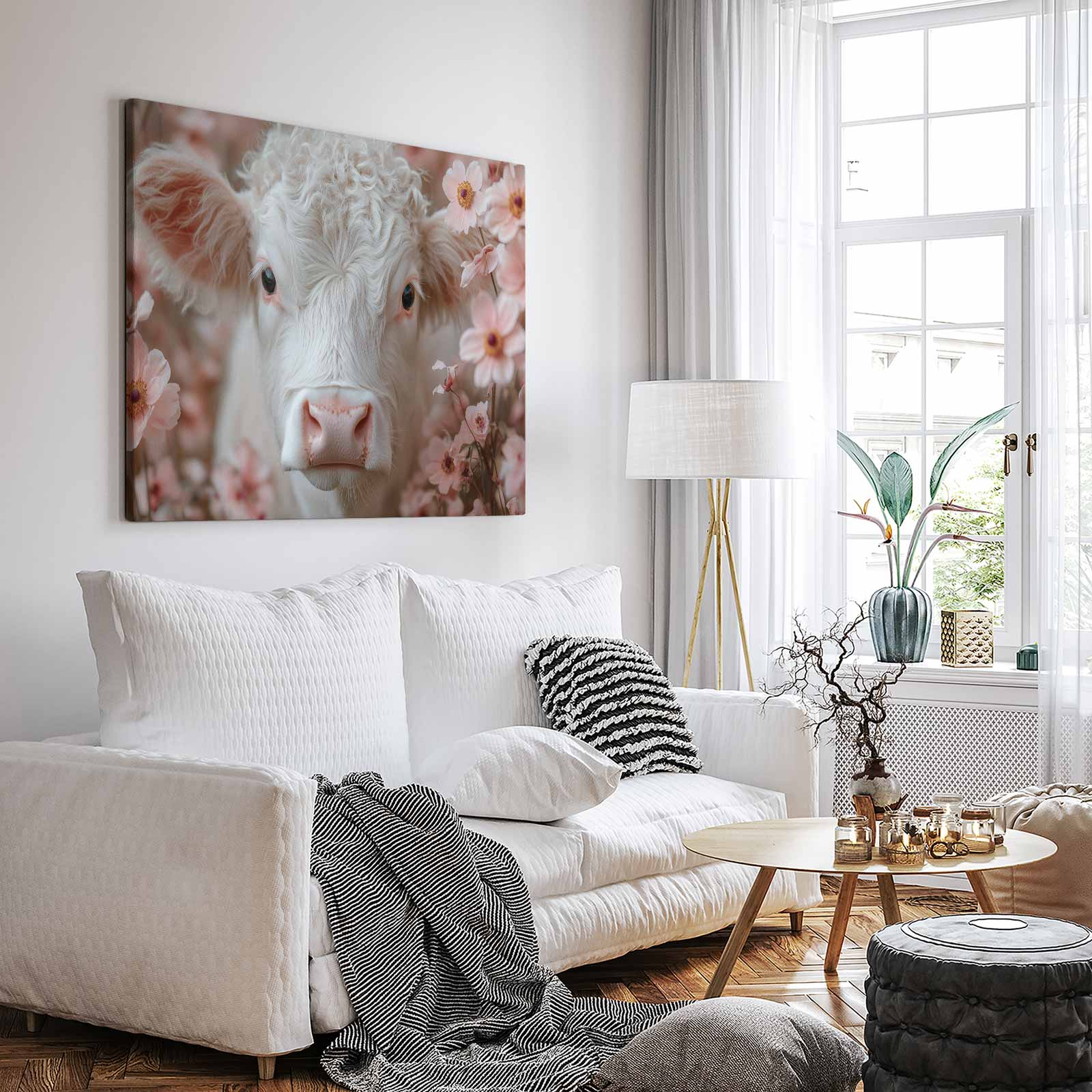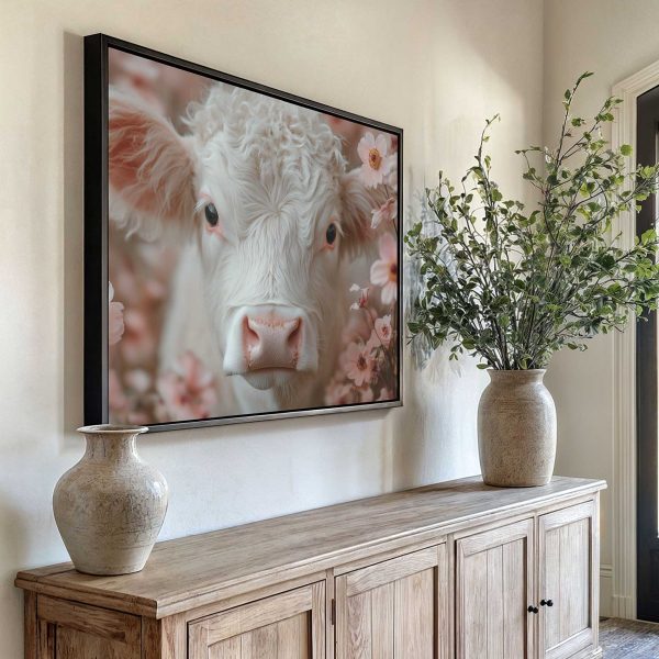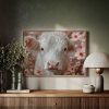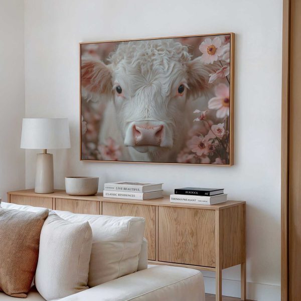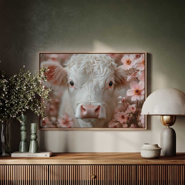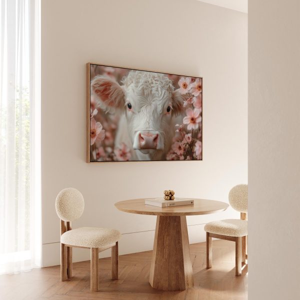 Schattig krulhaarkoe tussen roze bloemen