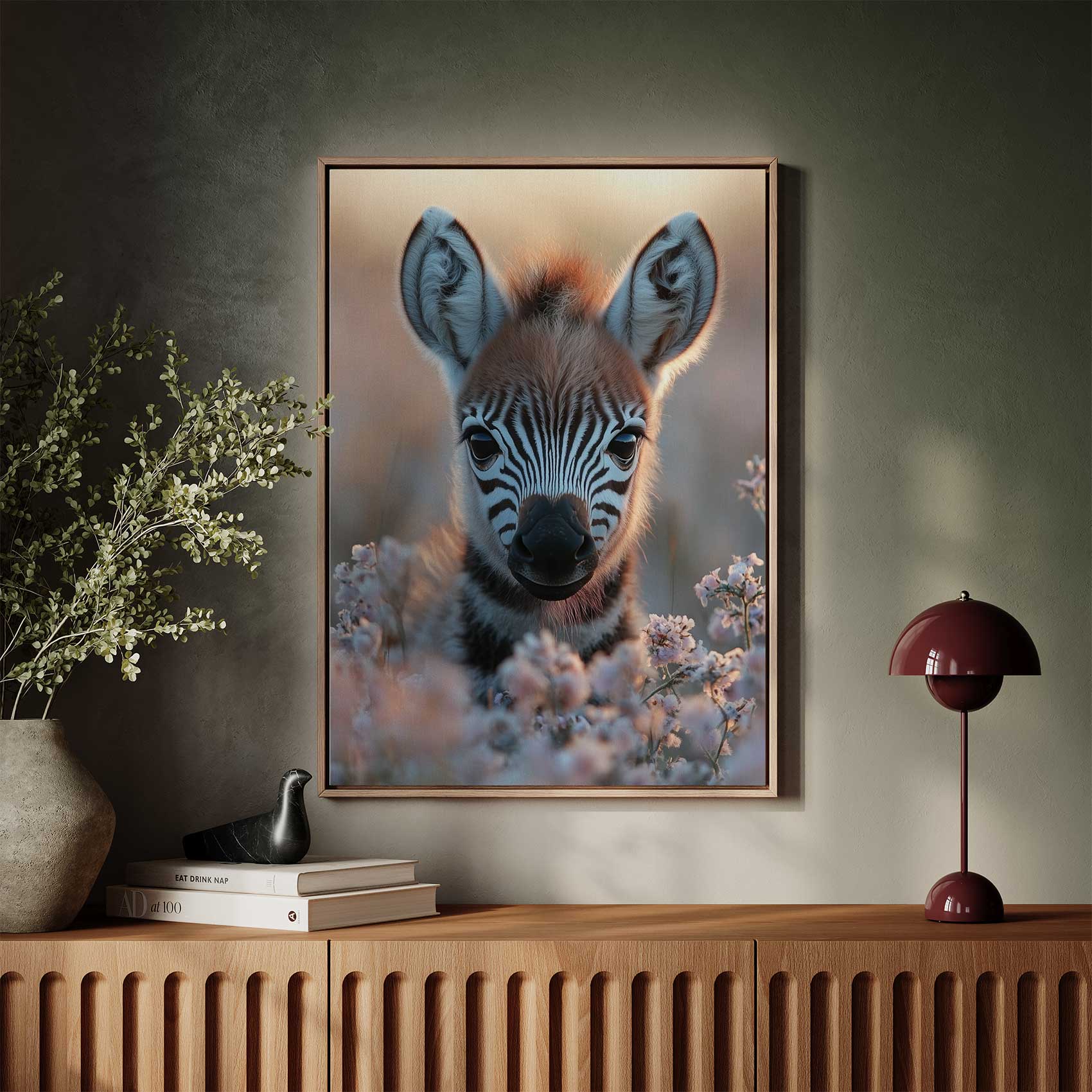 Schattige babyzebra tussen bloemen