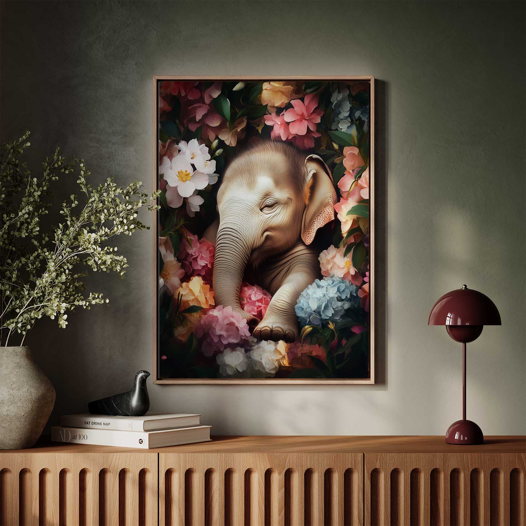 Schattige olifant in bloemenzee