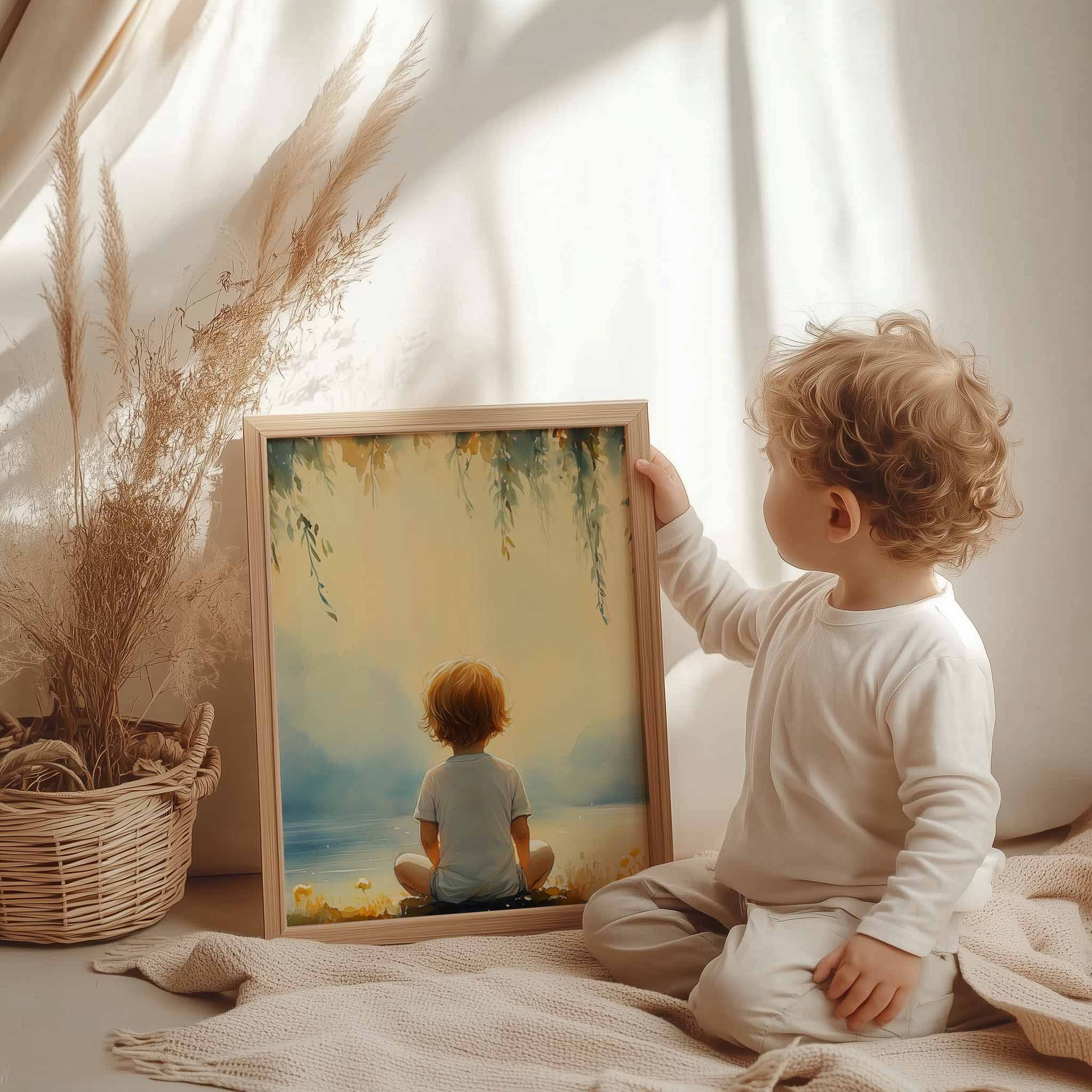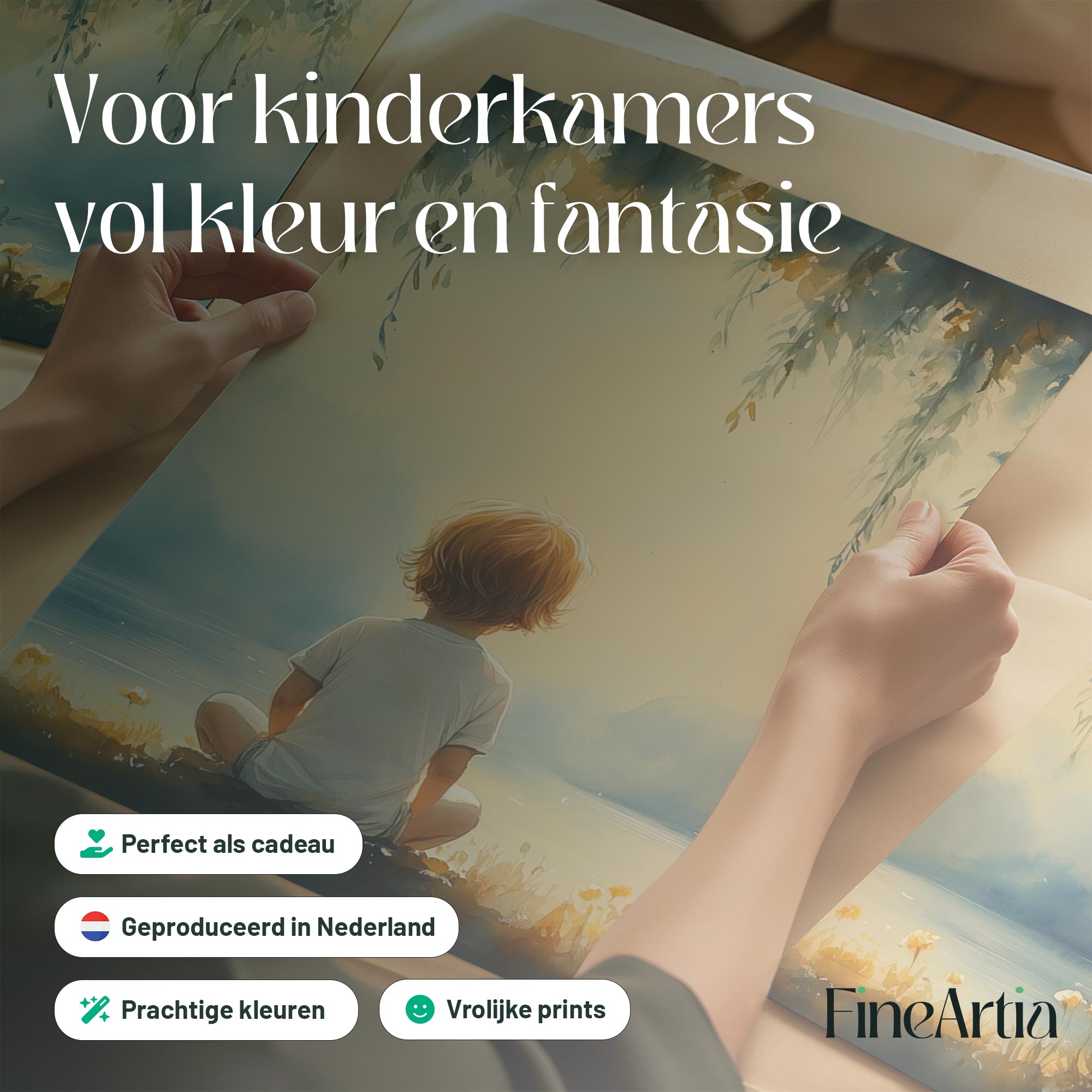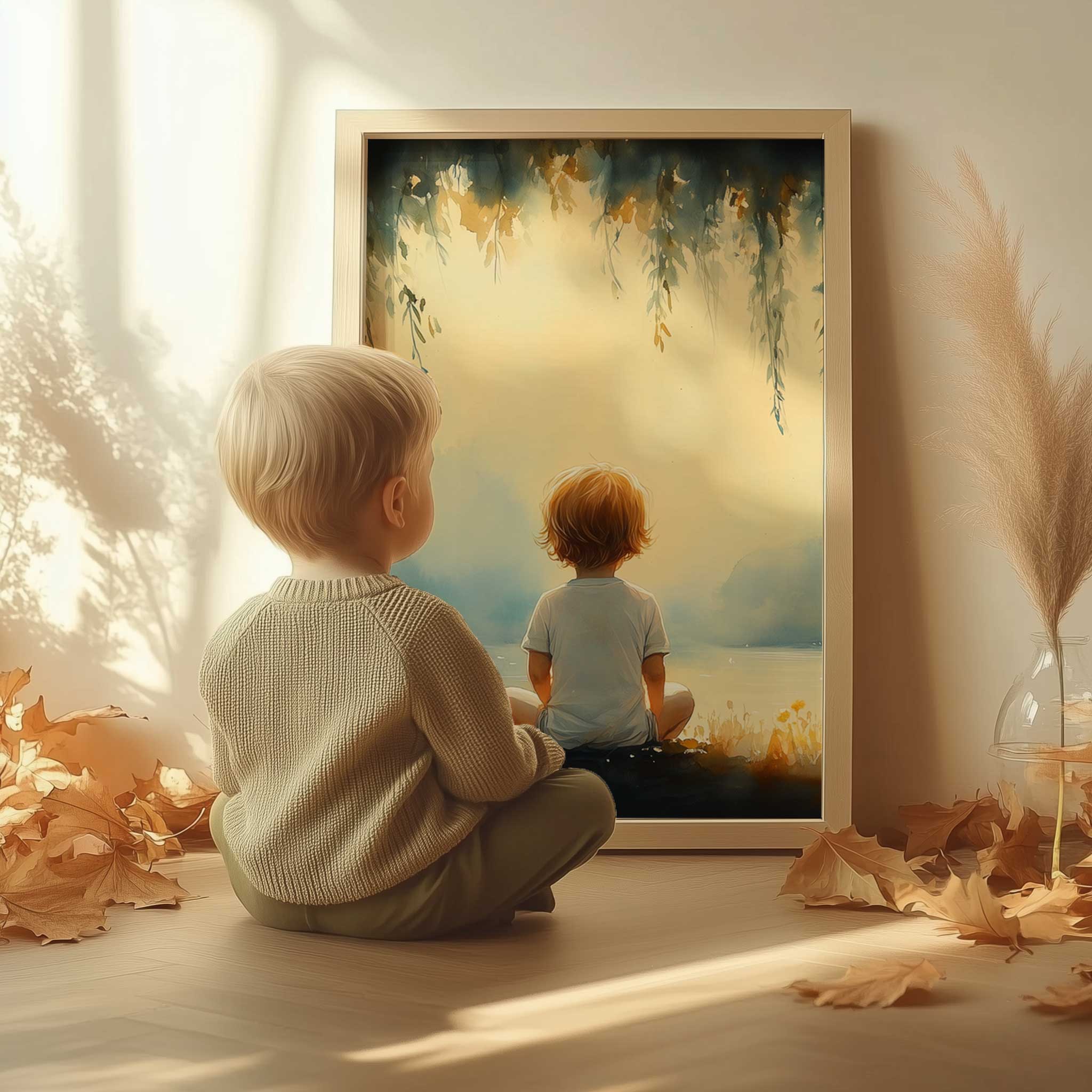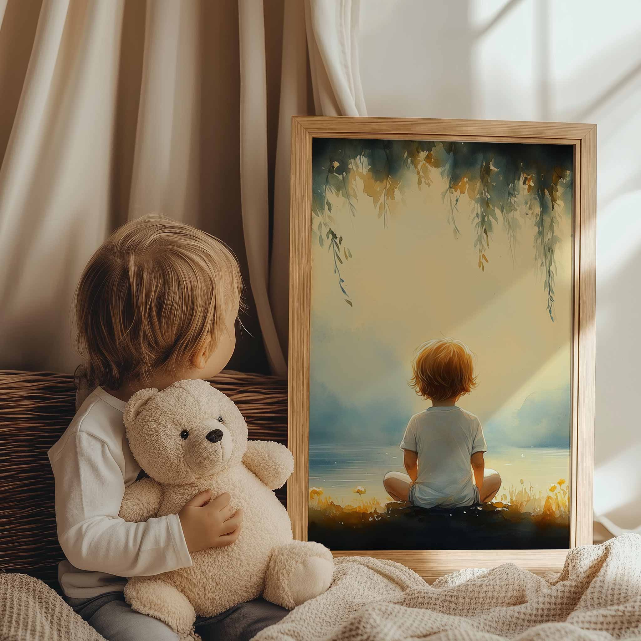 Serene Kind bij het Water – Tranquilliteit in Blauw en Groen