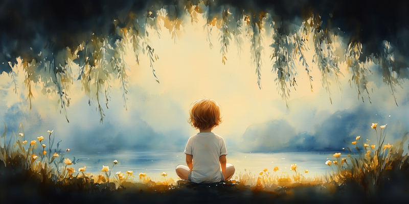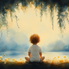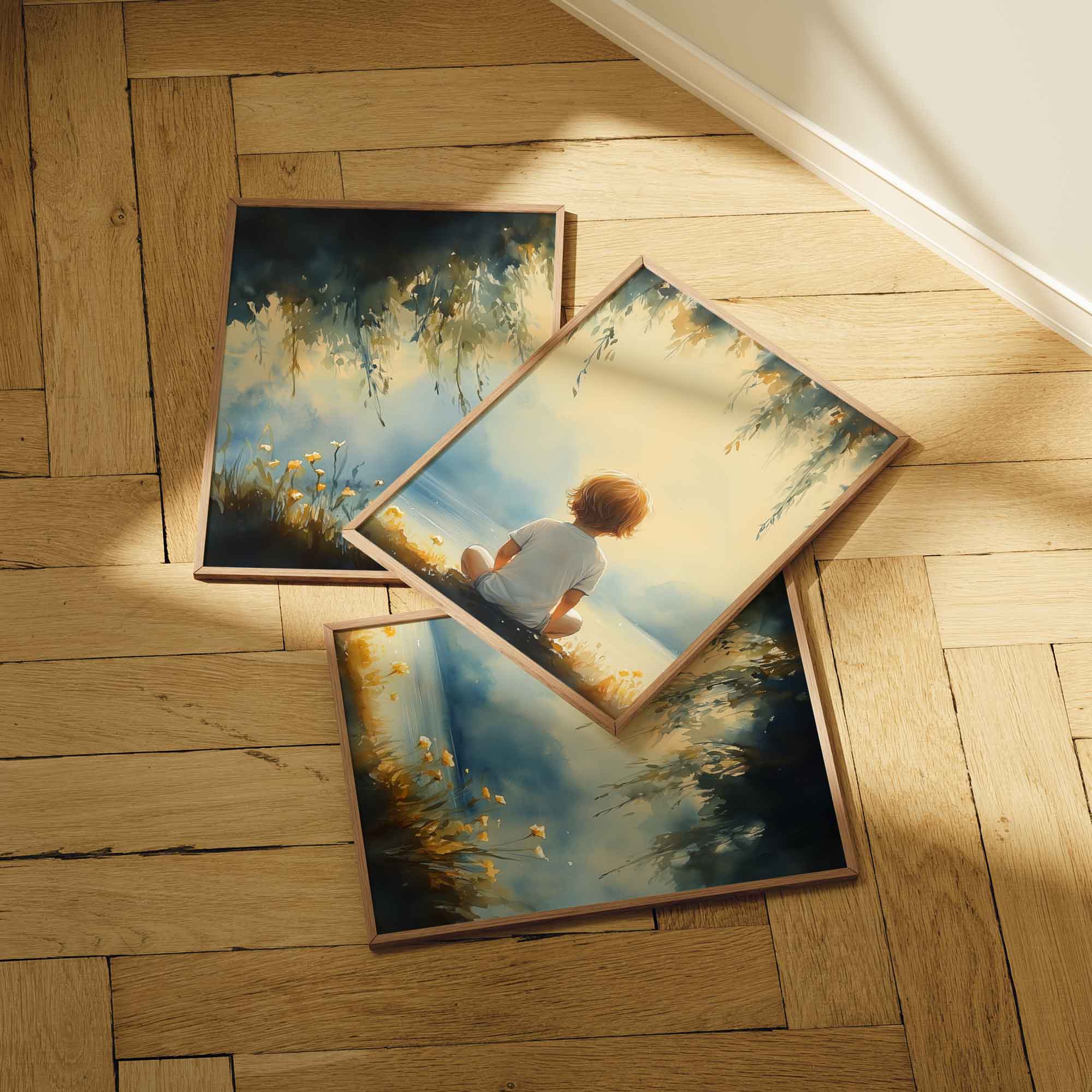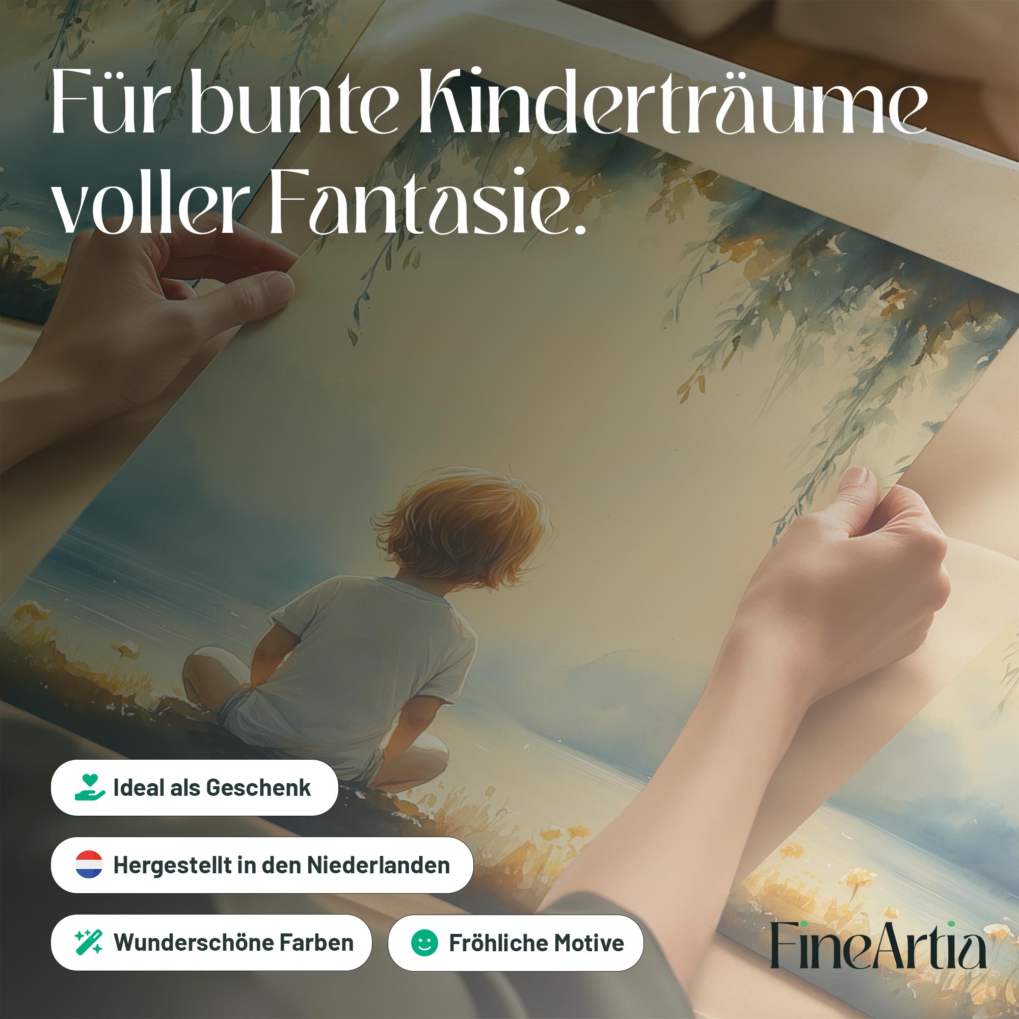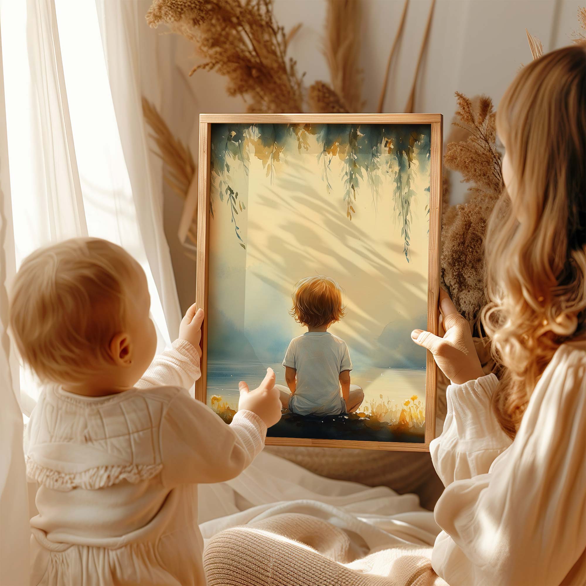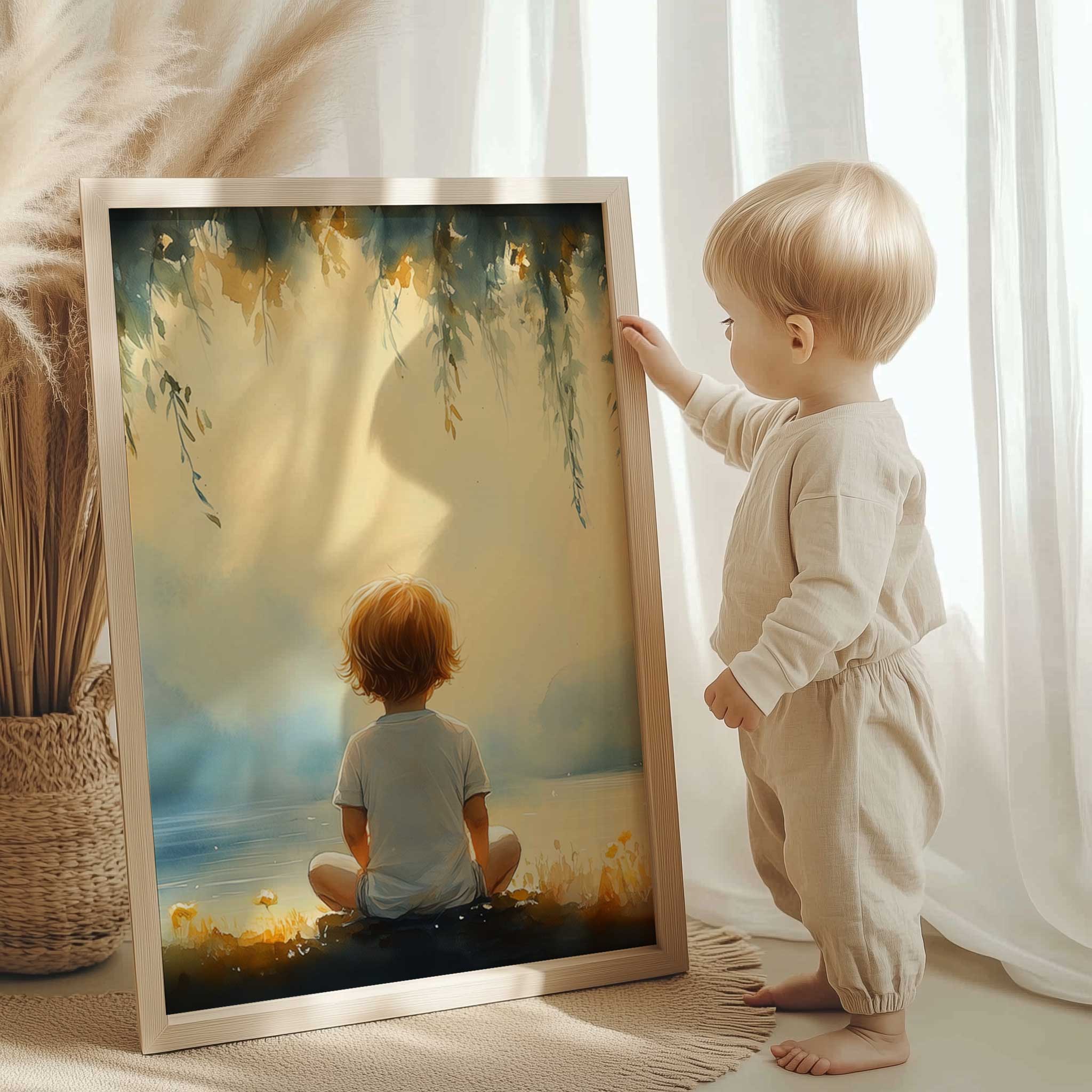 Serene Kind bij het Water – Tranquilliteit in Blauw en Groen