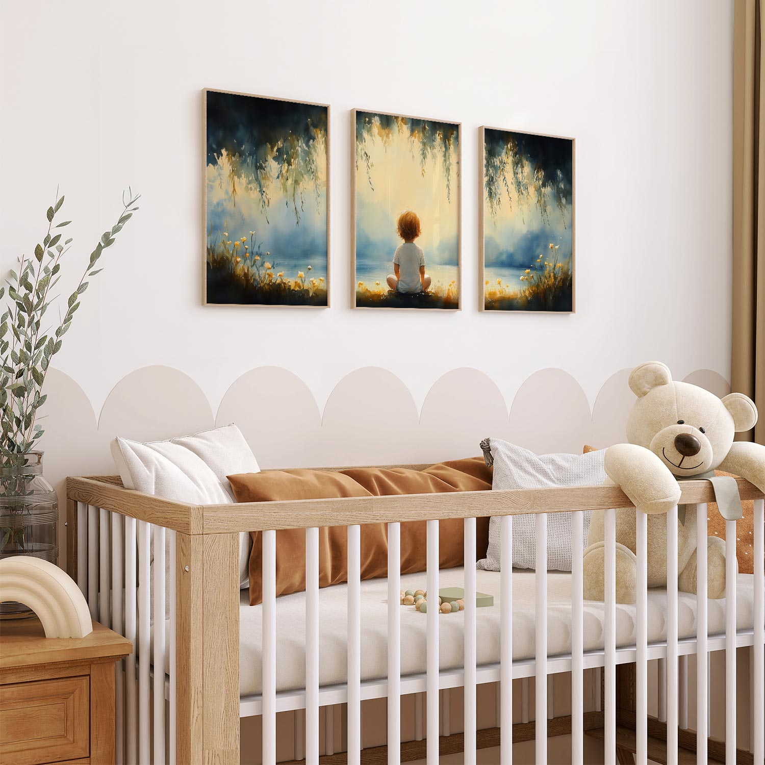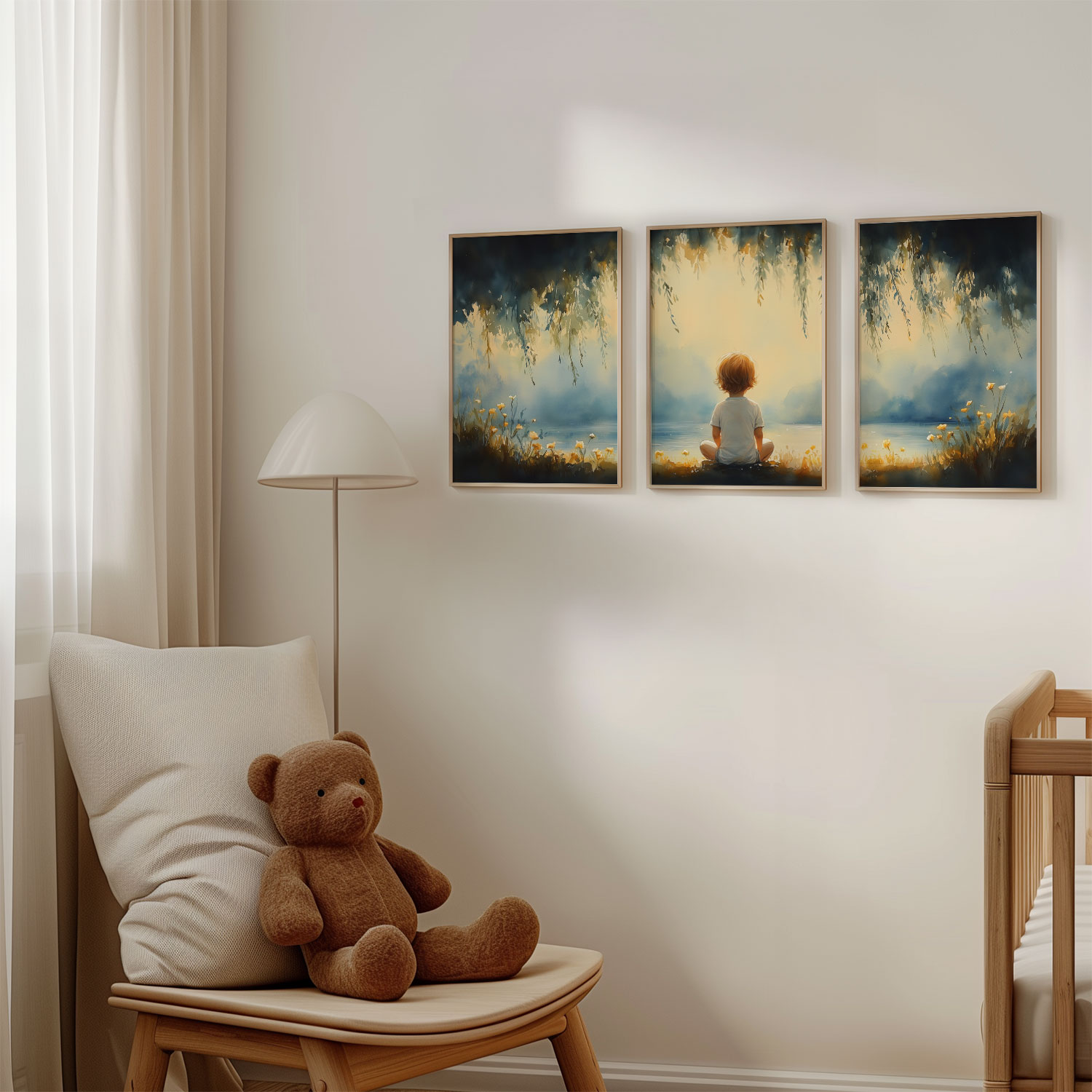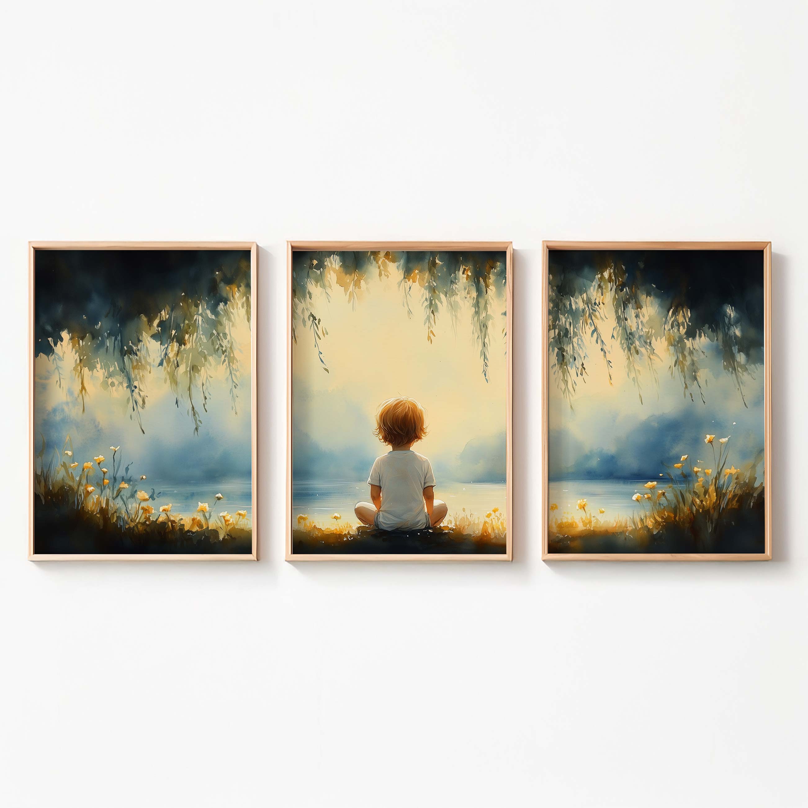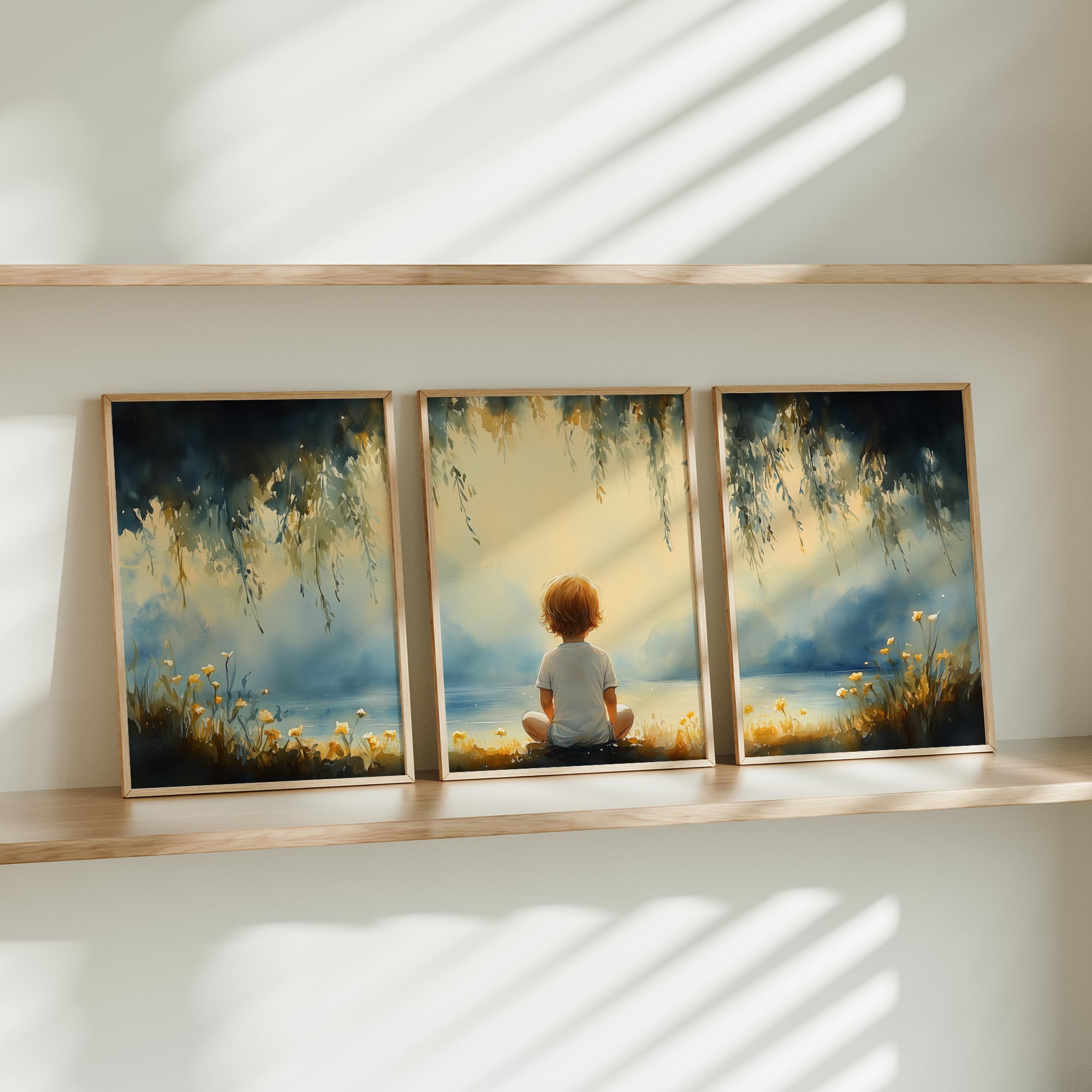 Serene Kind bij het Water – Tranquilliteit in Blauw en Groen