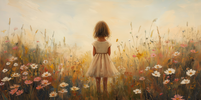 Terug naar collectie Posters Serene Meisje in Bloeiend Bloemenveld