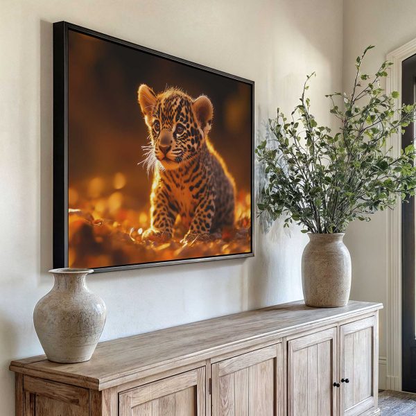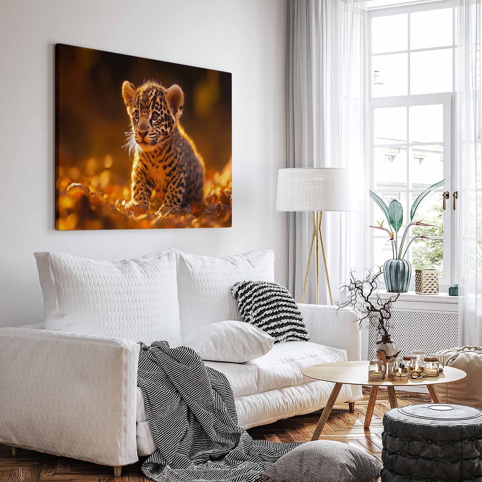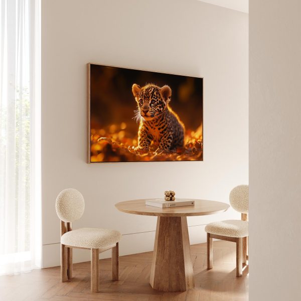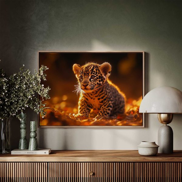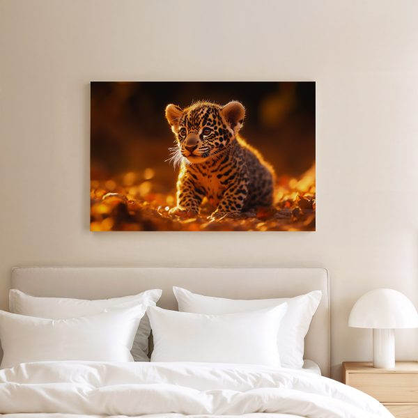 Speels luipaardwelp in herfstbladeren