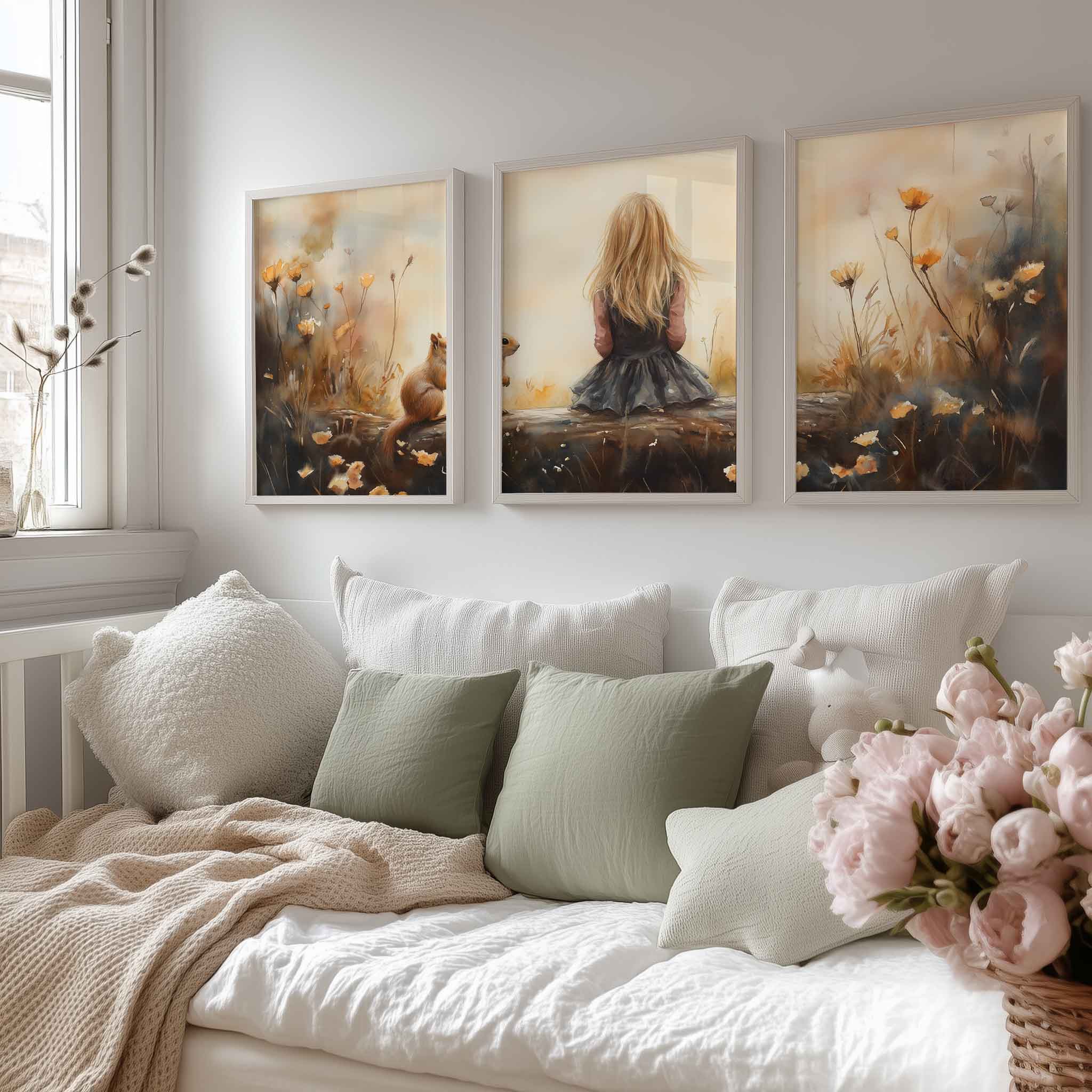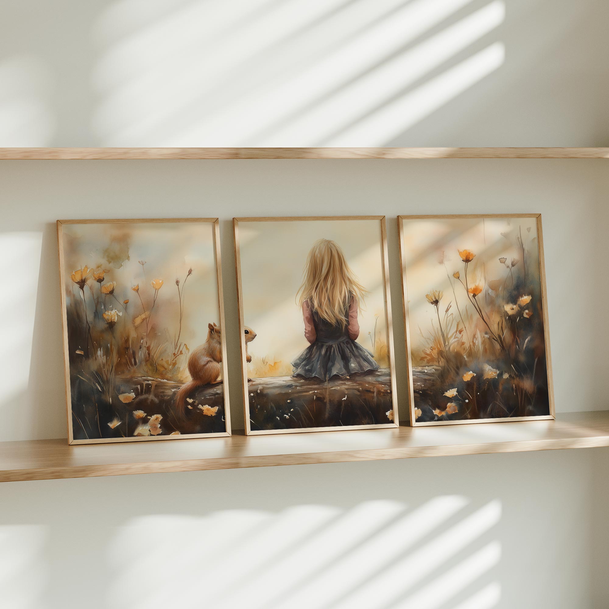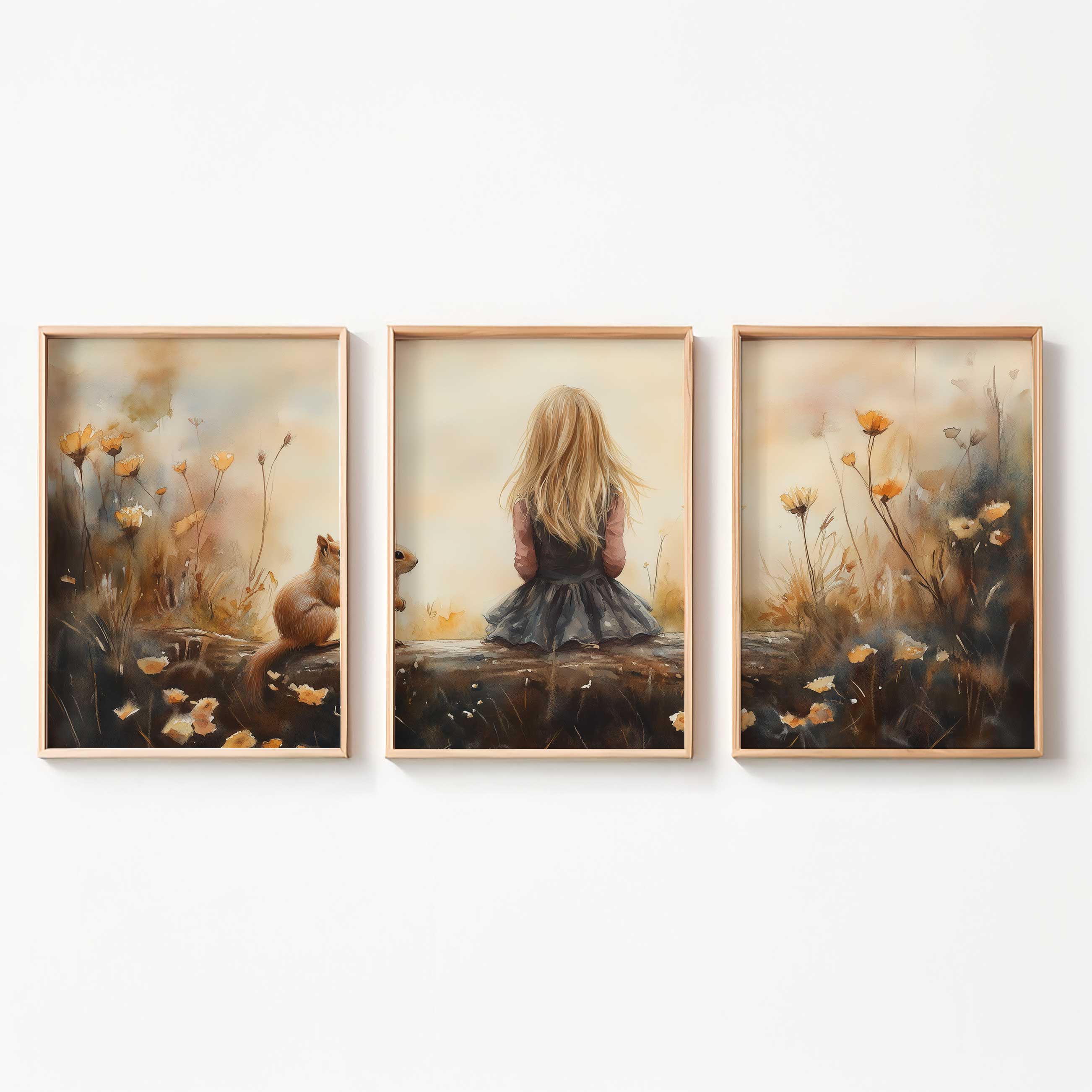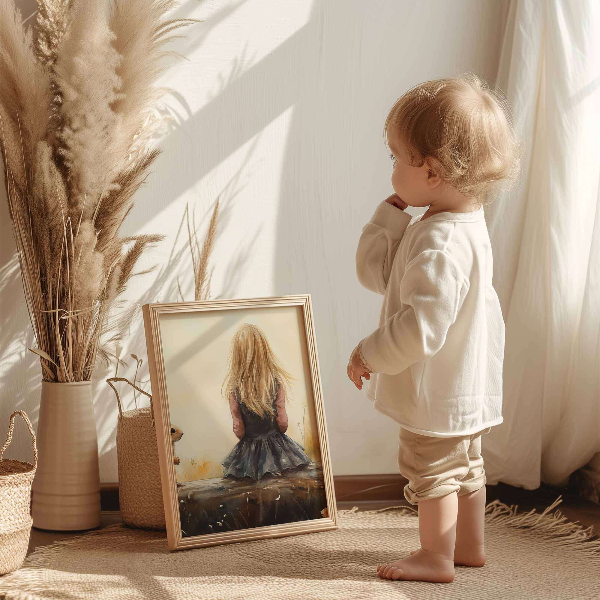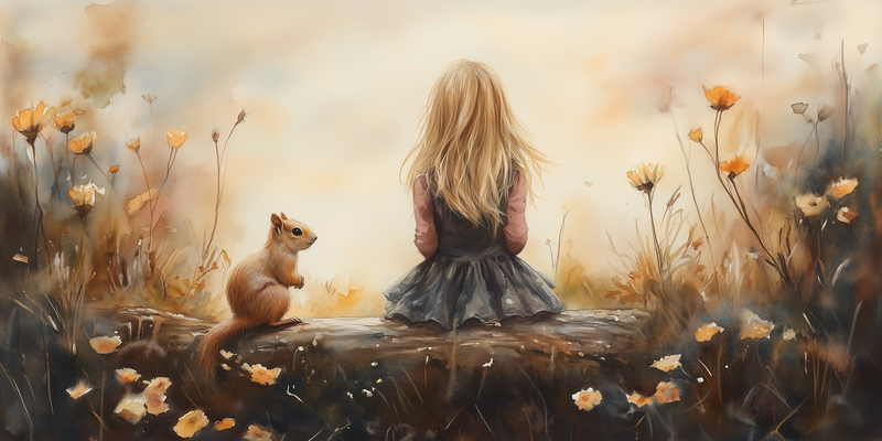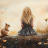 Speels Meisje en Eekhoorn in Bloemenveld