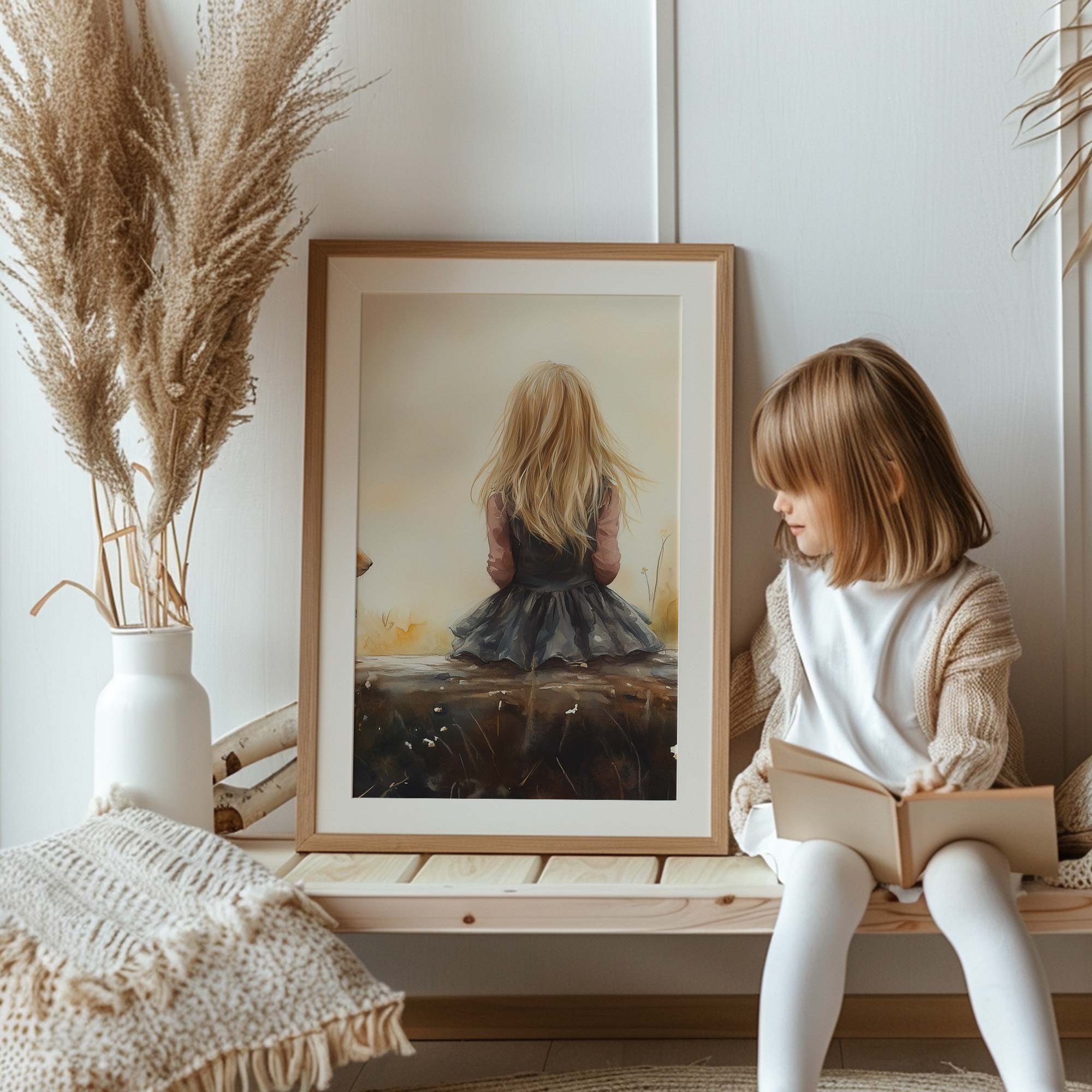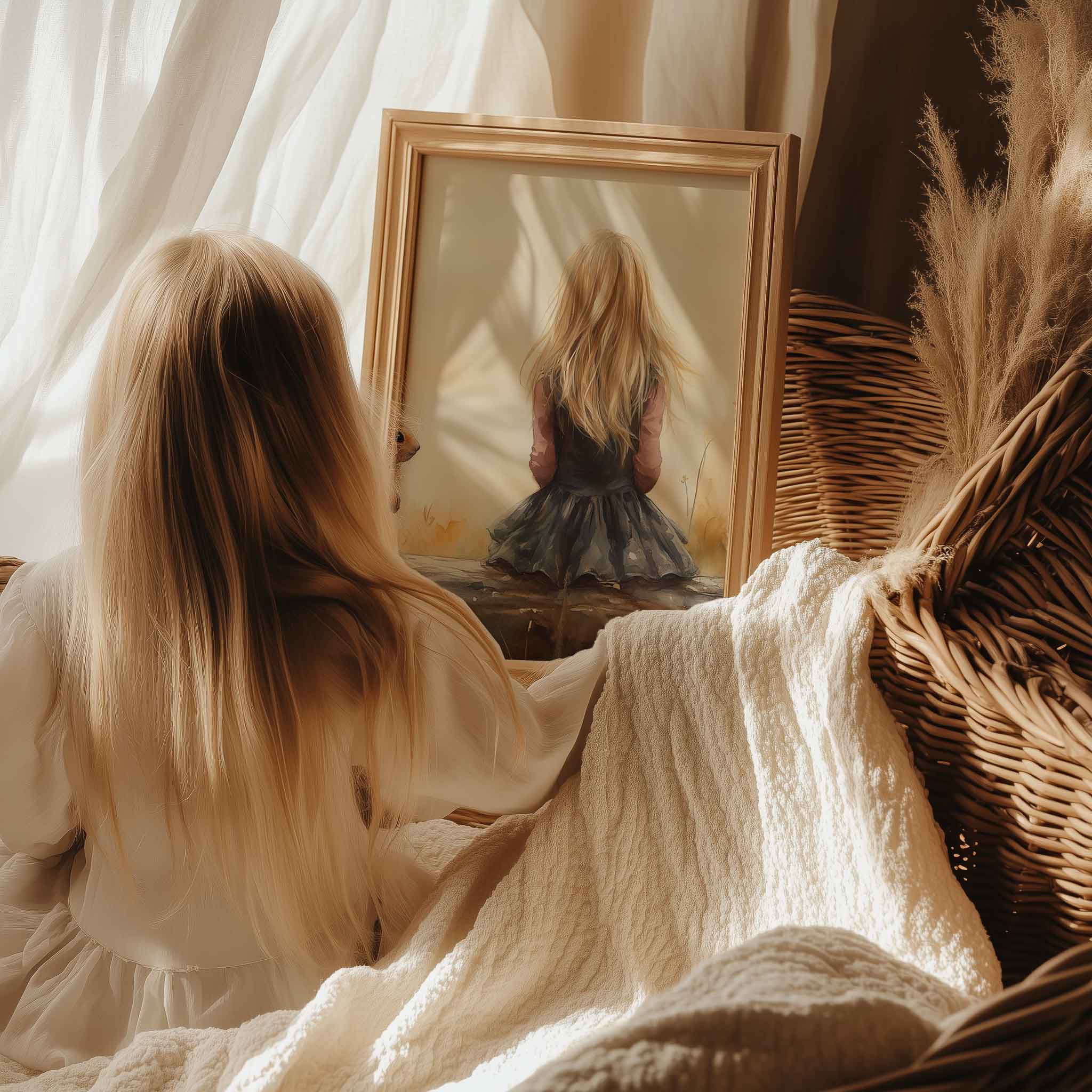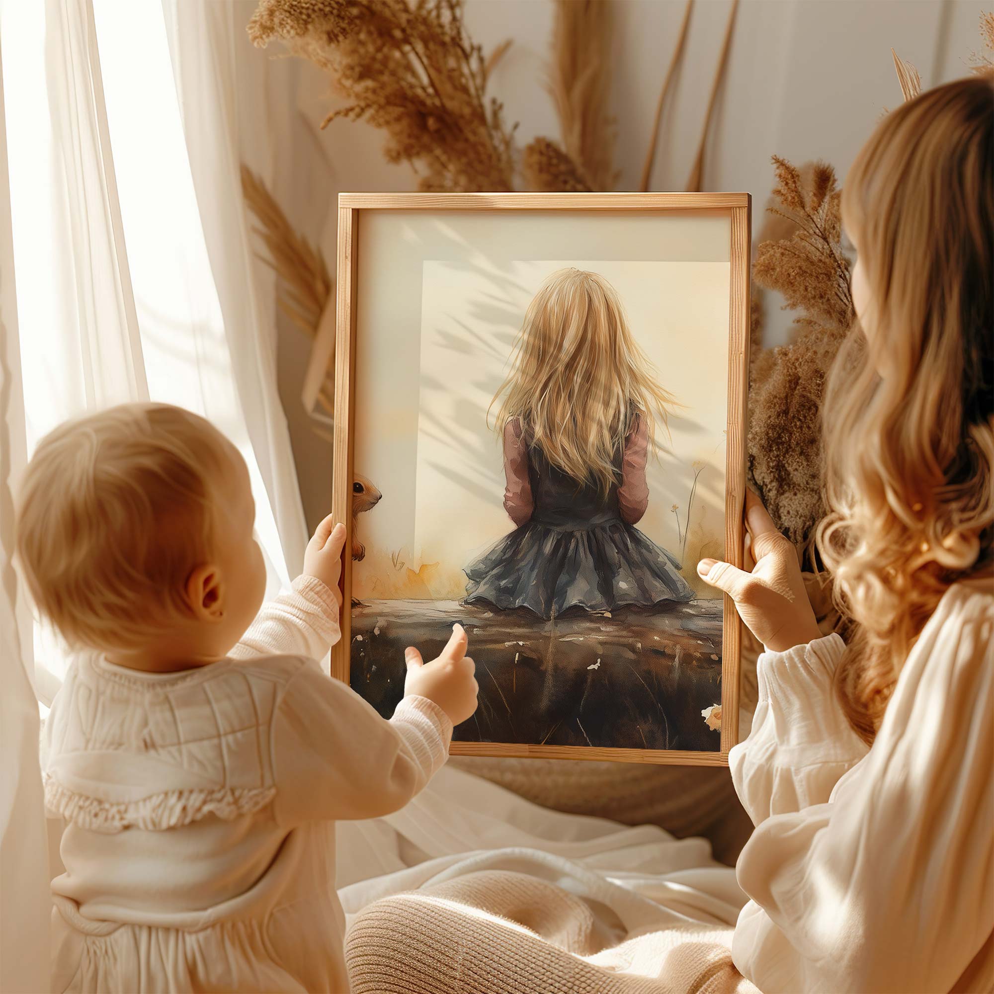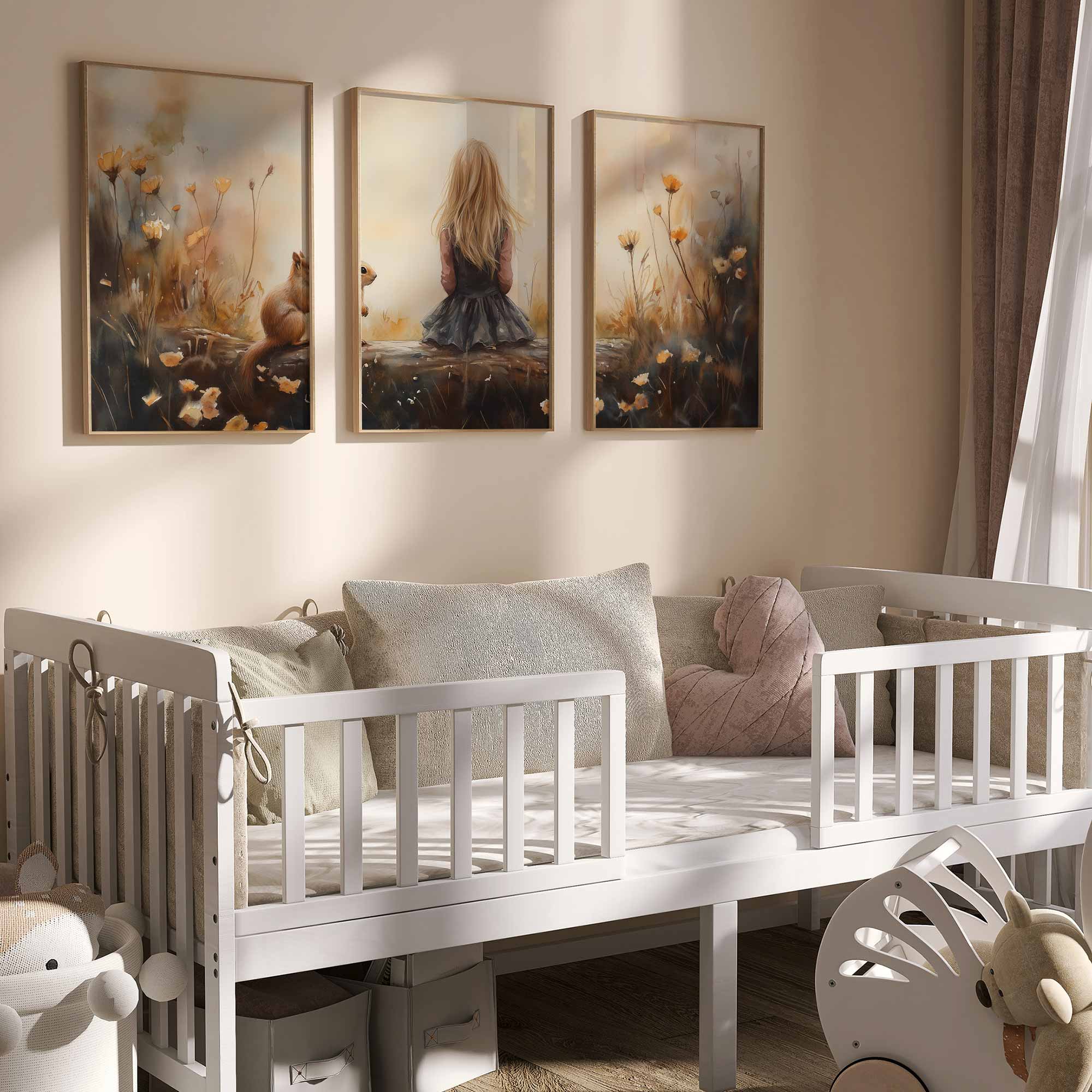Speels Meisje en Eekhoorn in Bloemenveld