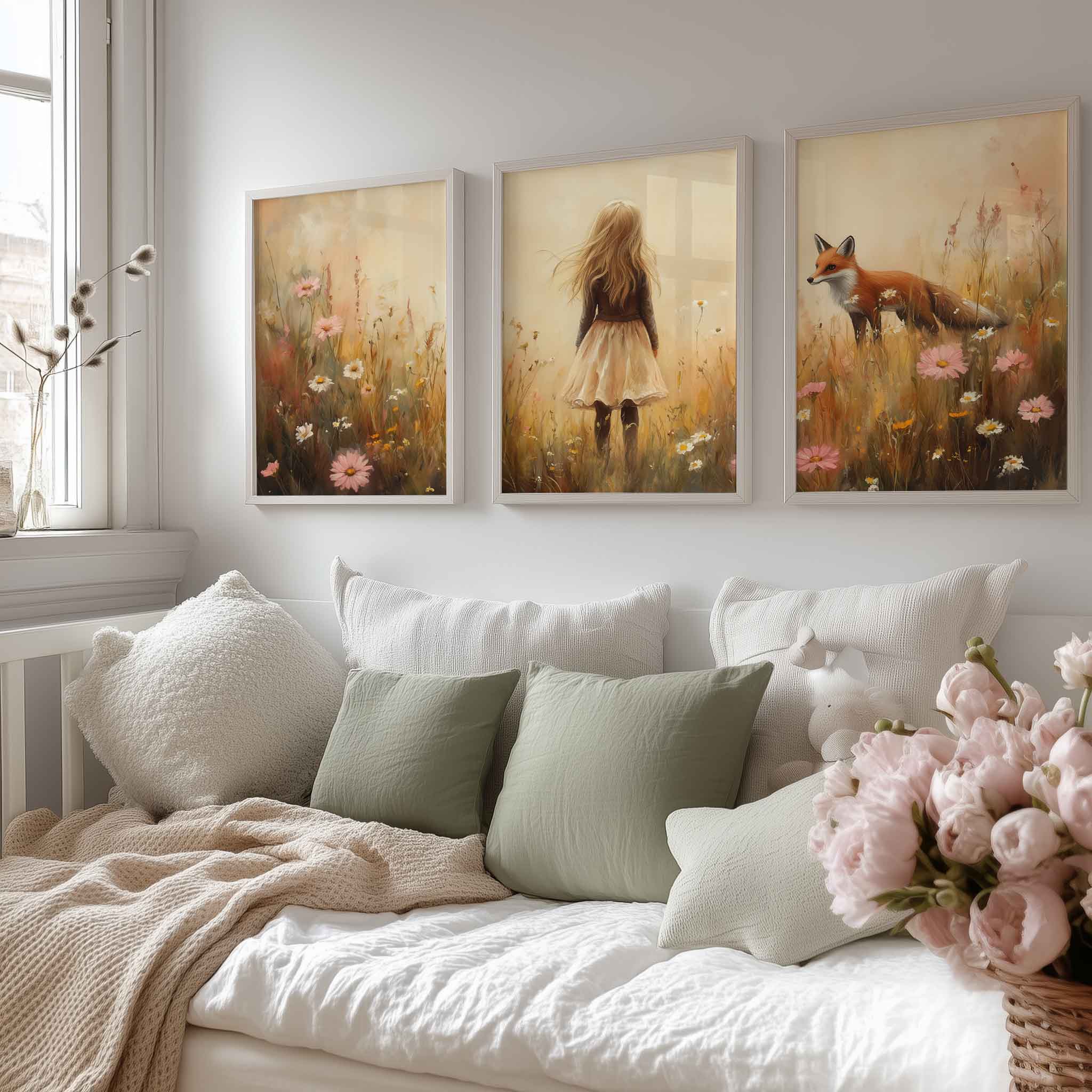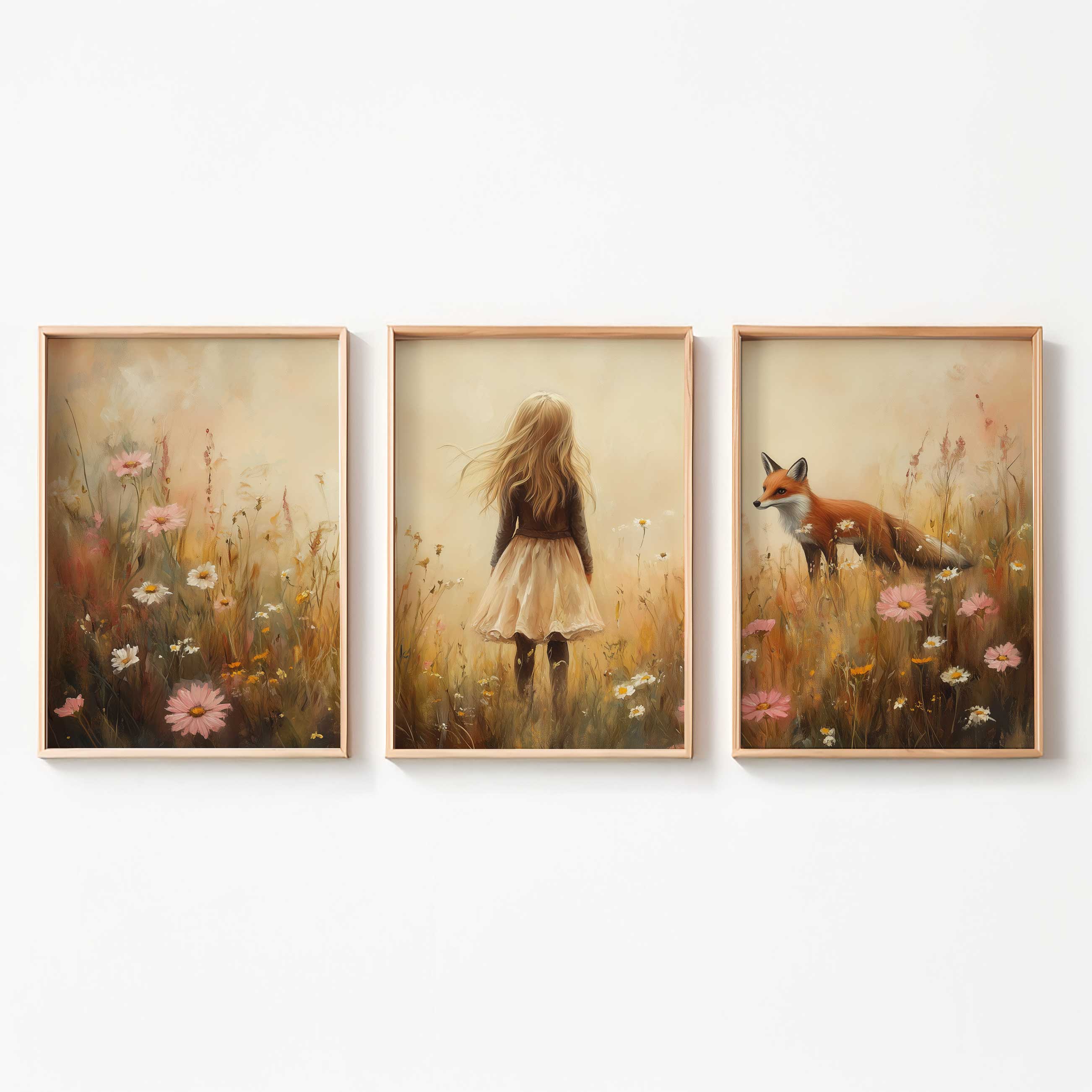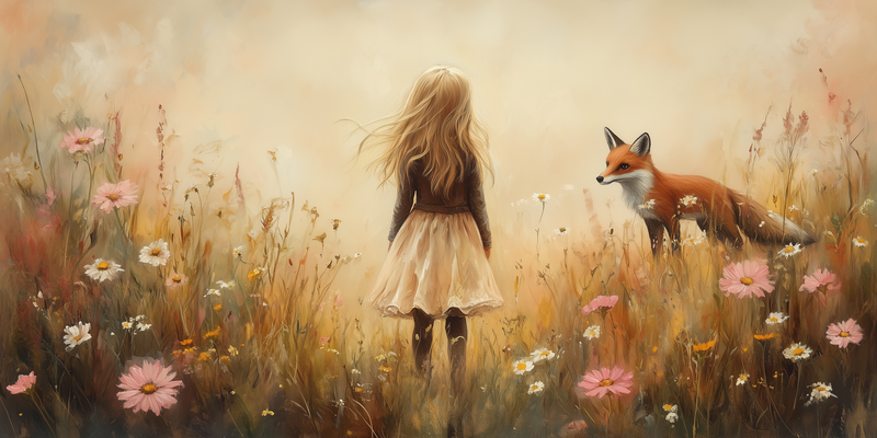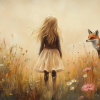 Speels Meisje en Vos in Bloemenveld