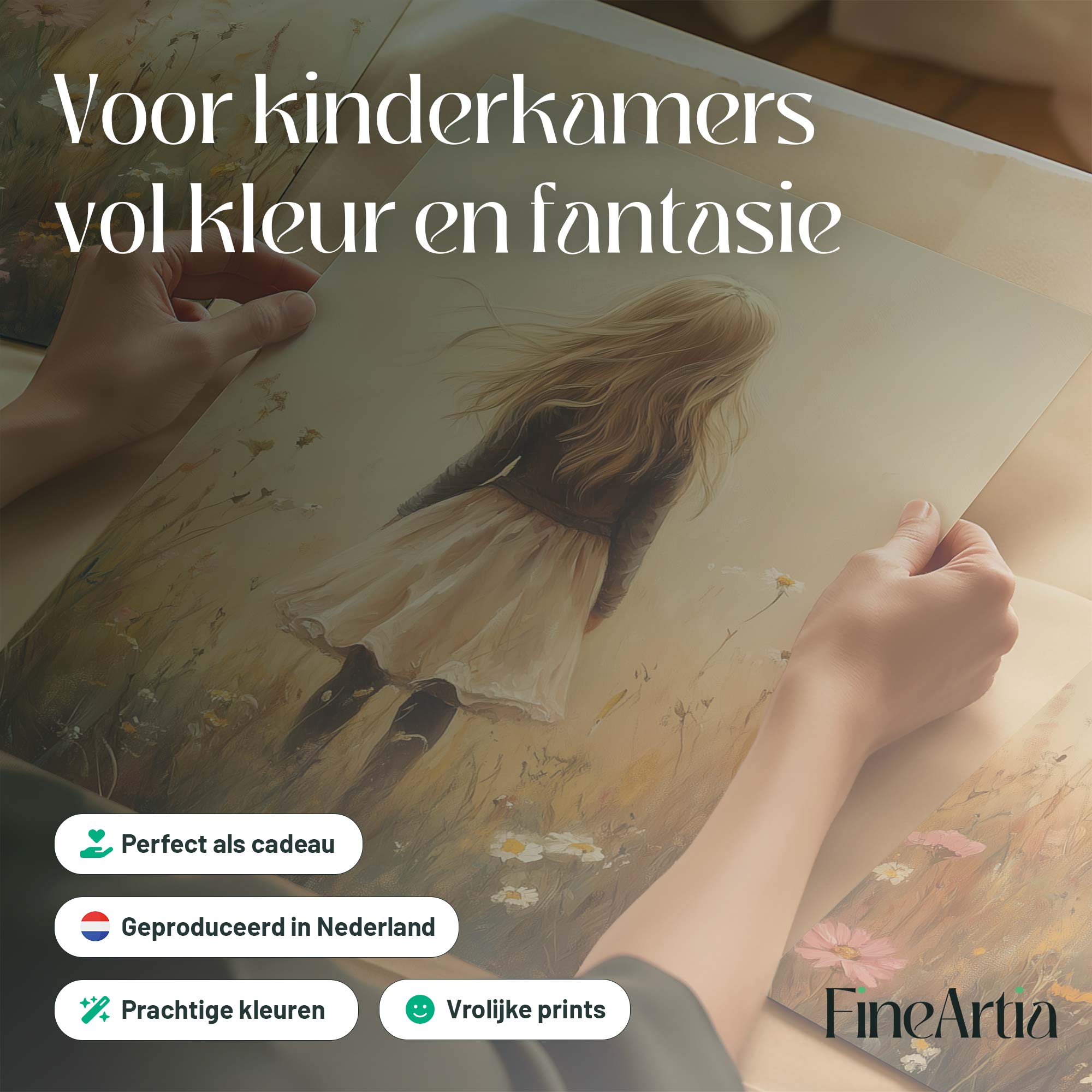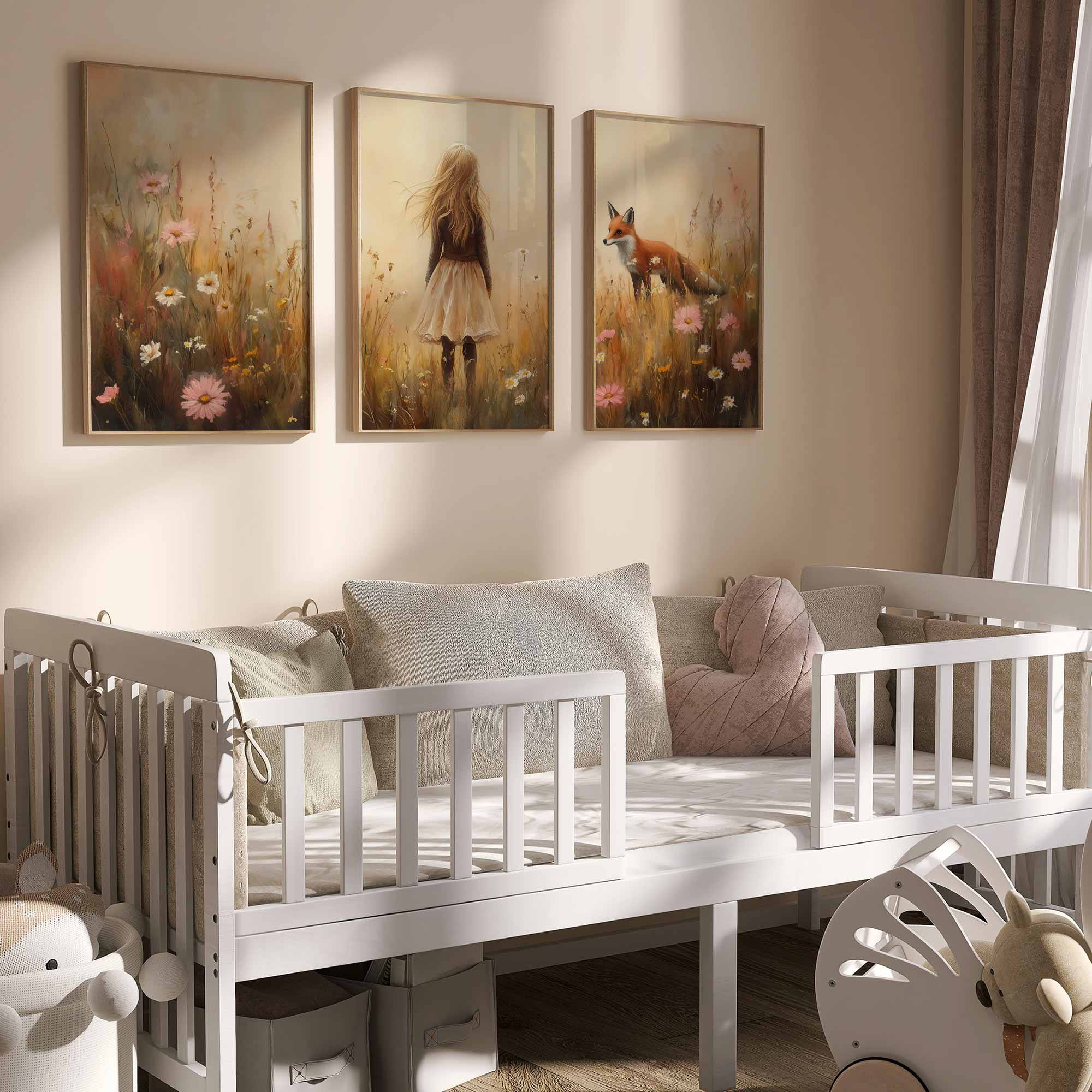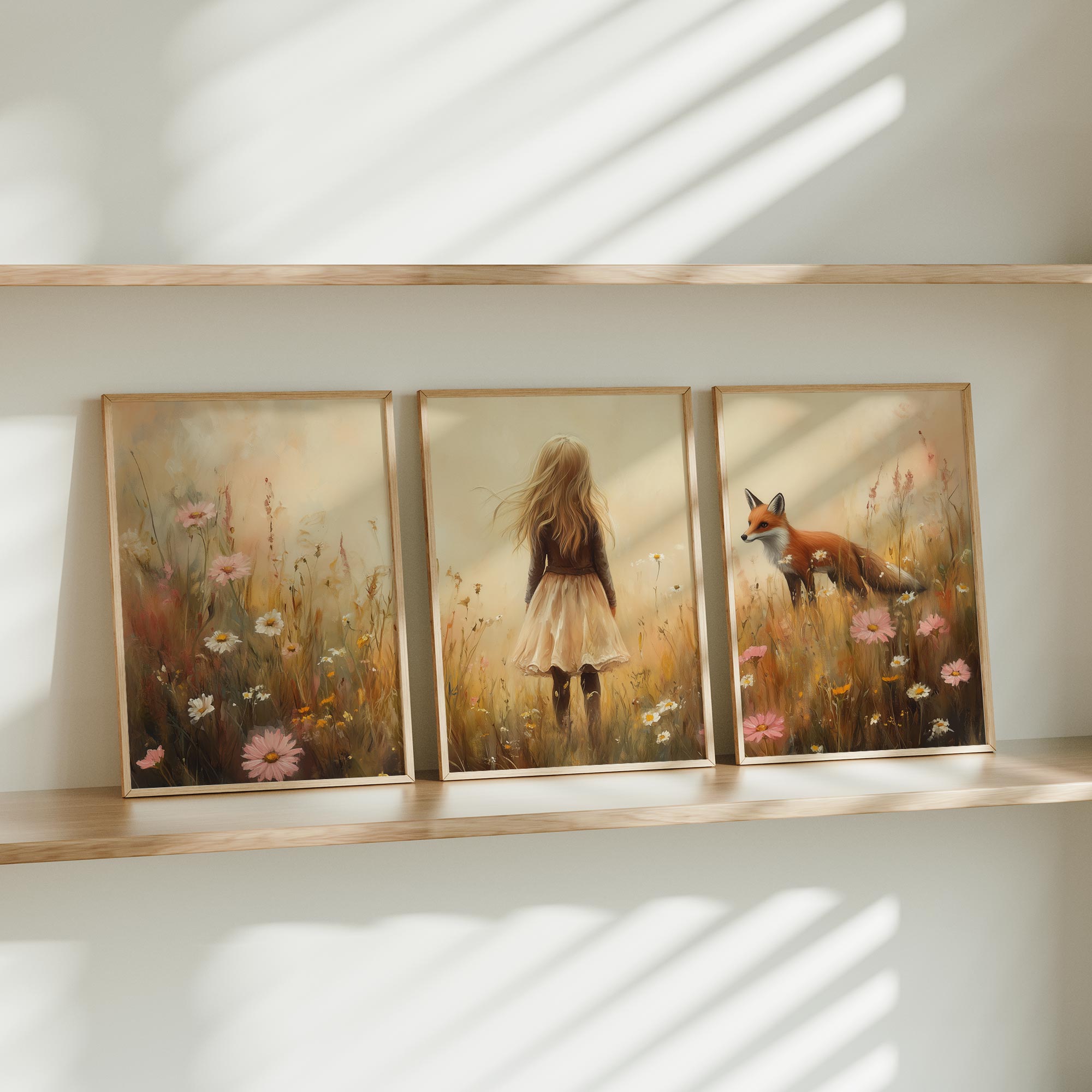 Speels Meisje en Vos in Bloemenveld