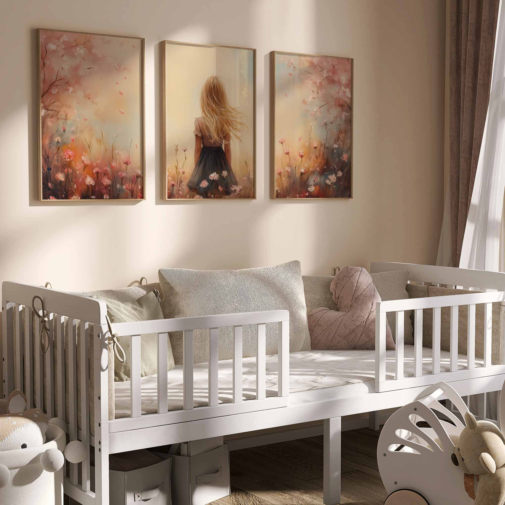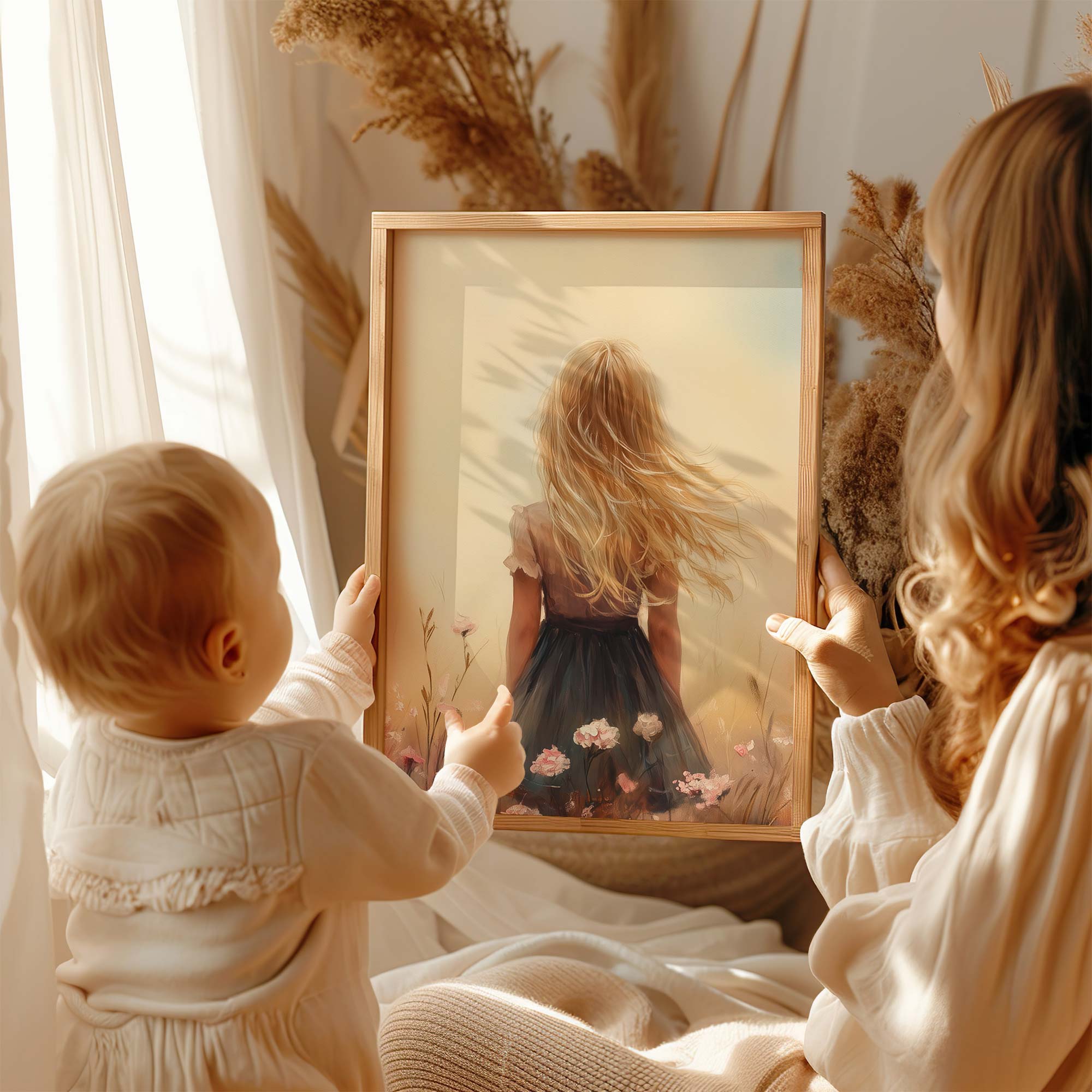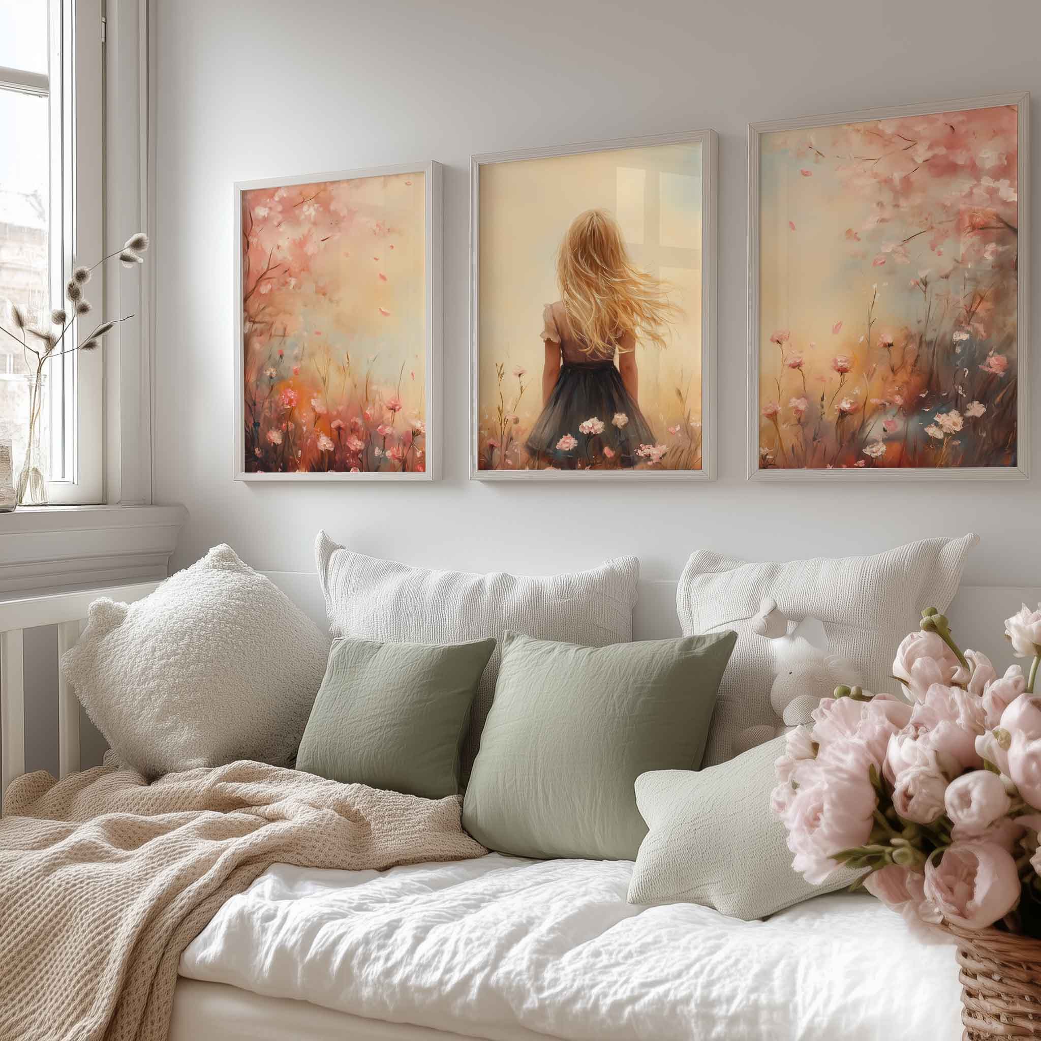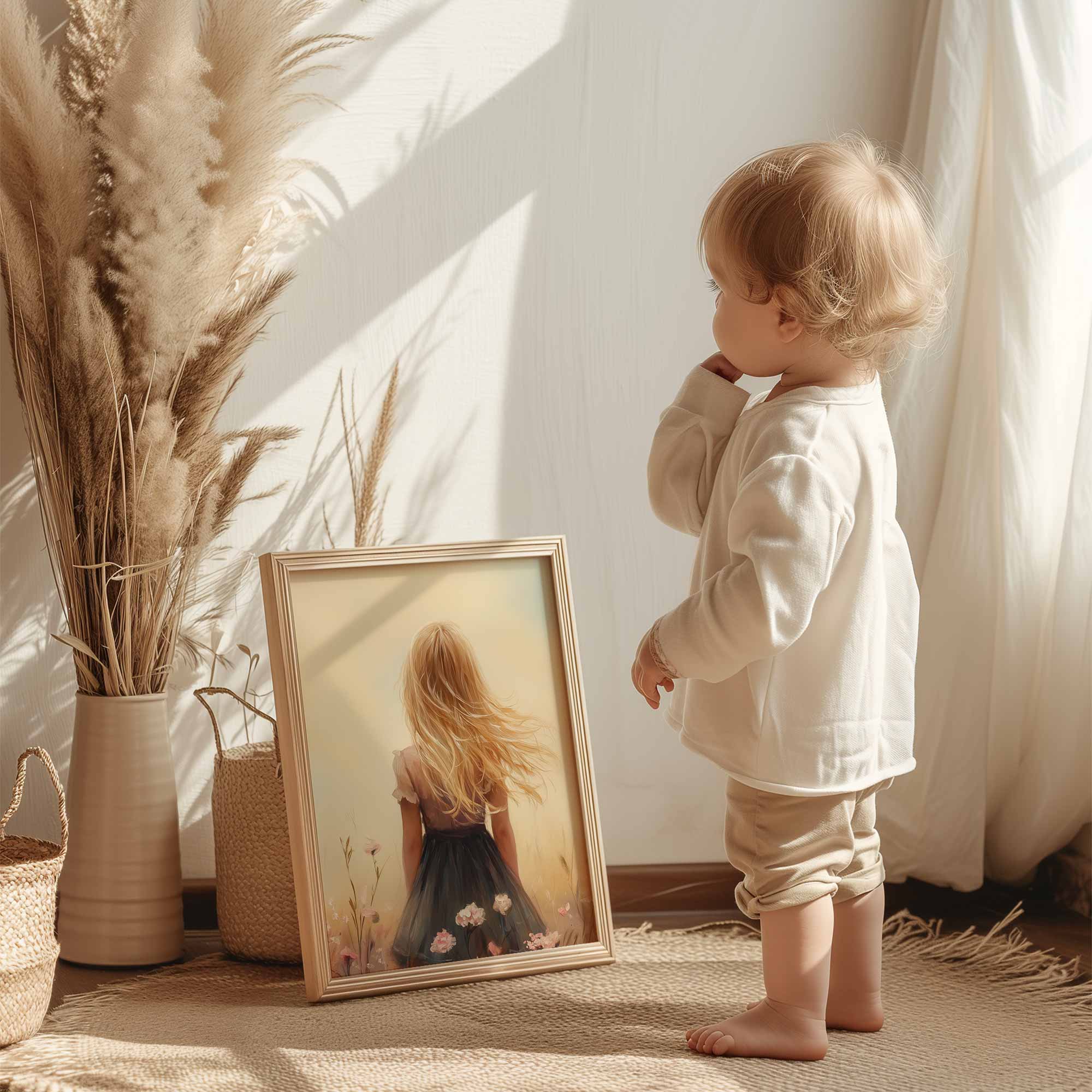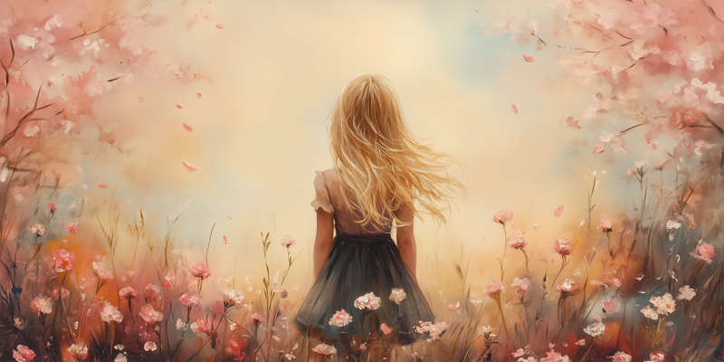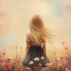 Speels Meisje in Bloeiende Bloemenveld