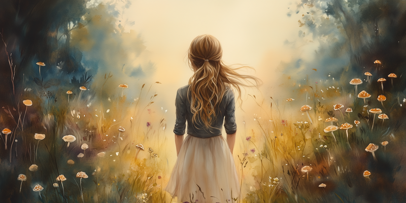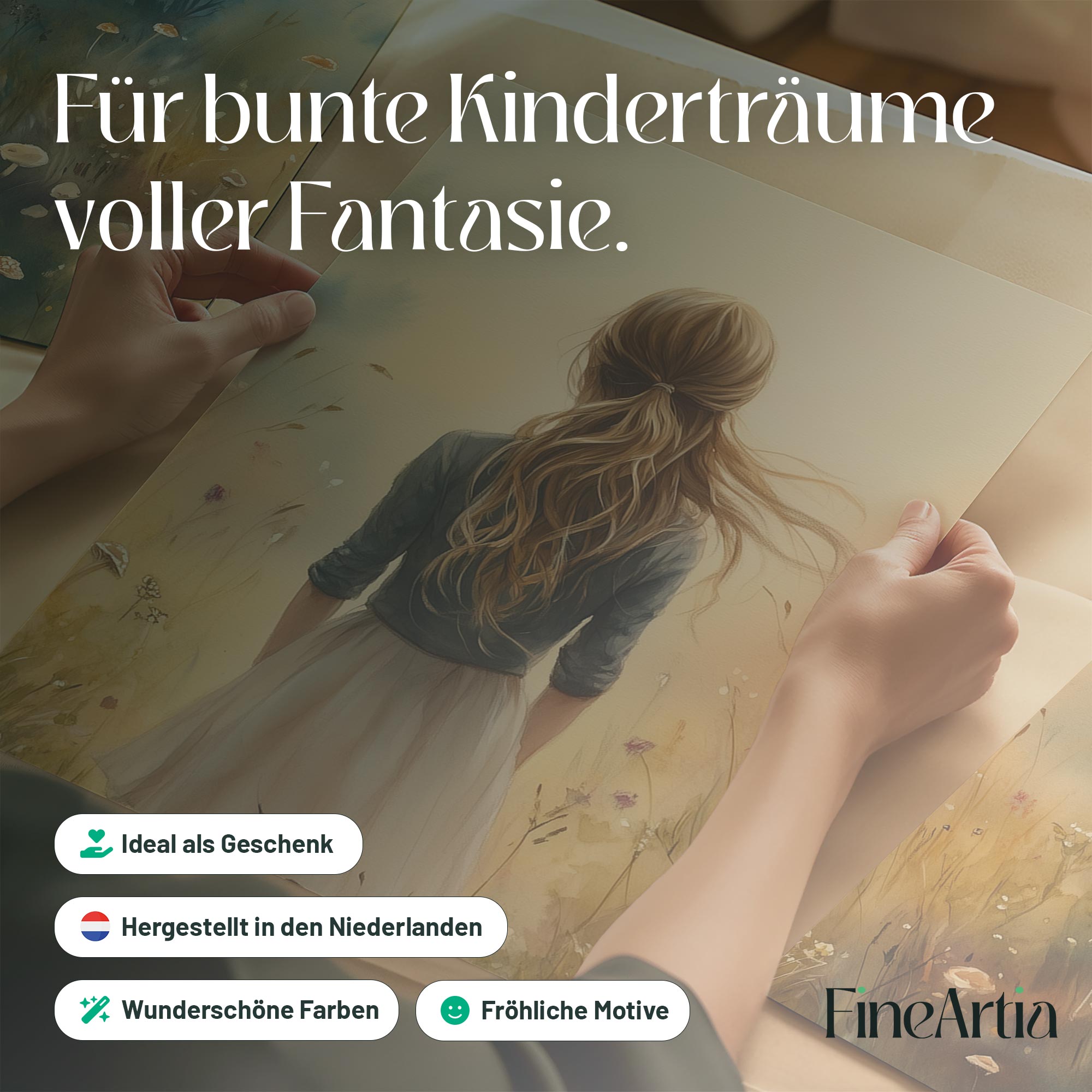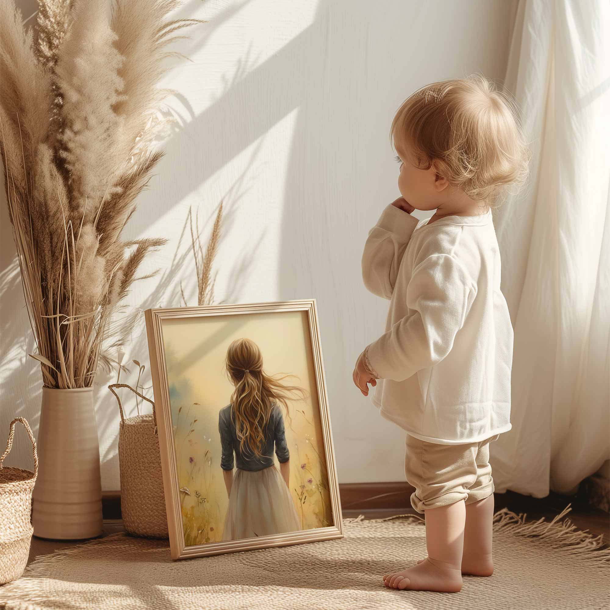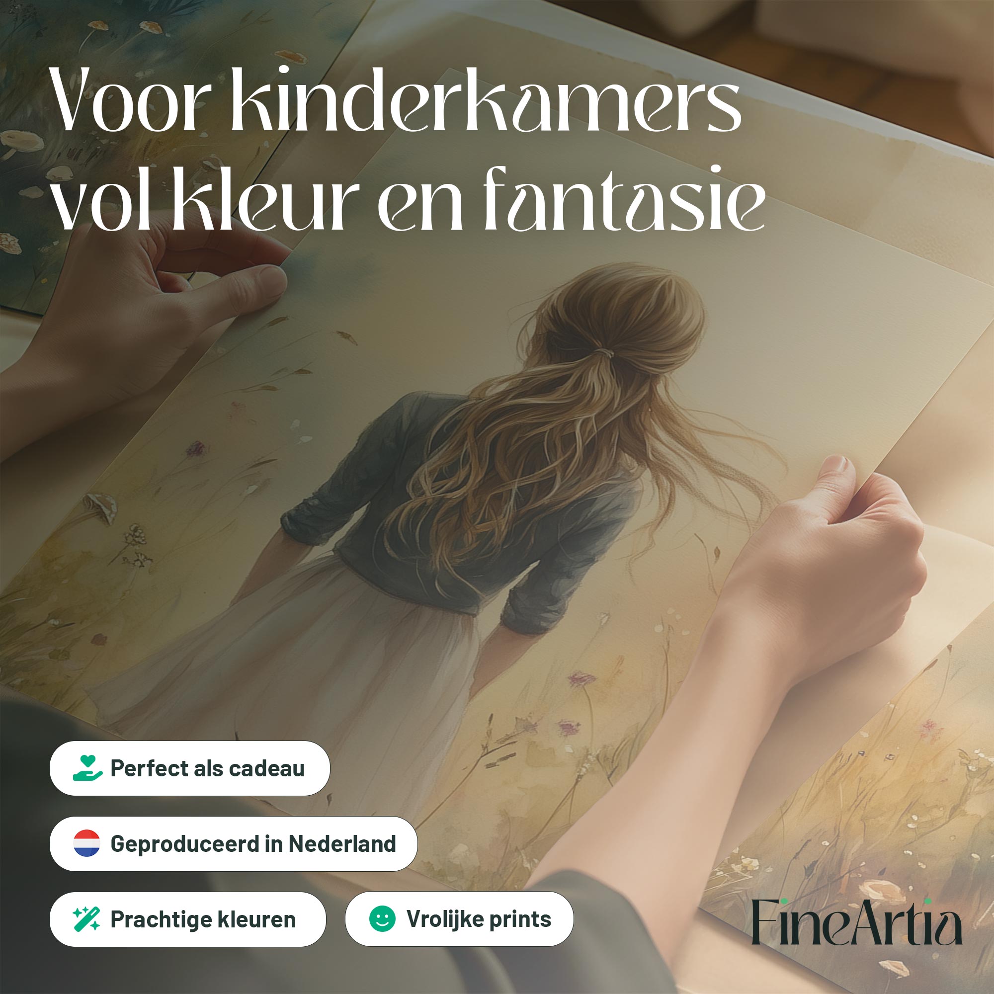 Speels Meisje in Bloemenveld – Dromerige Jeugd