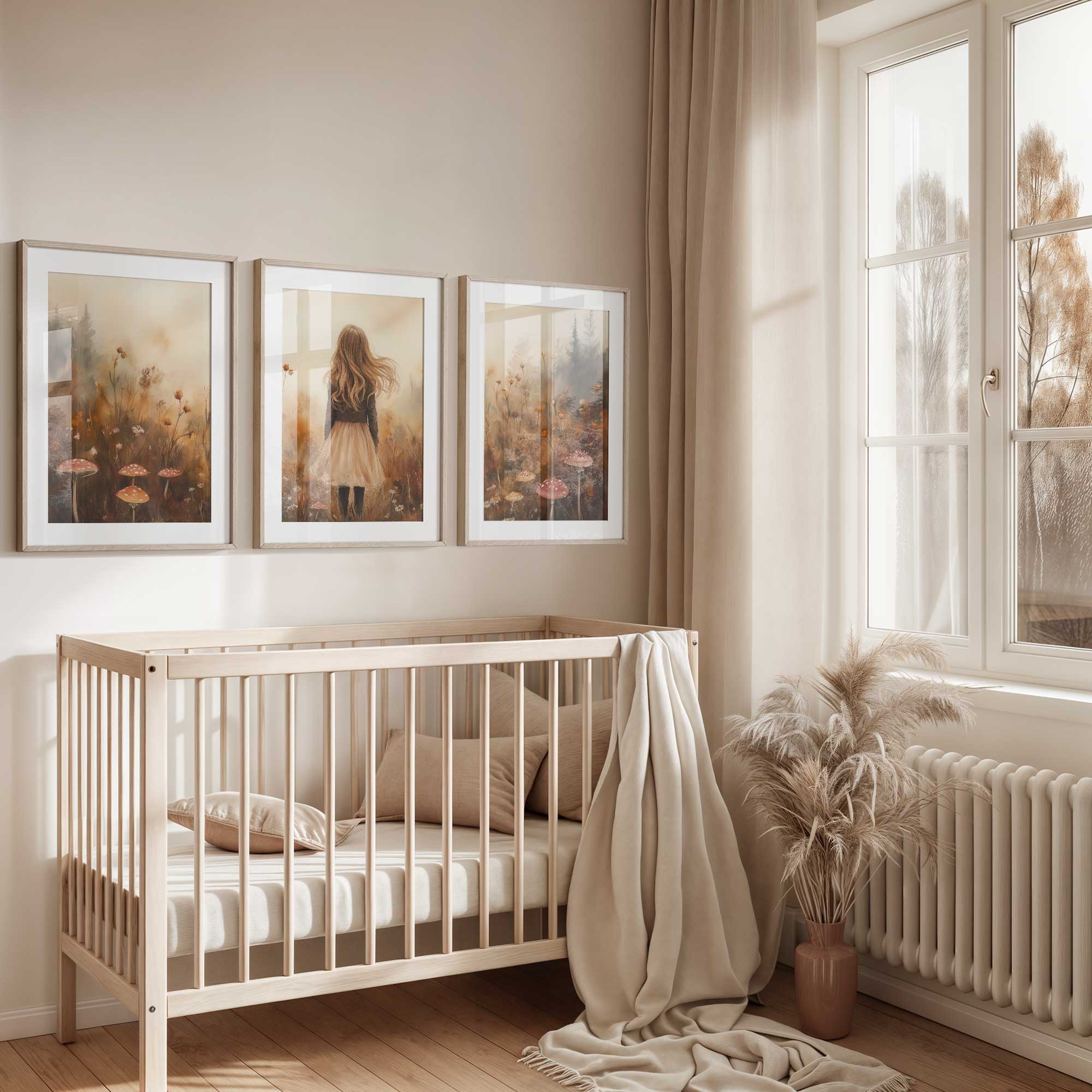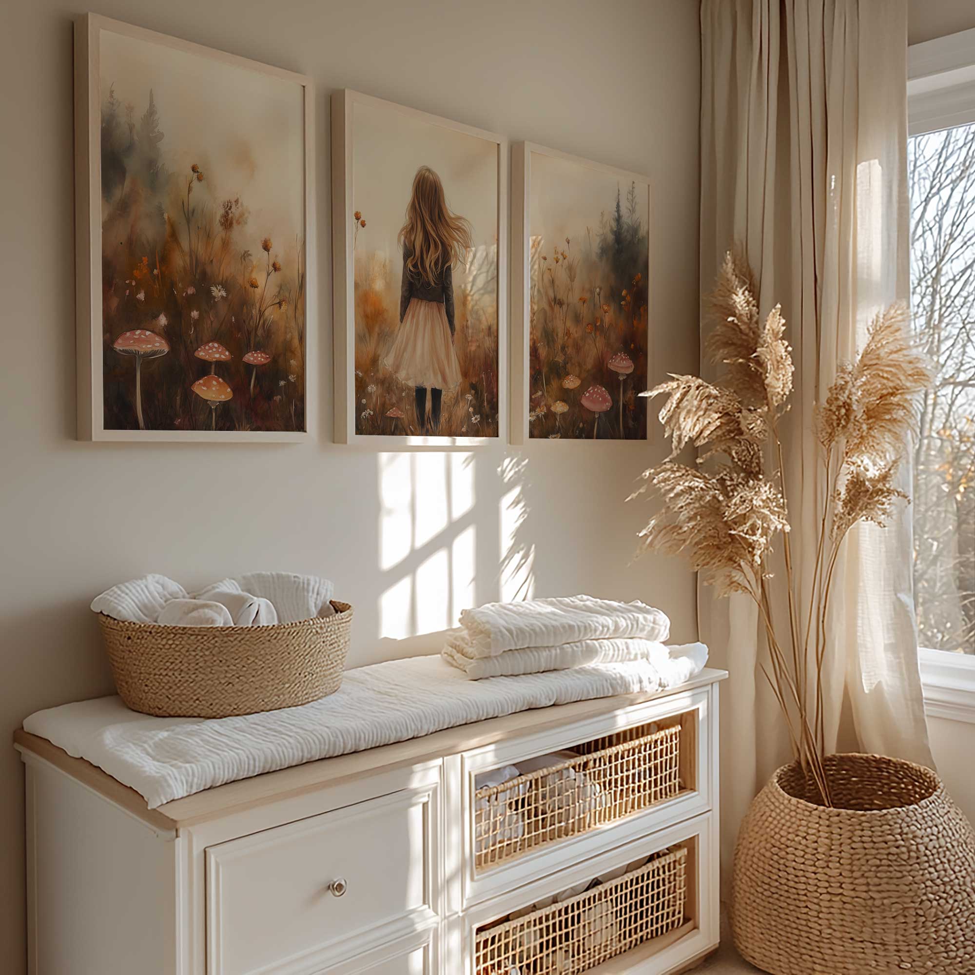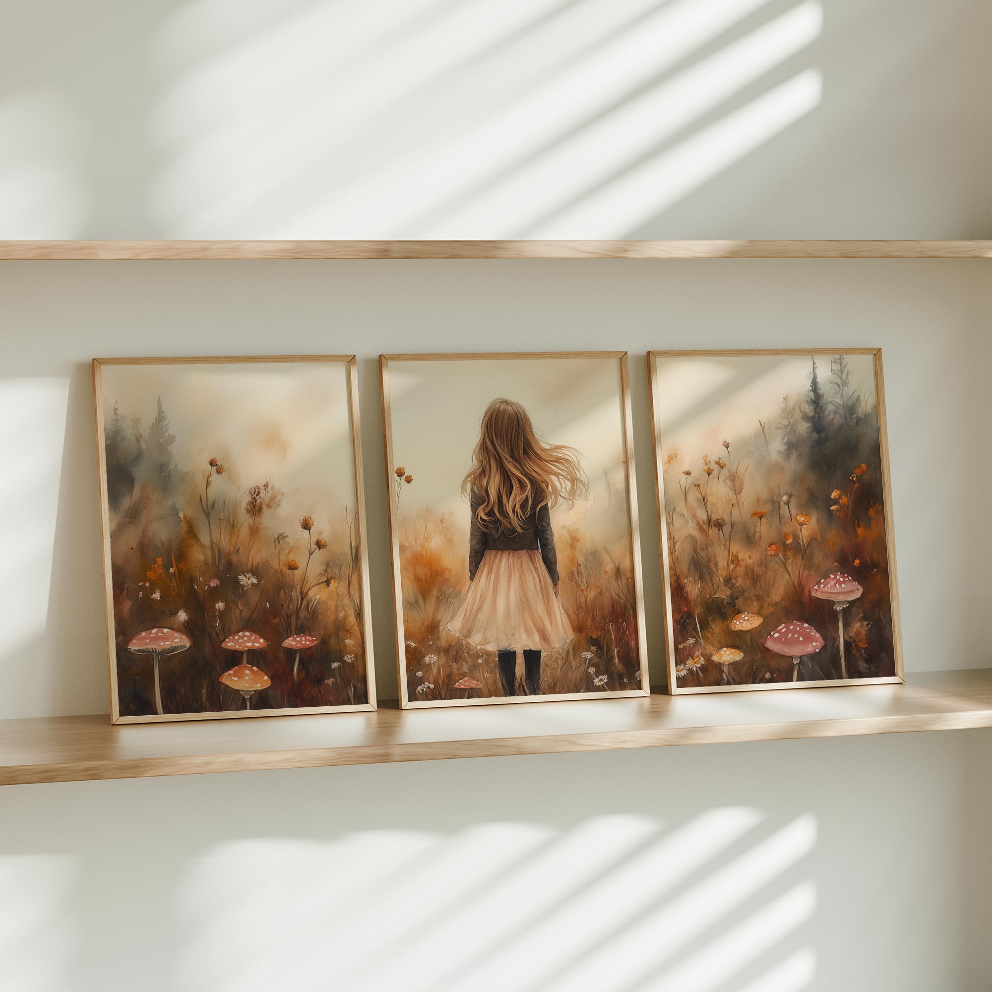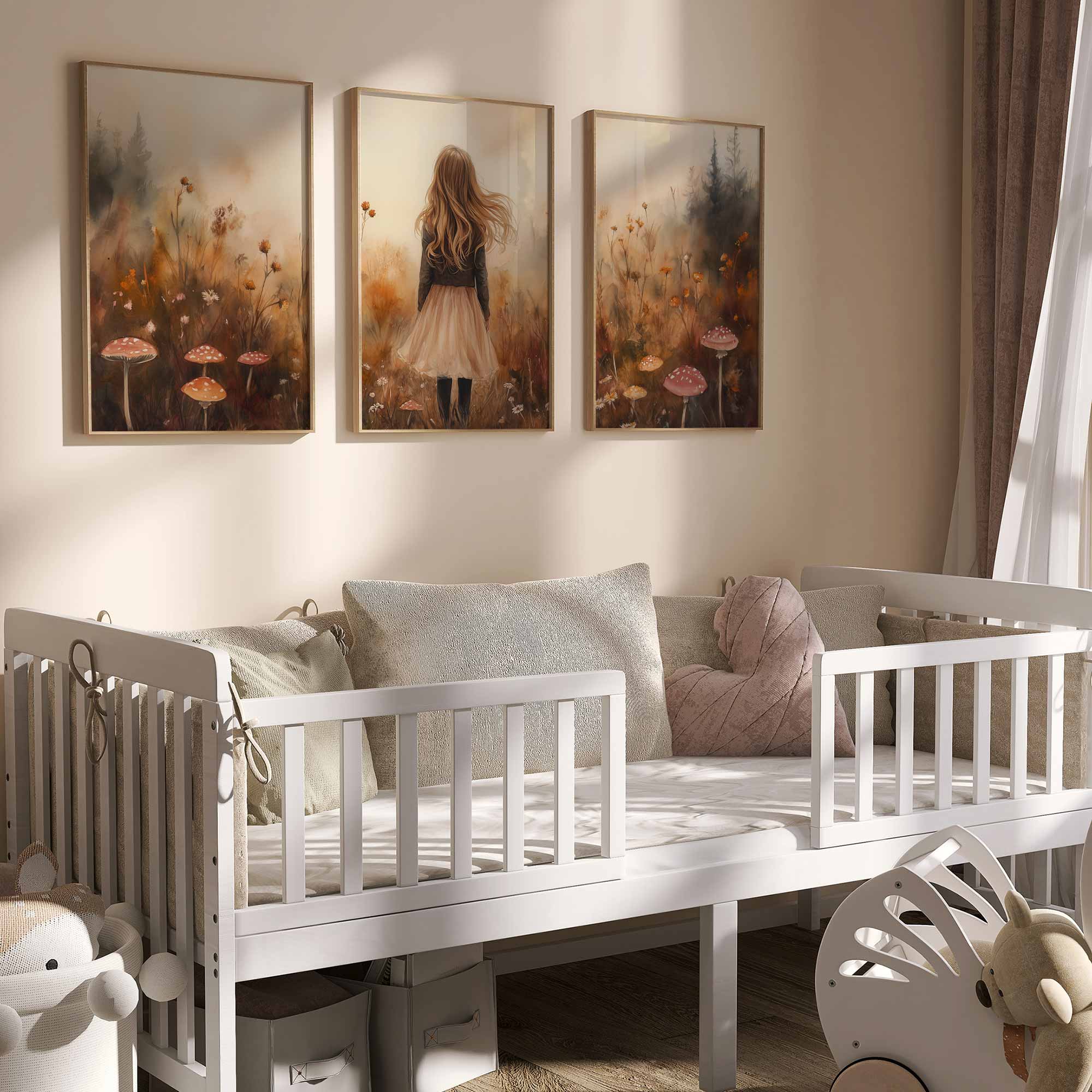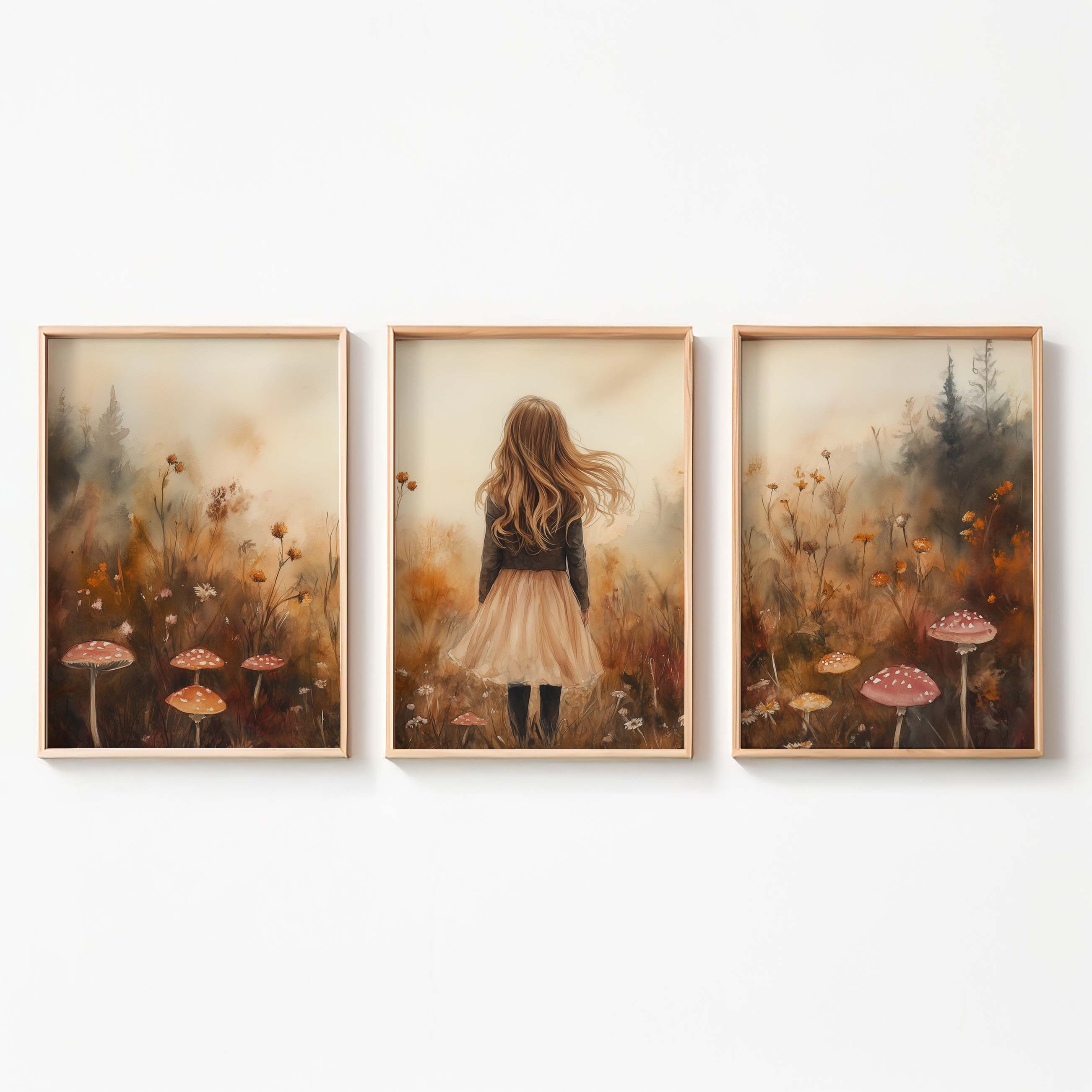 Speels Meisje in Bloemenveld – Dromerige Muurdecoratie