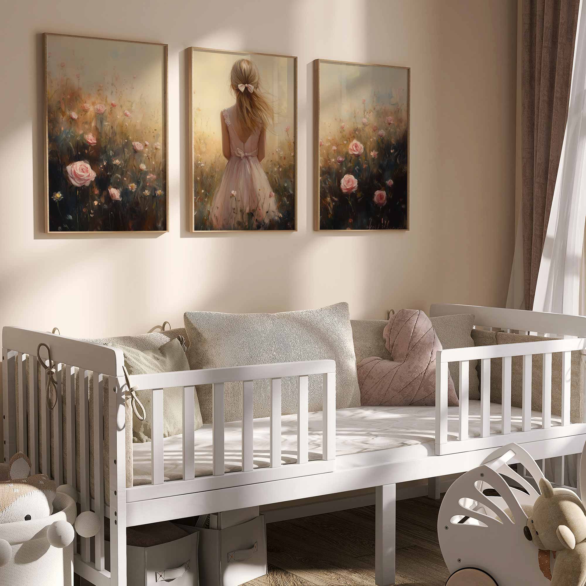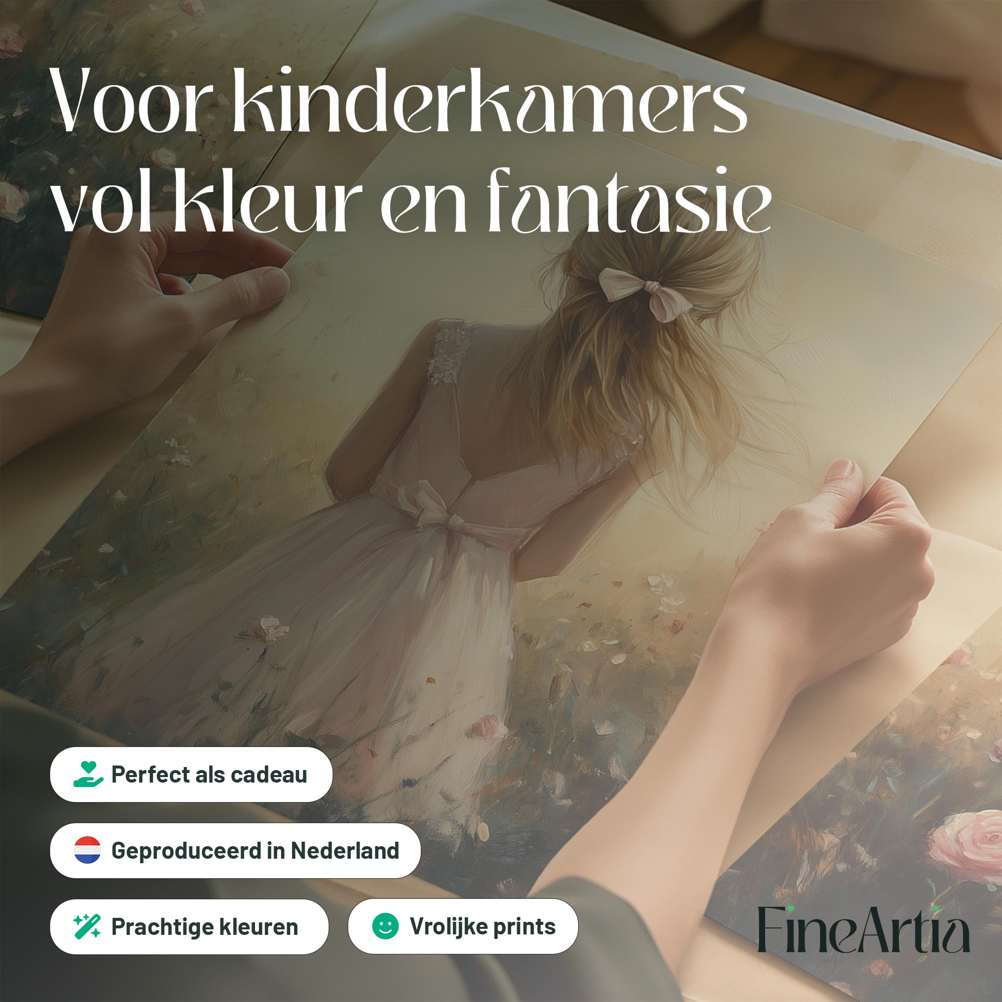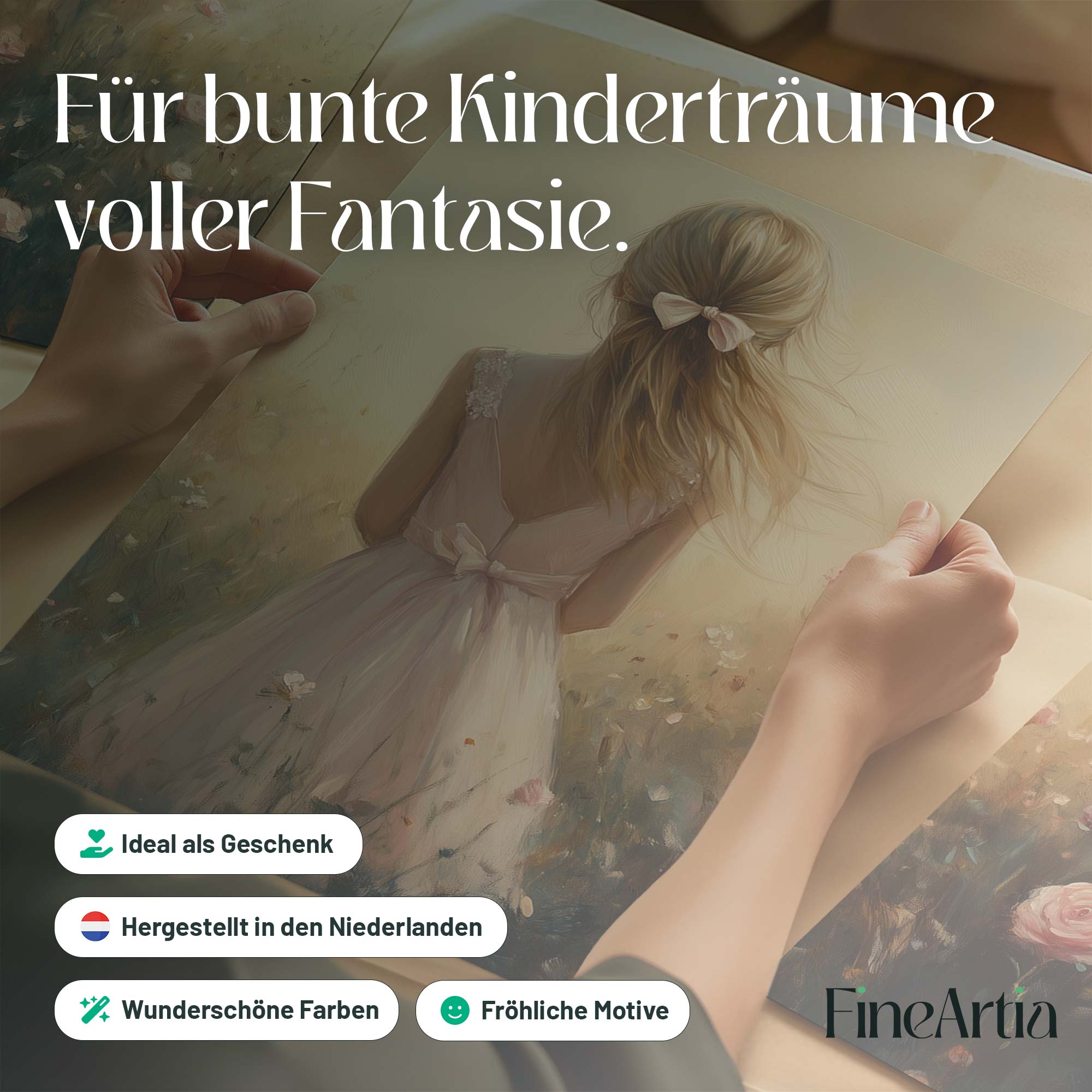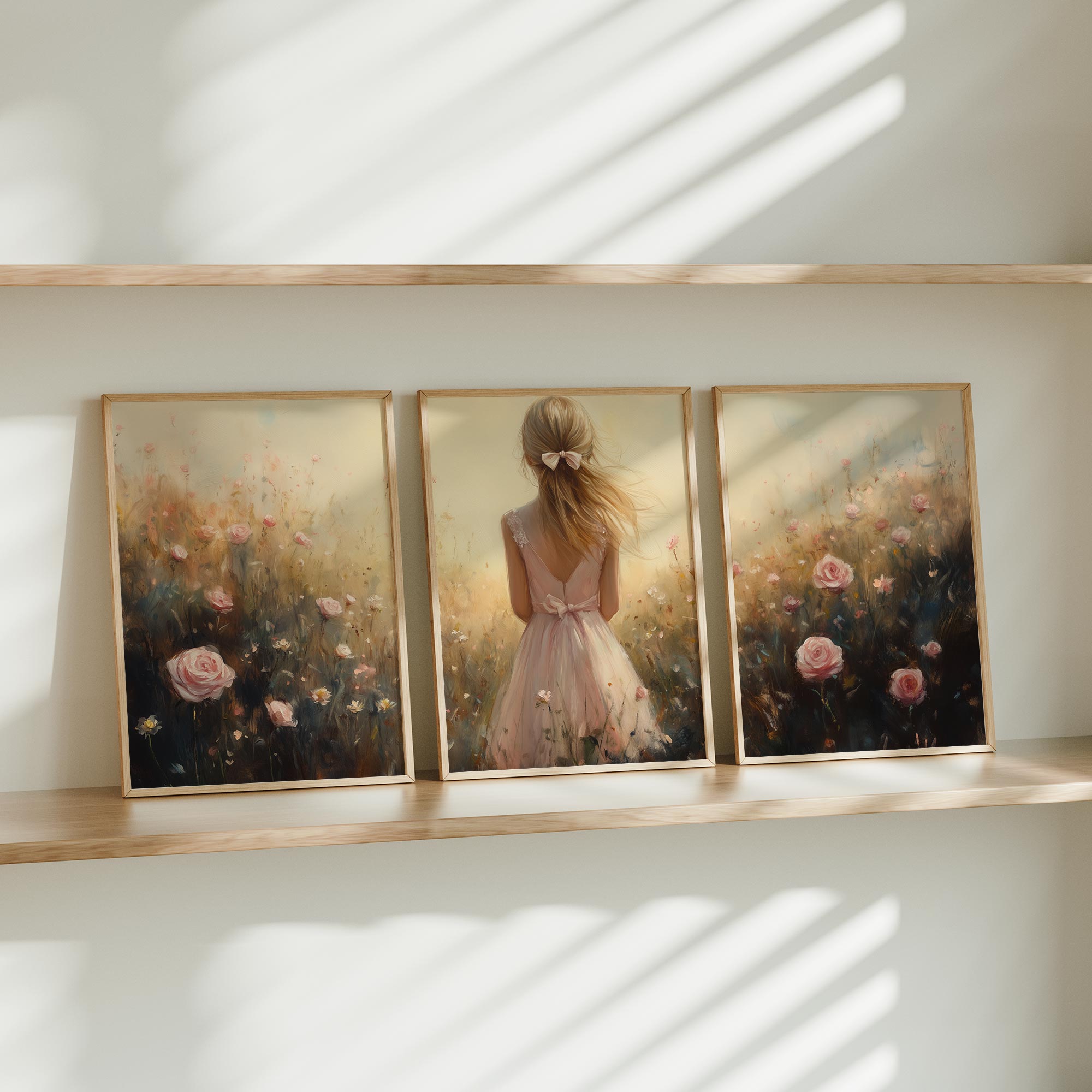 Speels Meisje in Bloemenveld – Dromerige Pastelkleuren