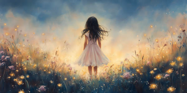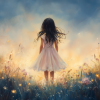Speels Meisje in Bloemenveld – Dromerige Sfeer