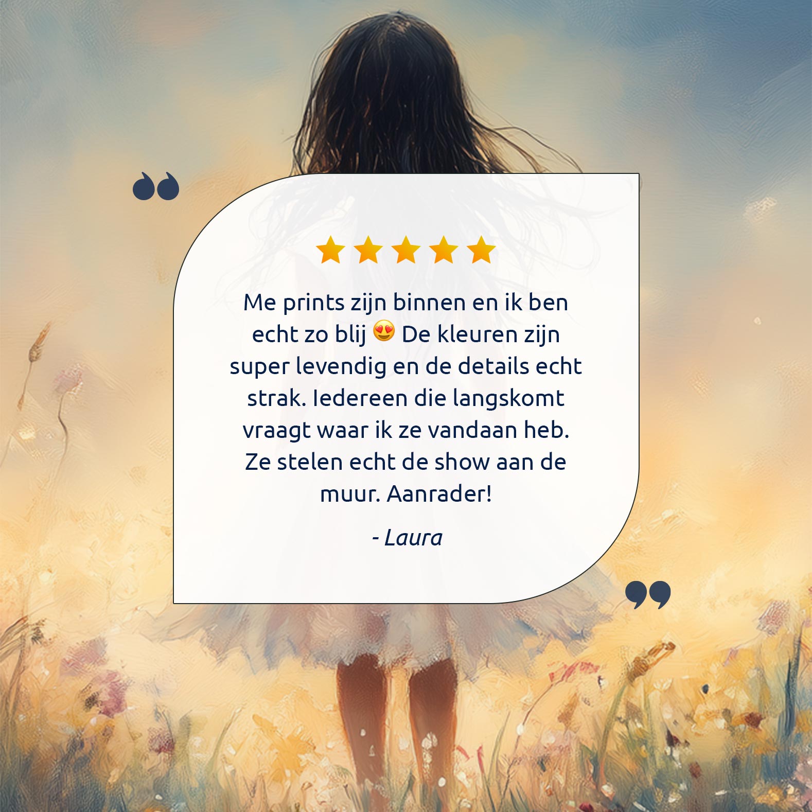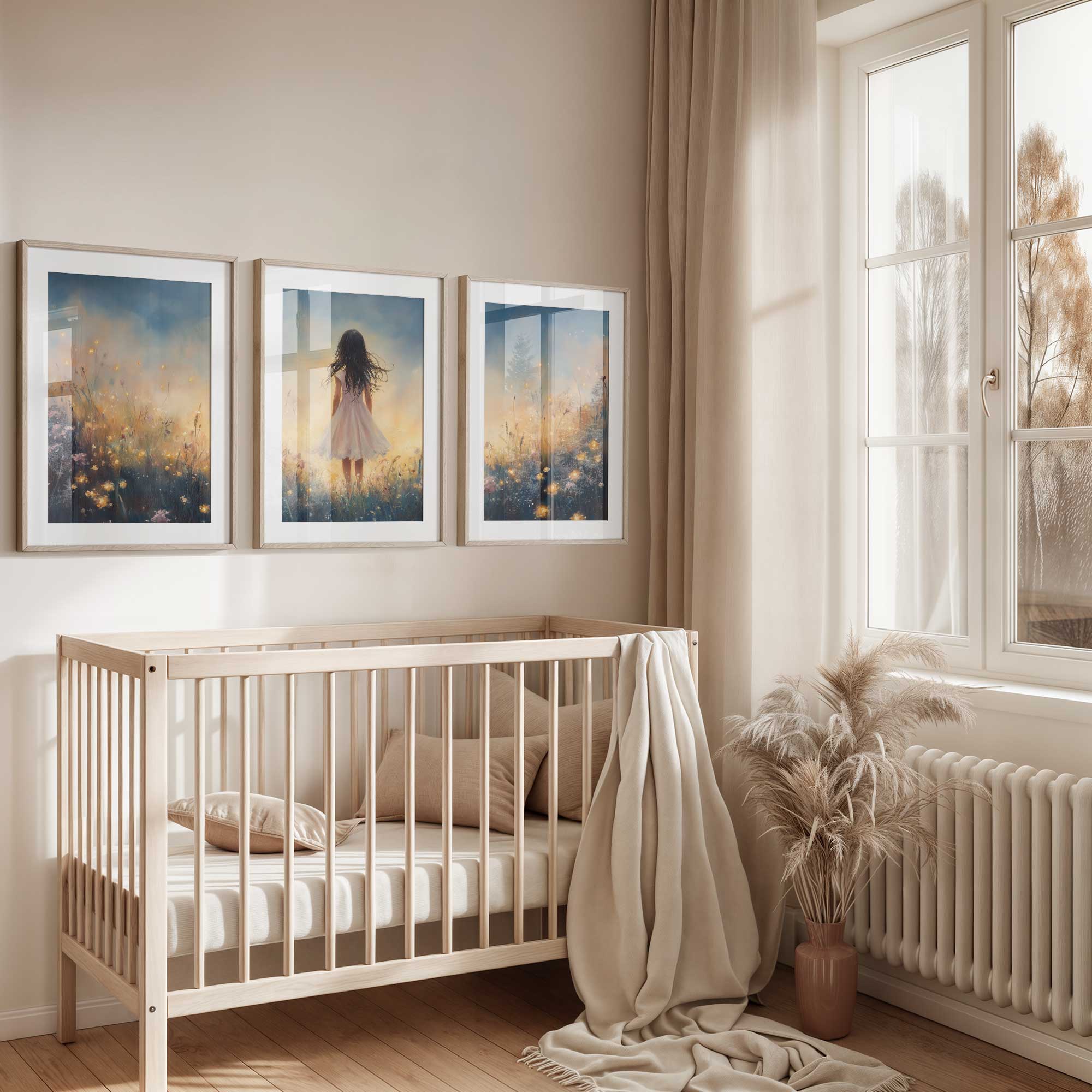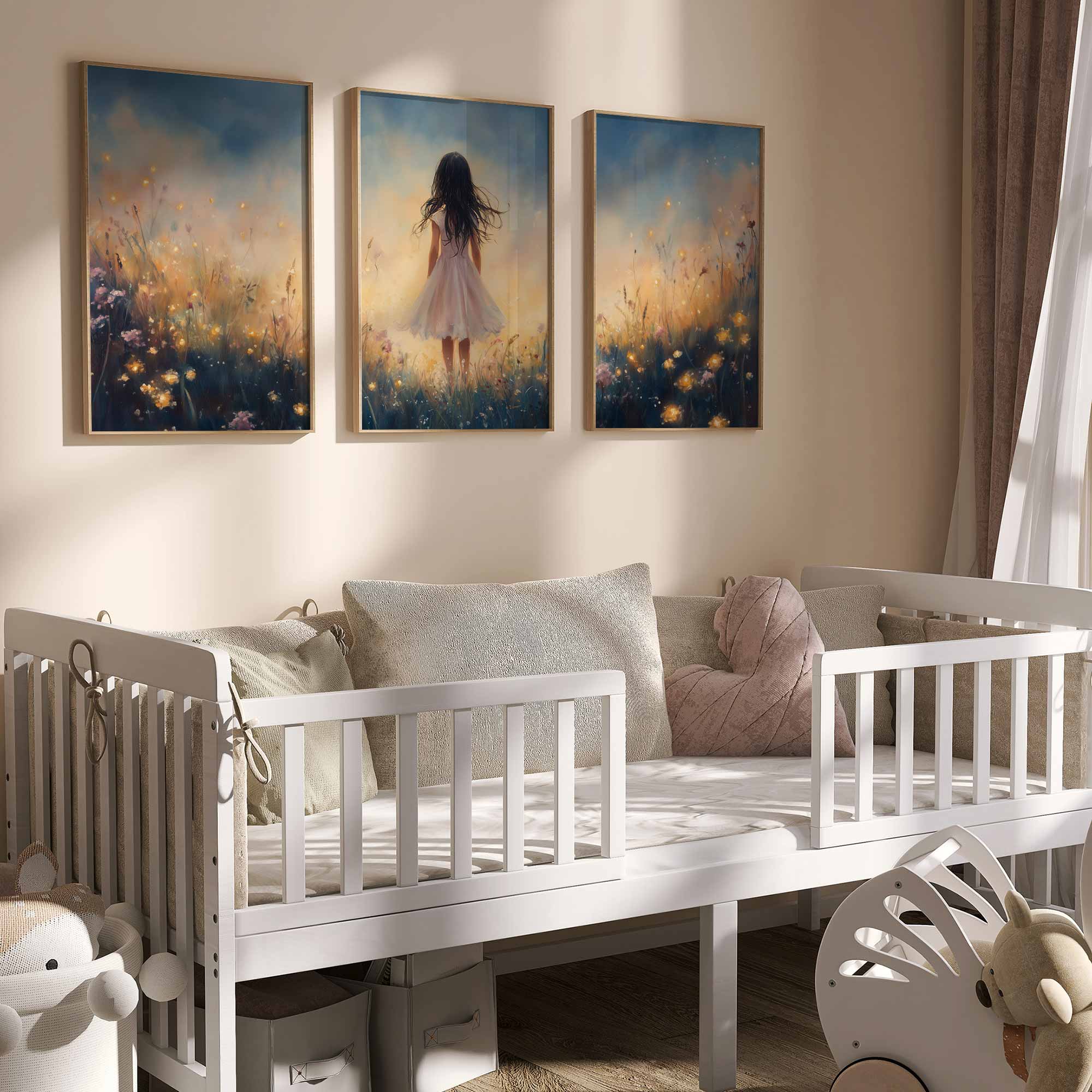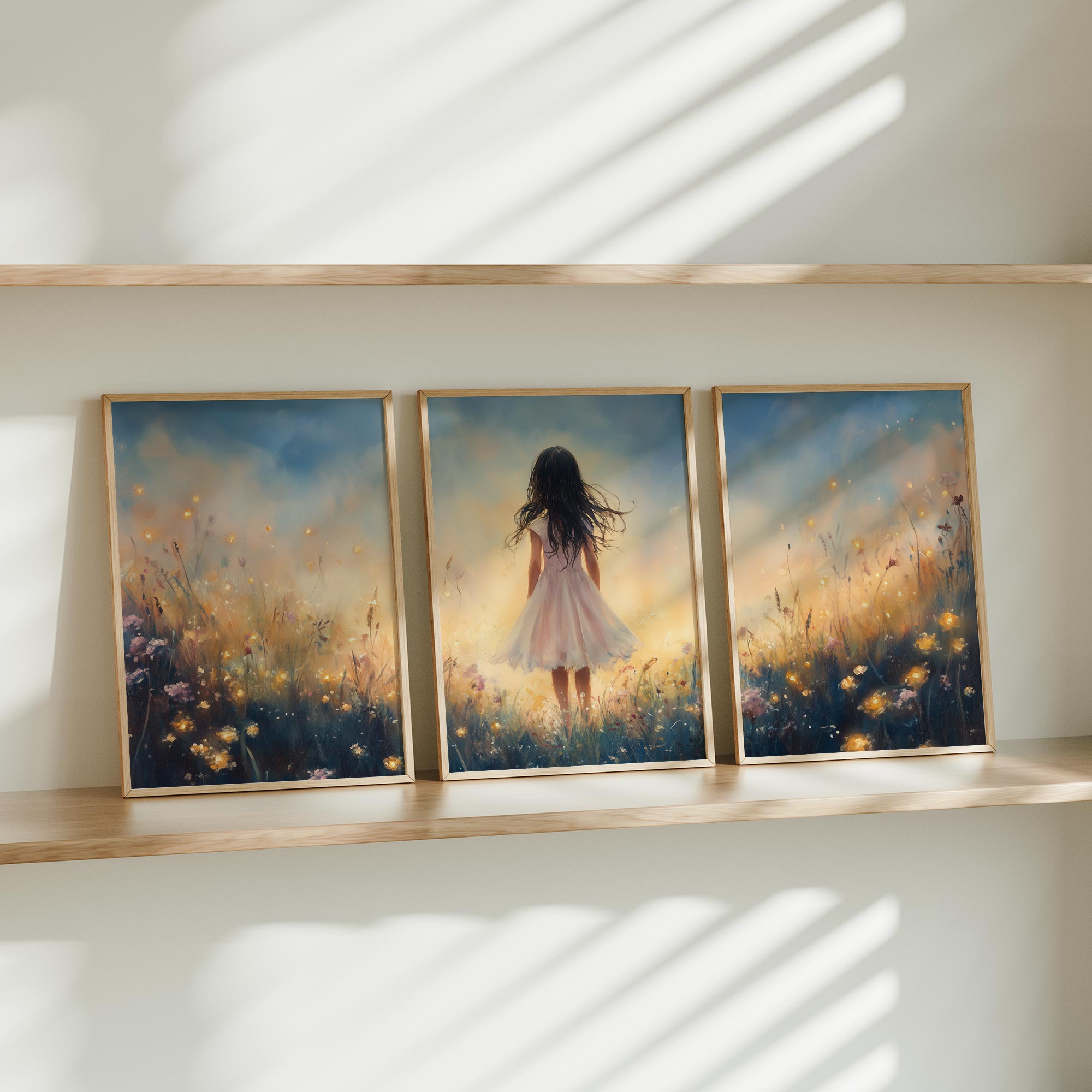 Terug naar collectie Posters Speels Meisje in Bloemenveld – Dromerige Sfeer
