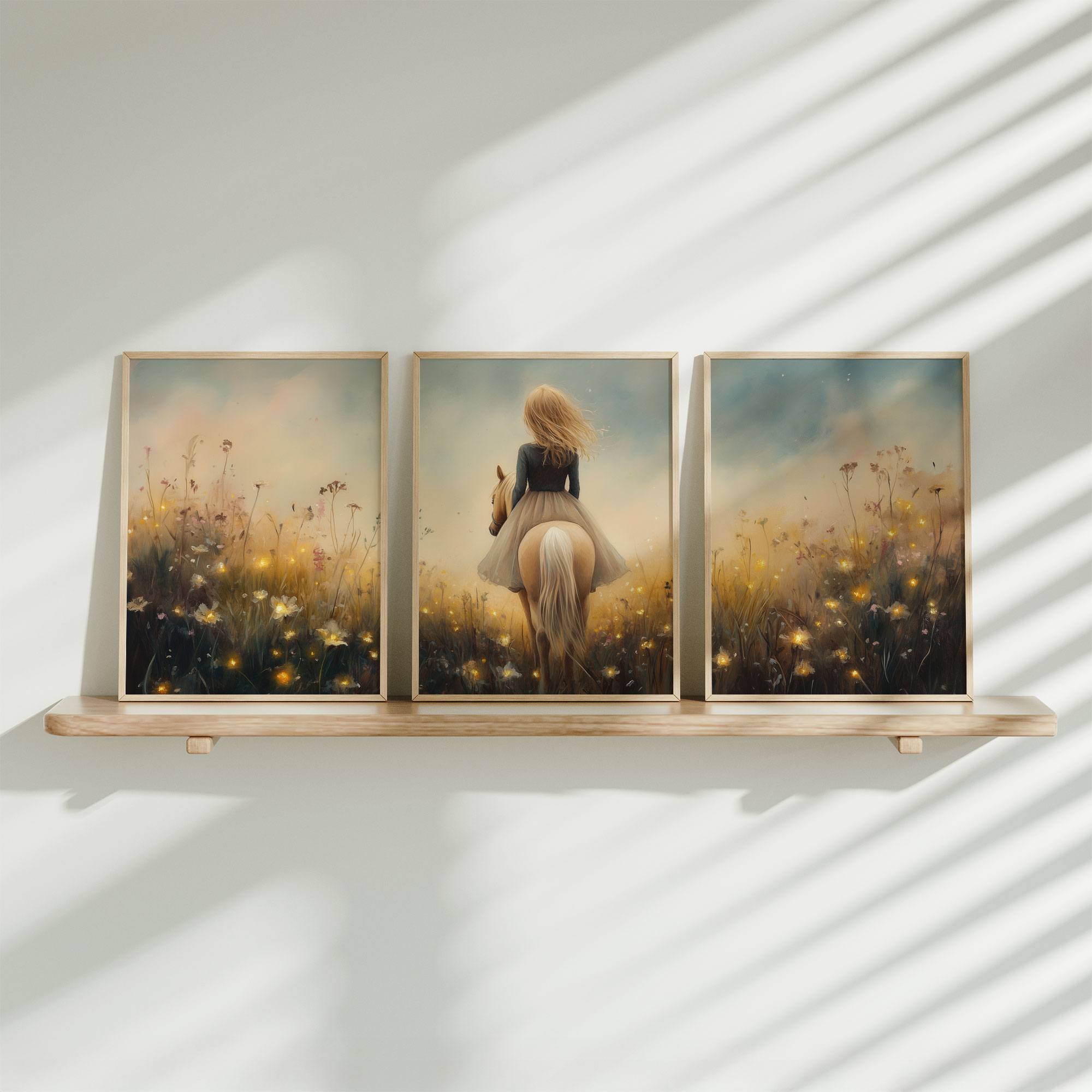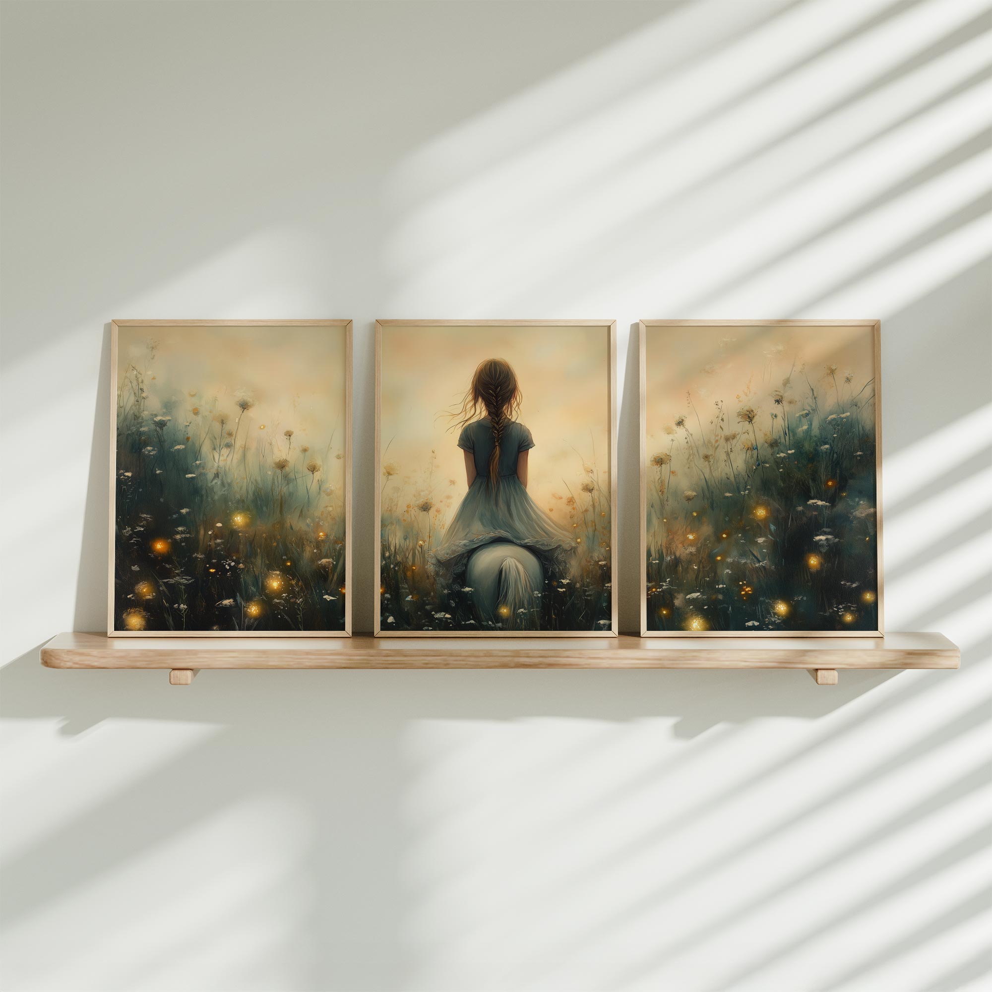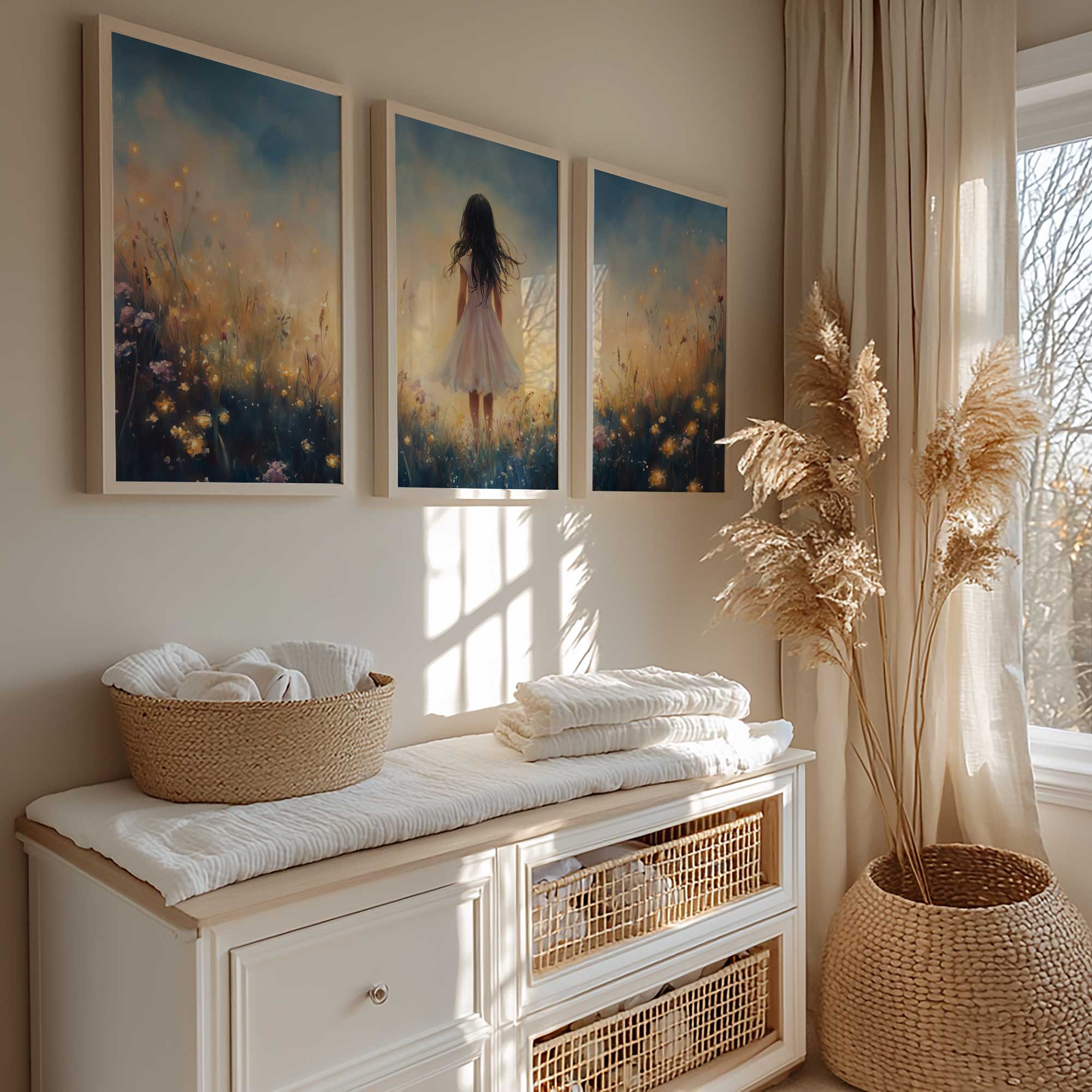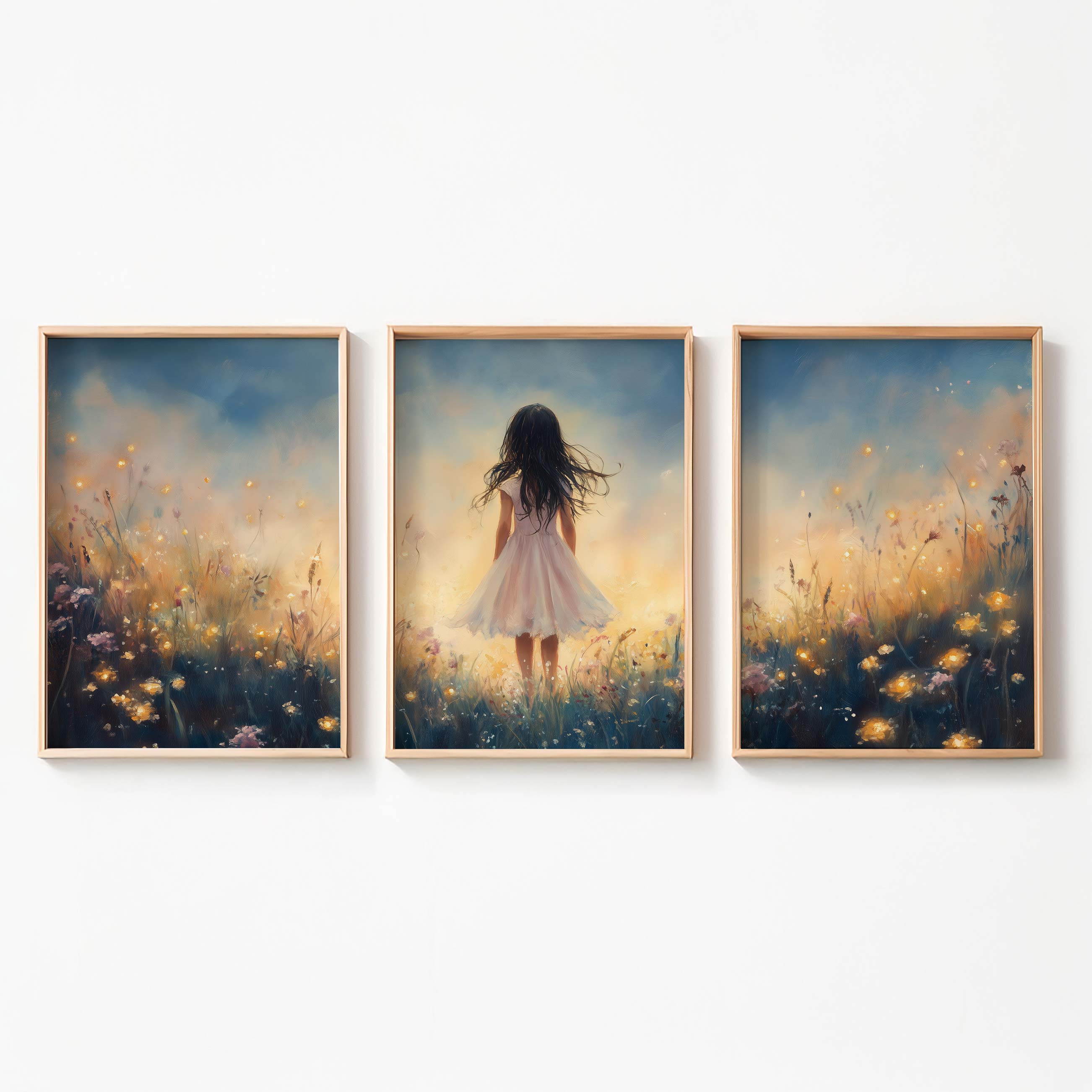 Terug naar collectie Posters Speels Meisje in Bloemenveld – Dromerige Sfeer