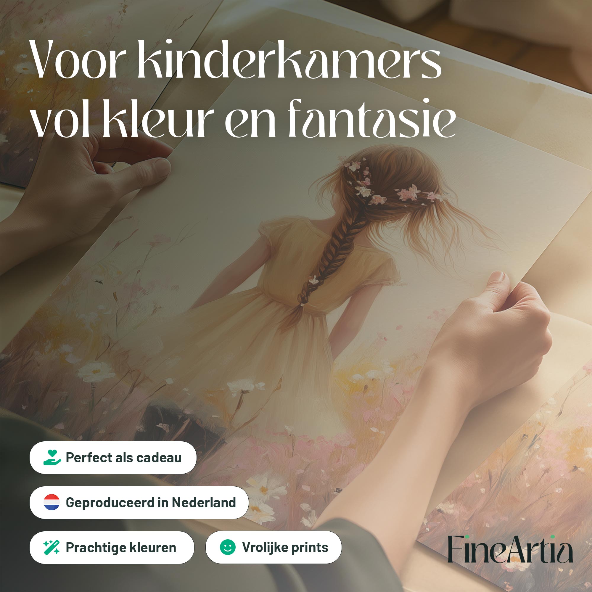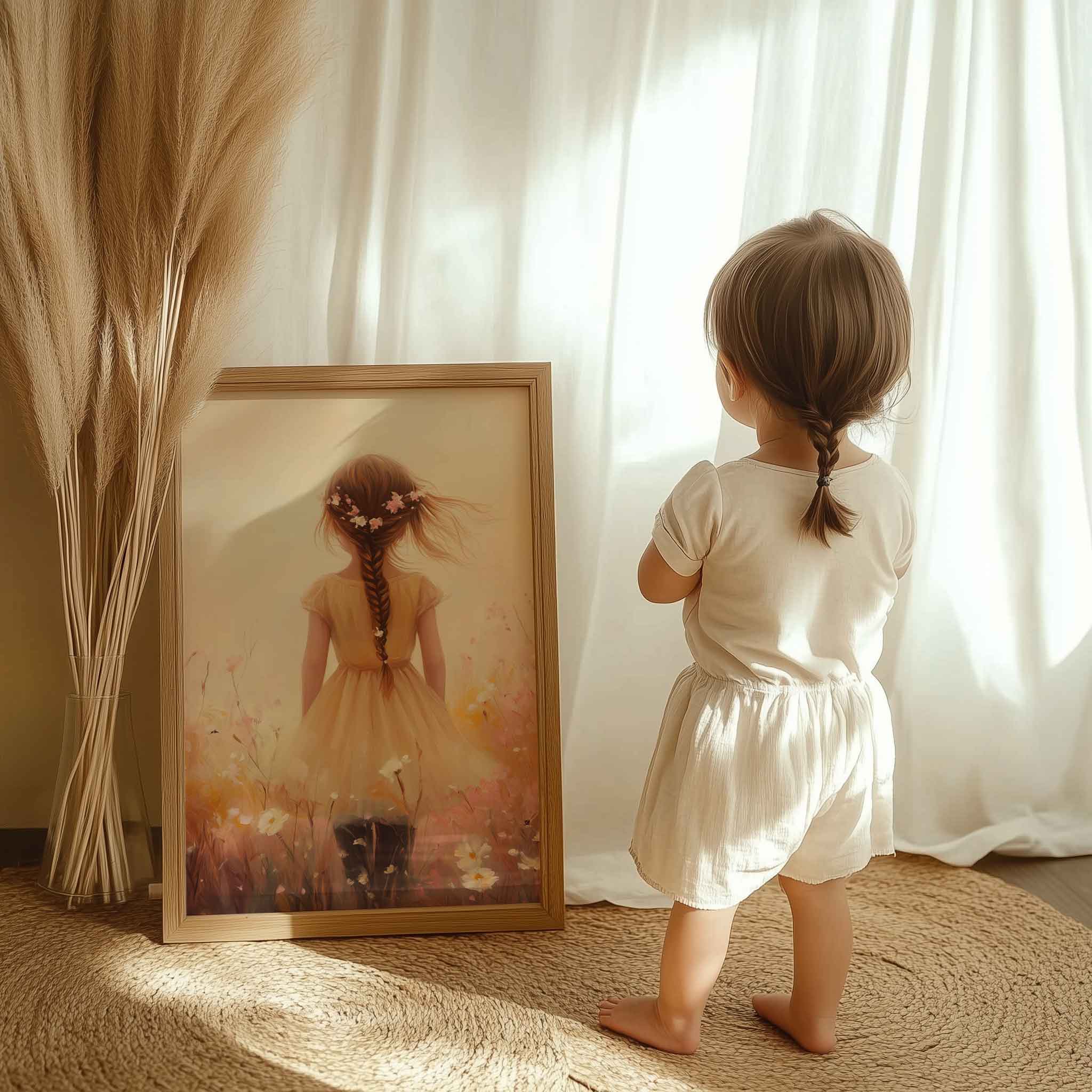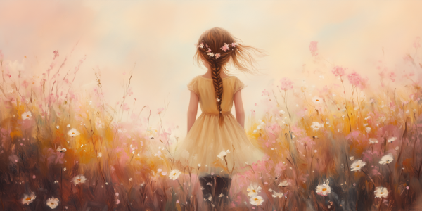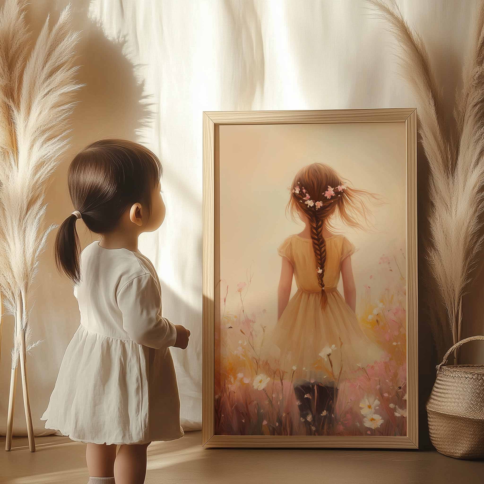 Speels Meisje in Bloemenveld – Dromerige Sfeer