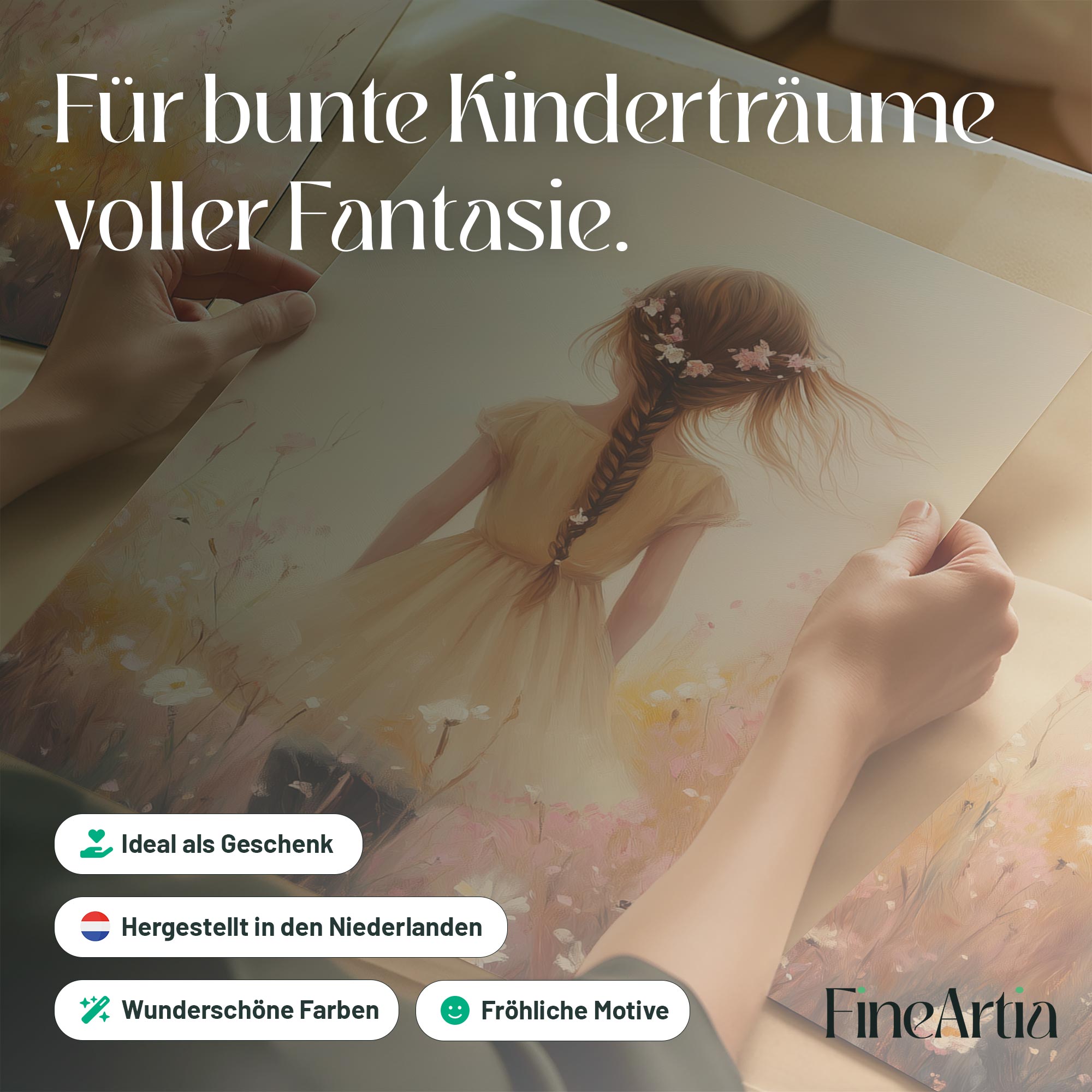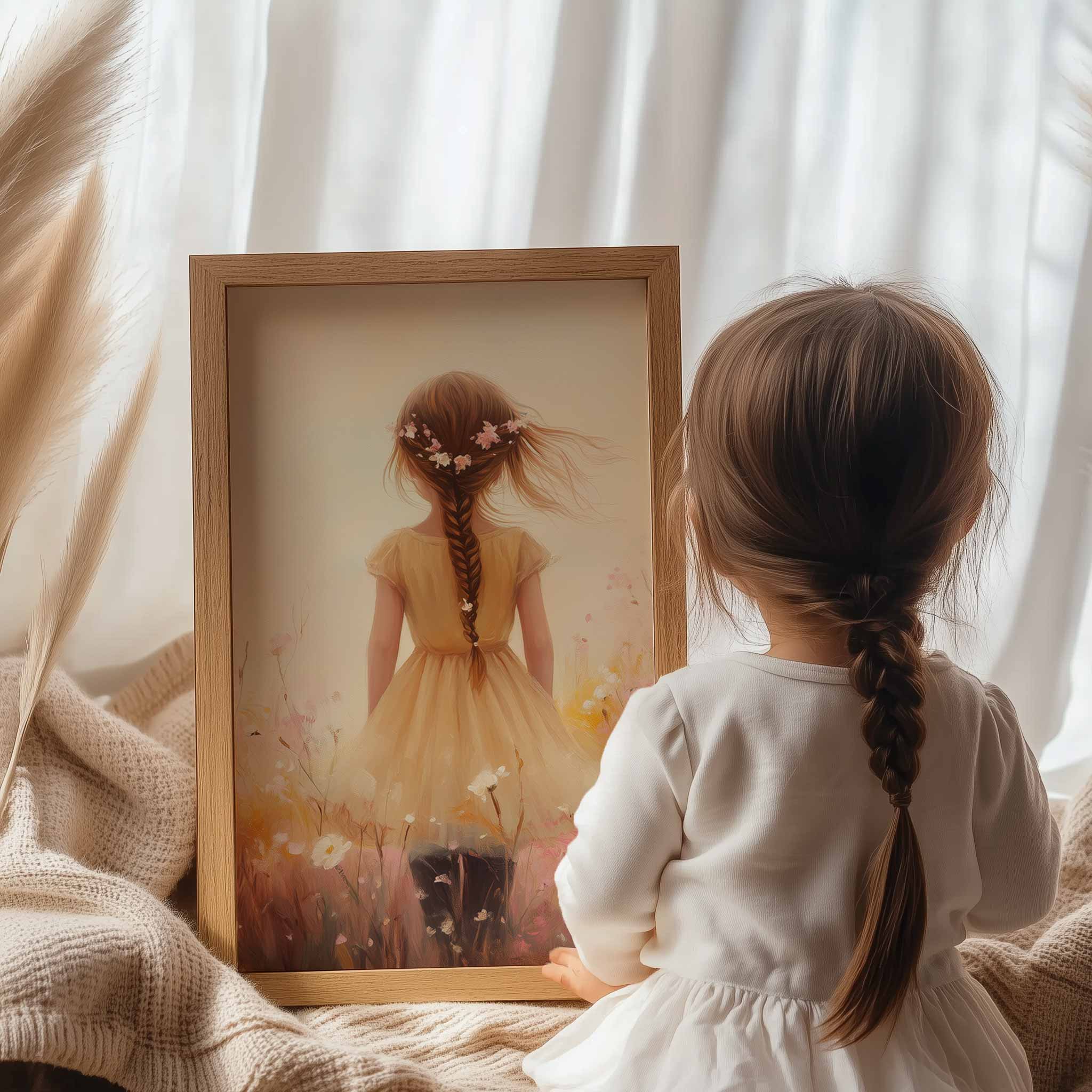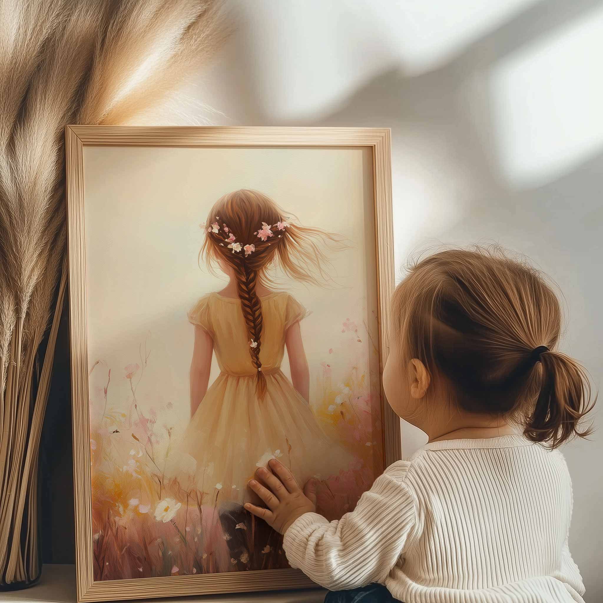 Speels Meisje in Bloemenveld – Dromerige Sfeer