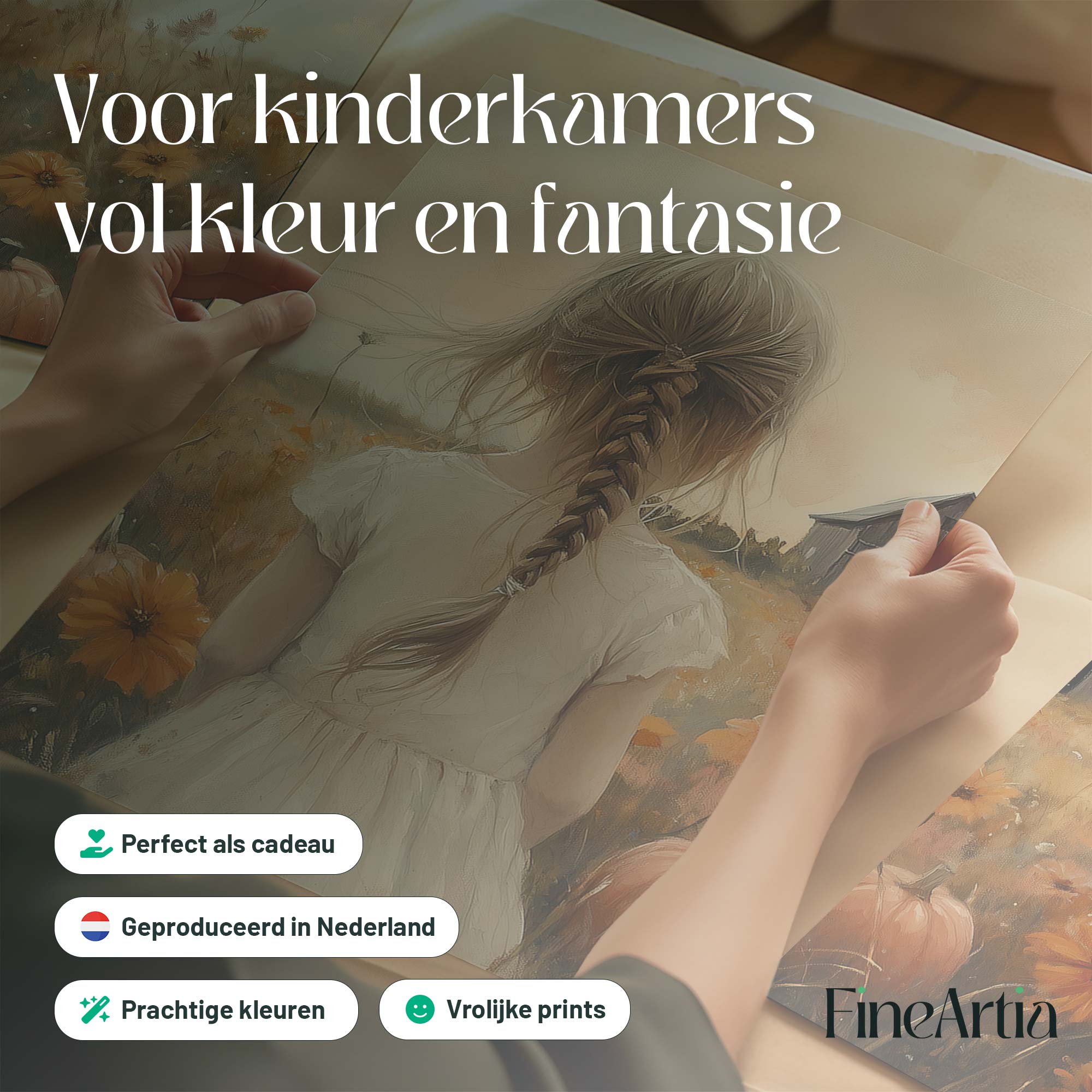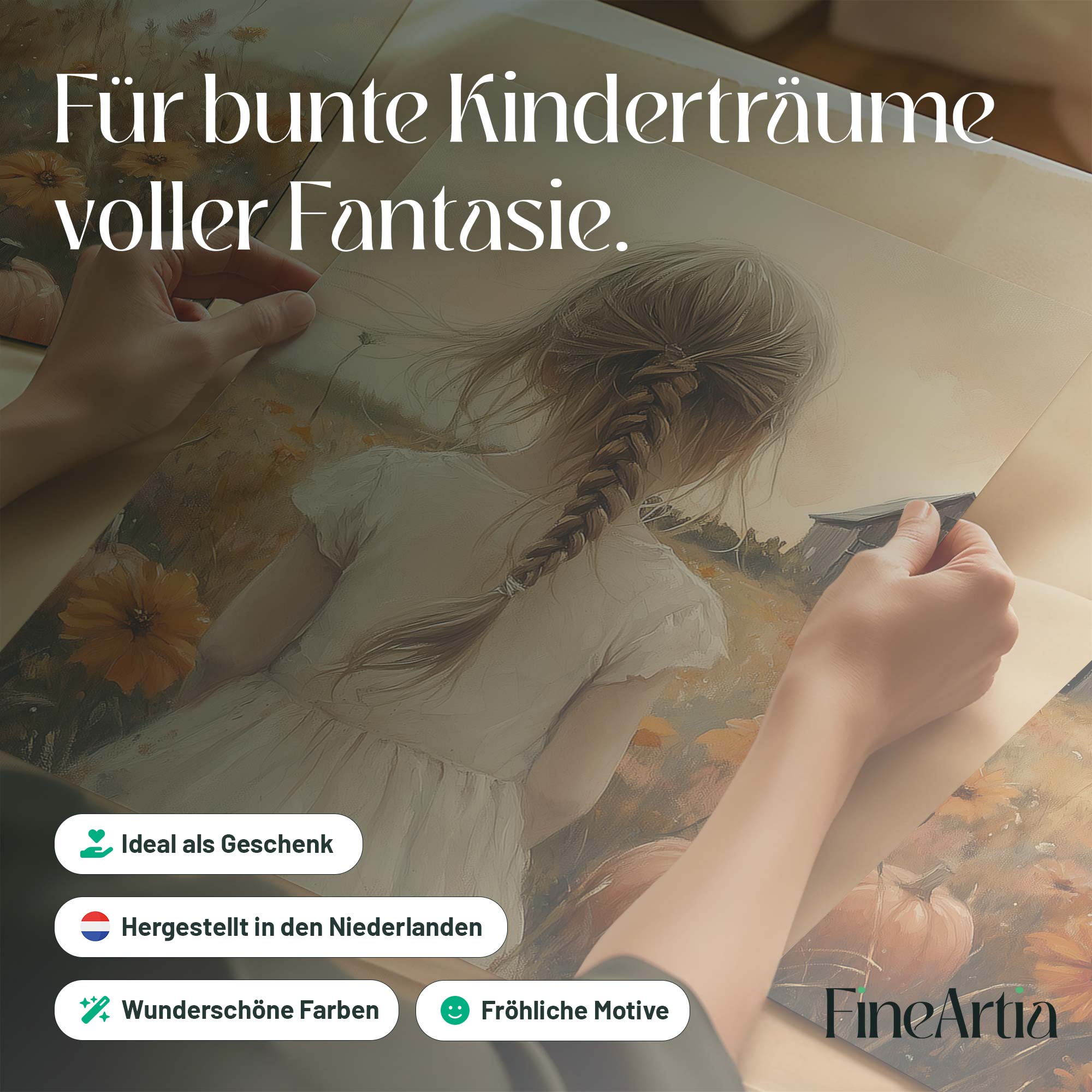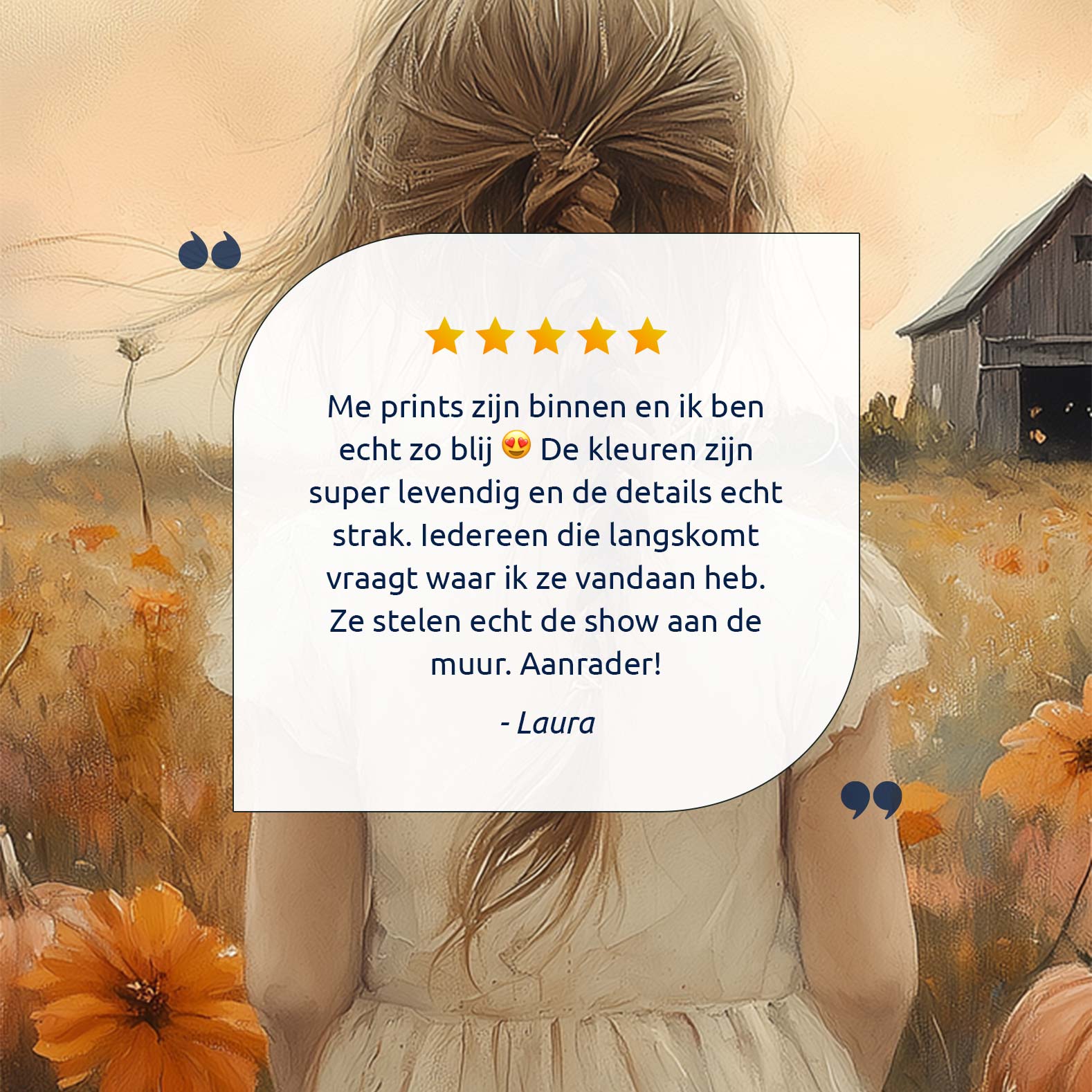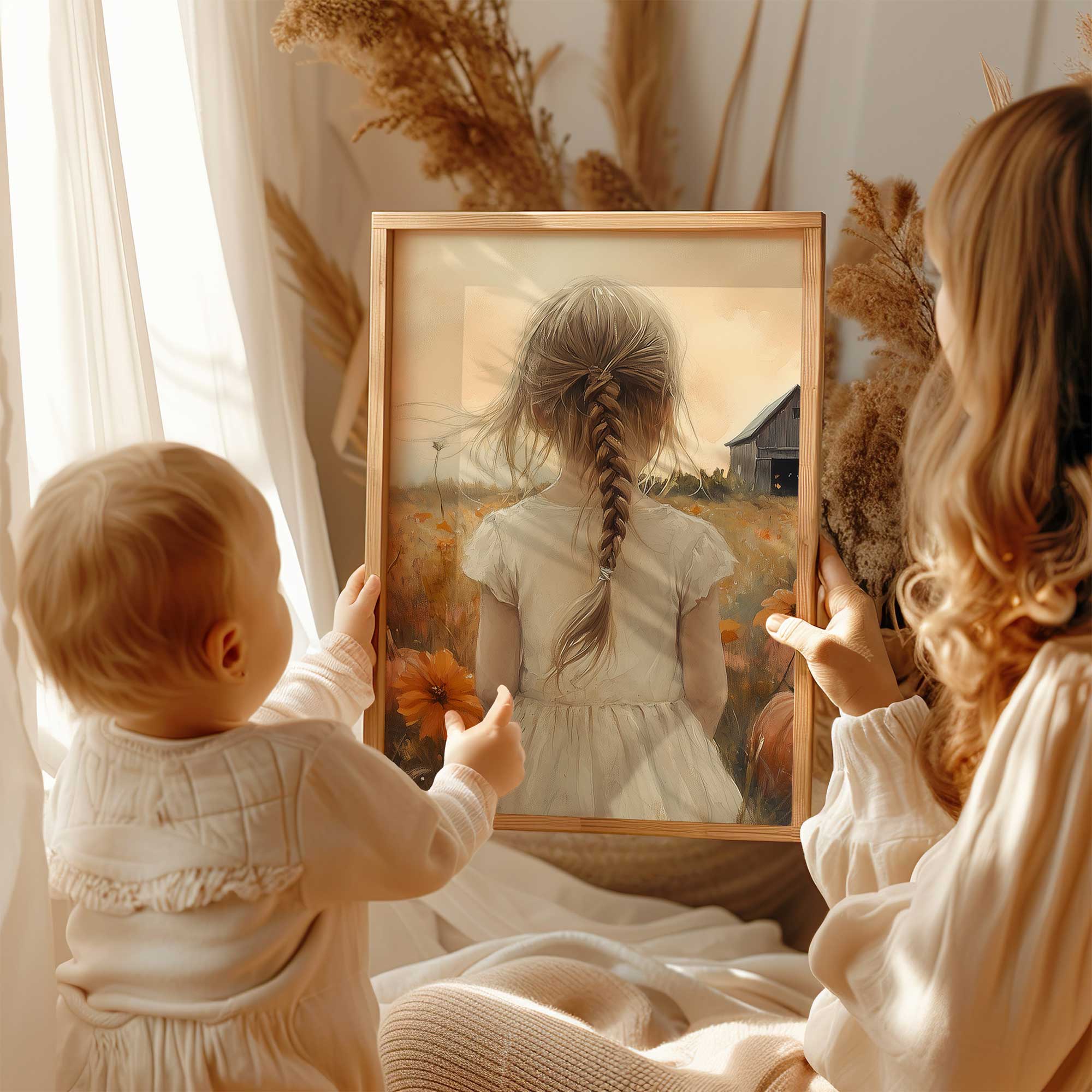 Speels Meisje in Bloemenveld met Pompoenen en Schuur