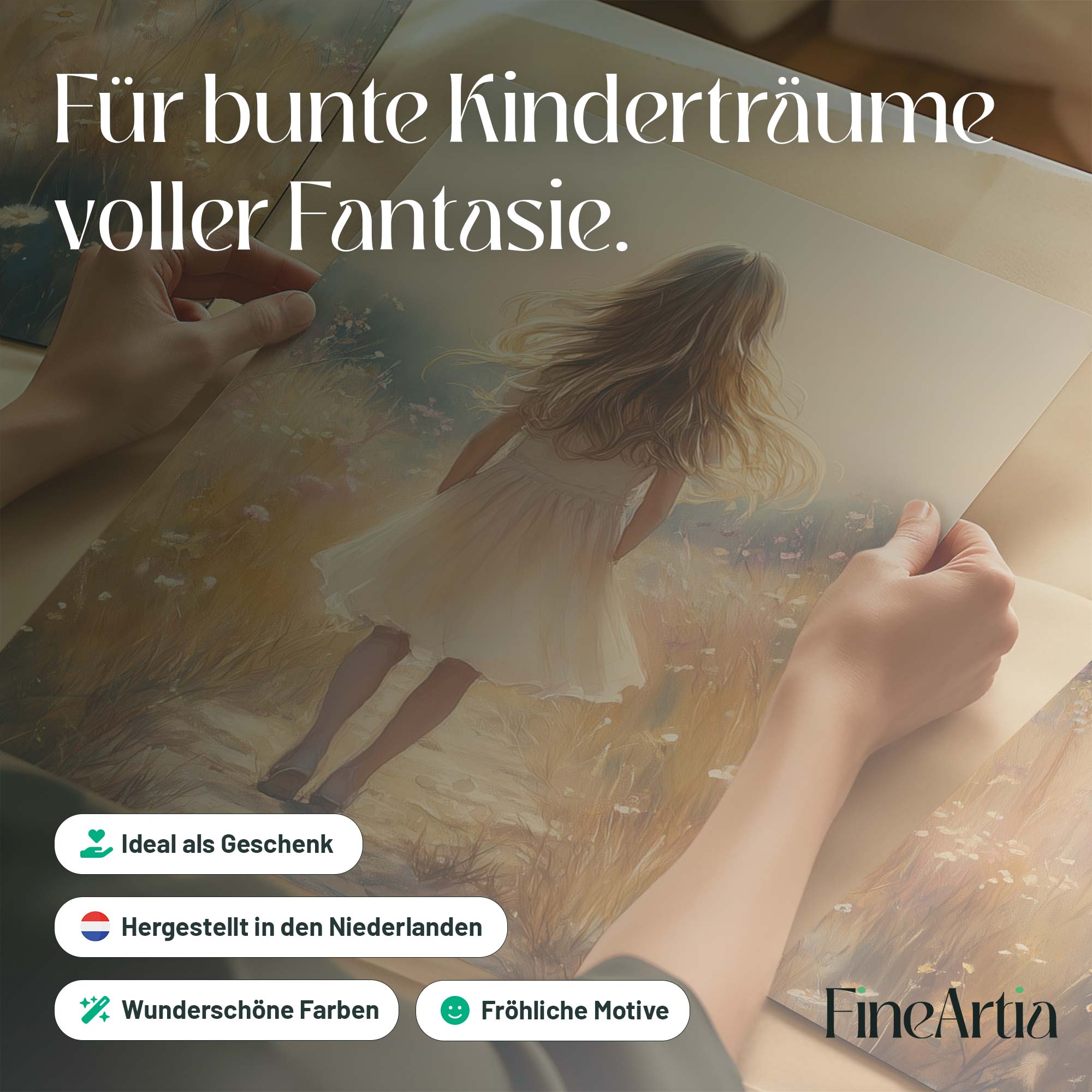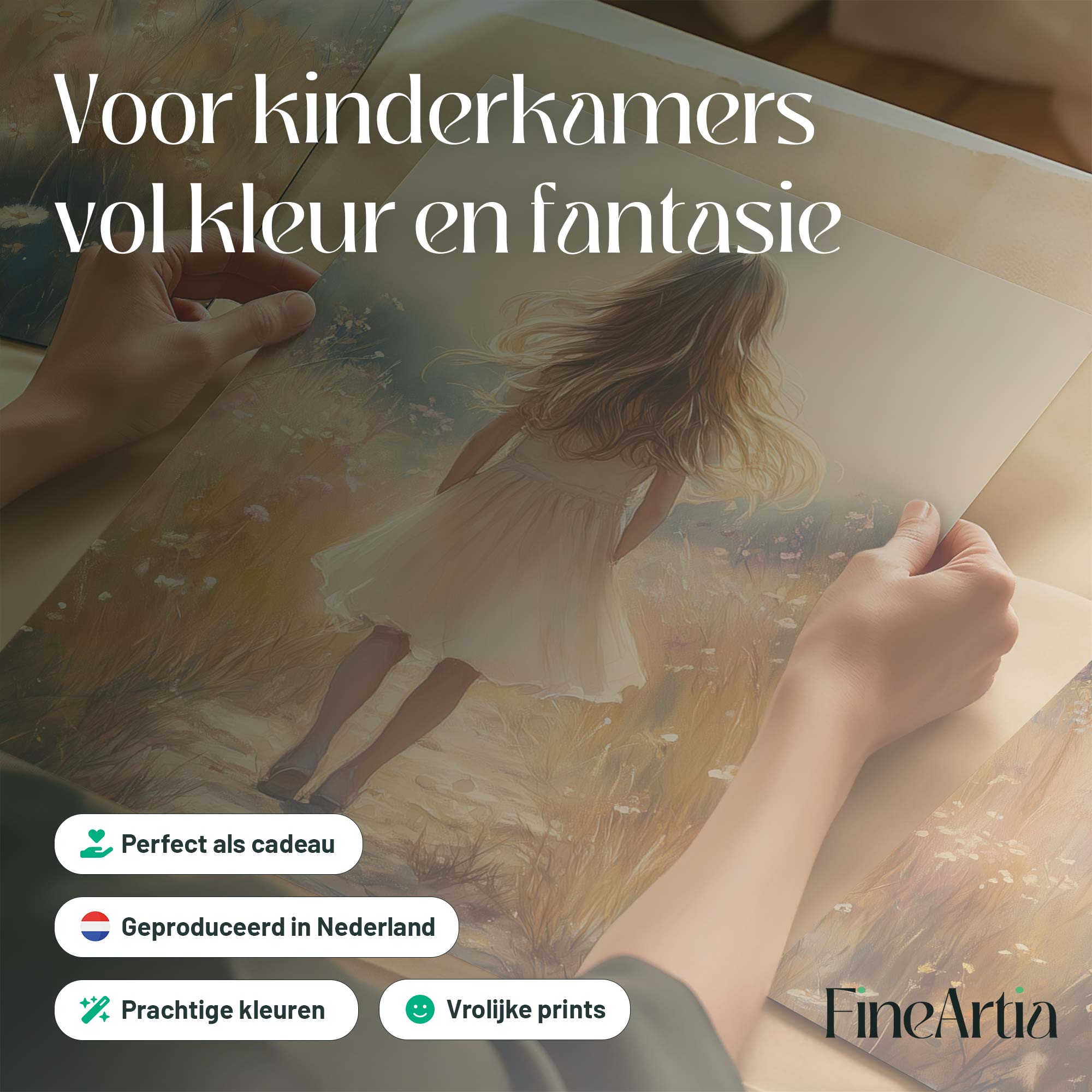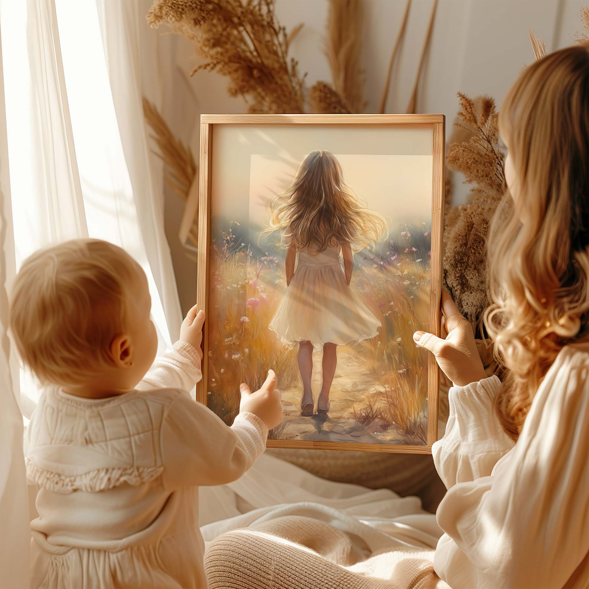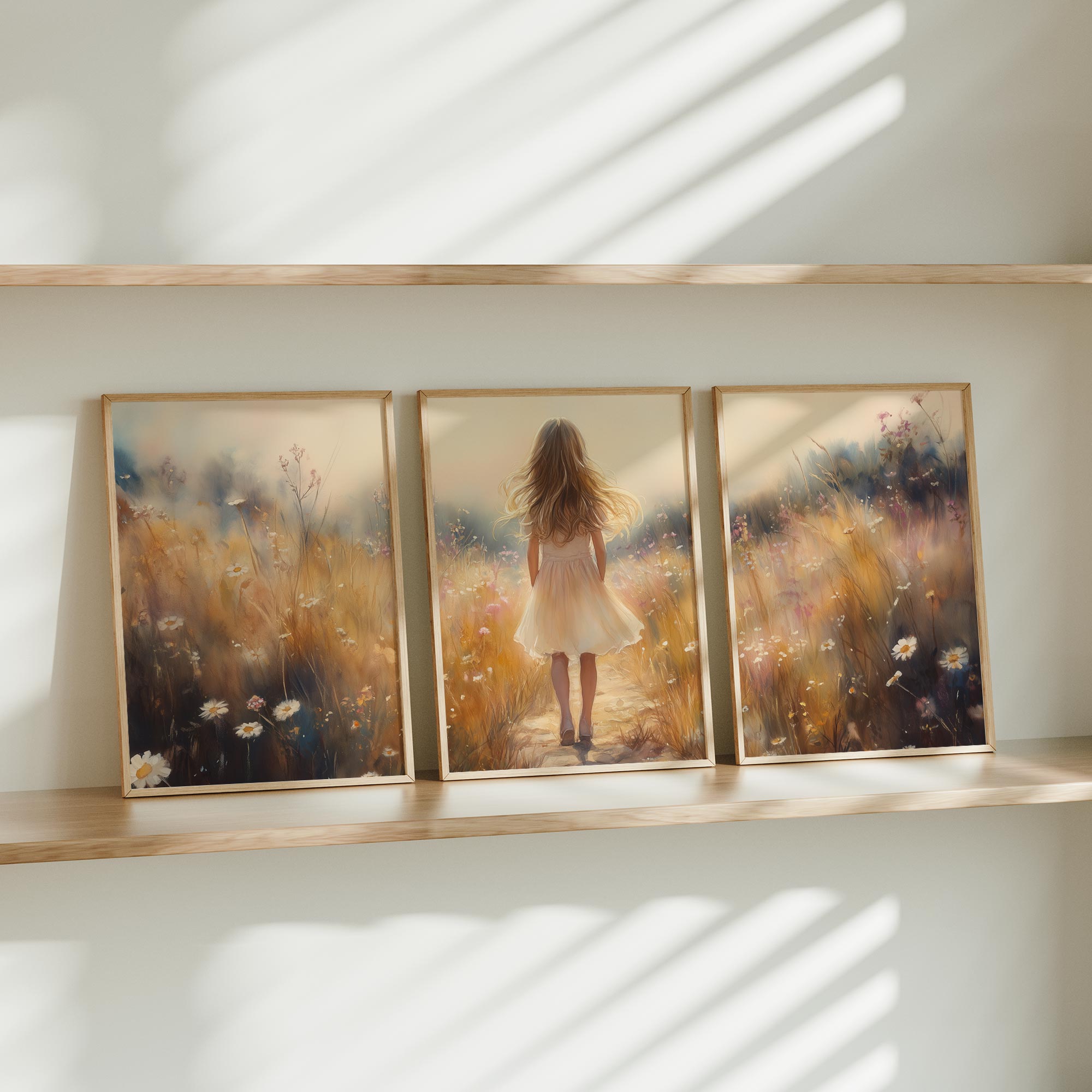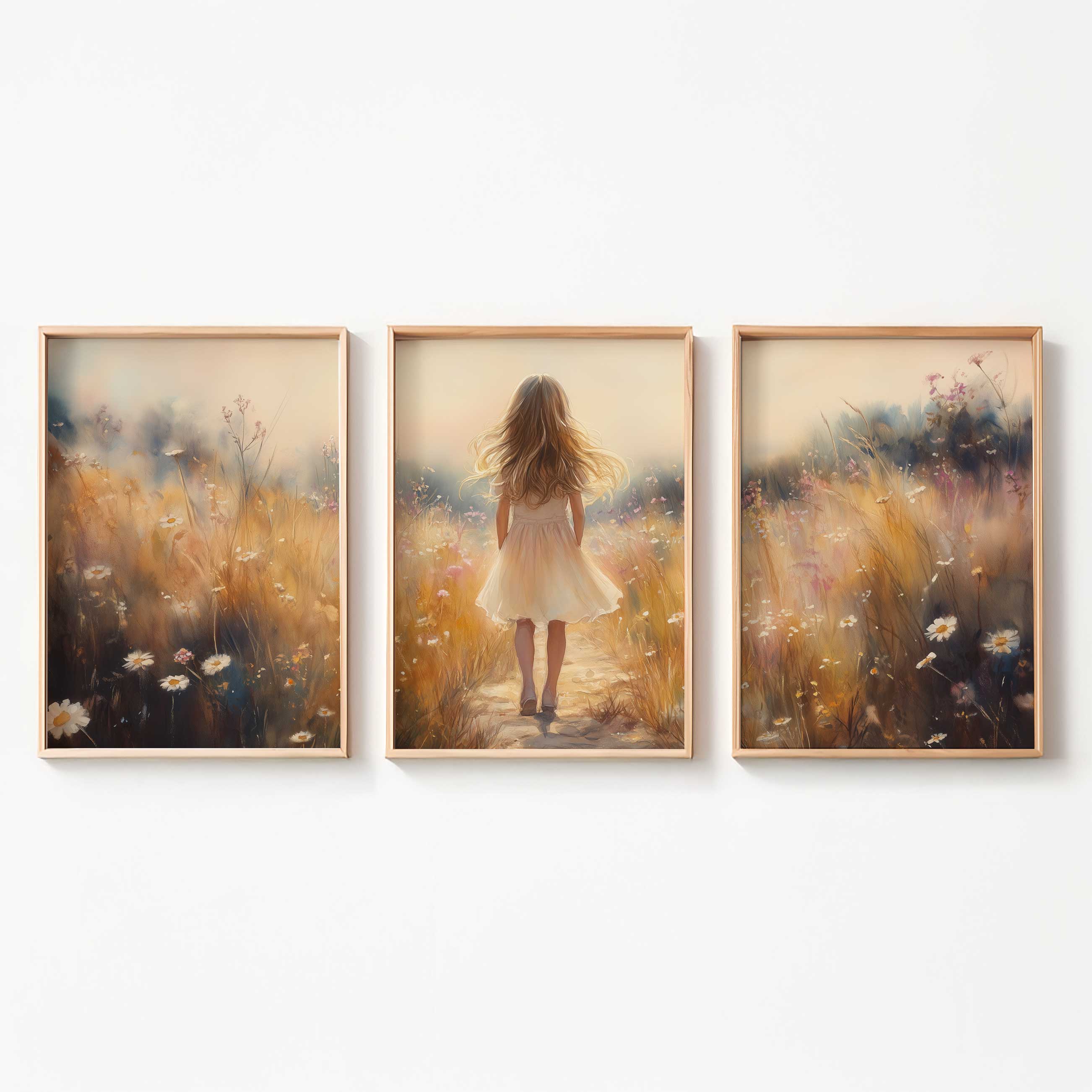 Terug naar collectie Posters Speels Meisje in Bloemenveld – Pastel Schilderij