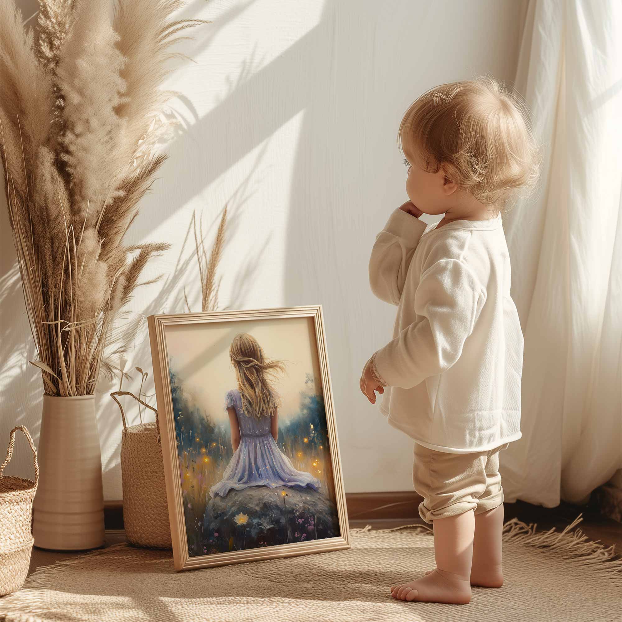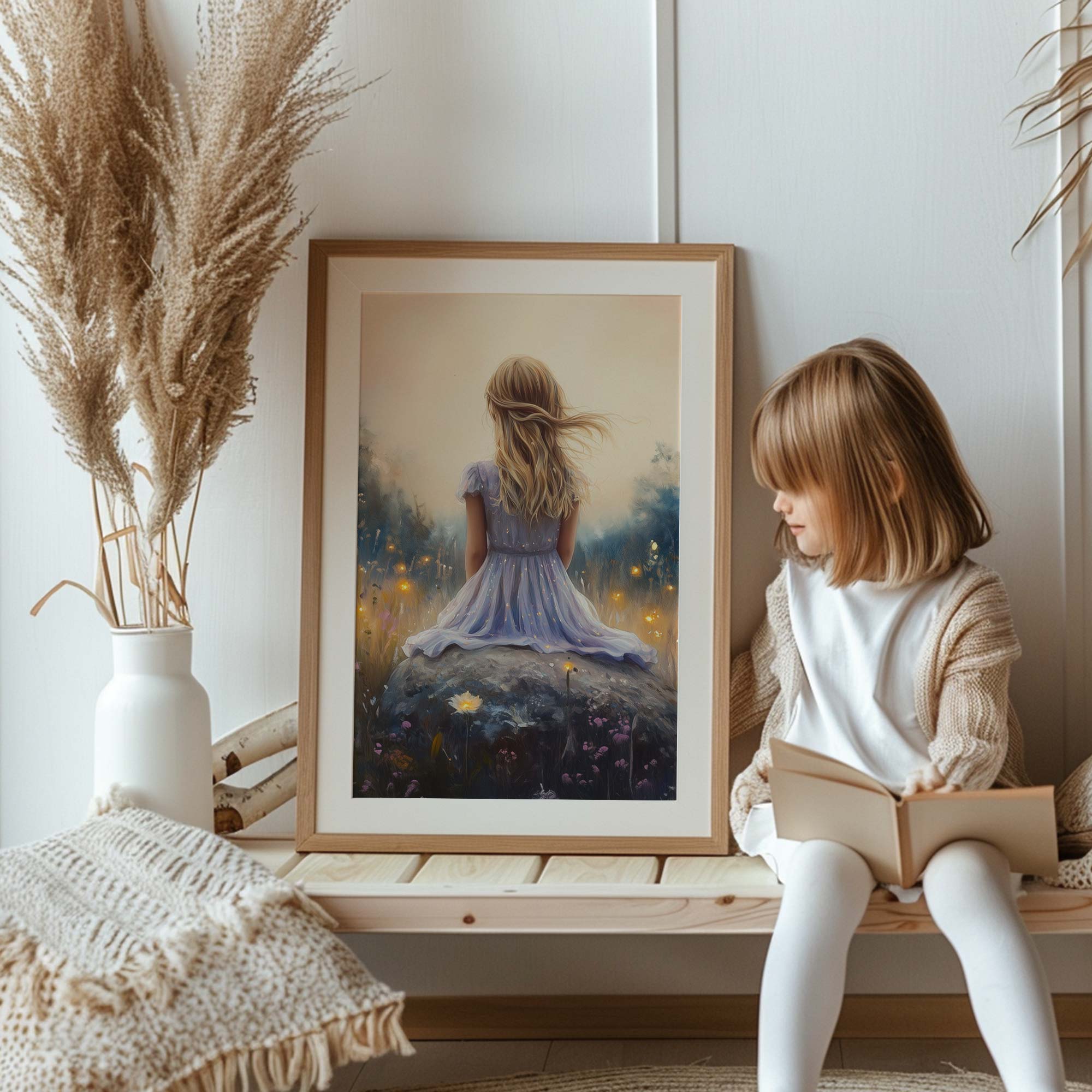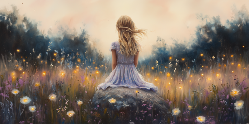 Speels Meisje in Bloemenveld – Pastel Schilderij