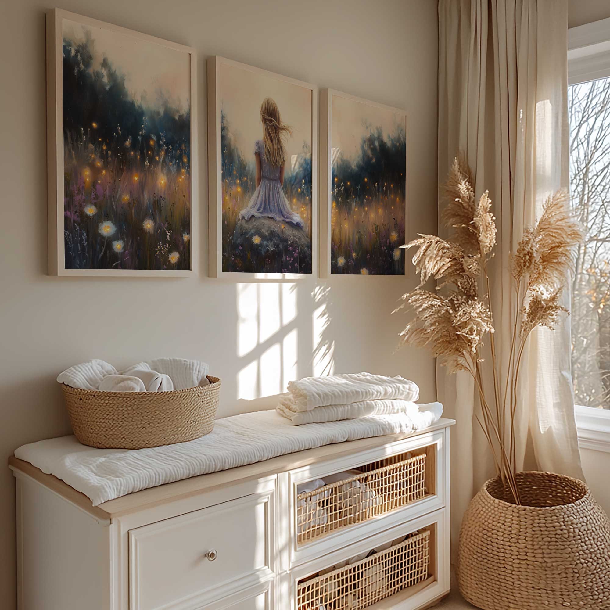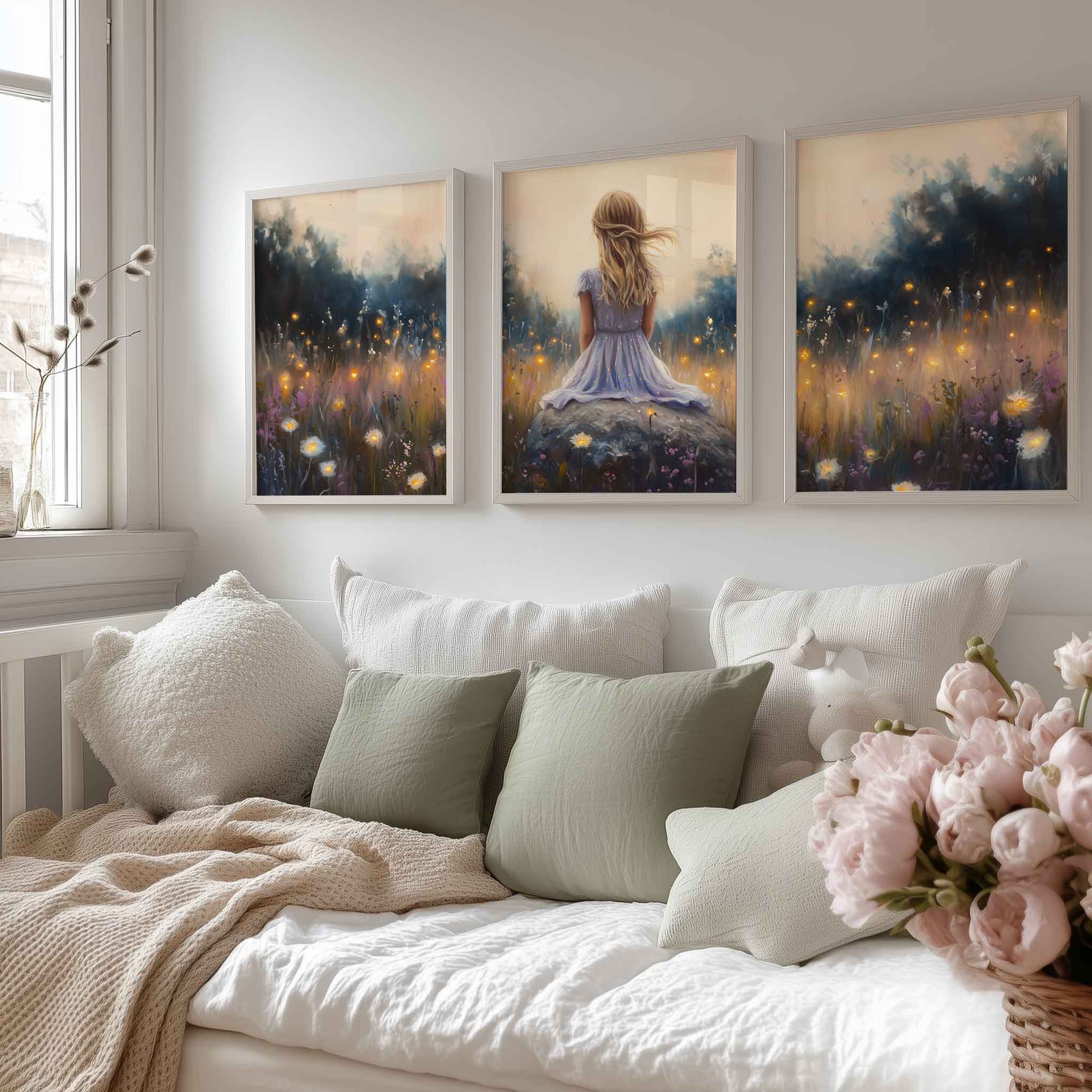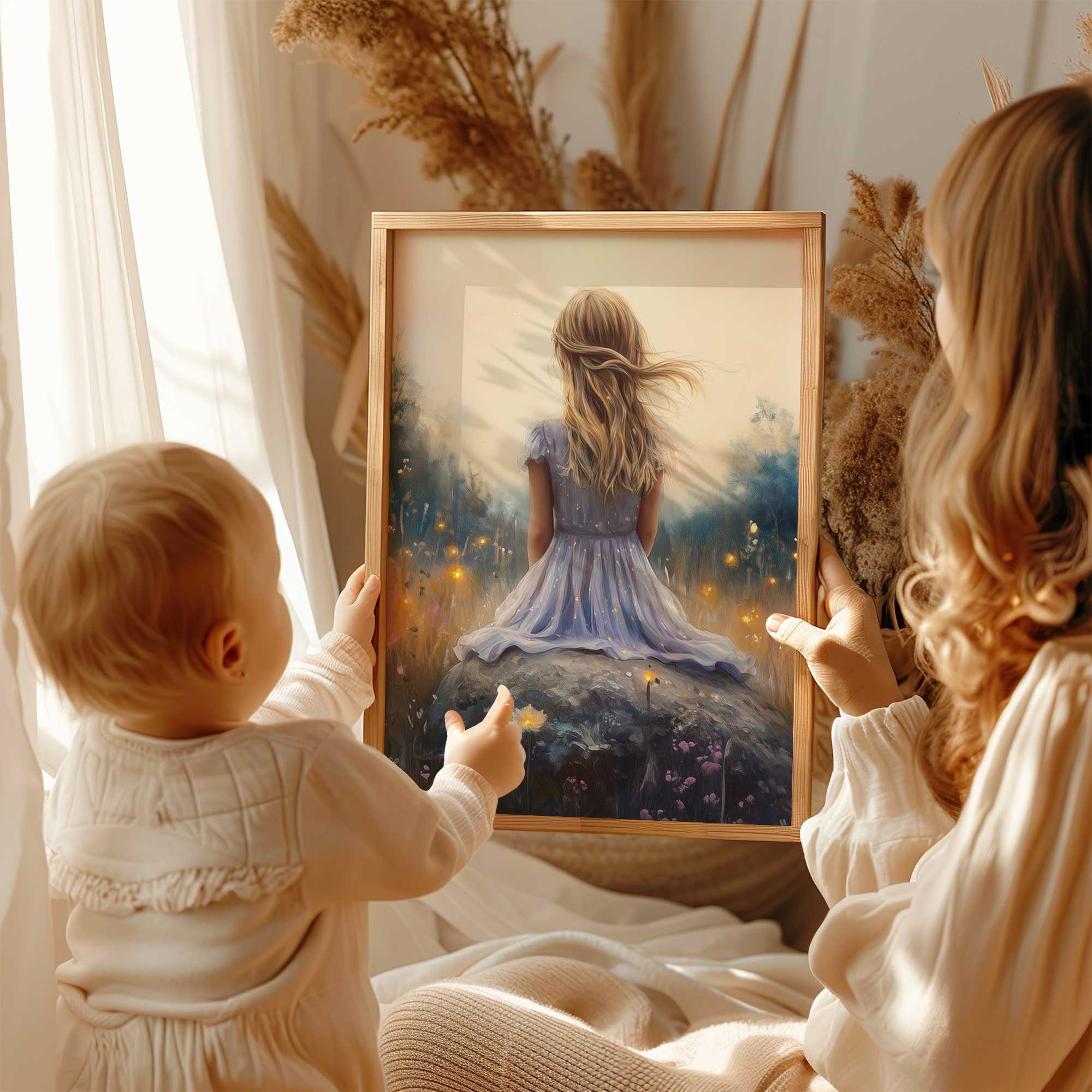 Speels Meisje in Bloemenveld – Pastel Schilderij