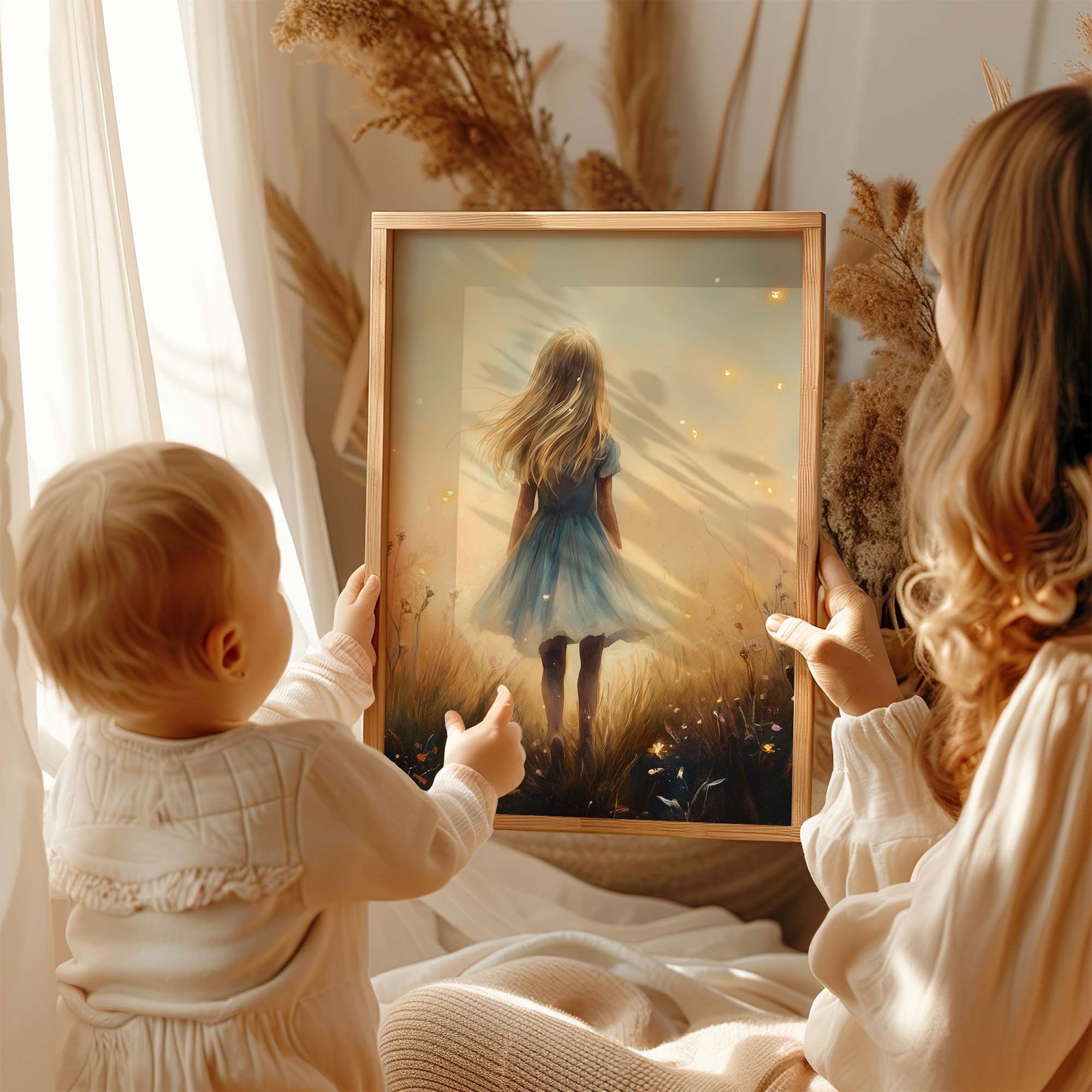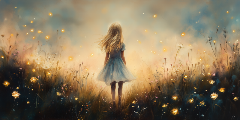 Speels Meisje in Dromerig Bloemenveld