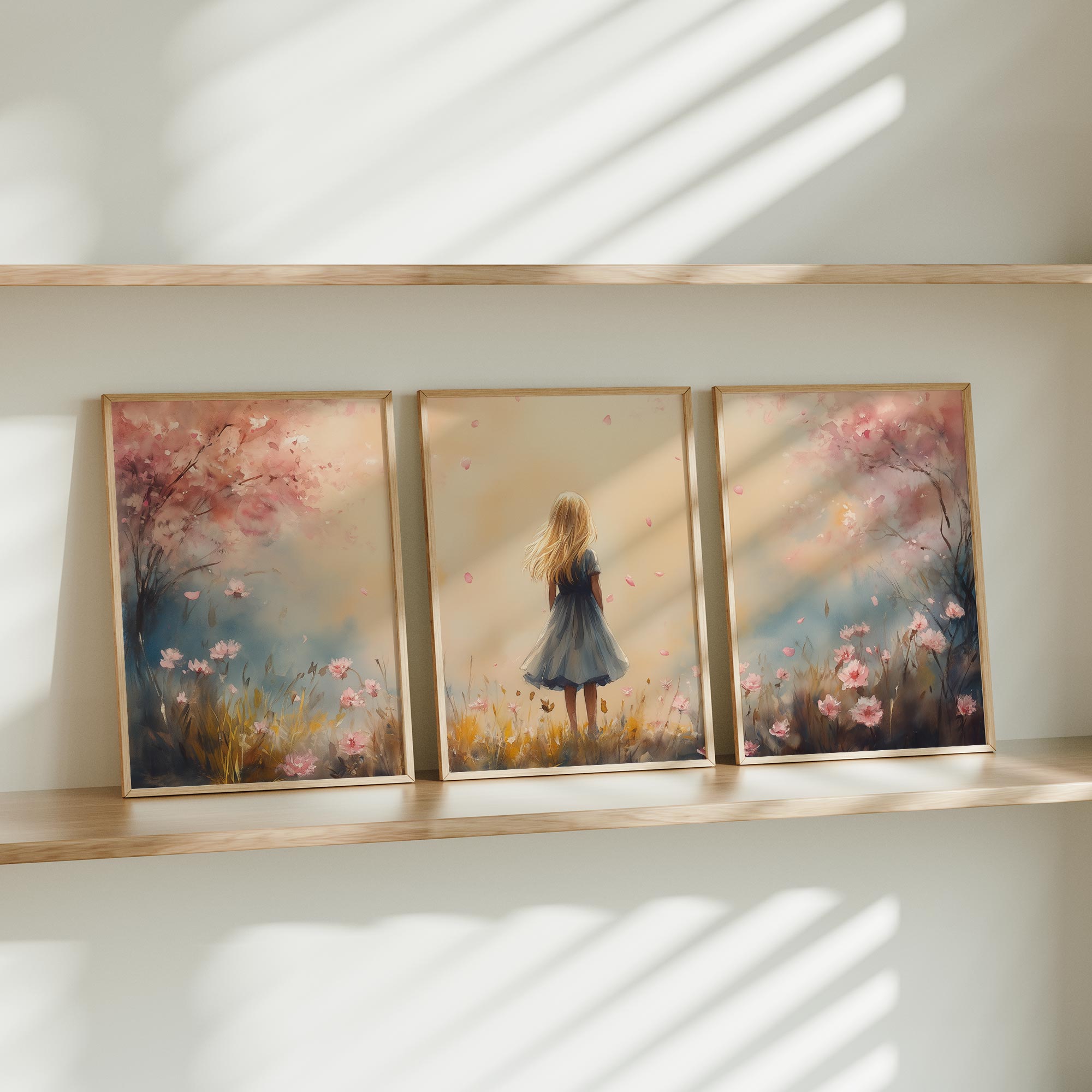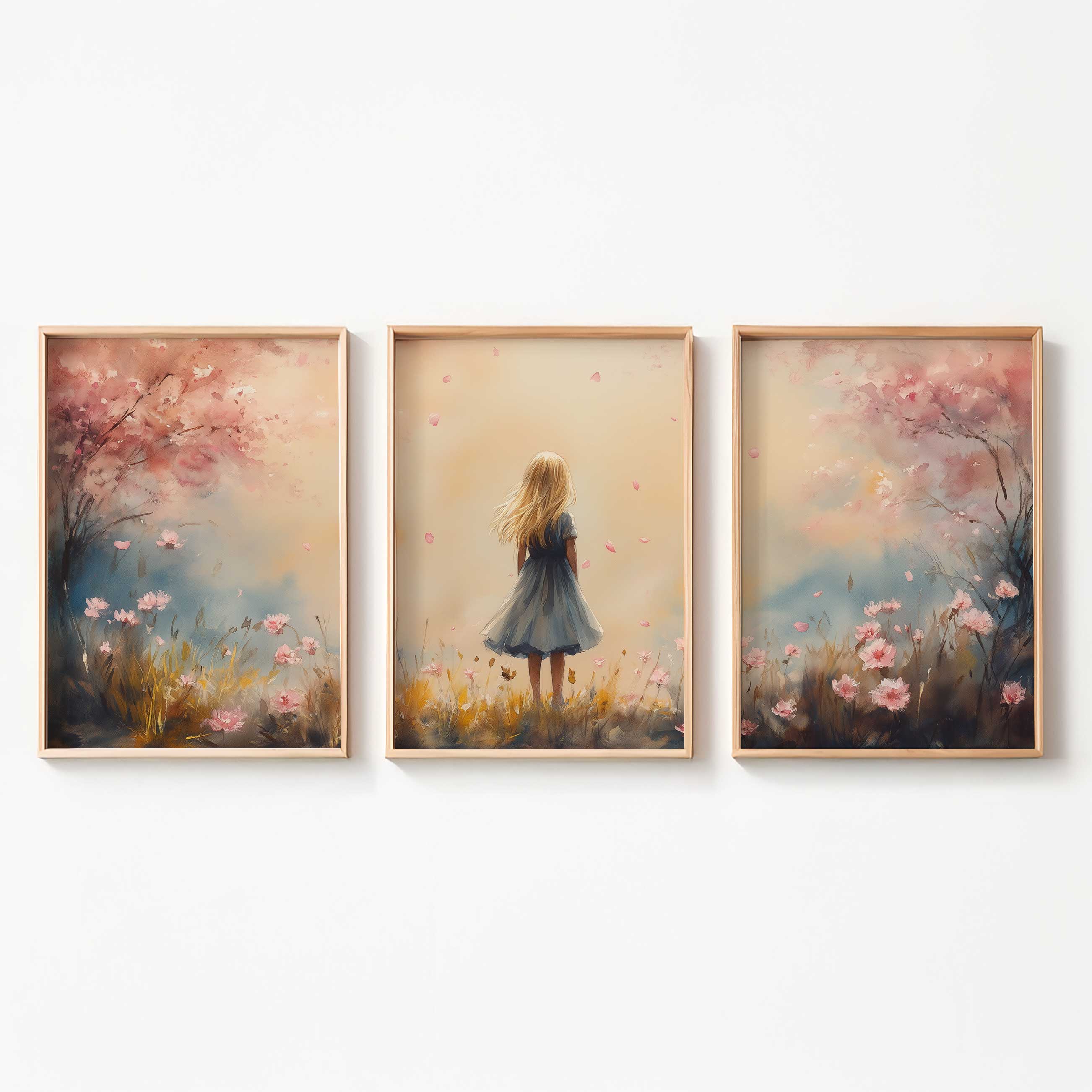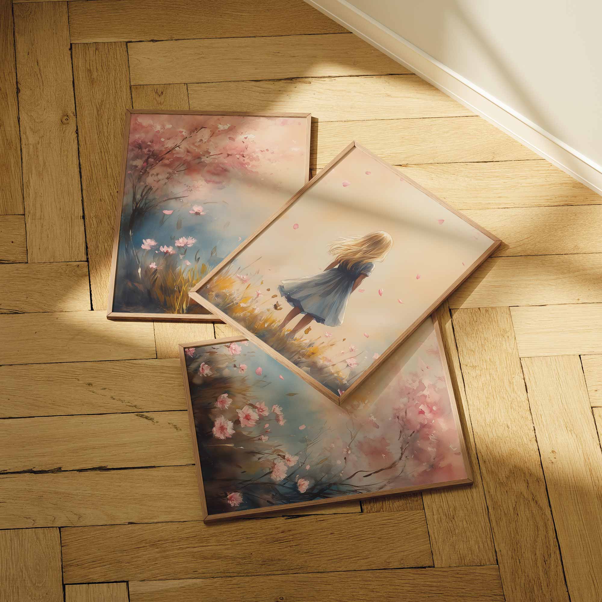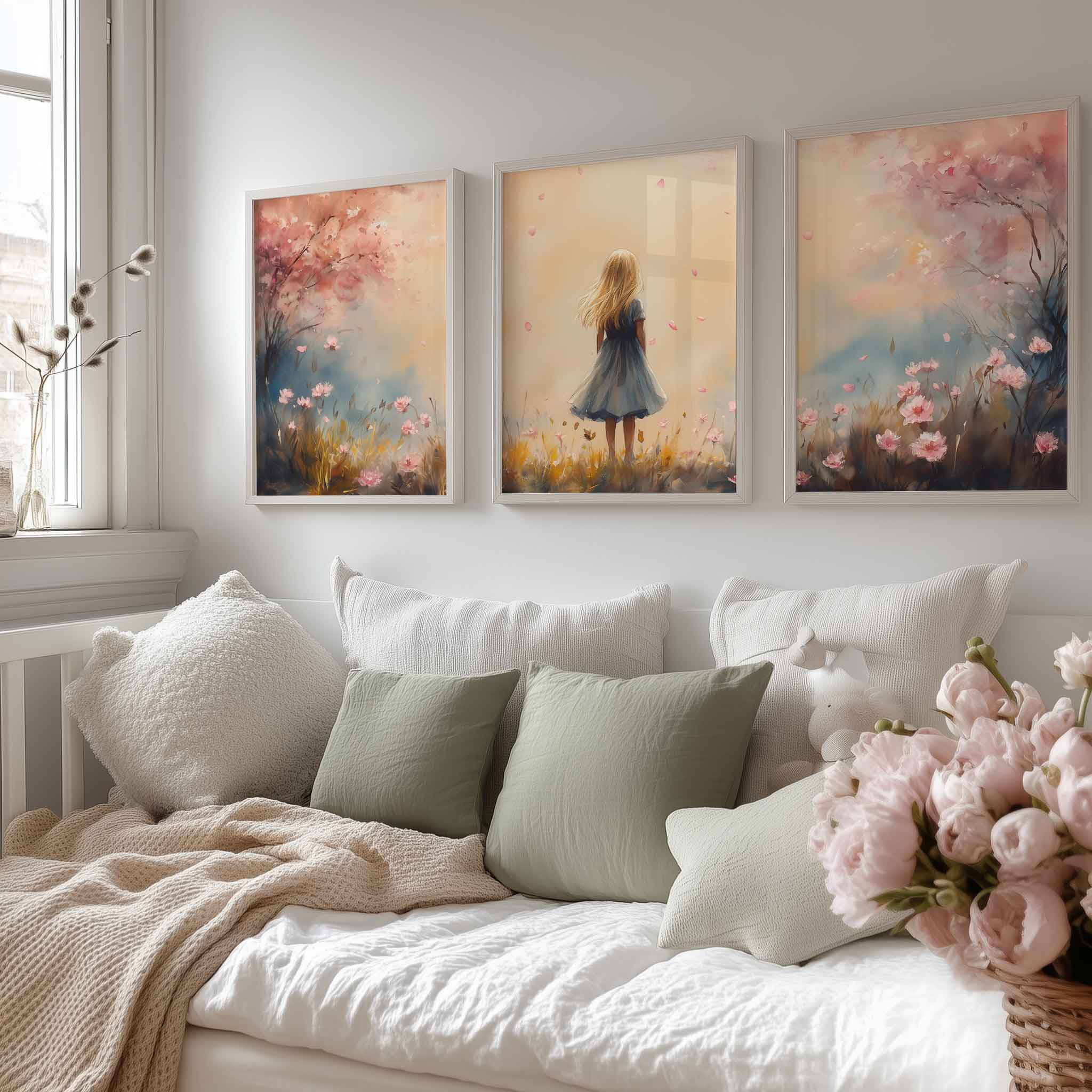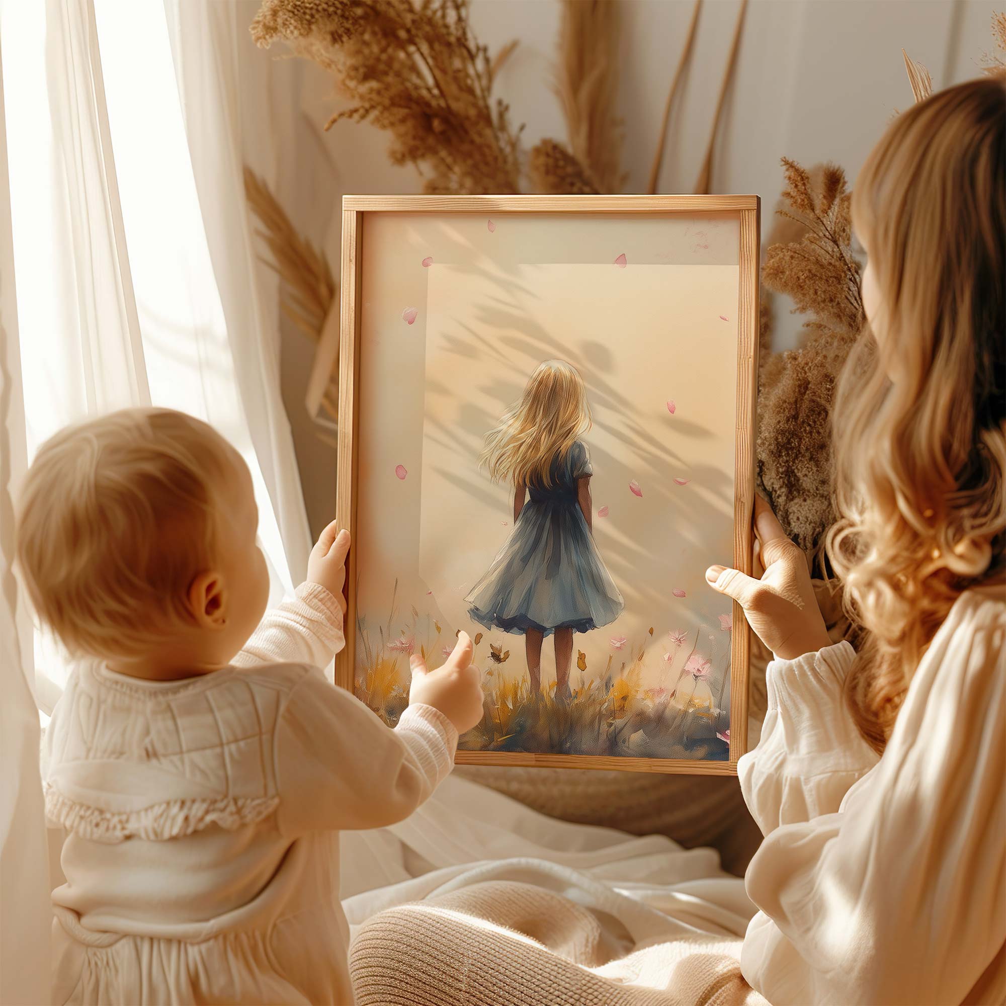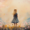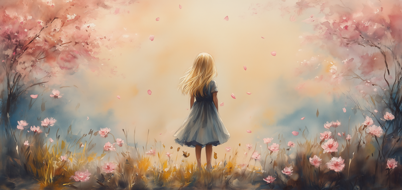Speels Meisje in Roze Bloemenveld – Zachte Sfeer