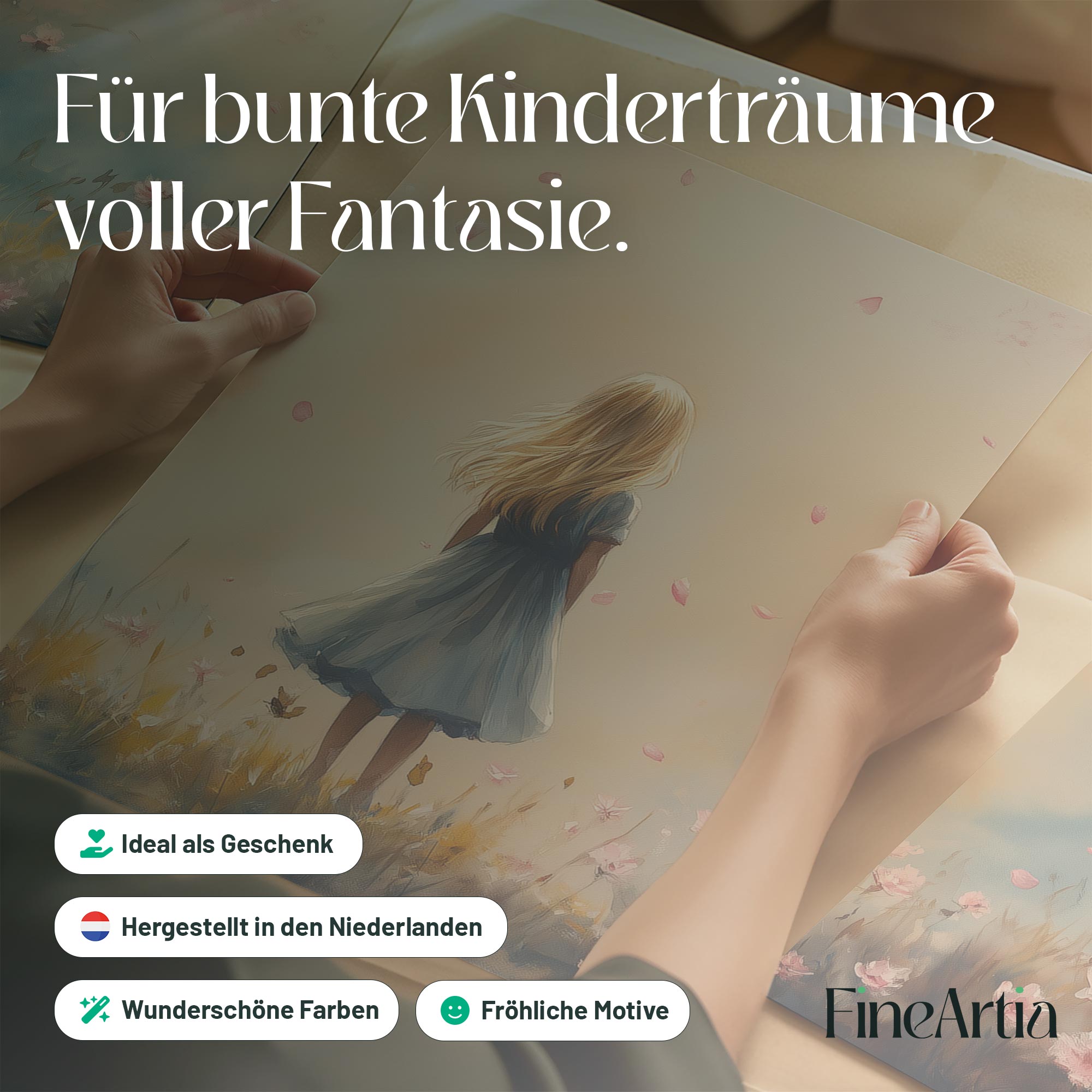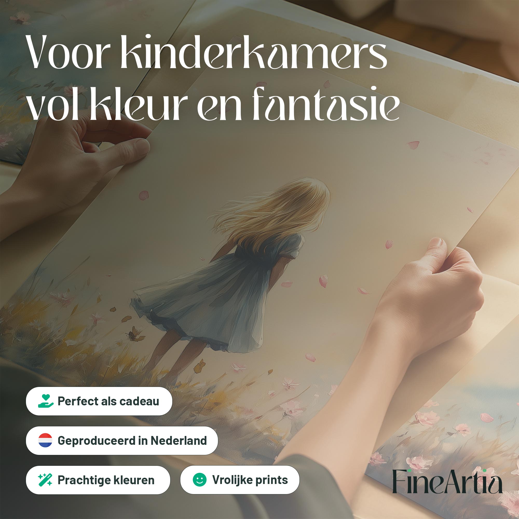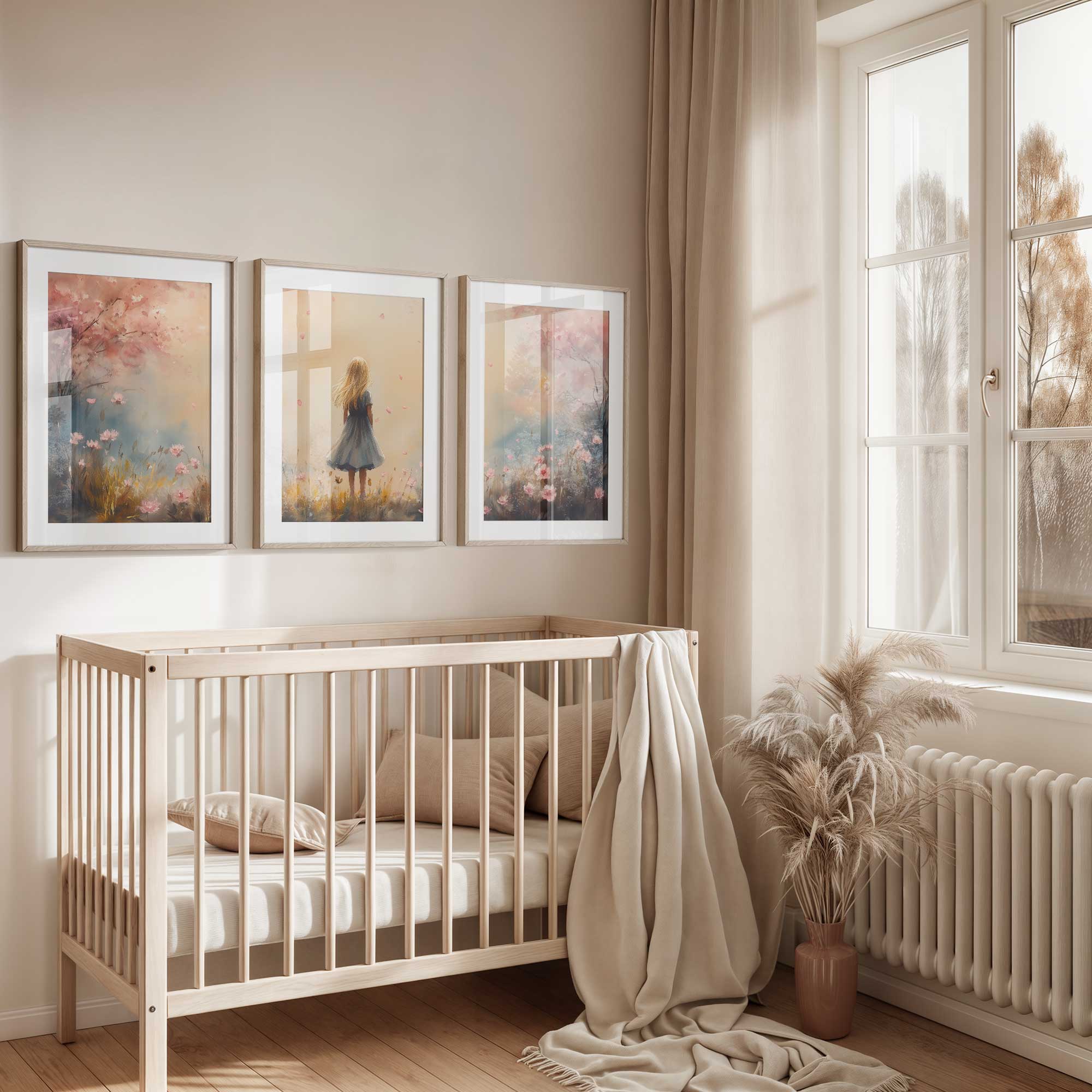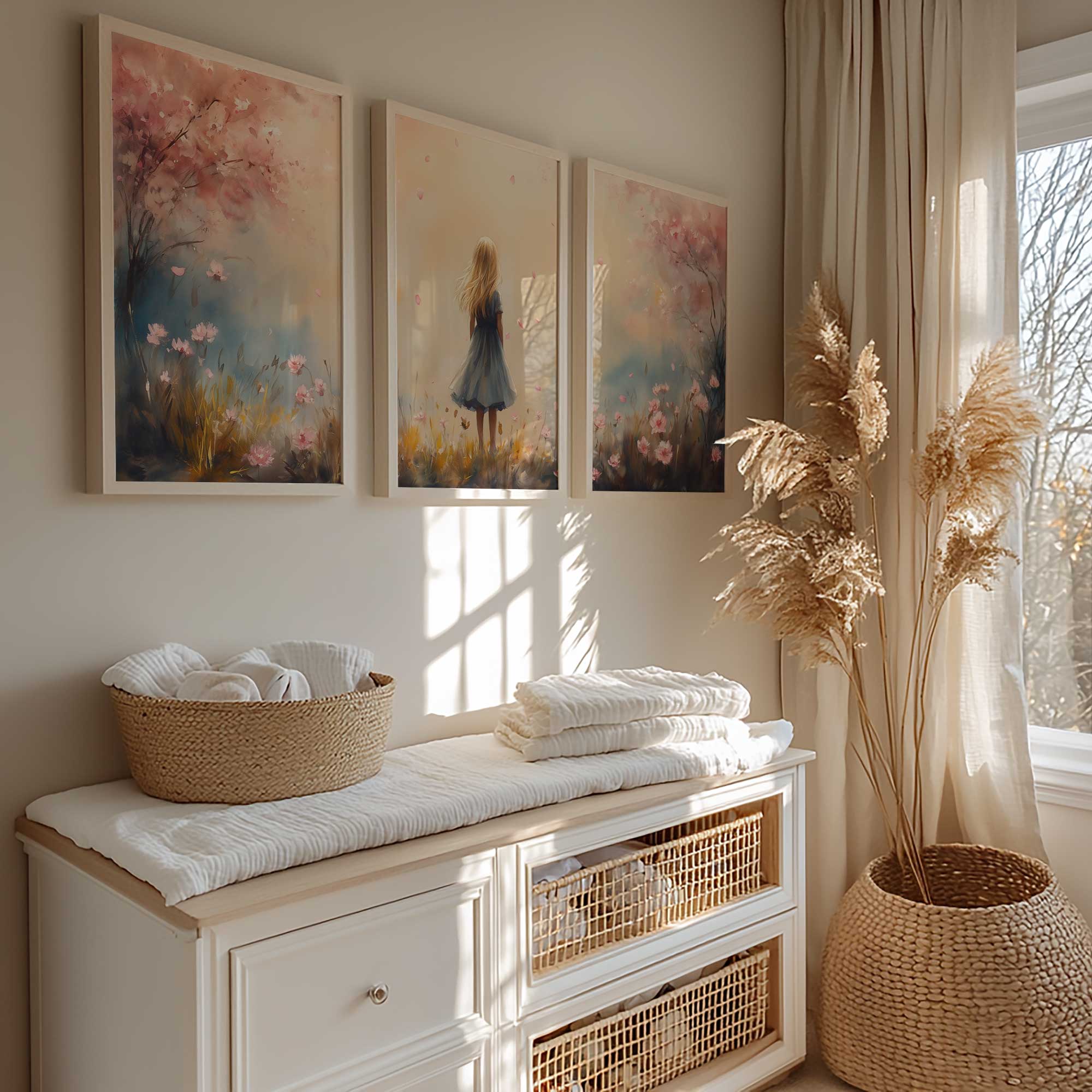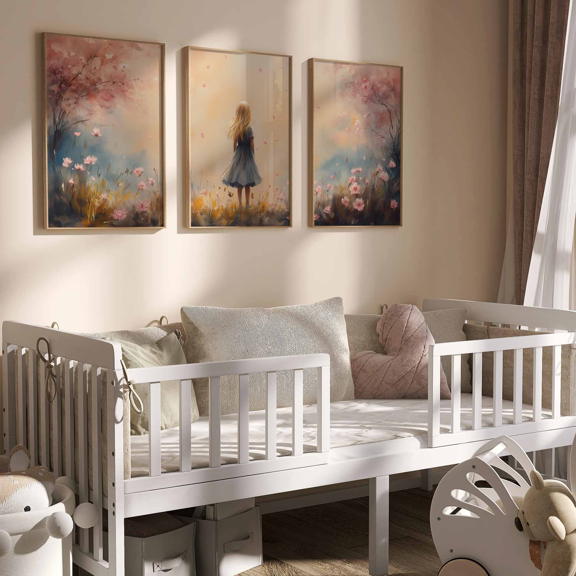 Speels Meisje in Roze Bloemenveld – Zachte Sfeer