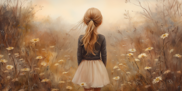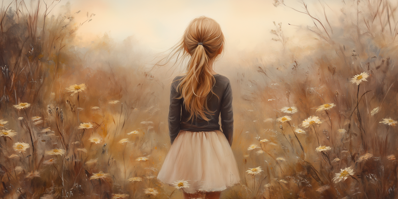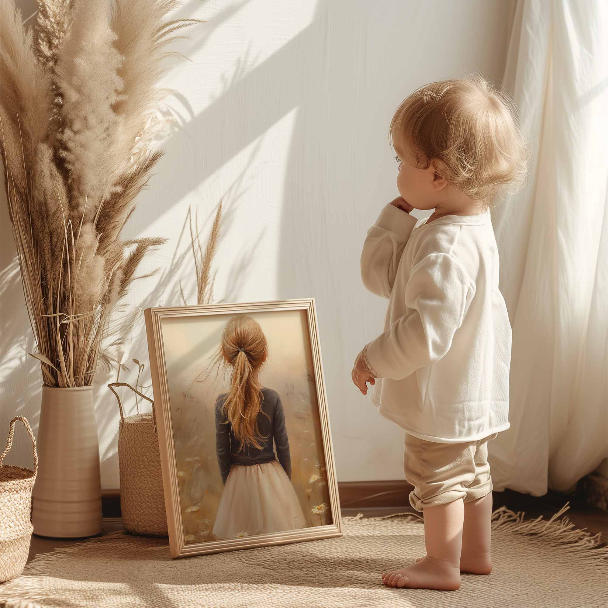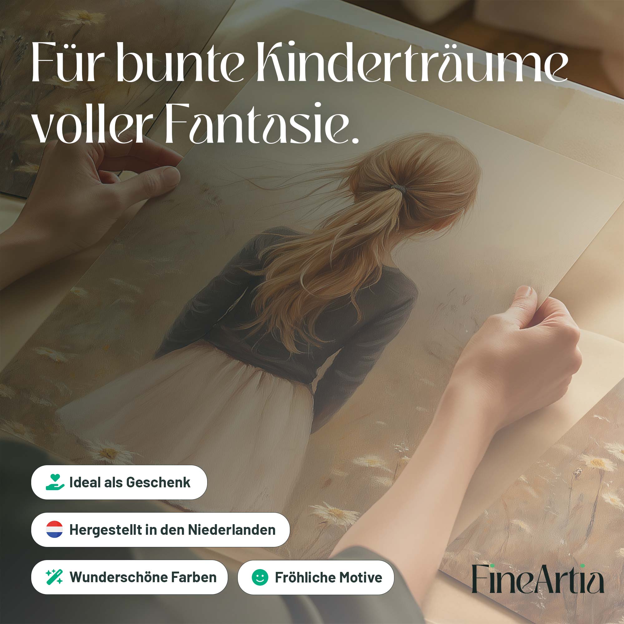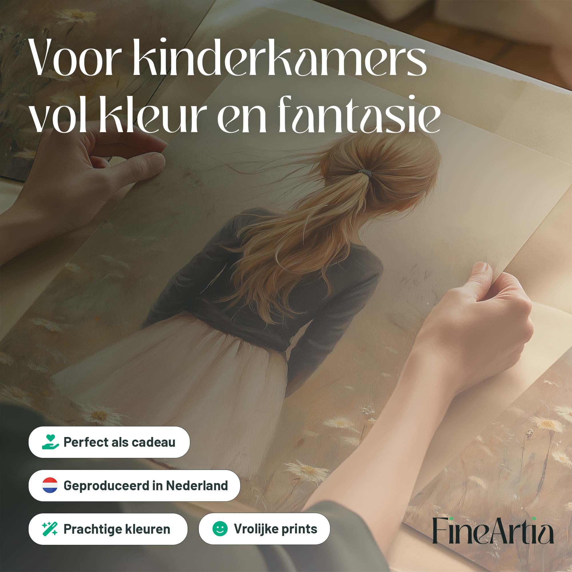 Terug naar collectie Posters Speels Meisje in Zonnig Bloemenveld