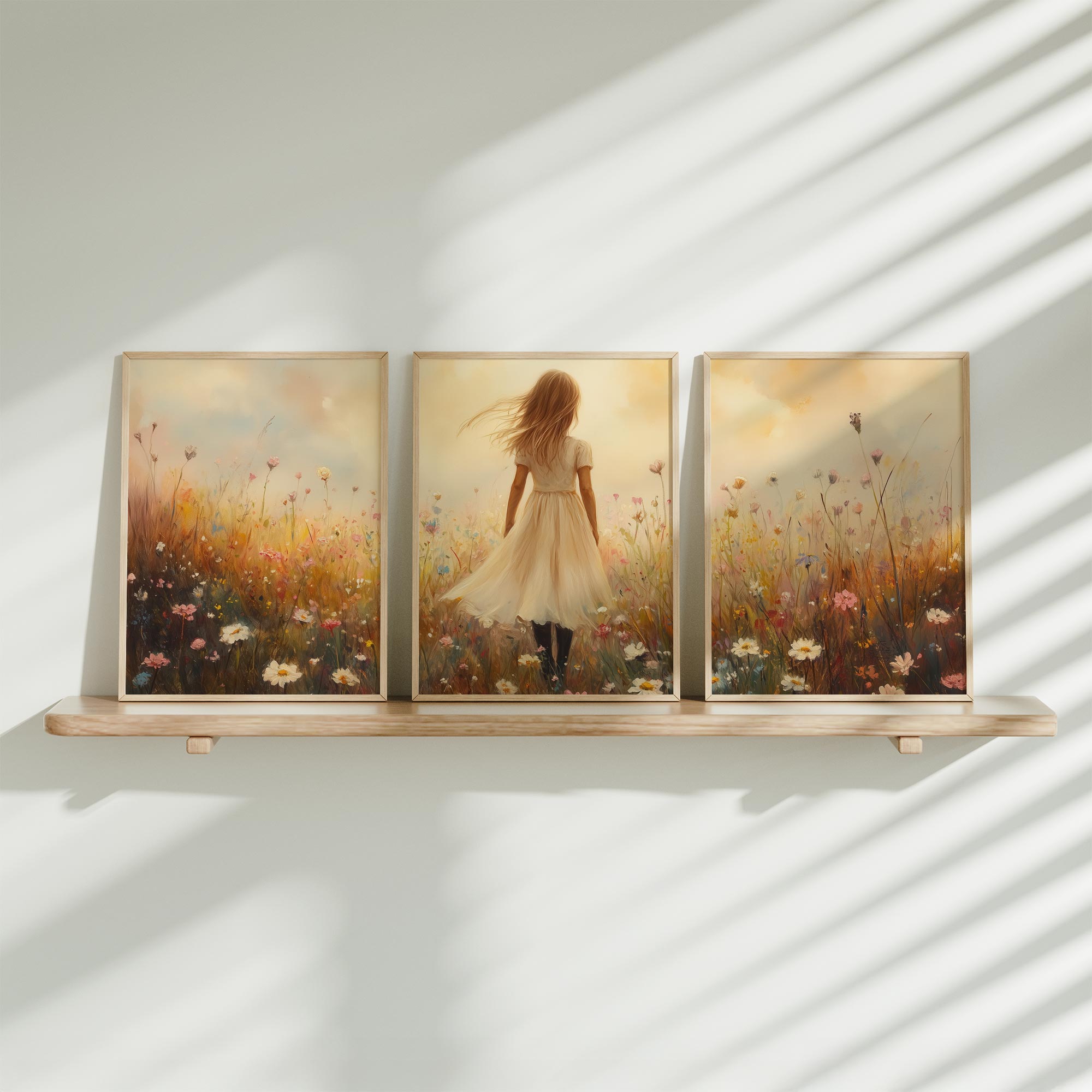 Terug naar collectie Posters Speels Meisje met Paard bij Rivier en Bergen
