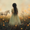 Speels Meisje met Paard in Zonnig Bloemenveld