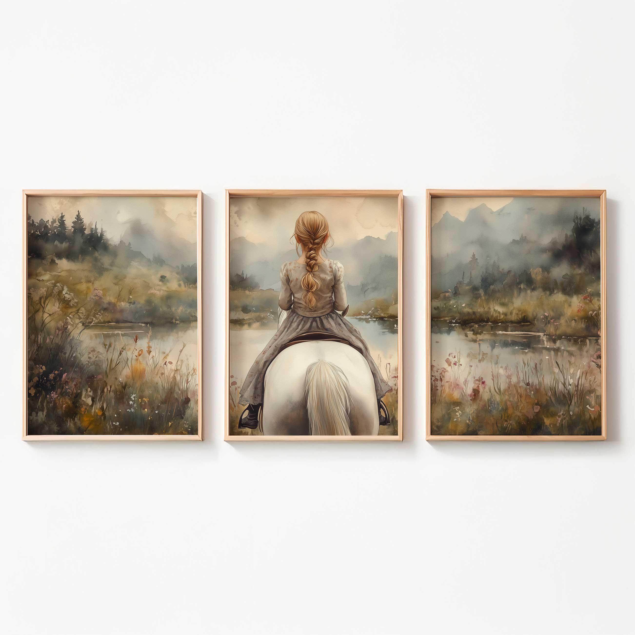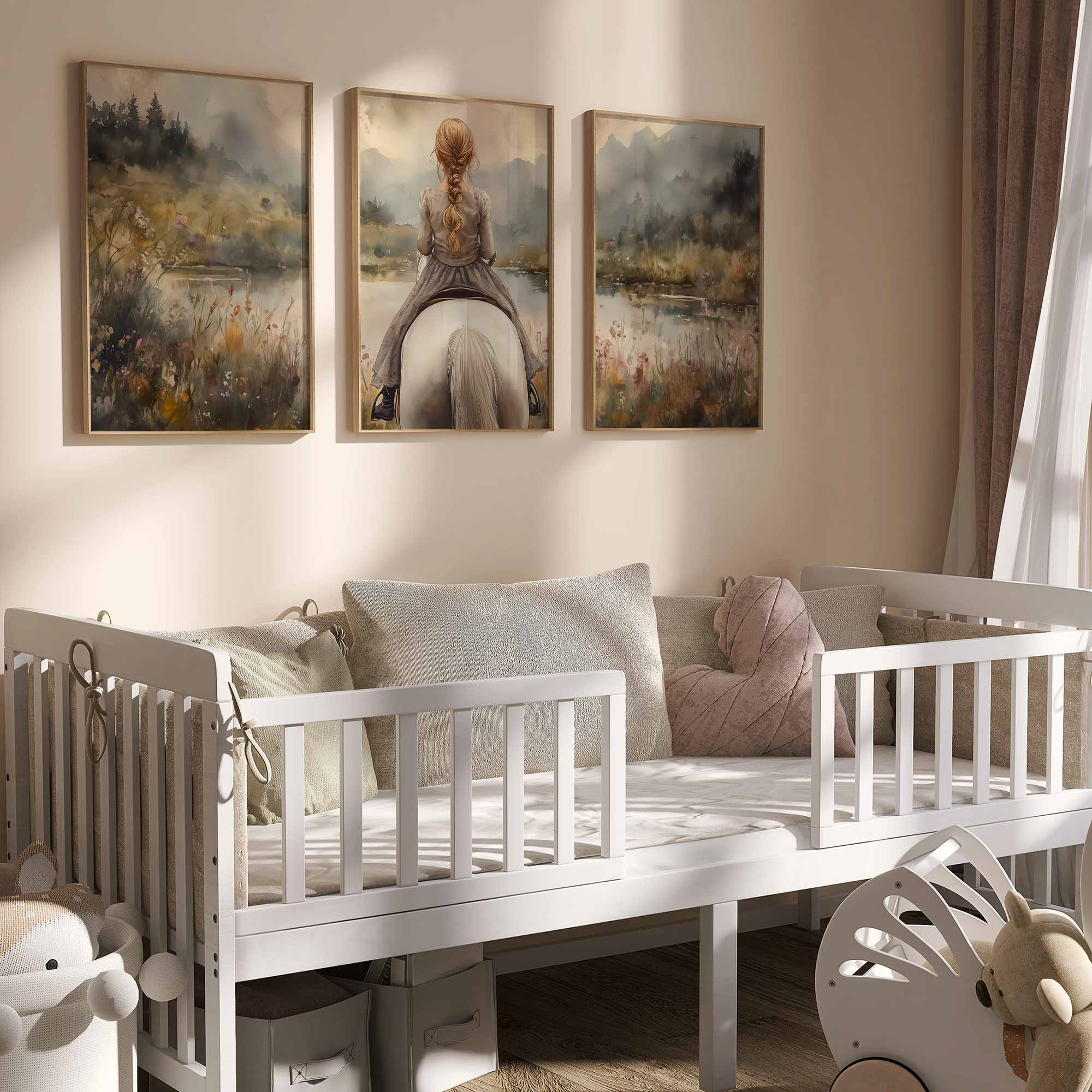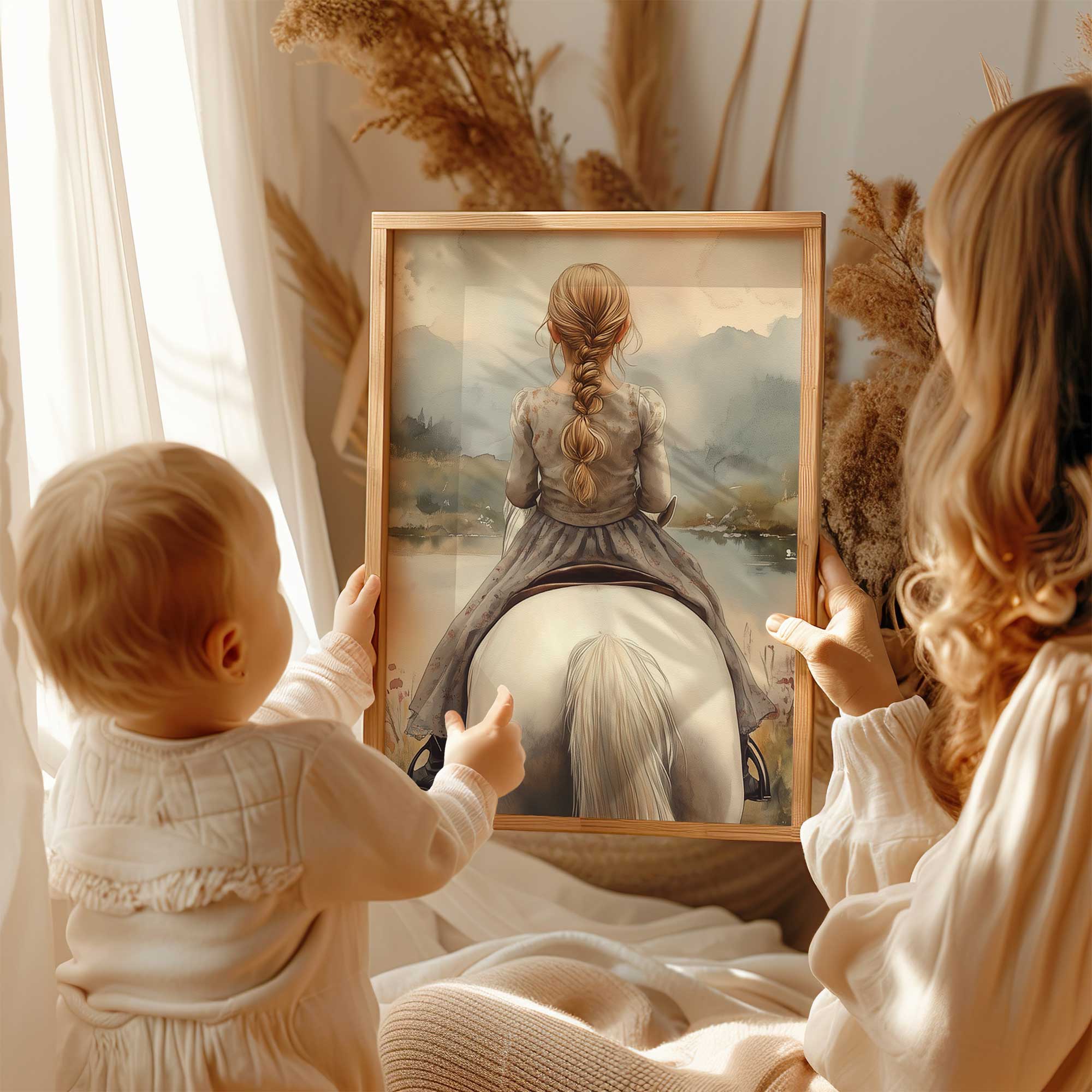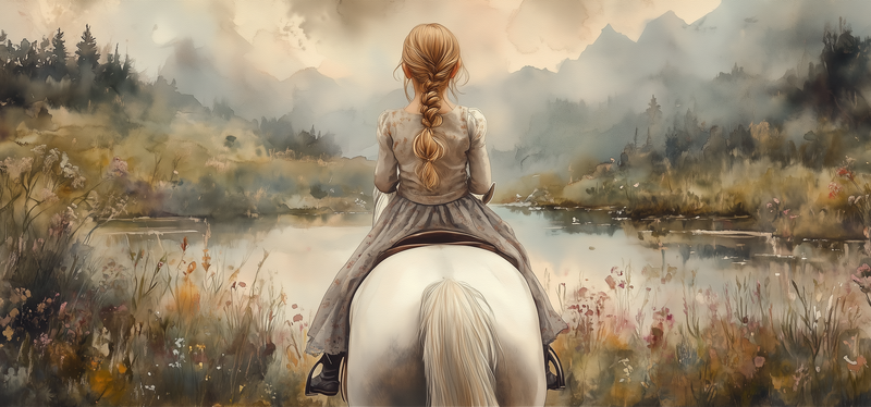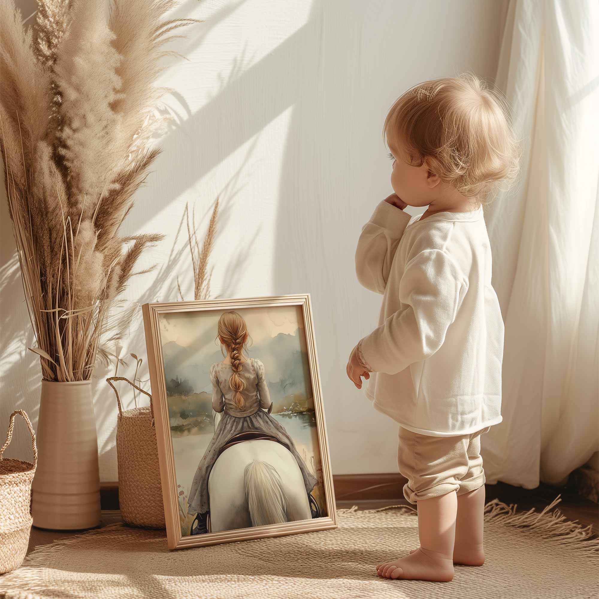 Speels Meisje op Paard in Betoverend Landschap
