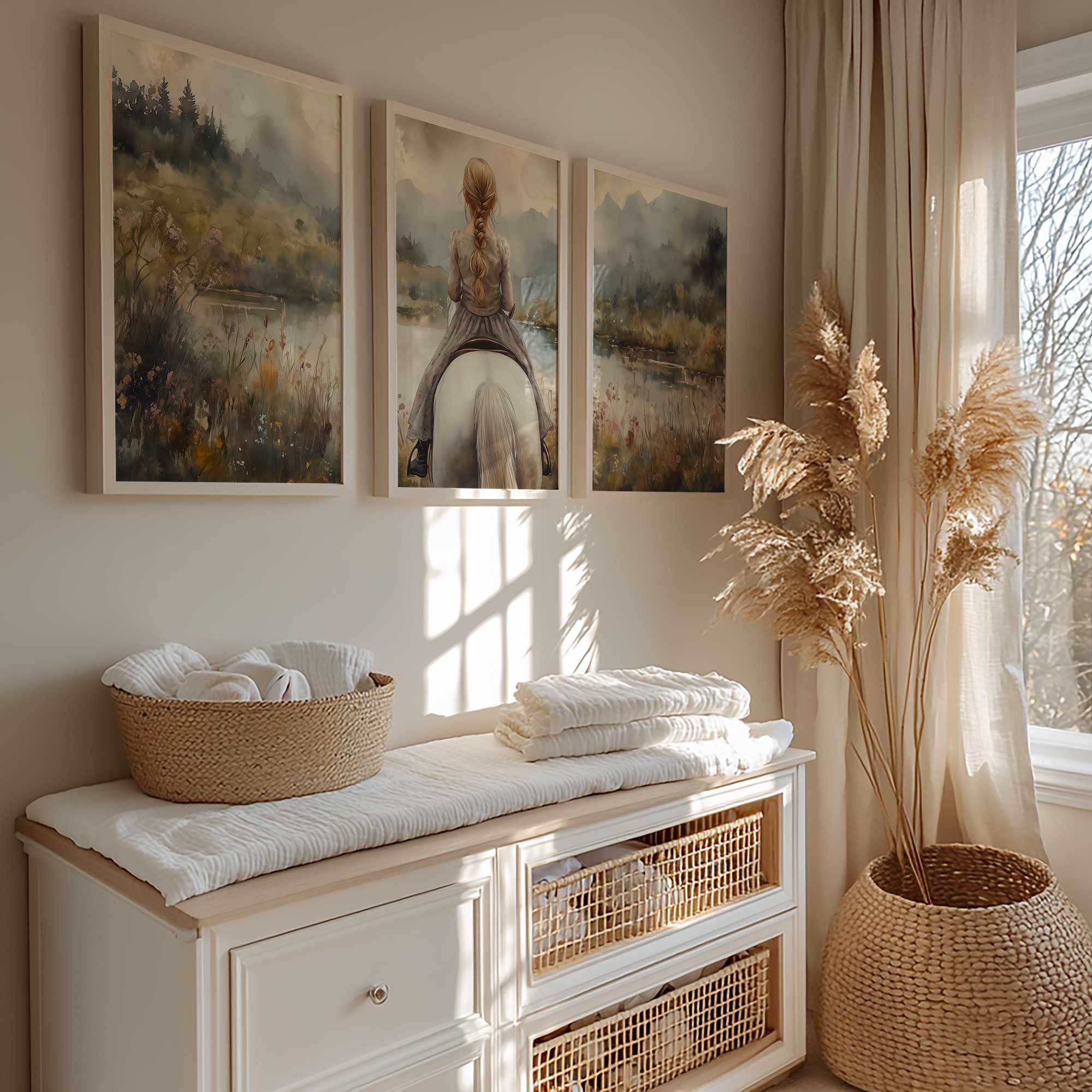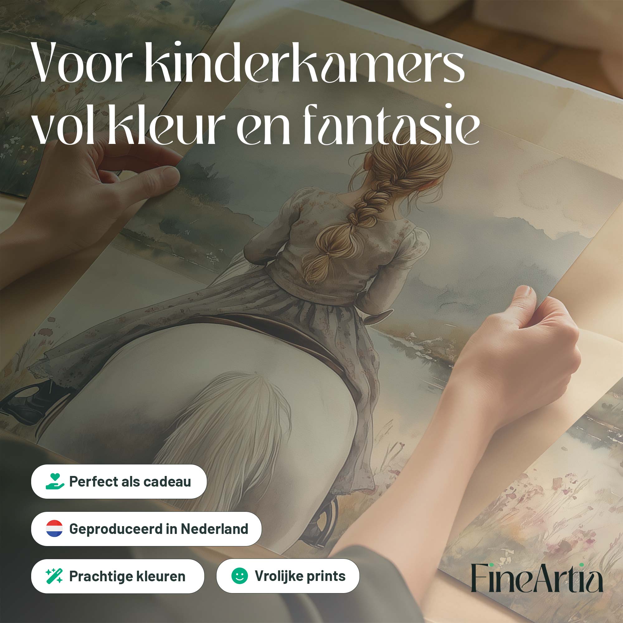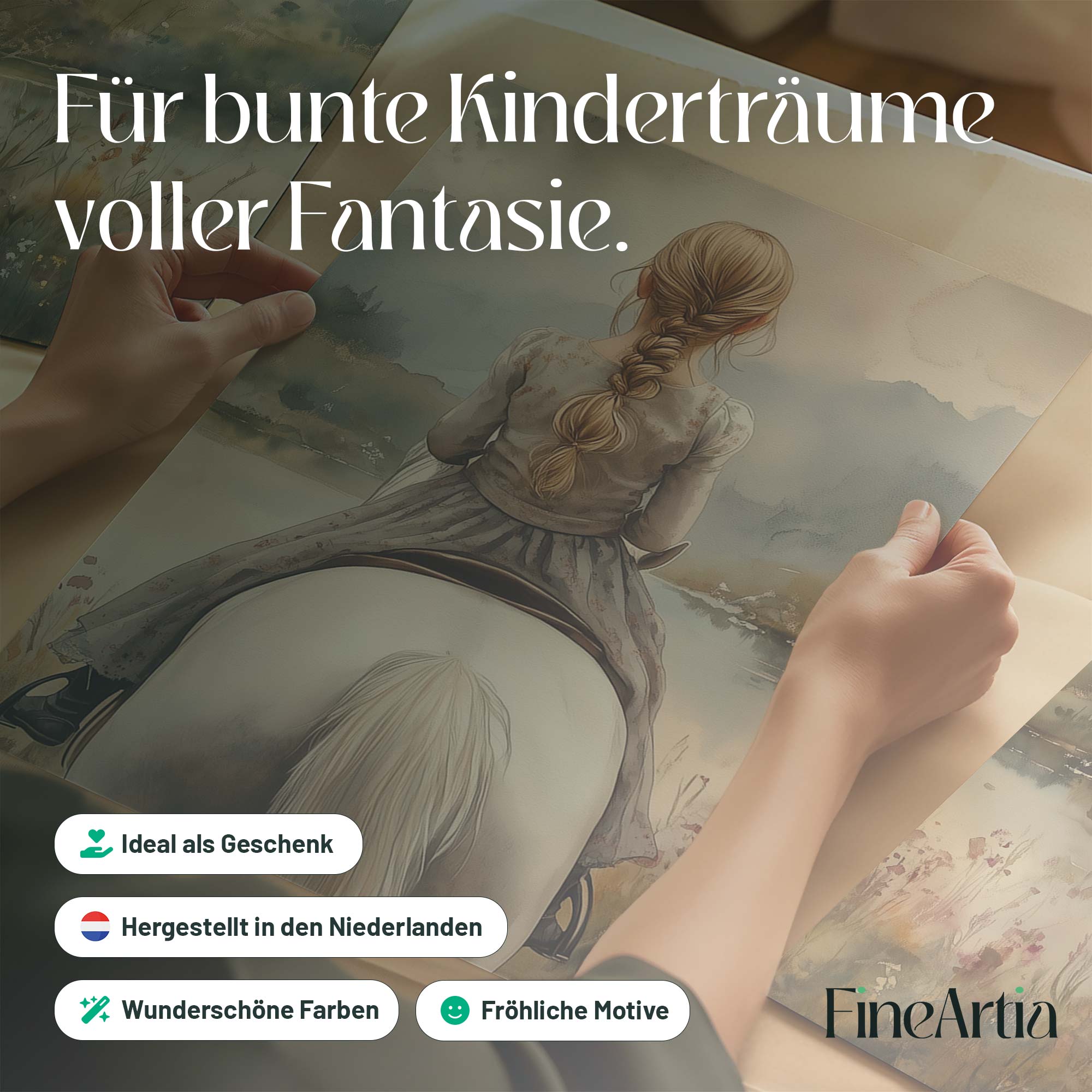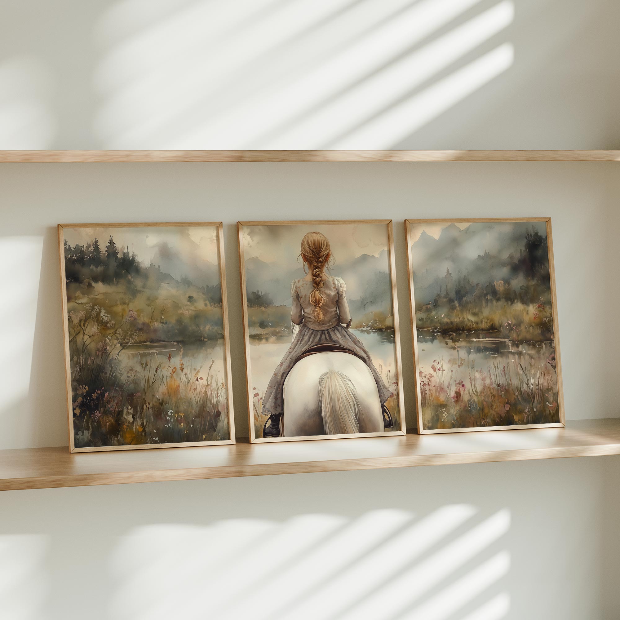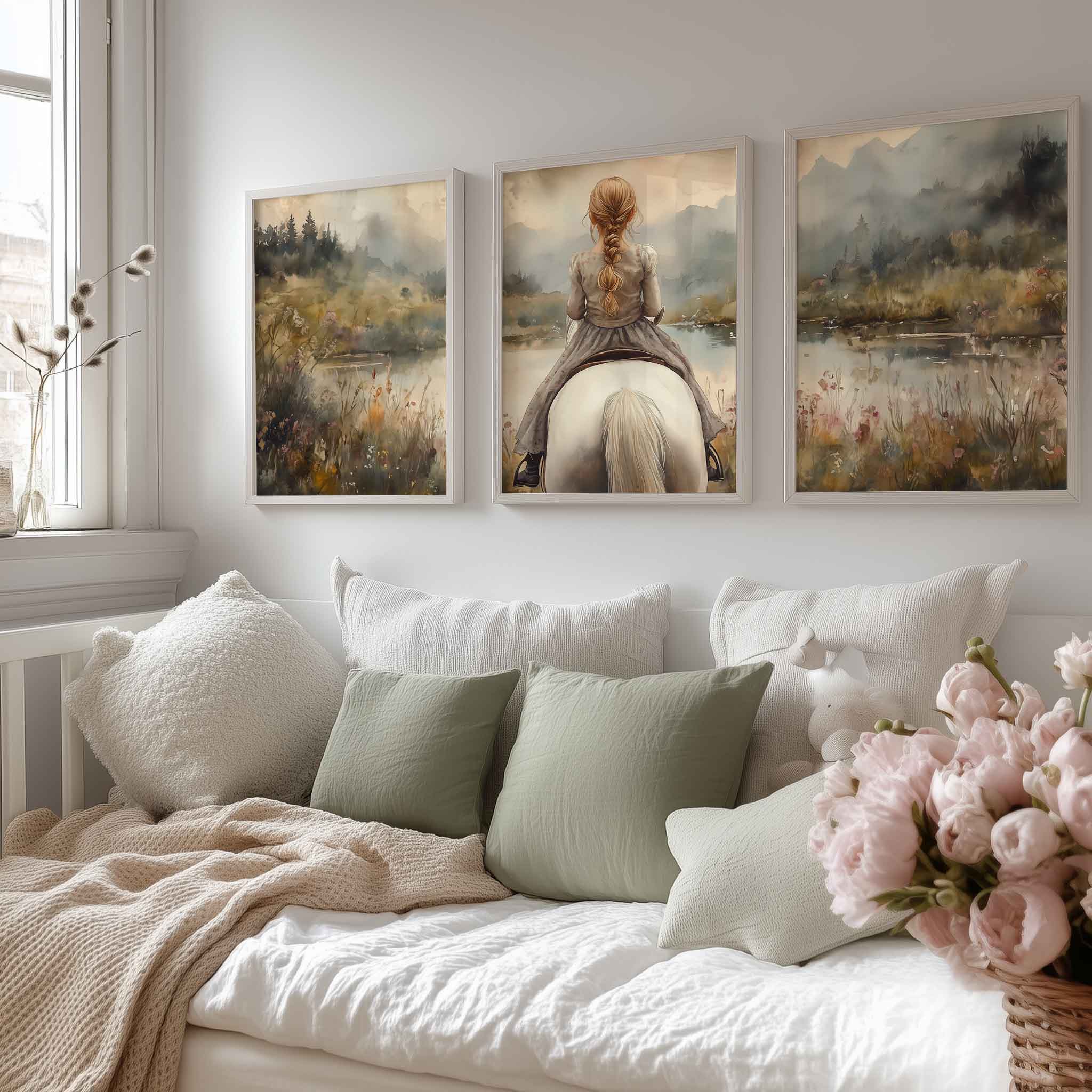 Speels Meisje op Paard in Betoverend Landschap