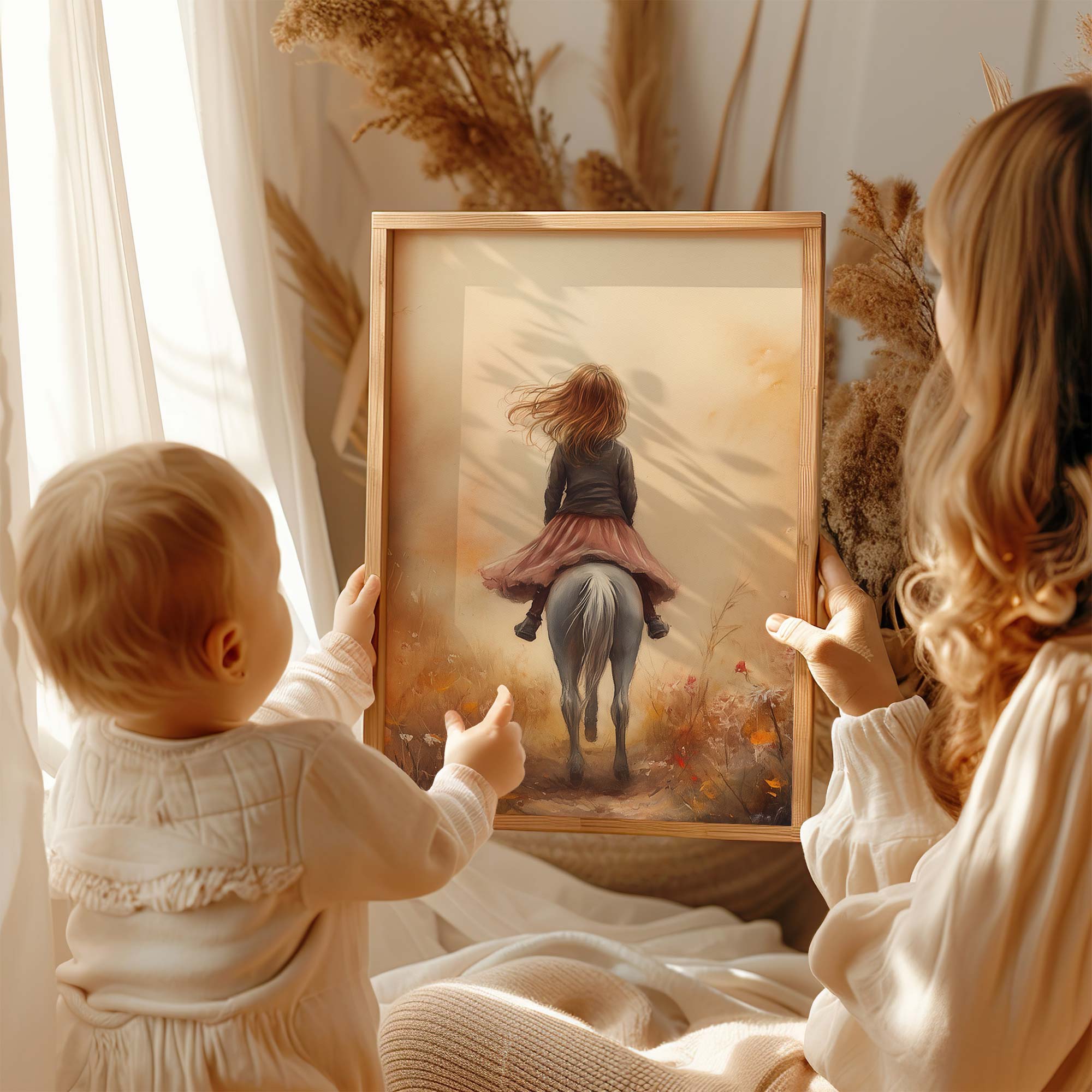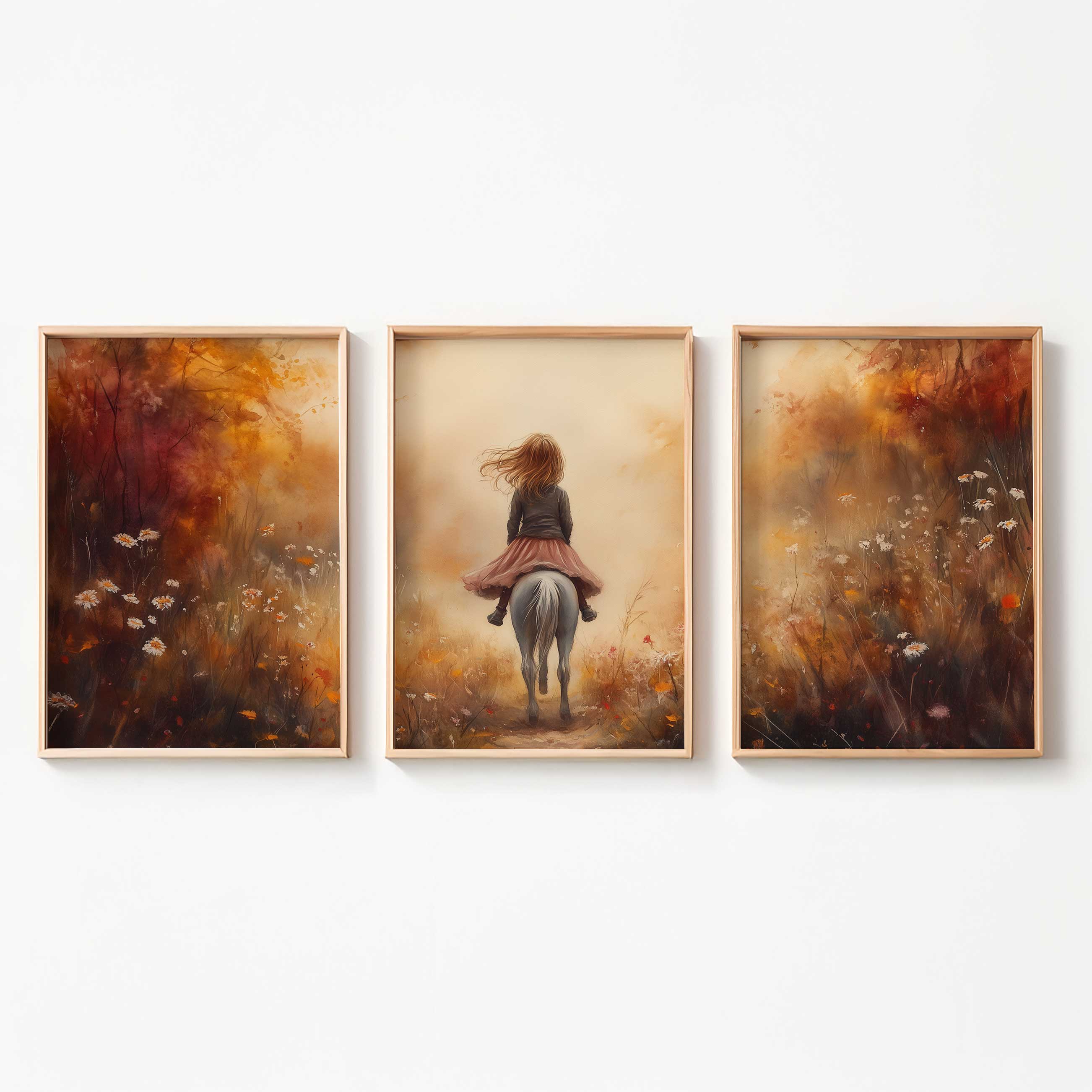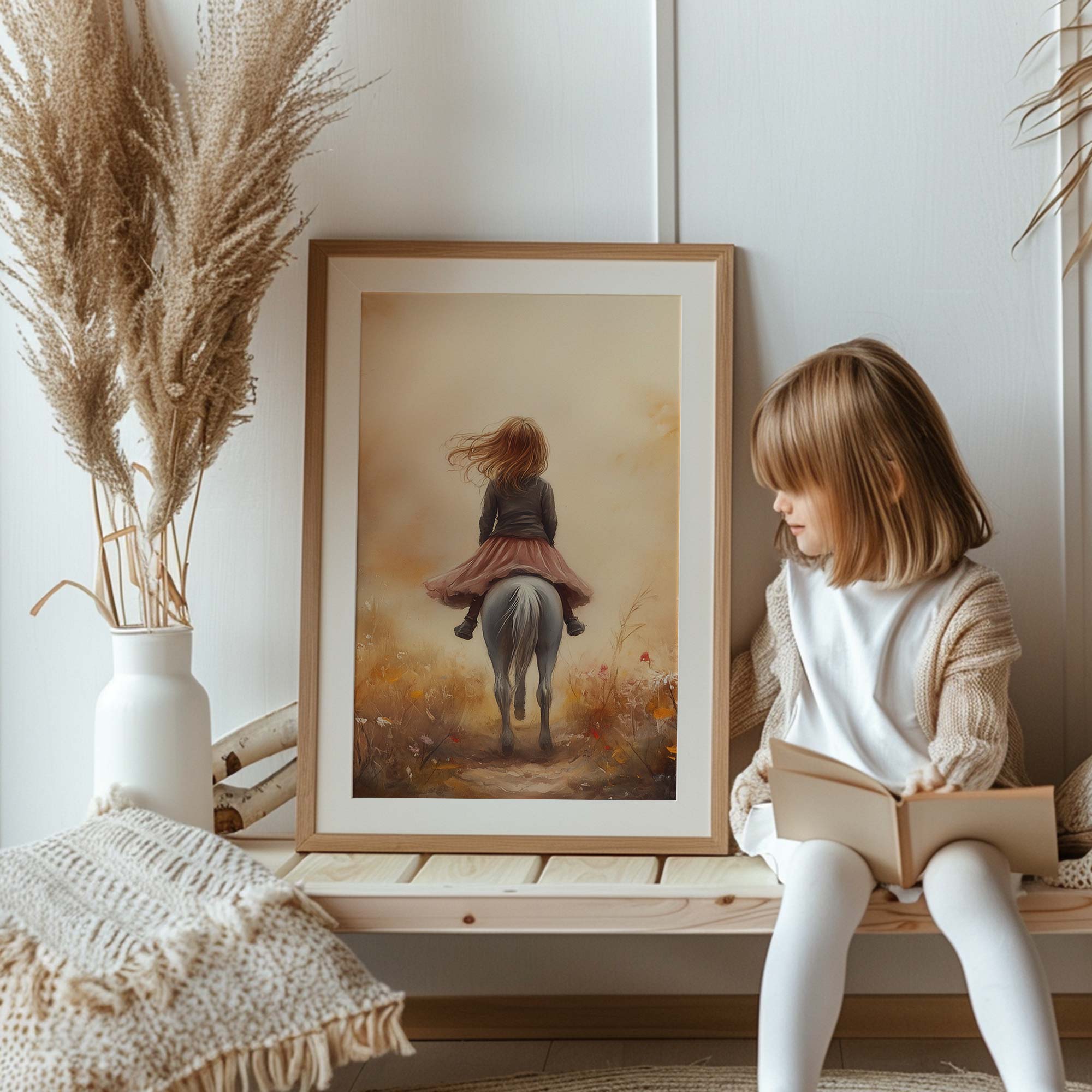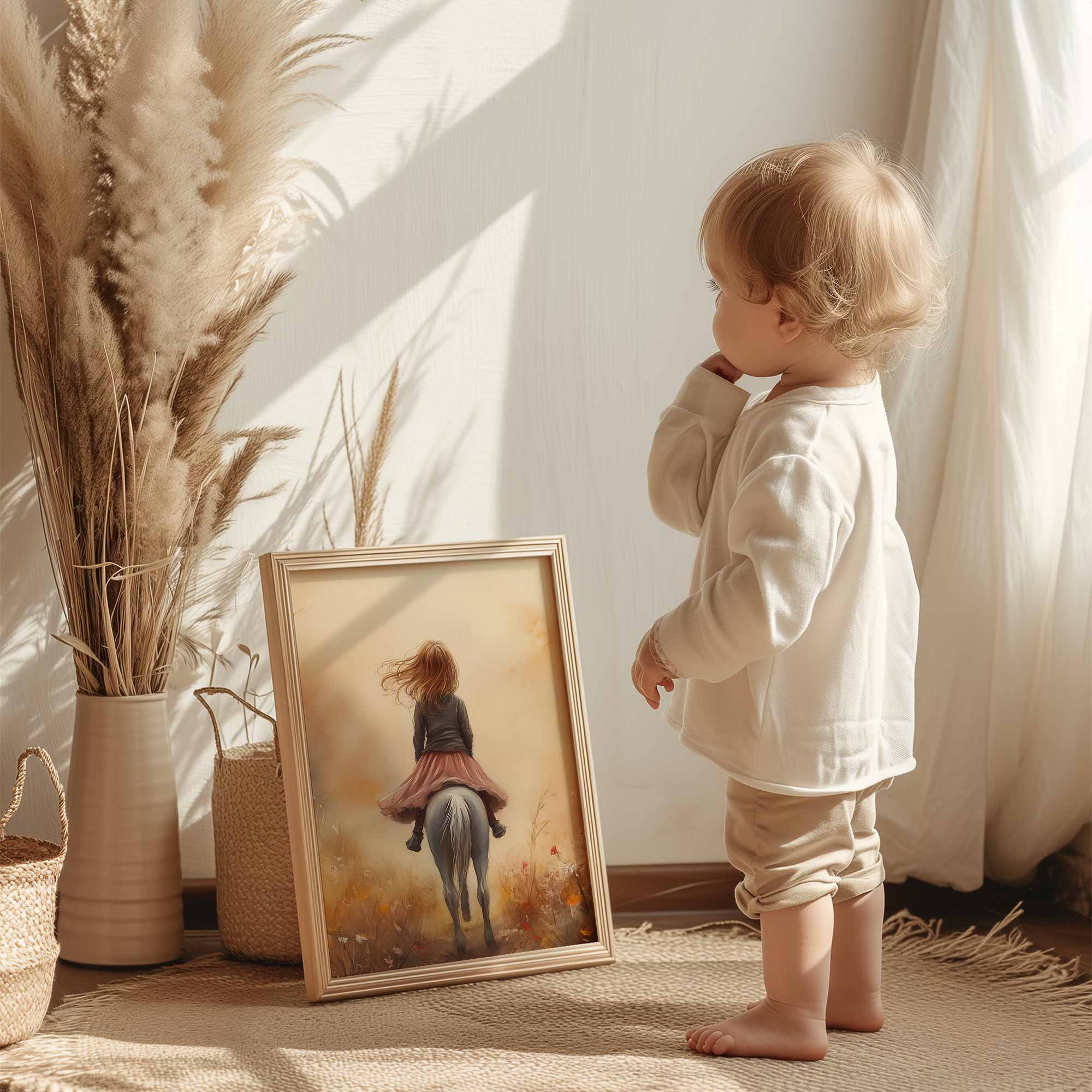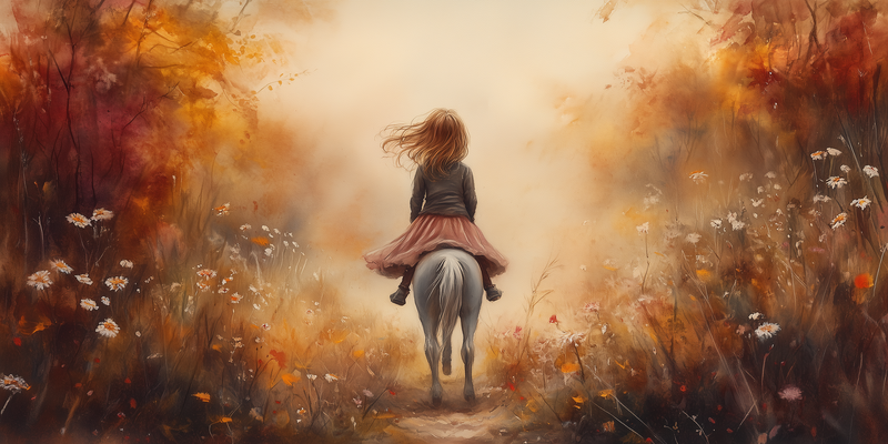 Speels Meisje op Paard in Bloemenveld