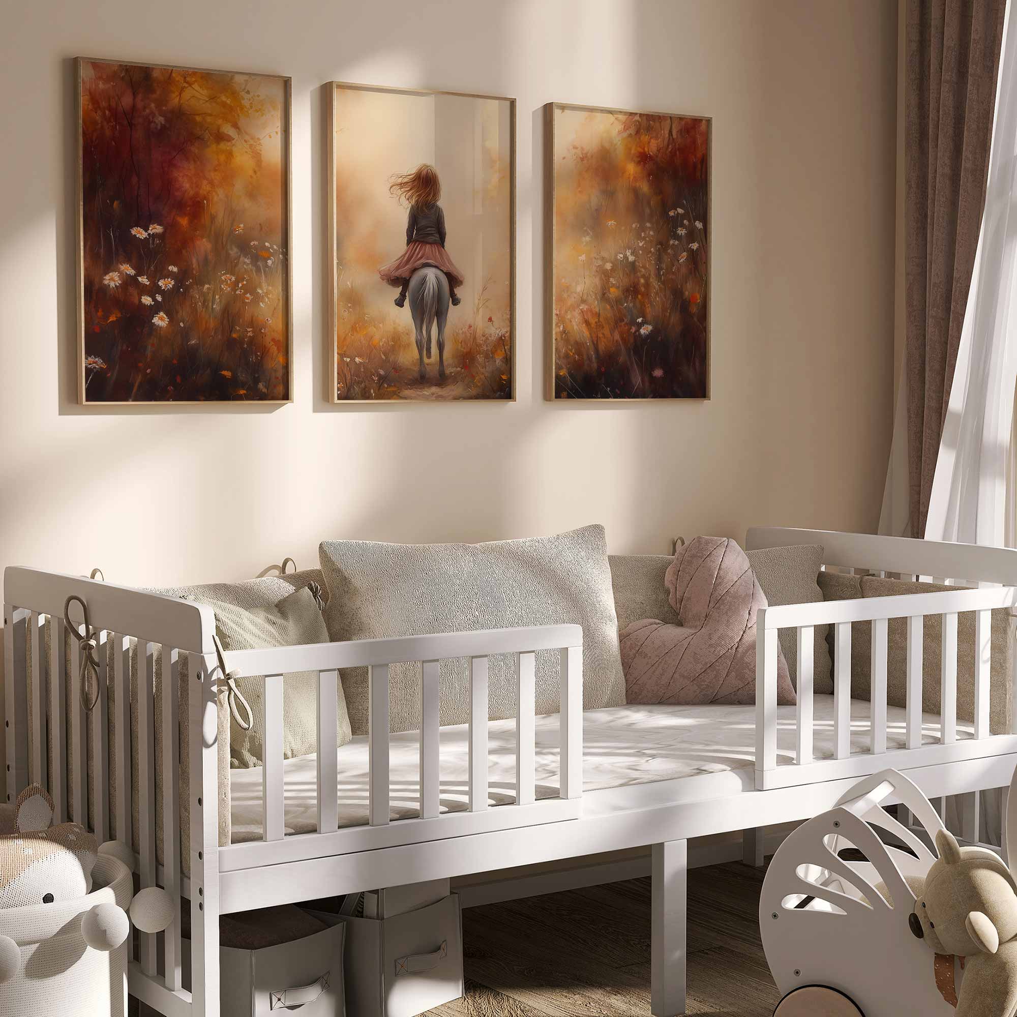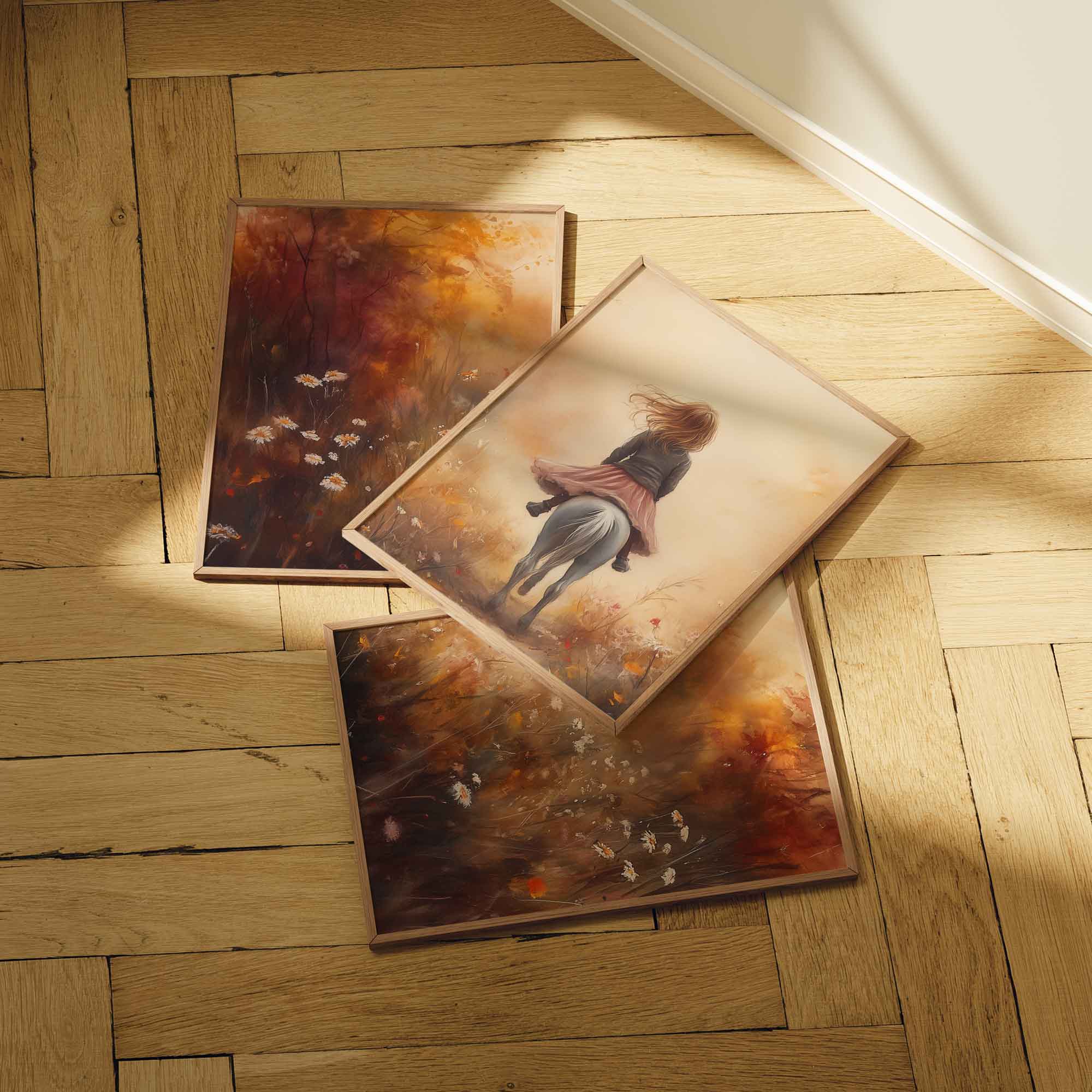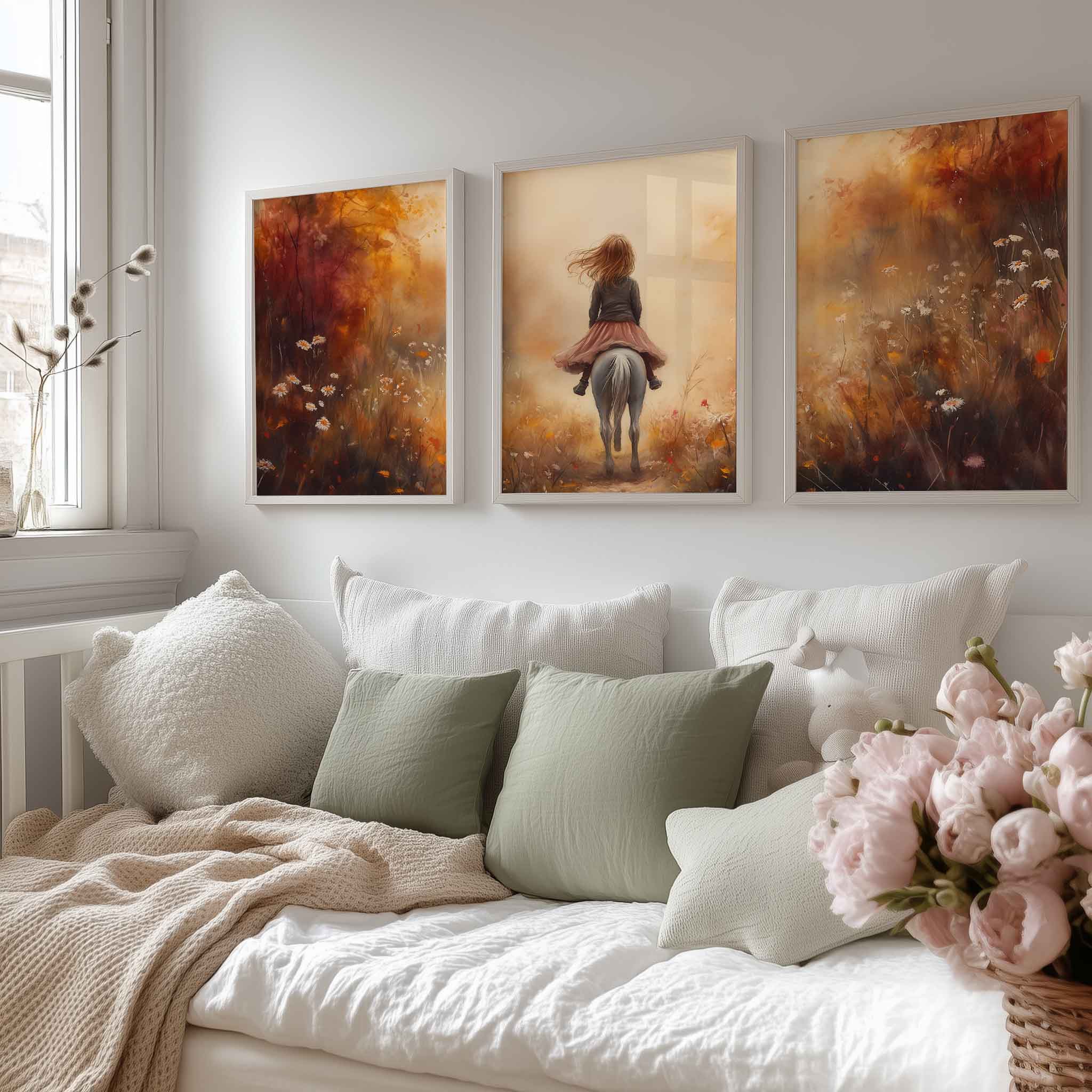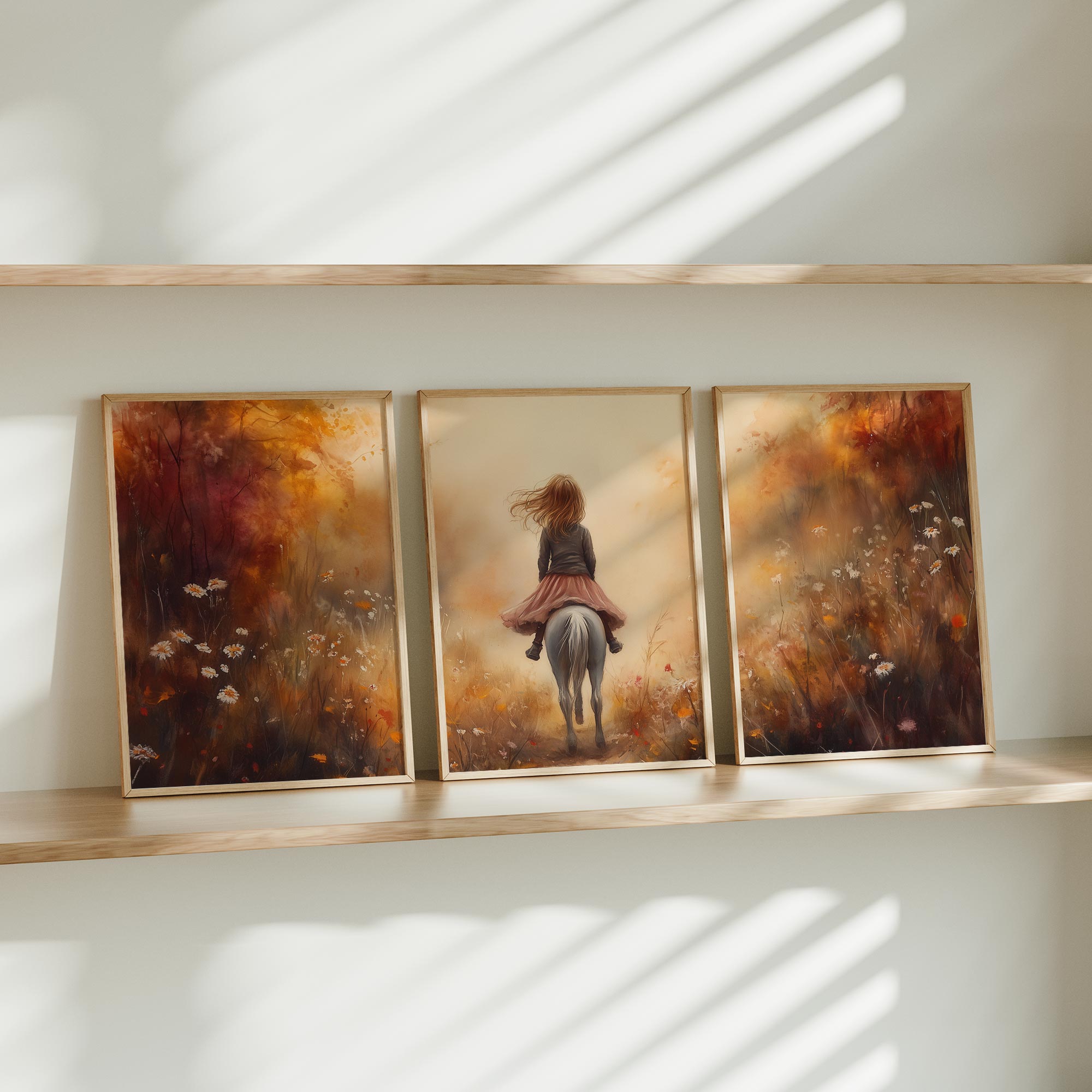 Speels Meisje op Paard in Bloemenveld