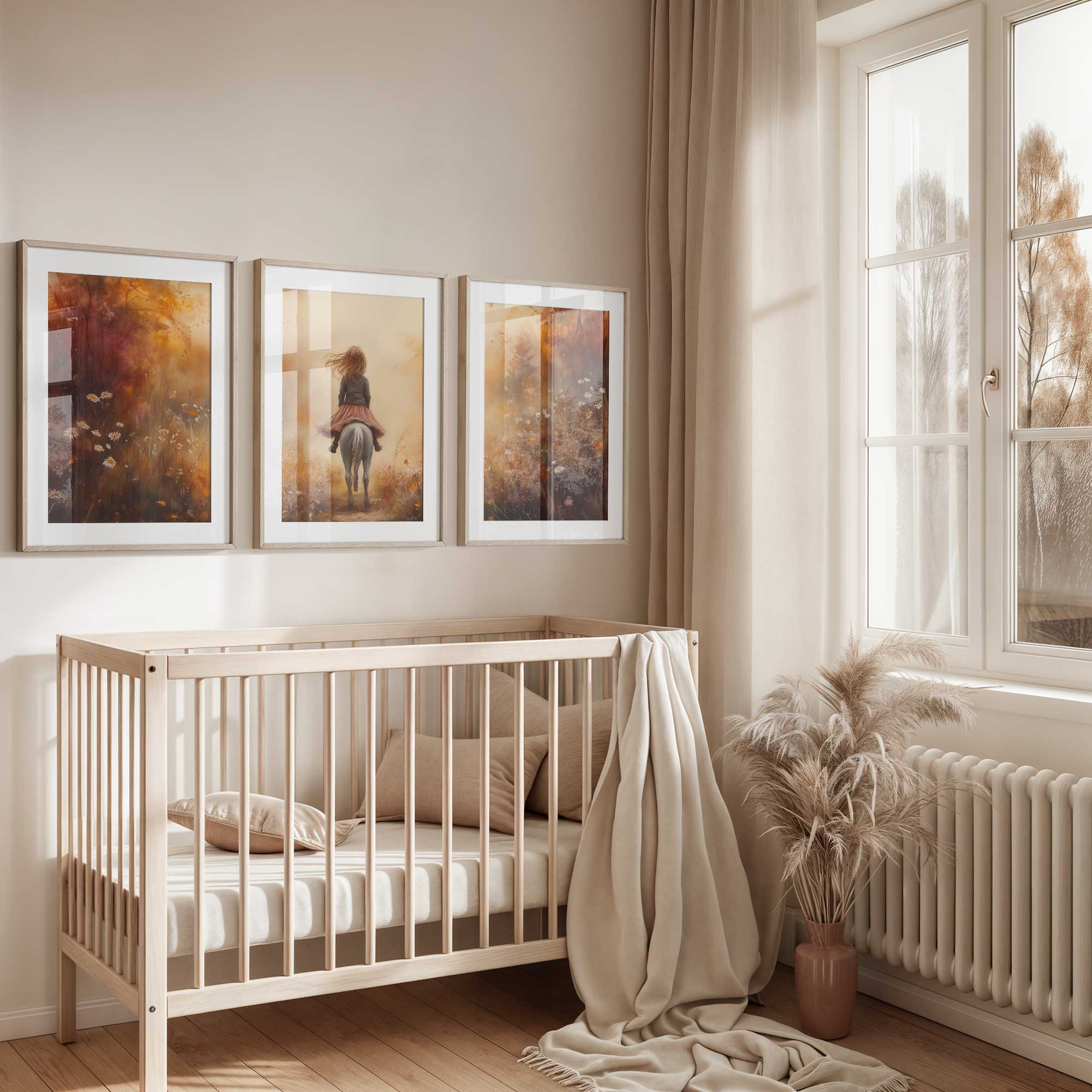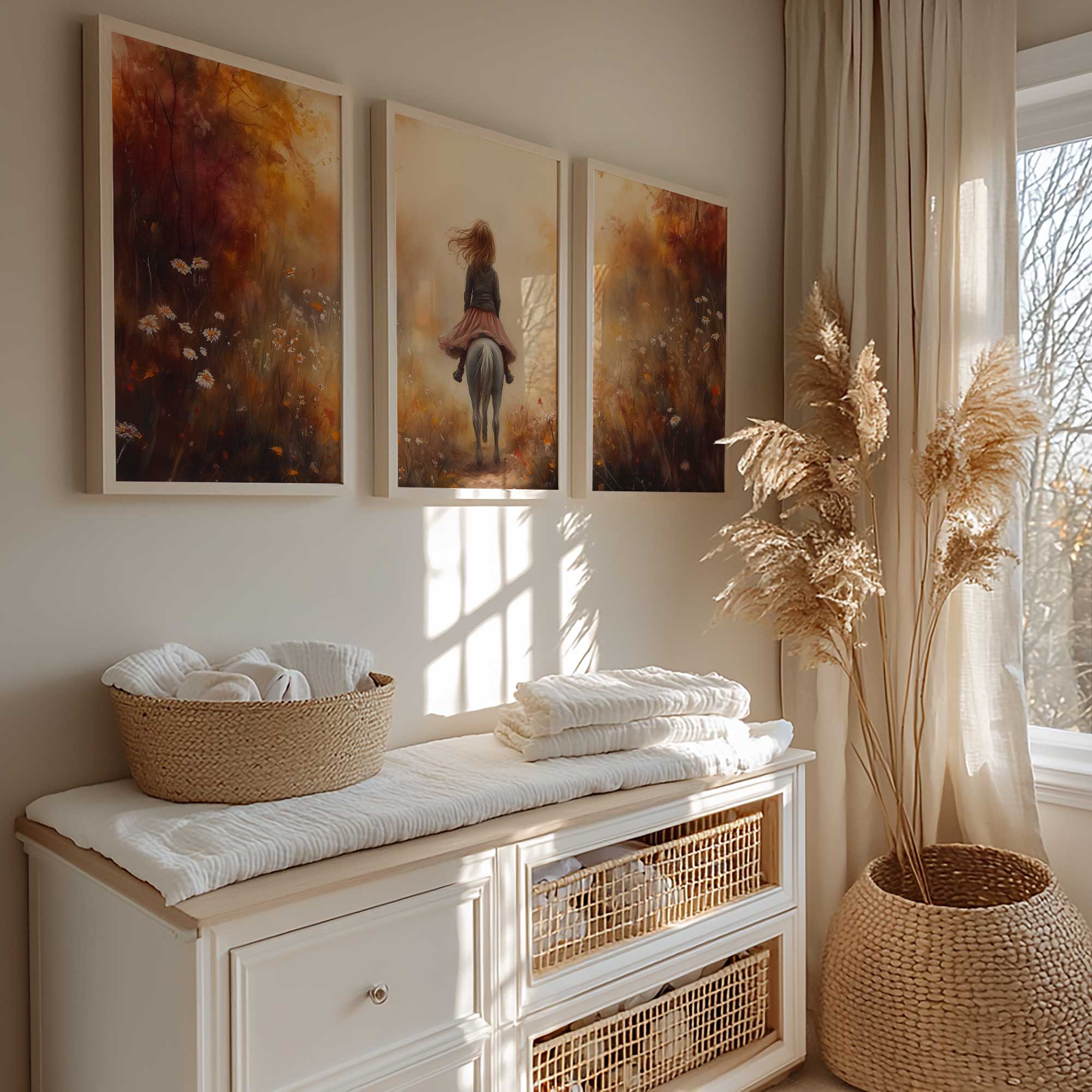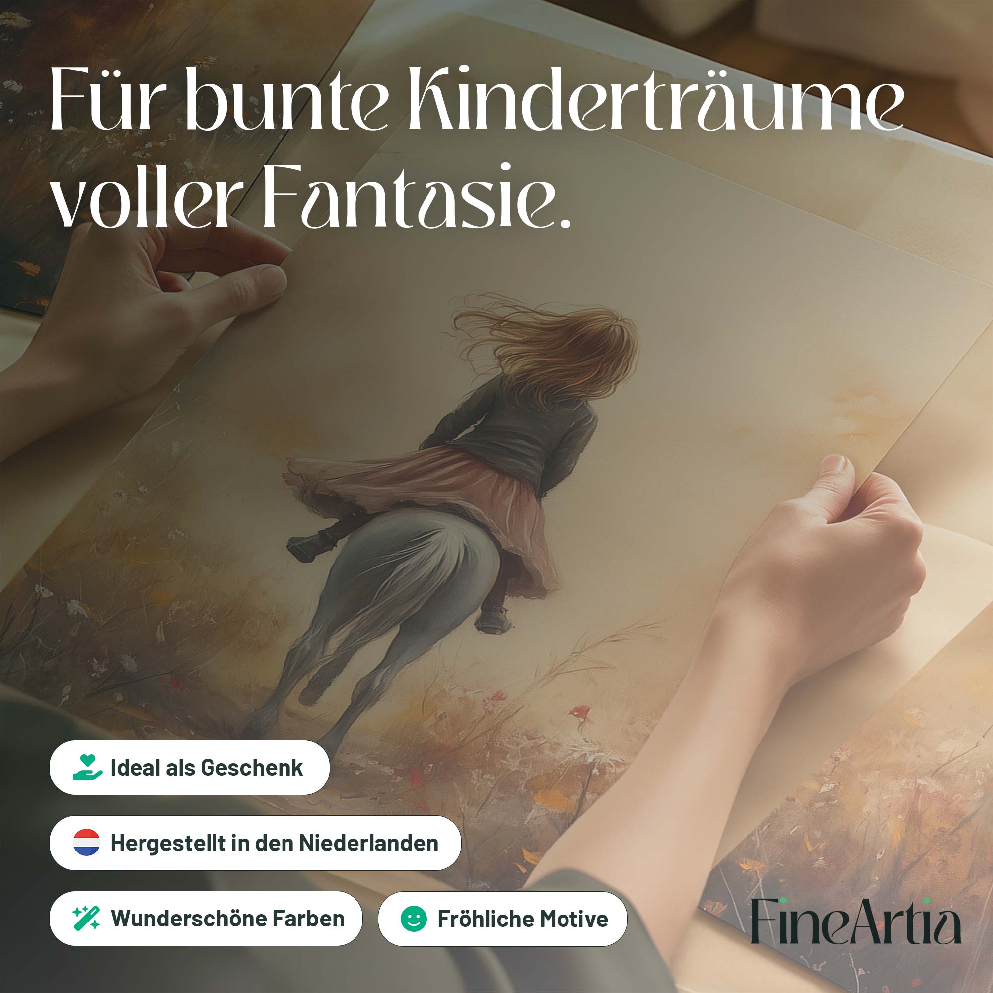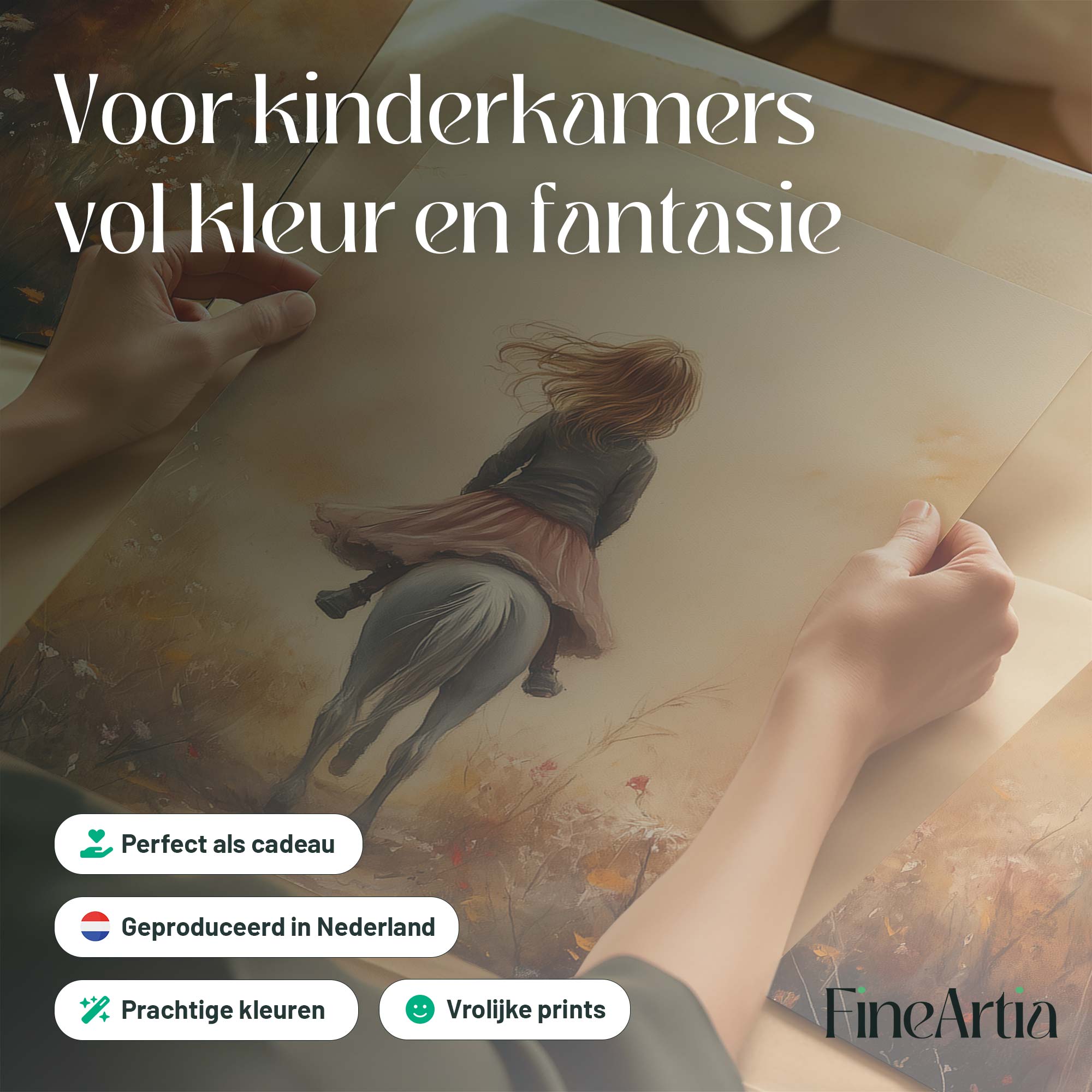 Speels Meisje op Paard in Bloemenveld