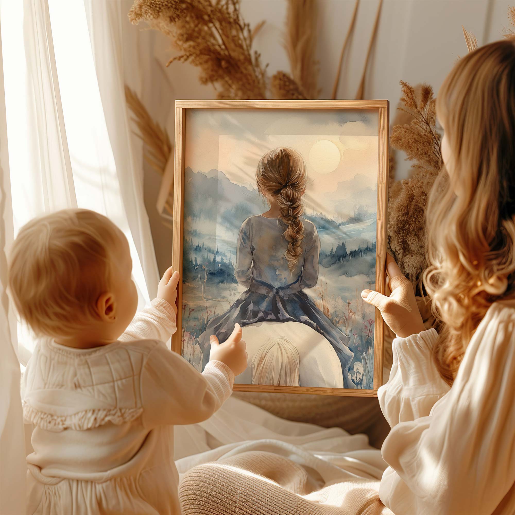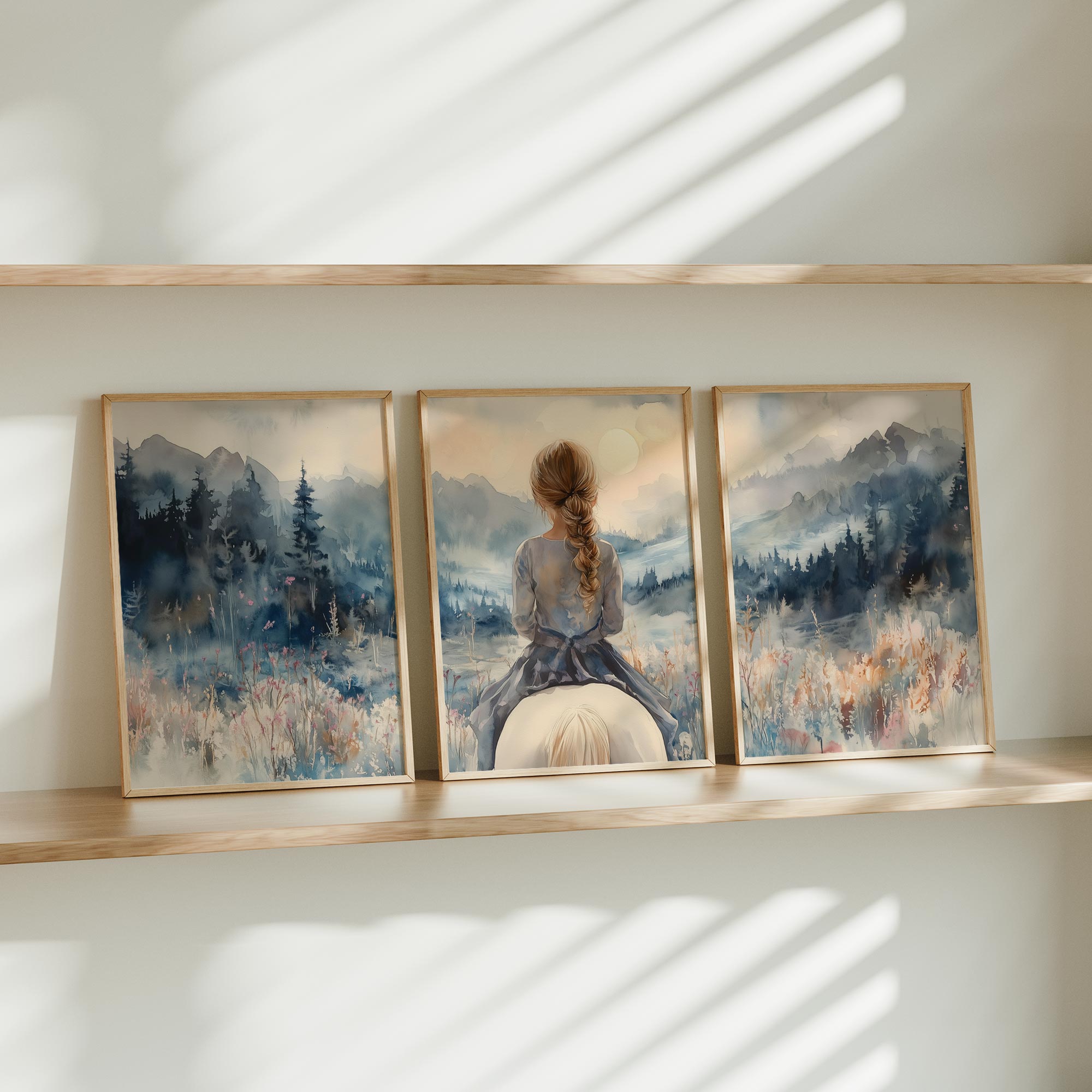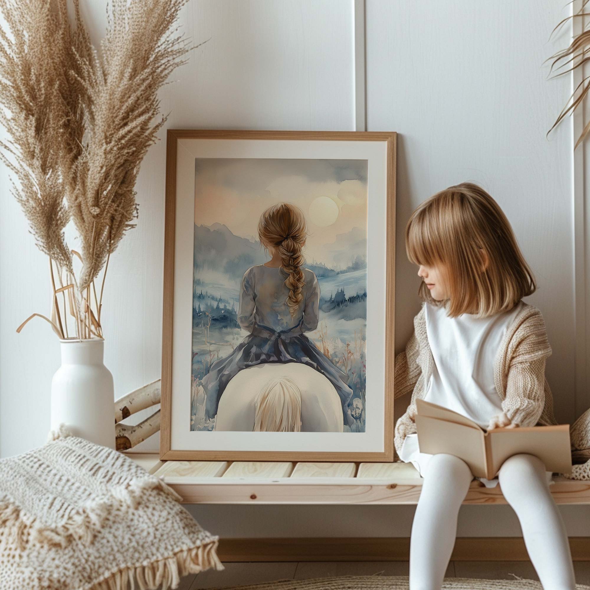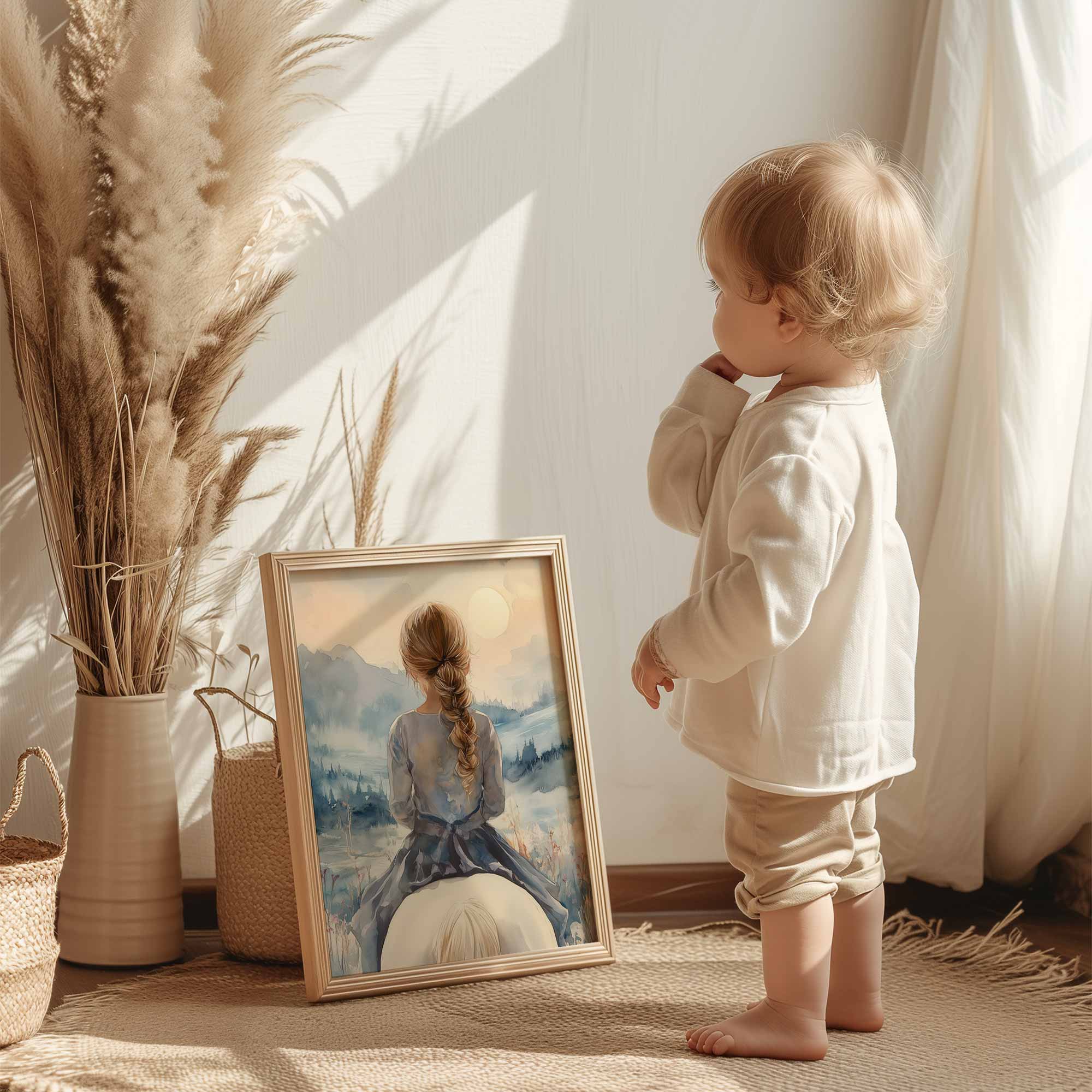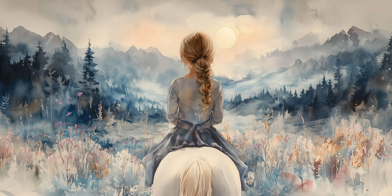 Speels Meisje op Paard in Serene Bergweide